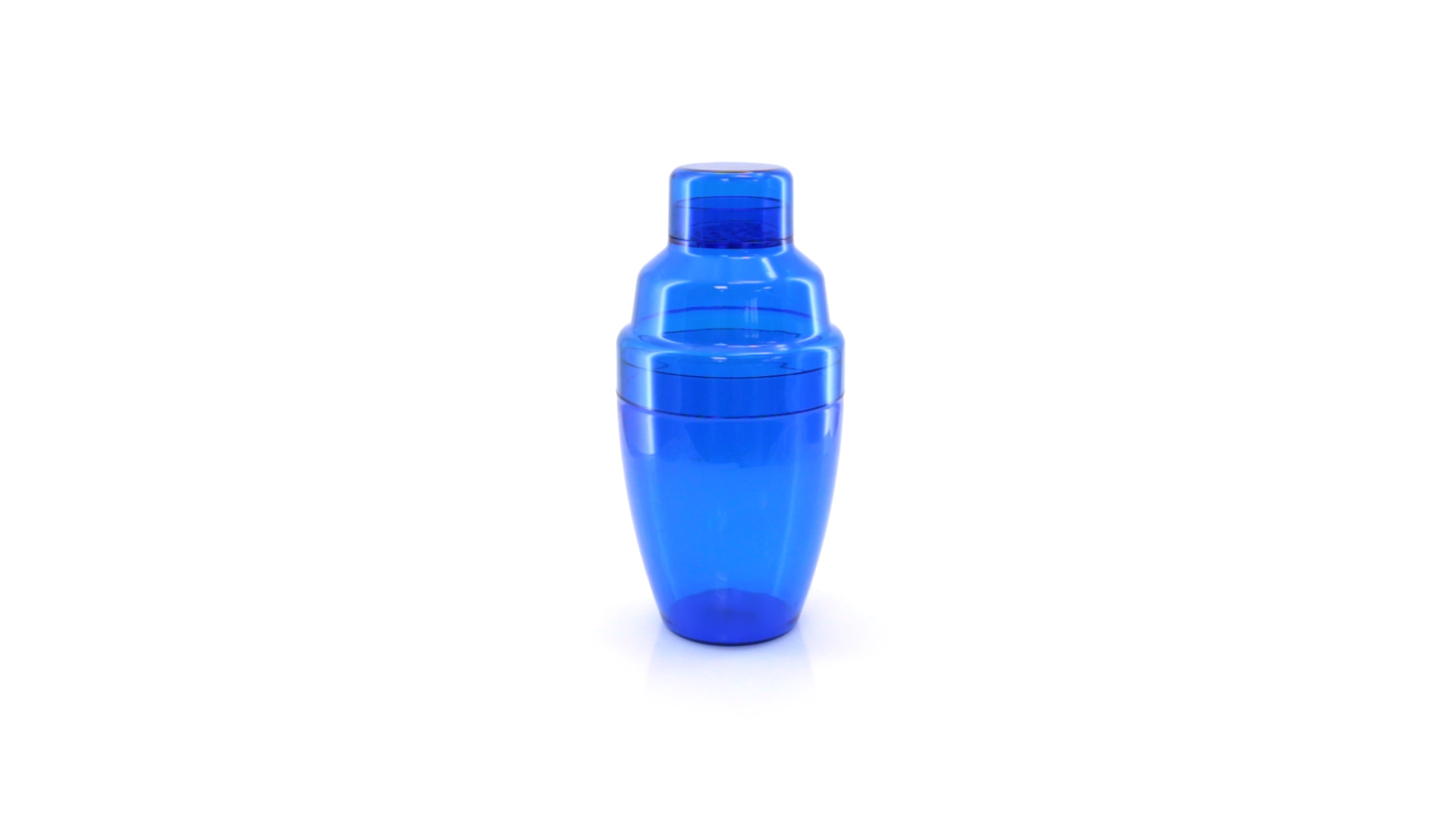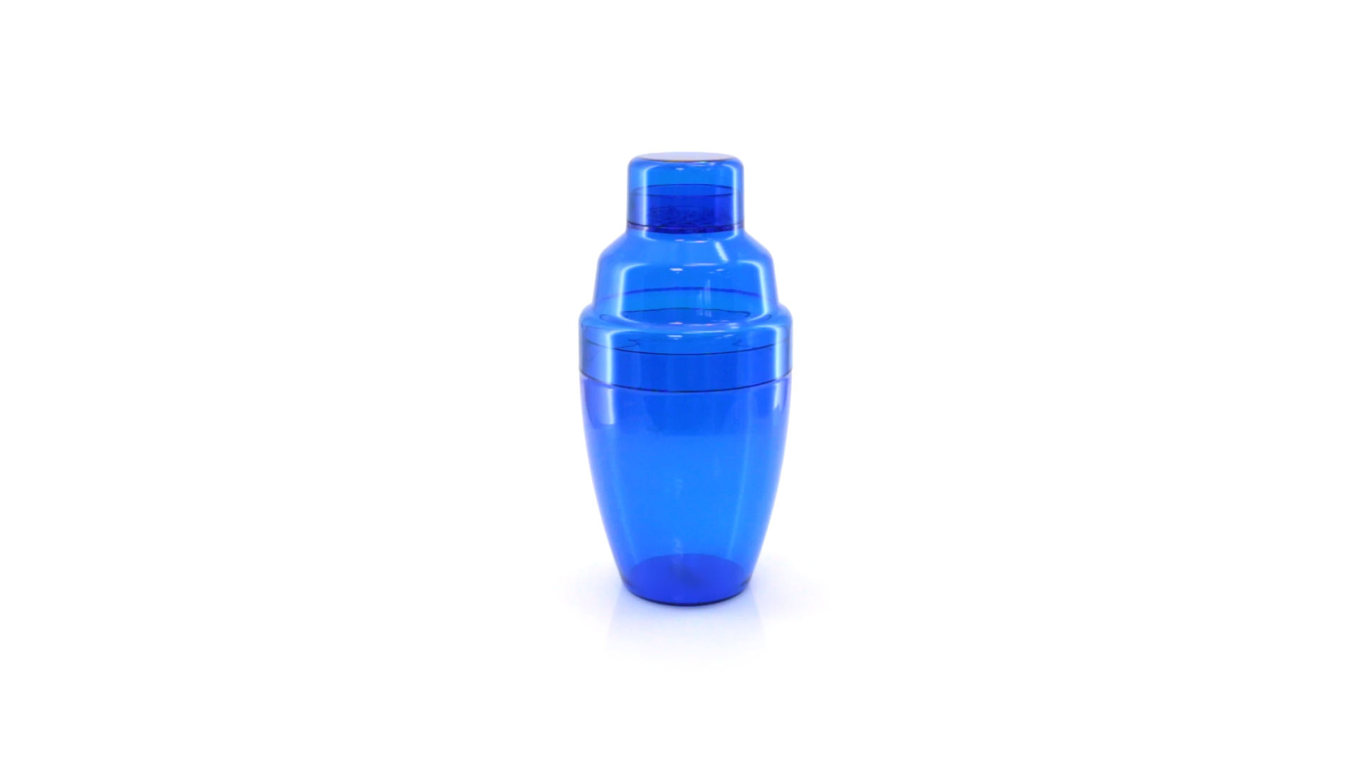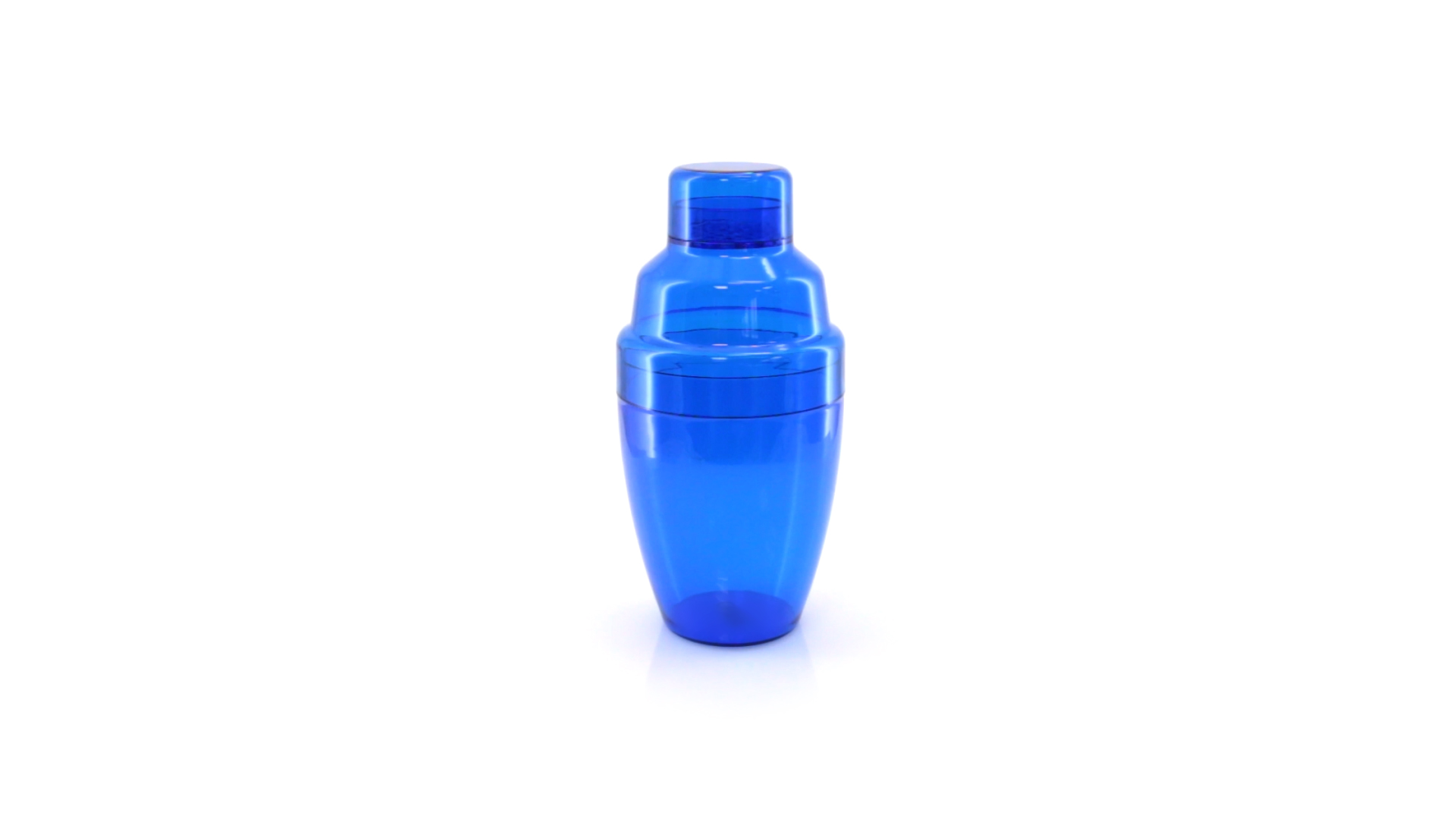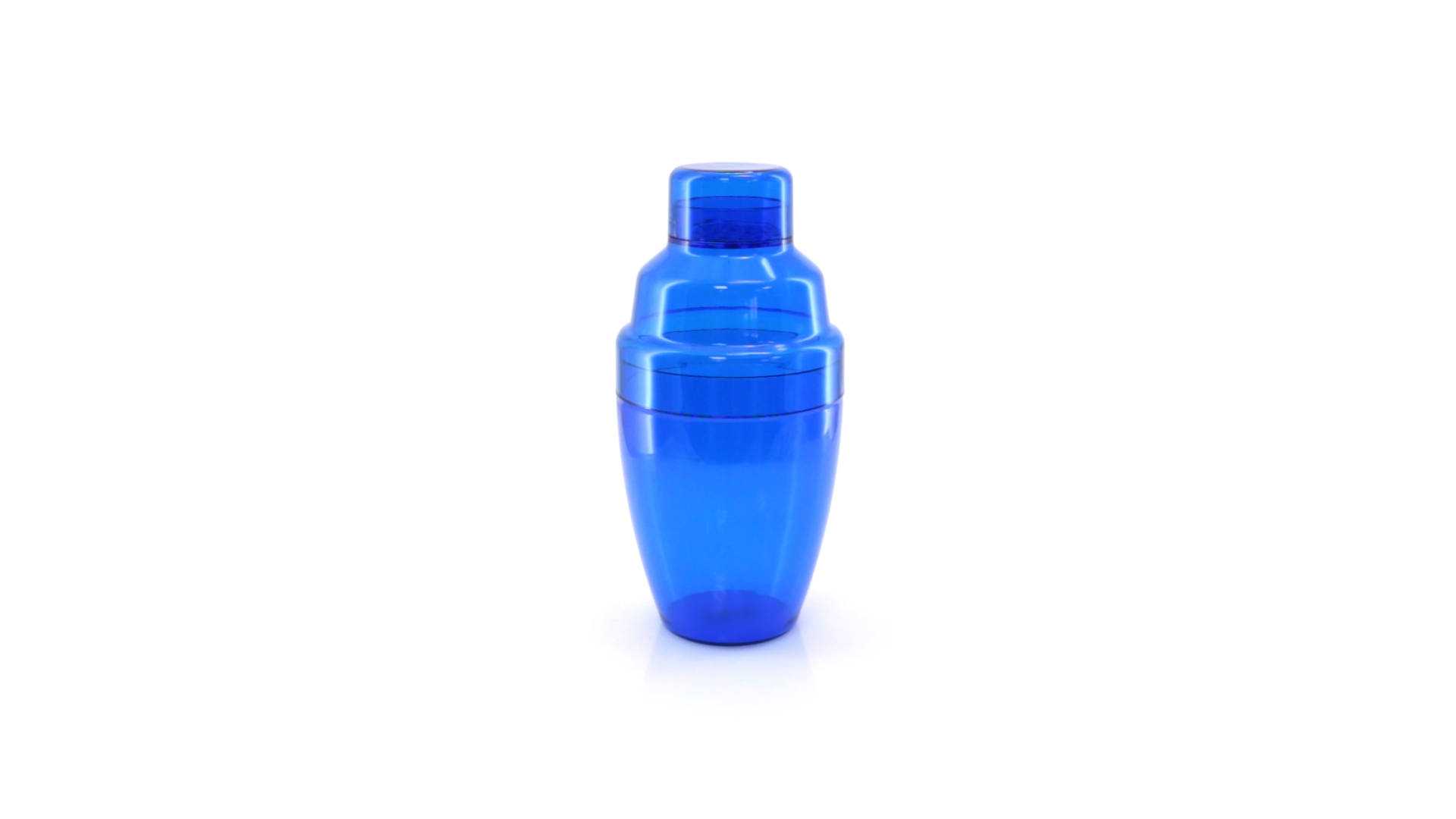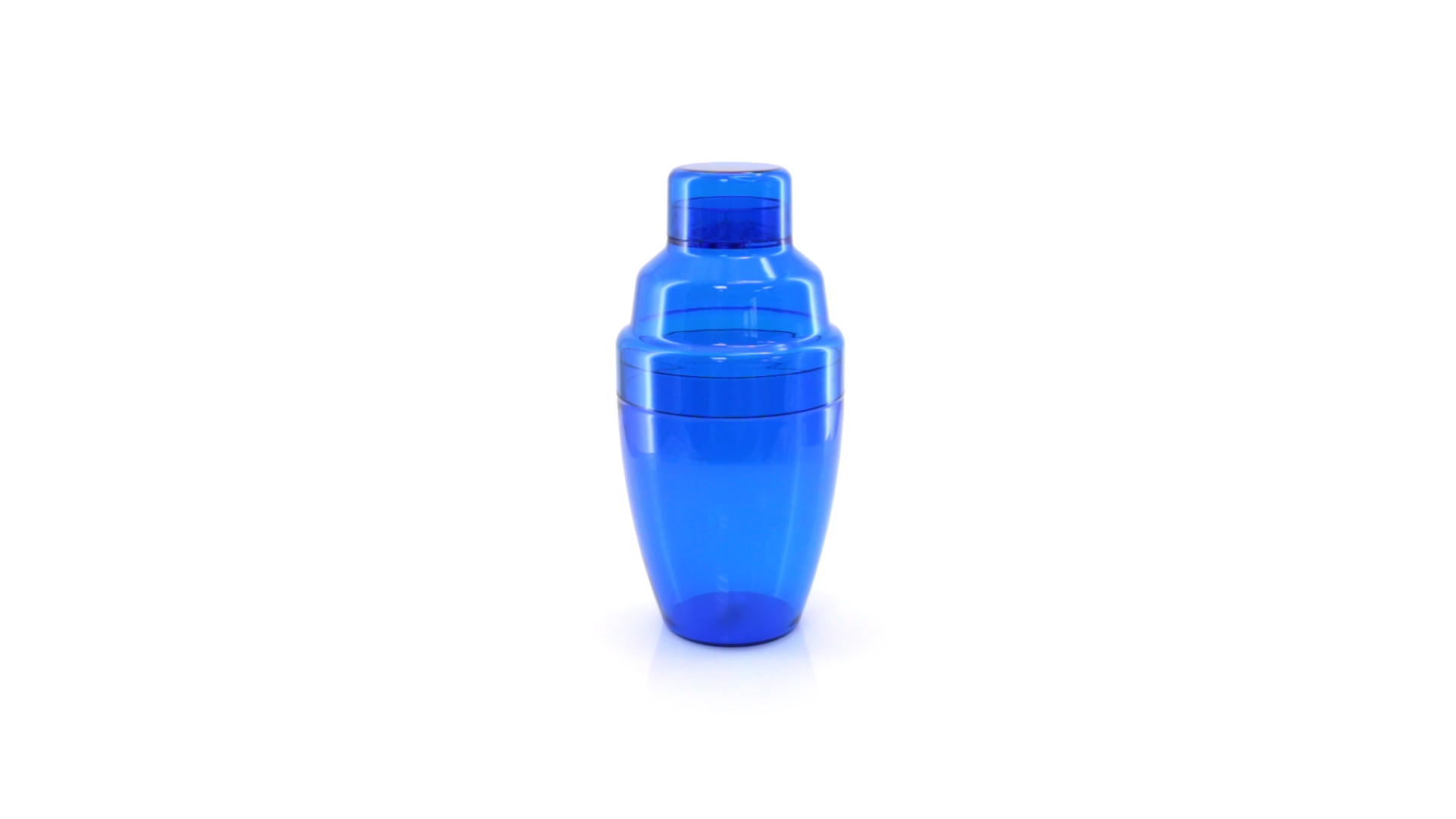 Cocktail Shaker mit 300 ml Fassungsvermögen aus transparentem PS-Kunststoff in kräftigen Farben. Mit Sicherheitsverschluss und Dosierkappe.