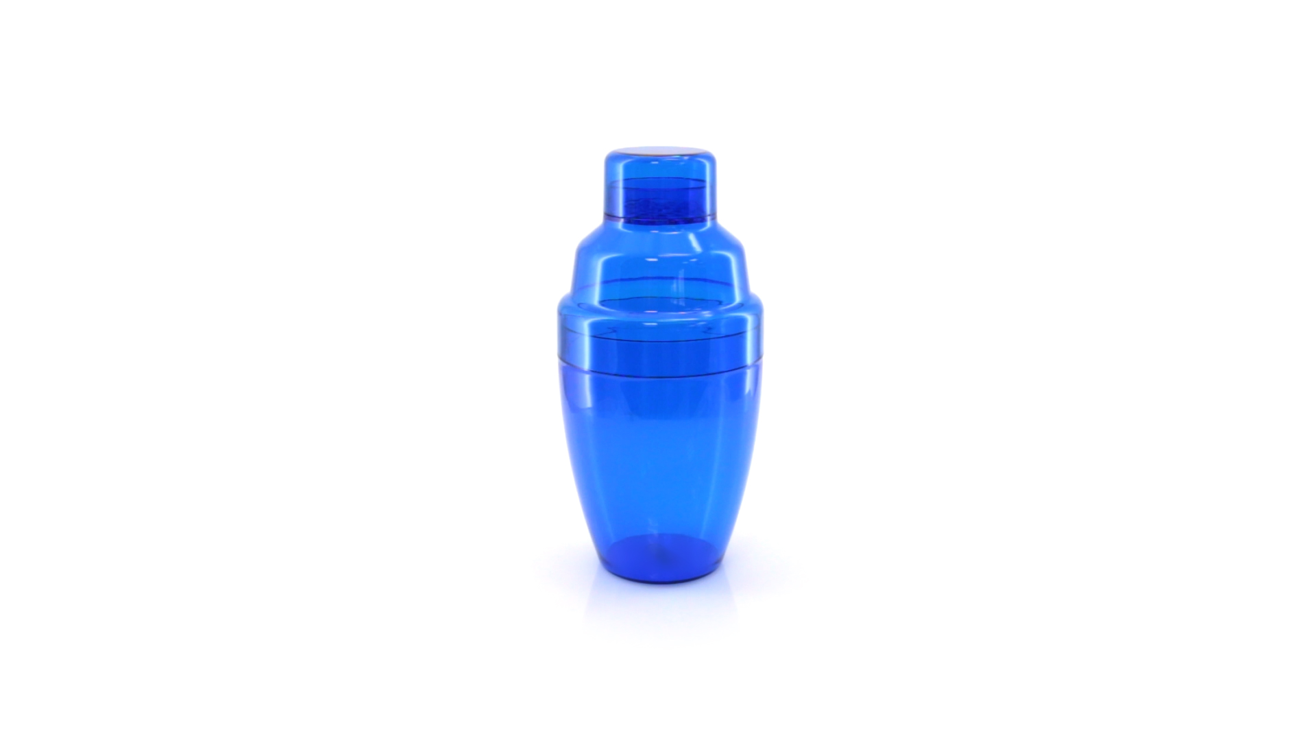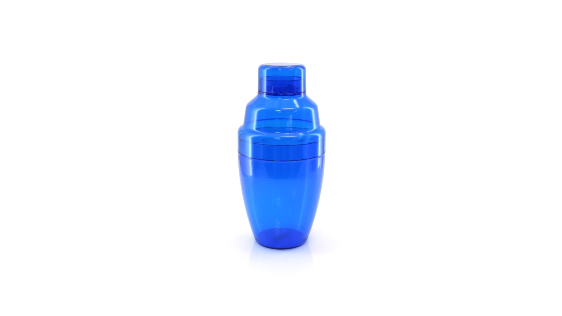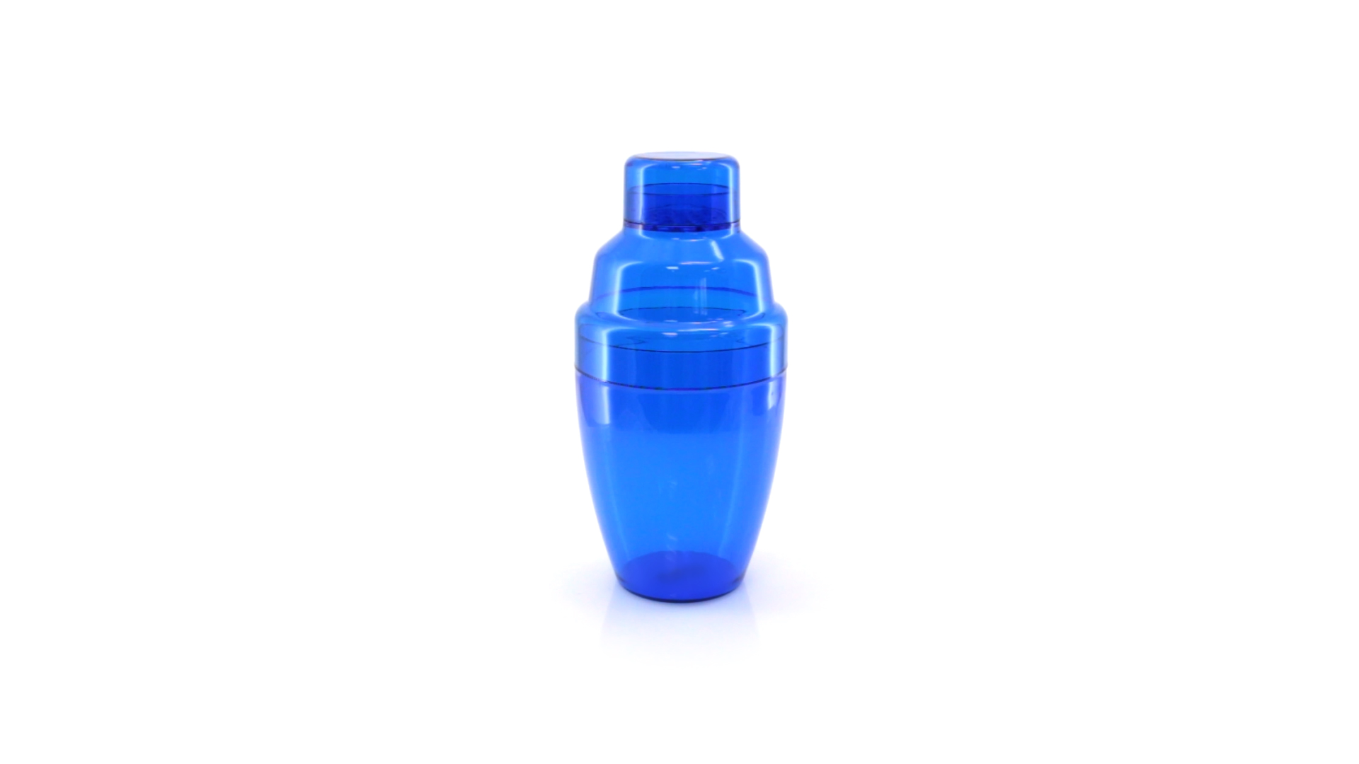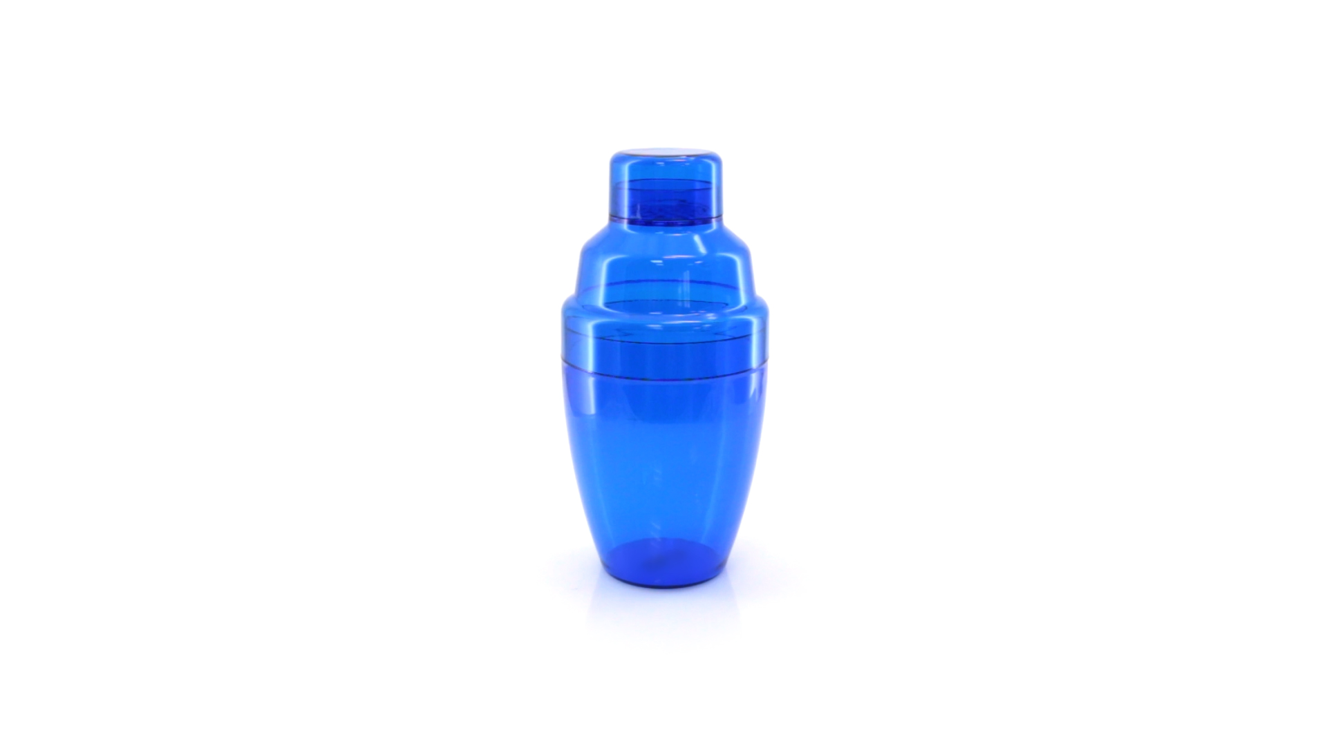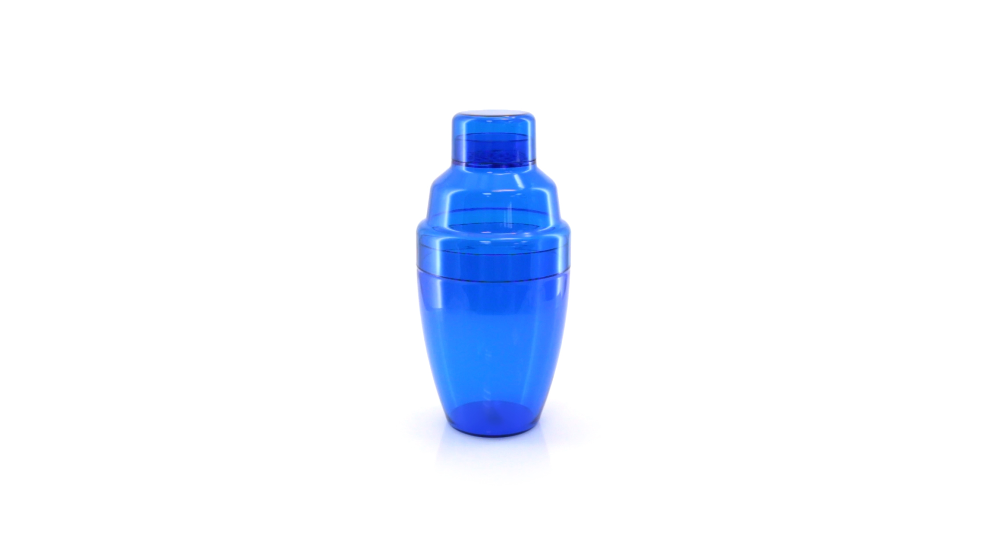 Cocktail Shaker mit 300 ml Fassungsvermögen aus transparentem PS-Kunststoff in kräftigen Farben. Mit Sicherheitsverschluss und Dosierkappe.