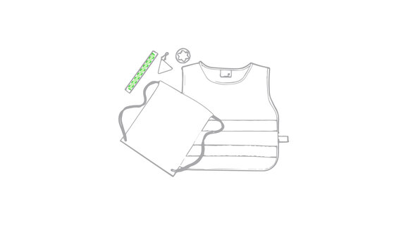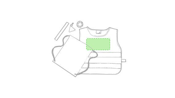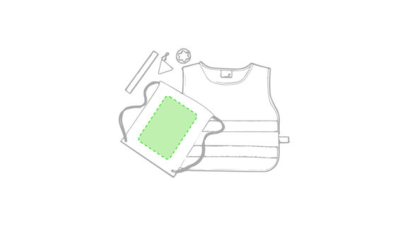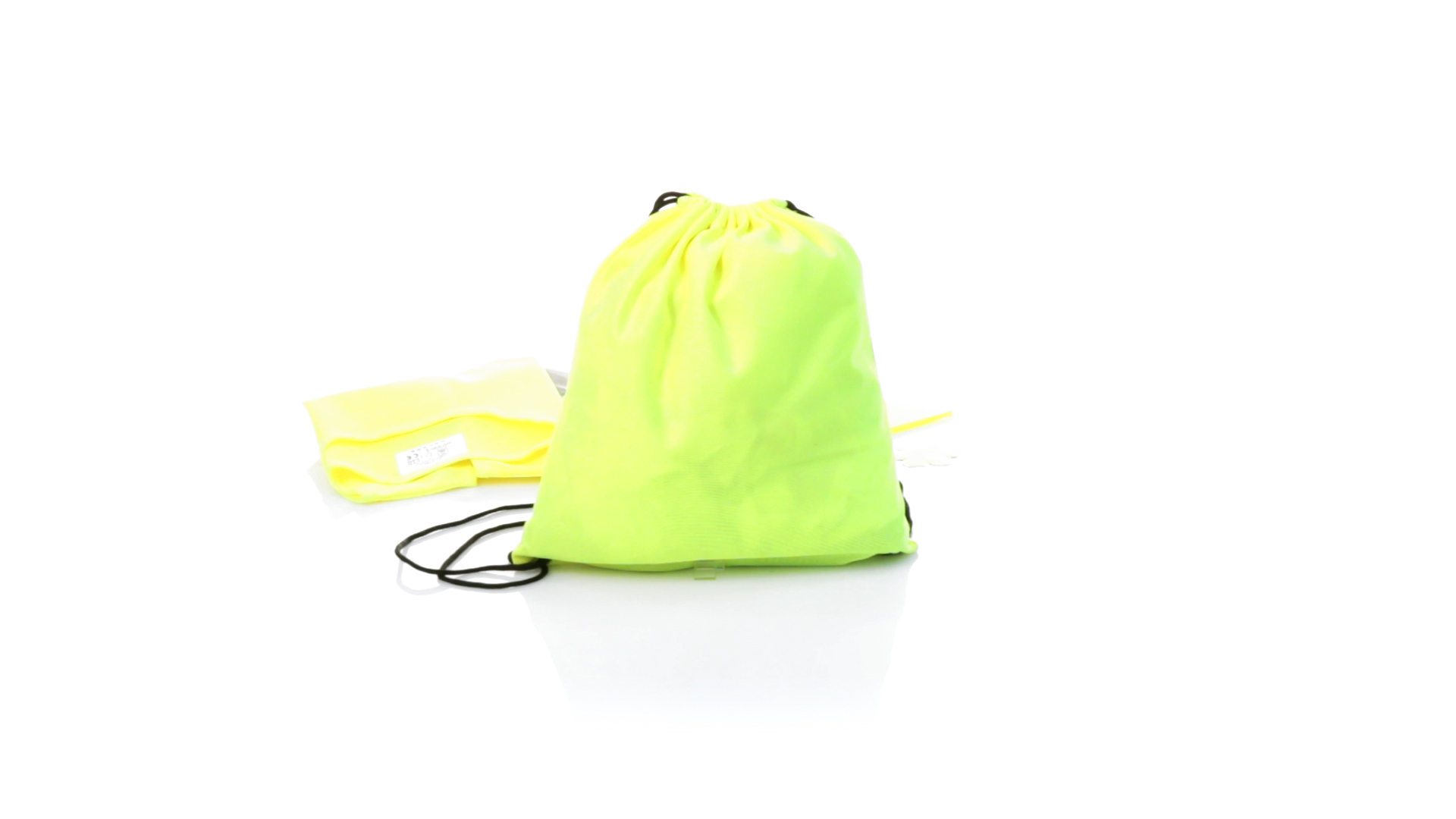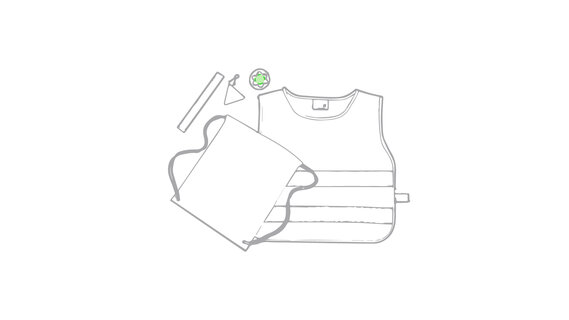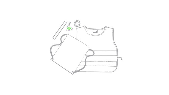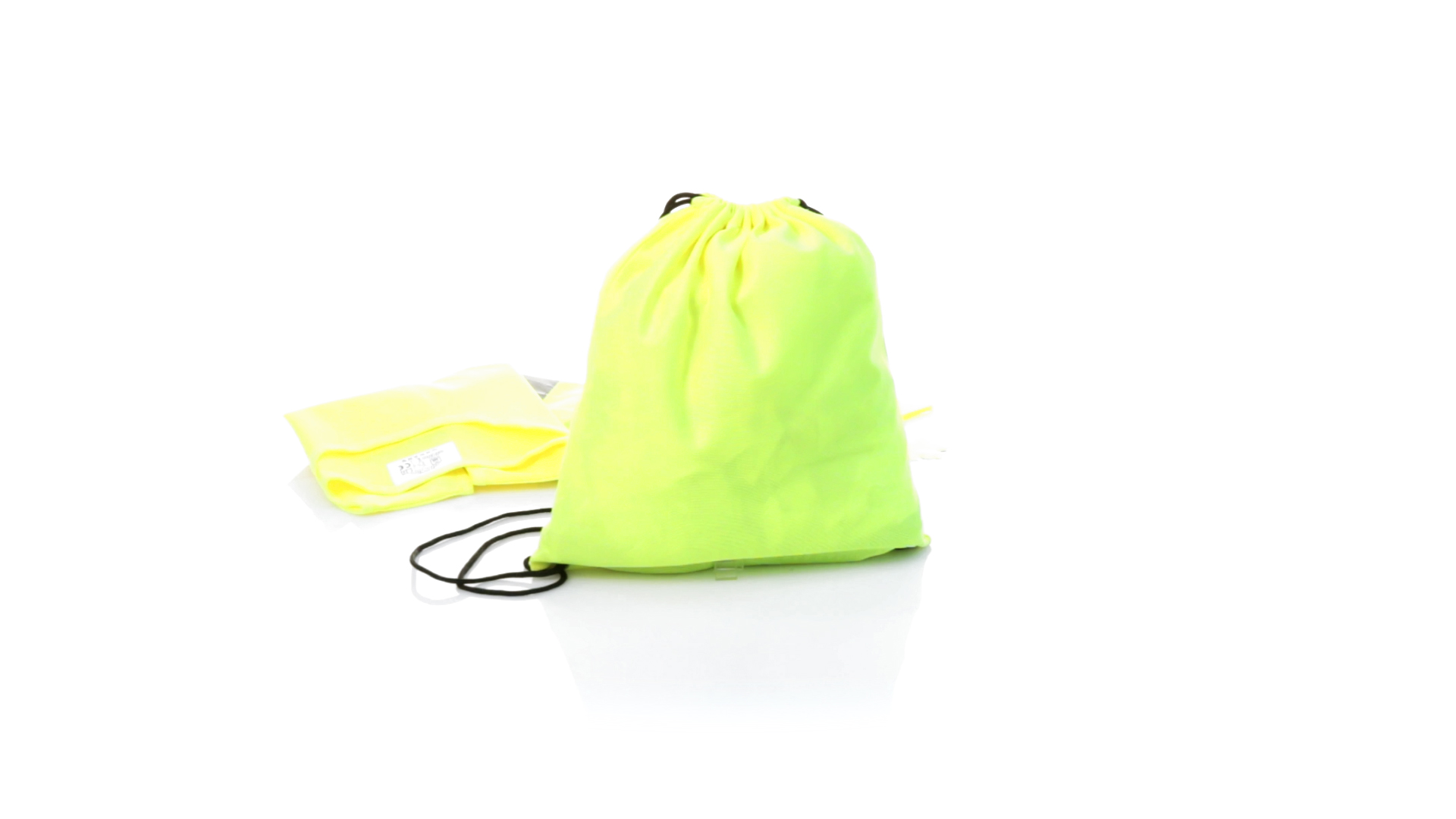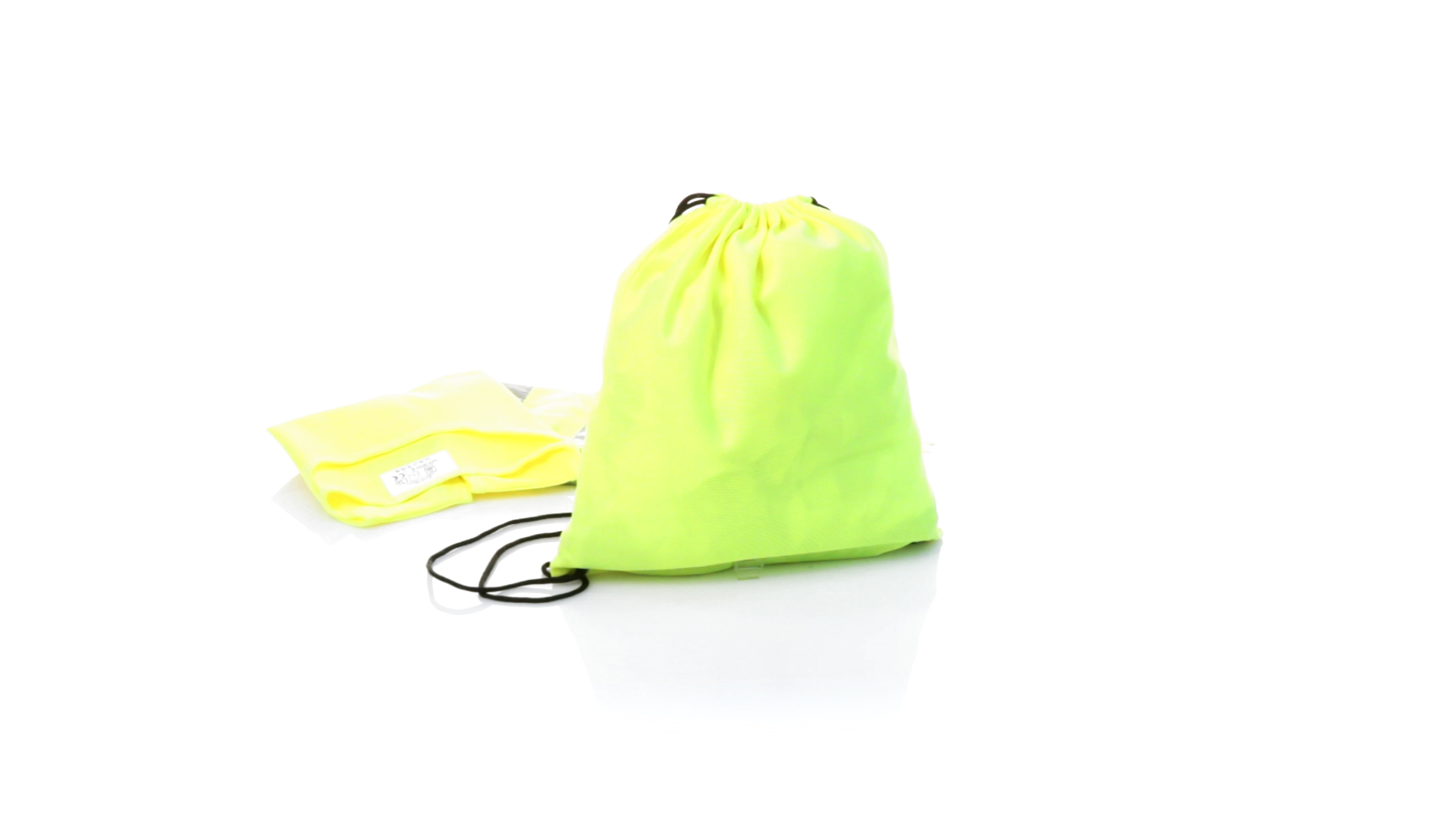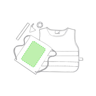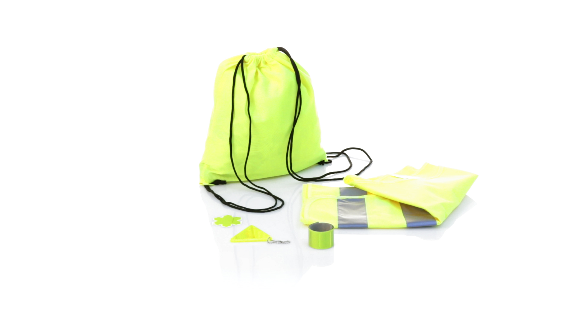Kinder-Sicherheitsset mit hoher Sichtbarkeit in hellem Gelb. Enthält reflektierende Weste, Rucksack mit Kordelzug mit den Massen 28 x 33 cm, reflektierenden PVC-Schlüsselanhänger, reflektierendes Schnapparmband und reflektierenden Aufkleber.