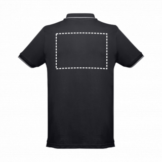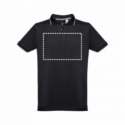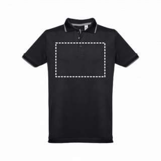 Herren Poloshirt aus Piqué Stoff 100% kardierter Baumwolle (210g/m²)," Slim Fit" mit geripptem Kragen und Ärmel. Der Kragen, die Knopfleiste und die Ärmel haben einen zweifarbigen Kontrast. Mit verstärkter Knopfleiste und 3 farblich abgestimmten Knöpfen, einem Ersatzknopf an der Innennaht und seitlichen Öffnungen. Bei der Farbe 183 bestehend aus 85% Baumwolle und 15% Viskose. Grössen: S, M, L, XL, XXL