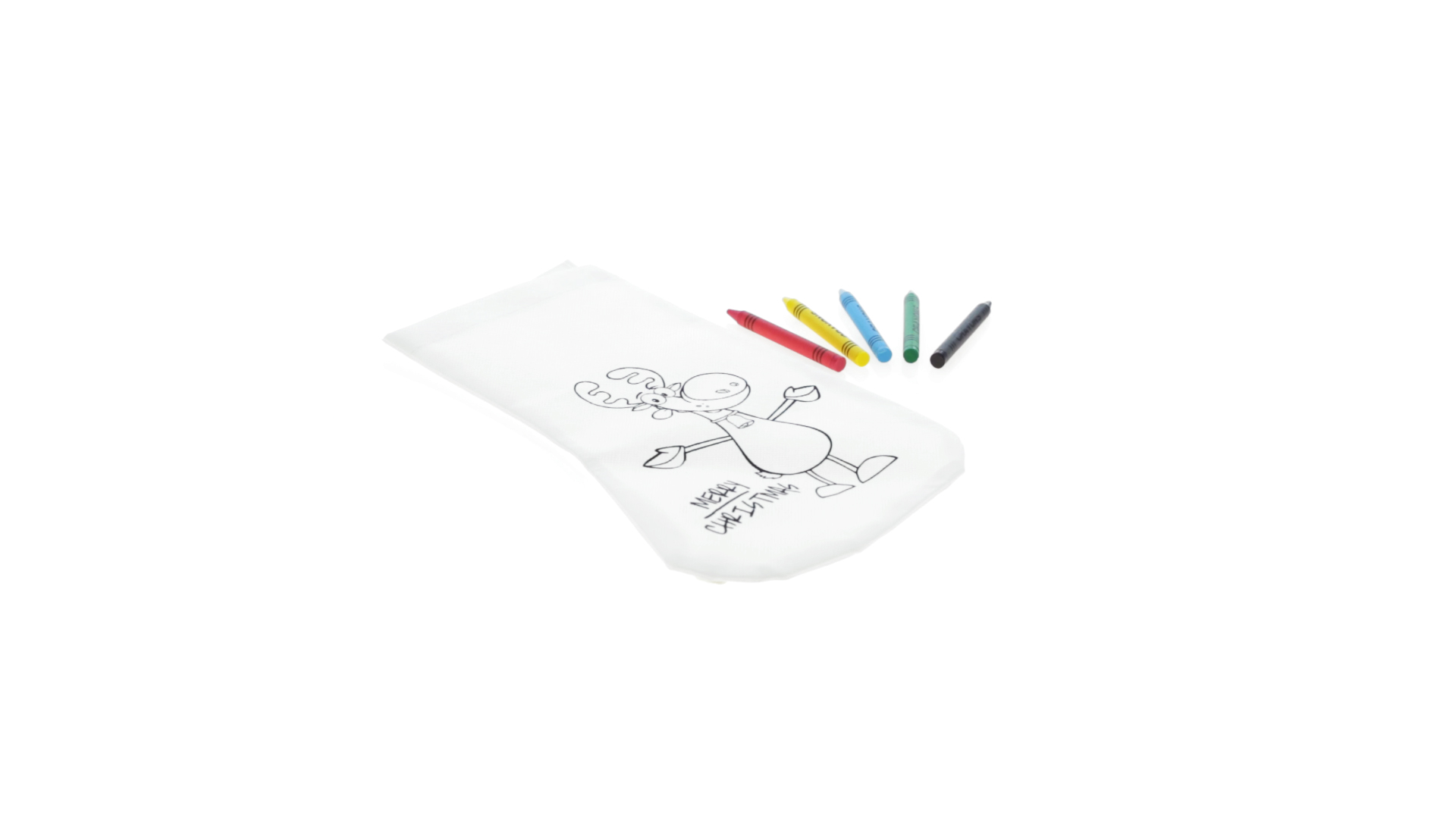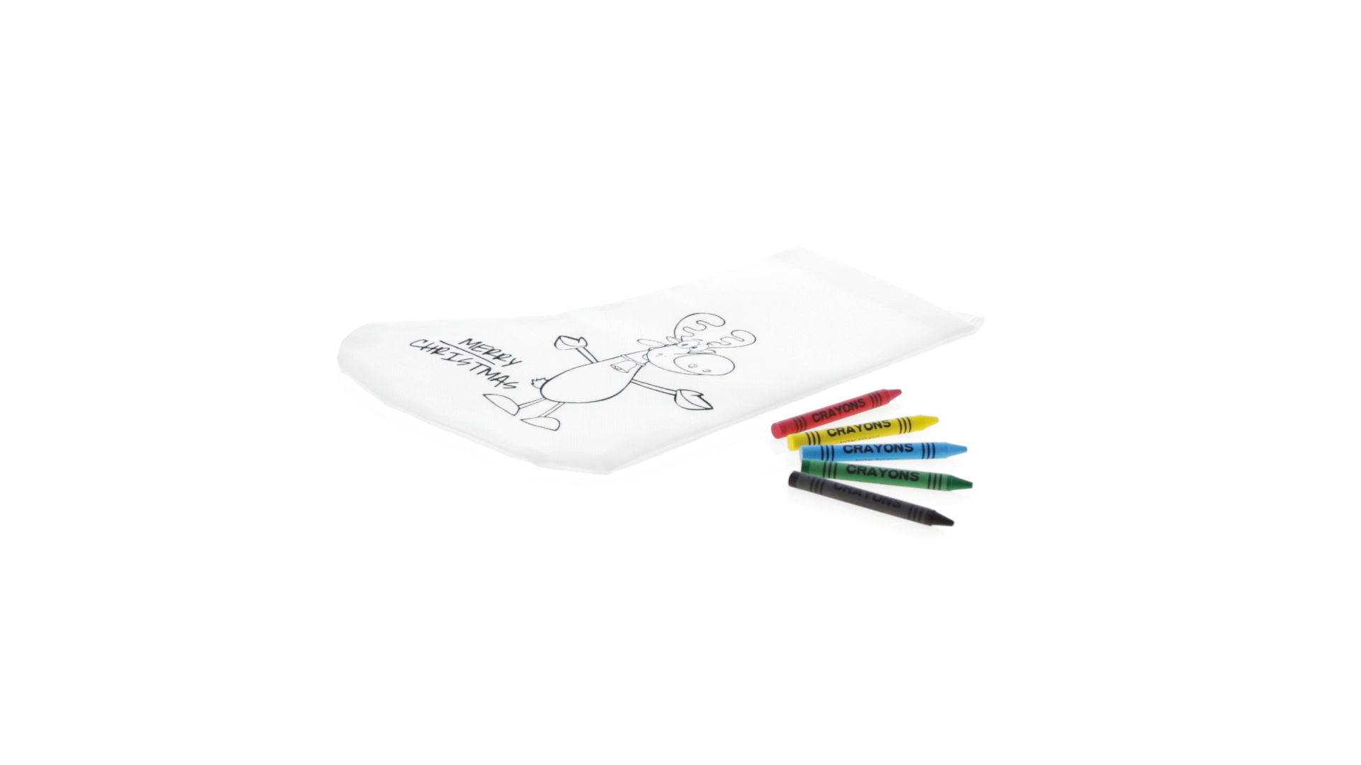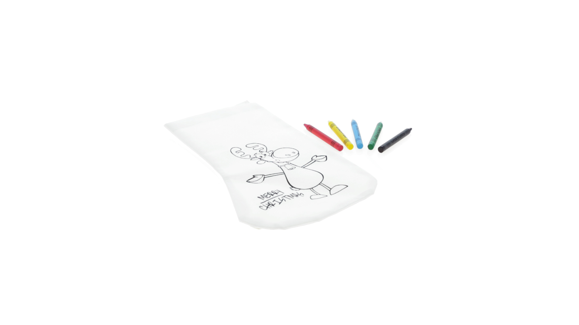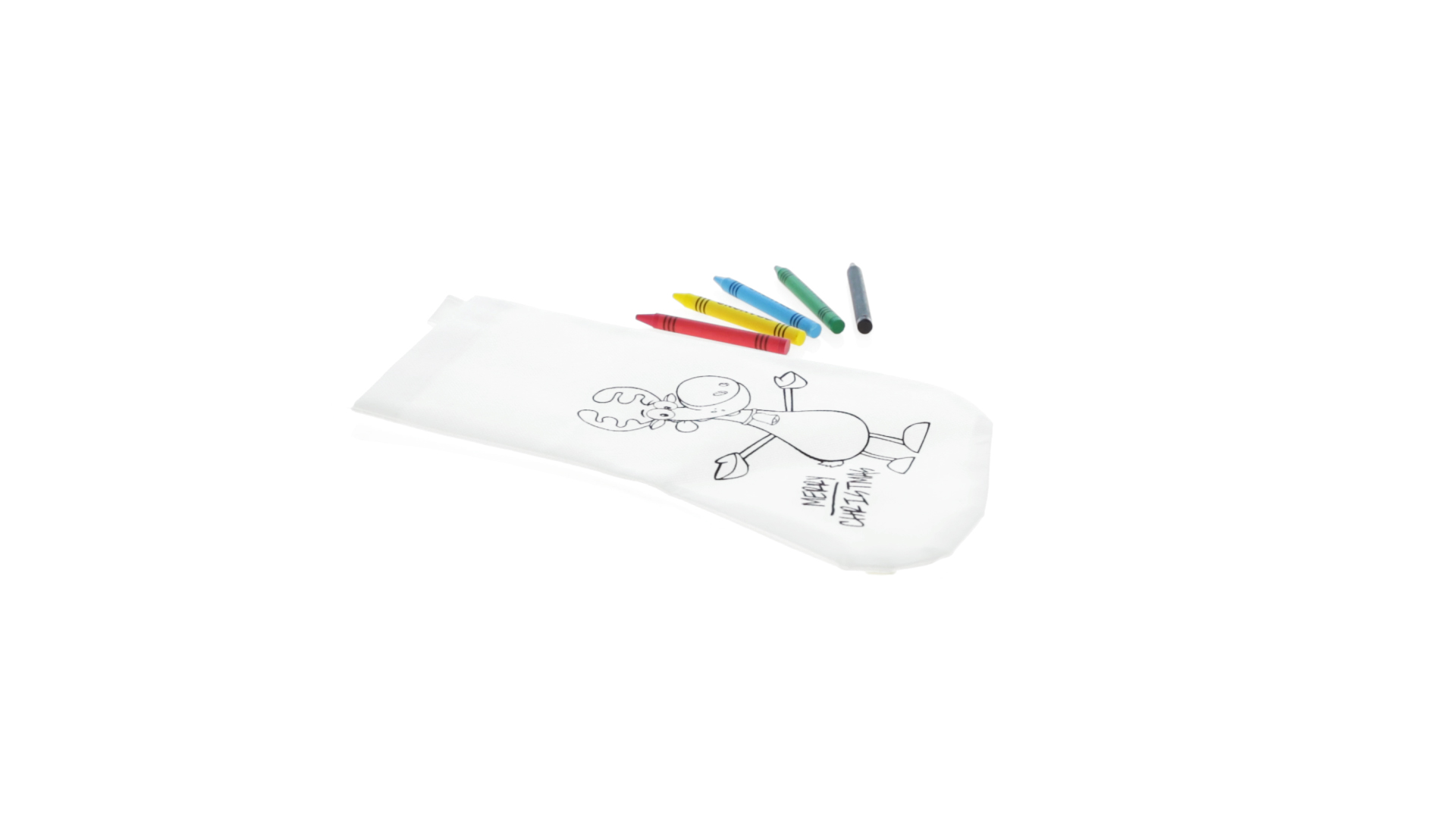 Non-Woven-Weihnachtssocke aus Faservlies in Weiss. Speziell entwickelt für das Bemalen mit Wachsmalstiften. Enthält 5 zylinderförmige Wachsmalstifte in verschiedenen Farben. Mit Schlaufe zum Aufhängen und hitzeversiegelter Oberfläche.