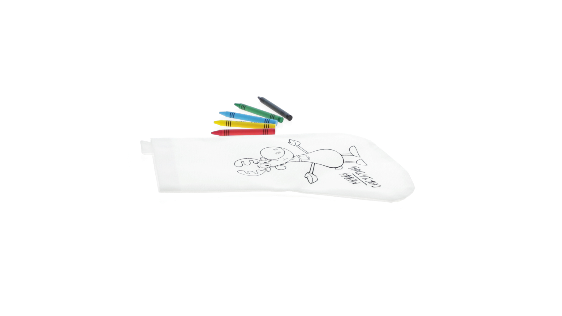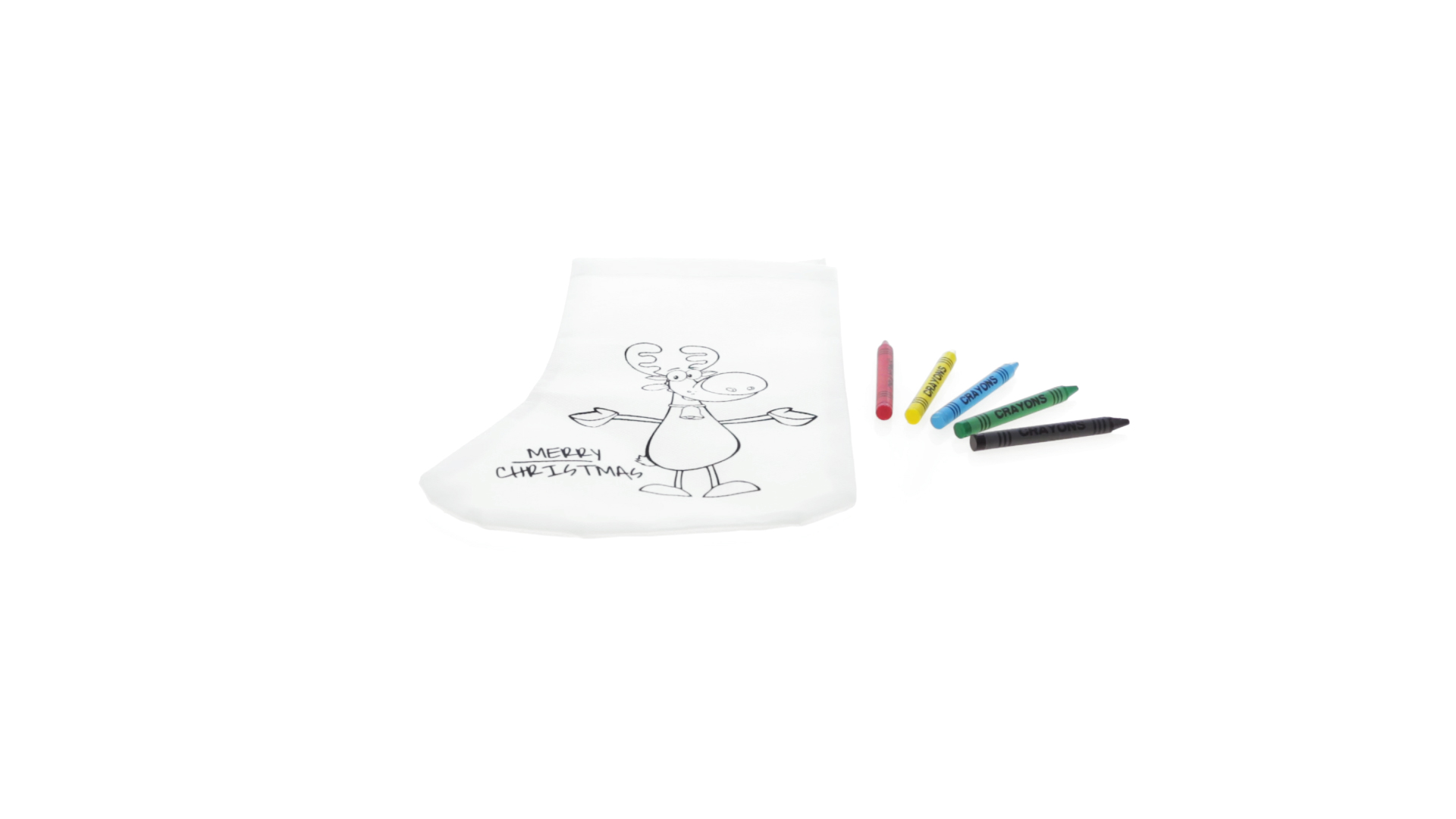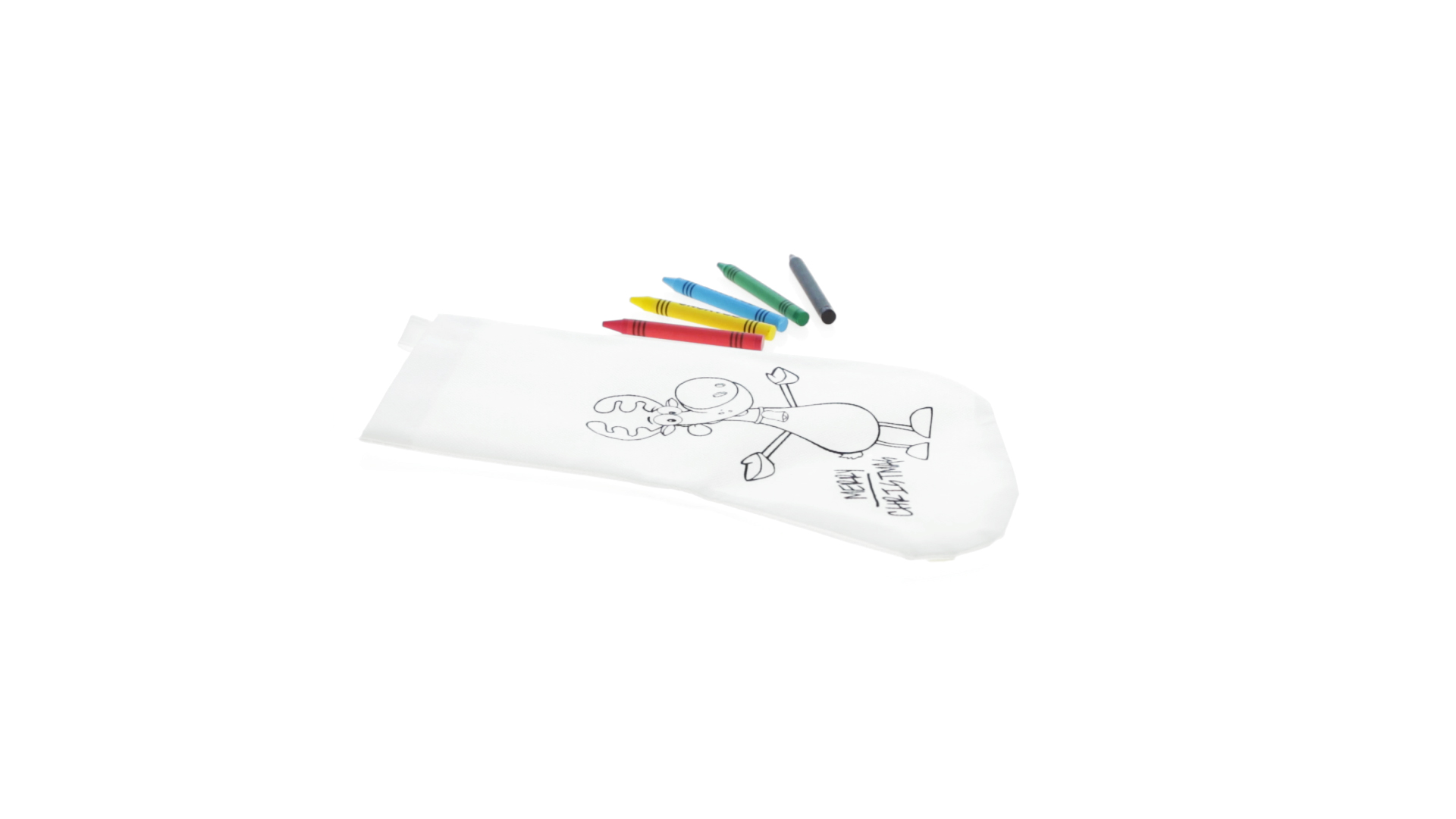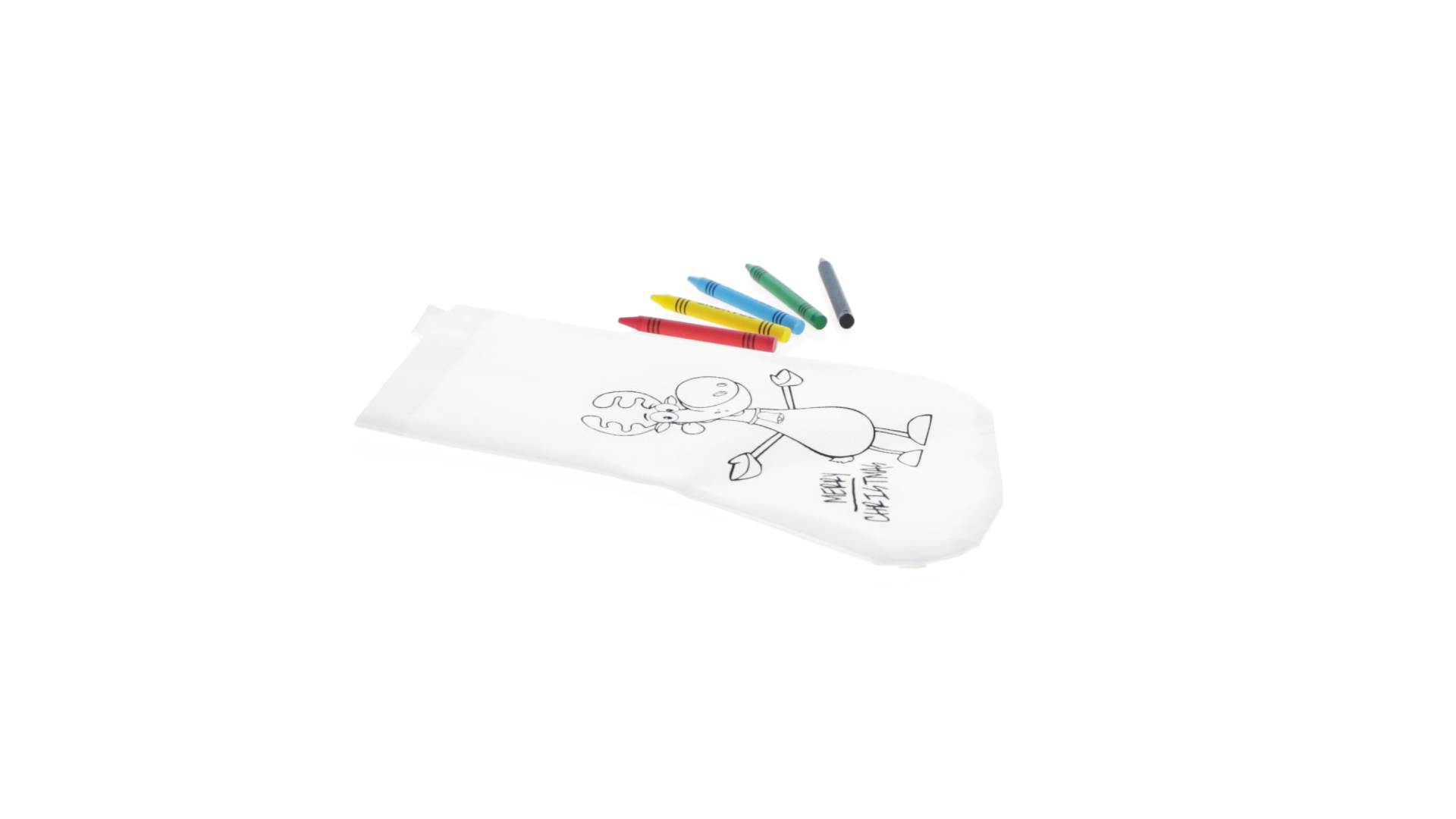 Non-Woven-Weihnachtssocke aus Faservlies in Weiss. Speziell entwickelt für das Bemalen mit Wachsmalstiften. Enthält 5 zylinderförmige Wachsmalstifte in verschiedenen Farben. Mit Schlaufe zum Aufhängen und hitzeversiegelter Oberfläche.