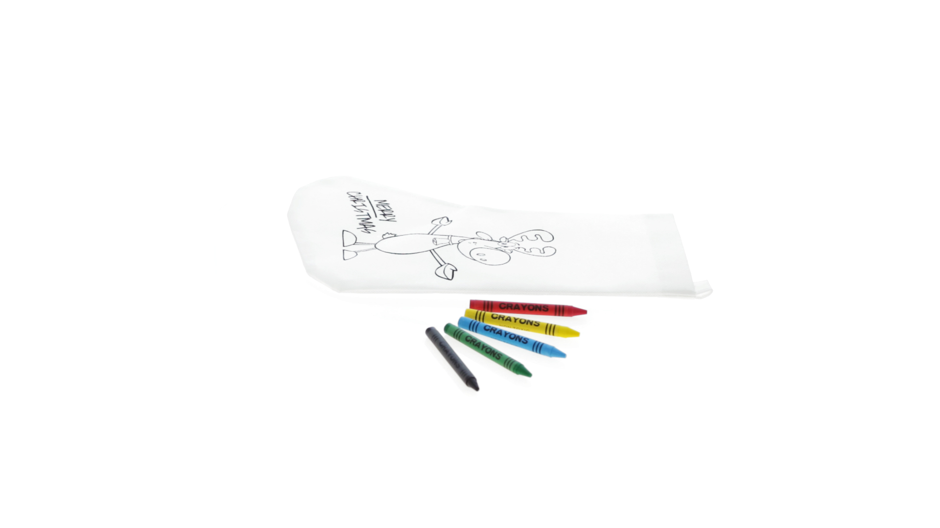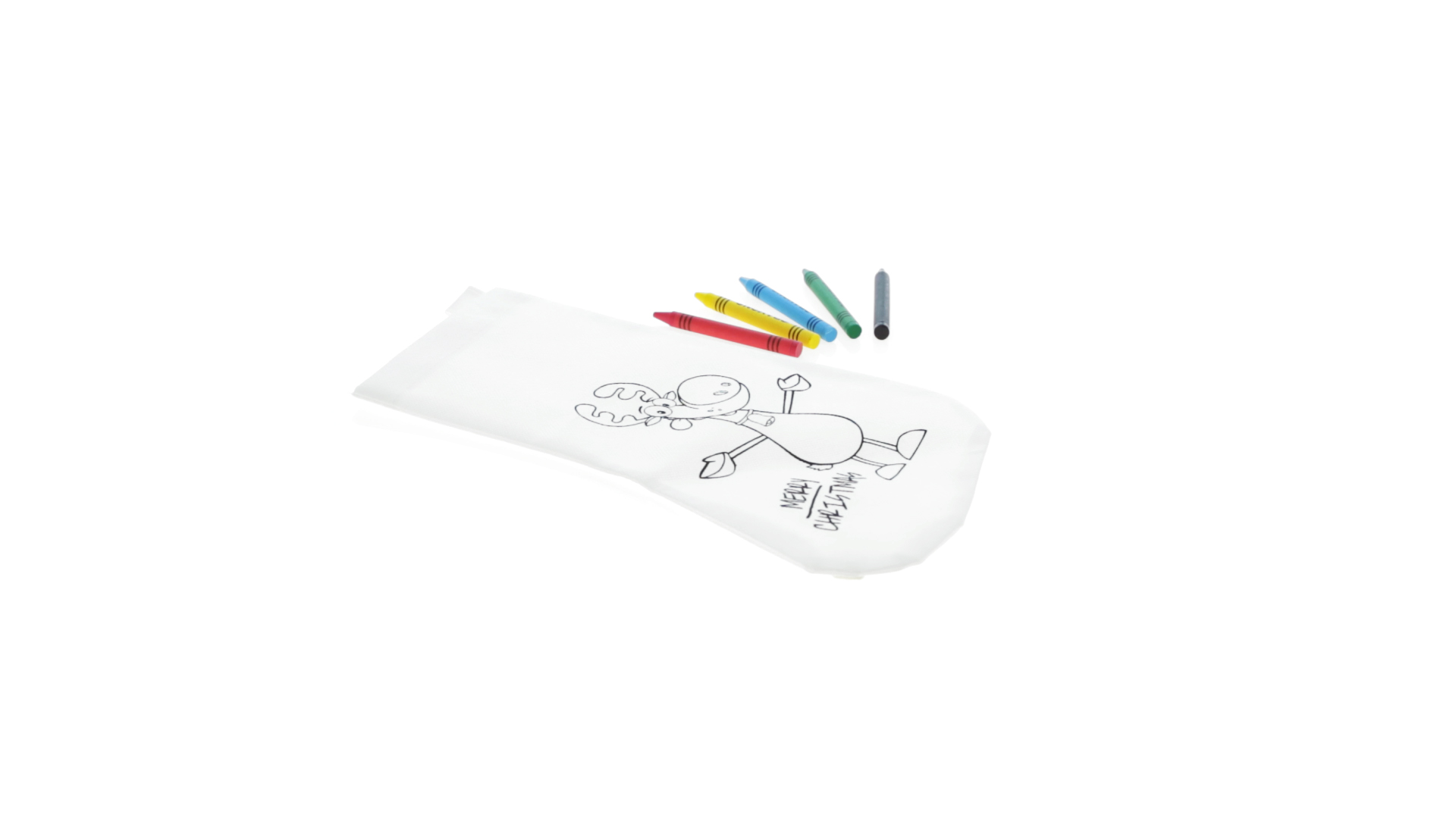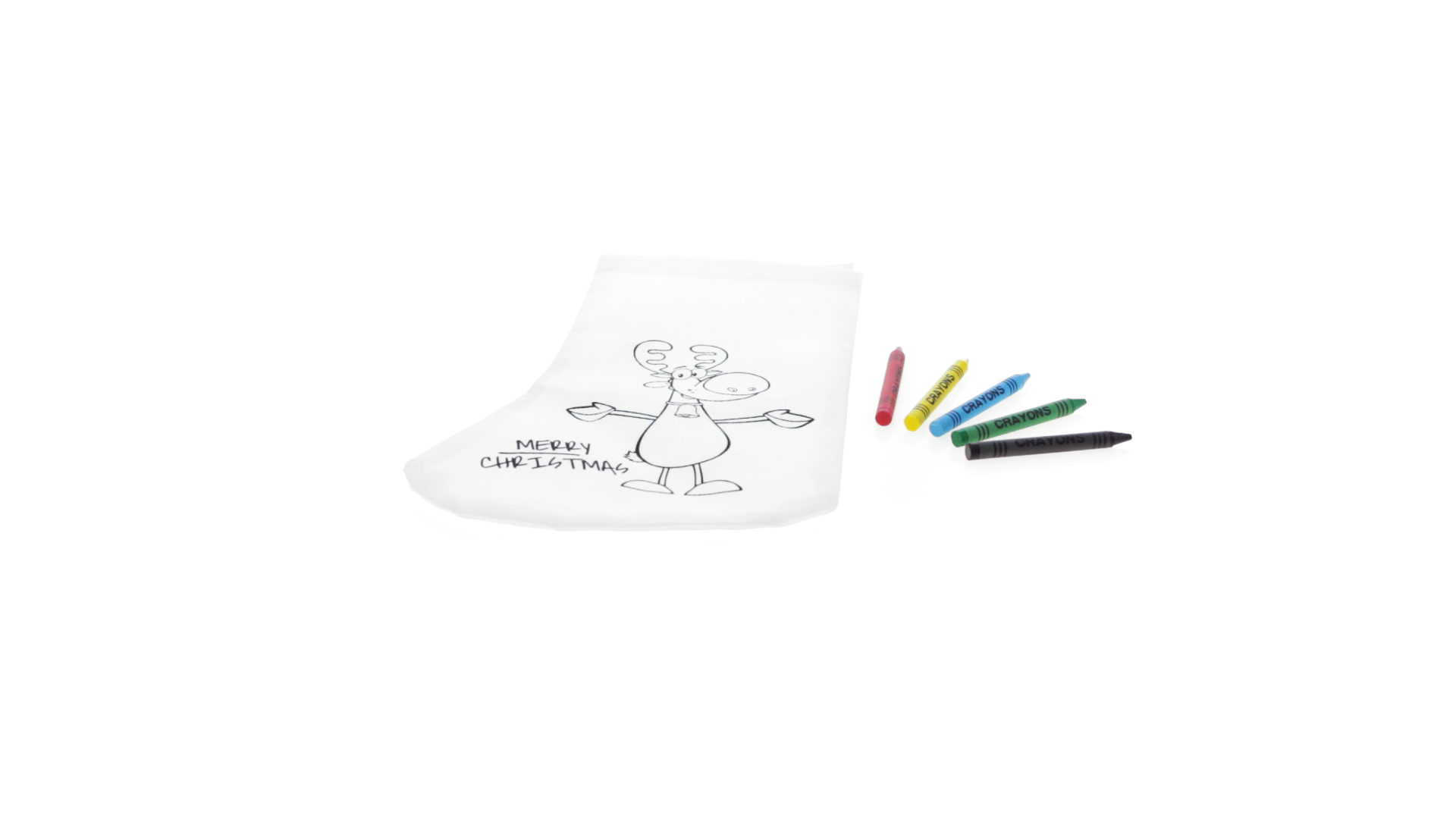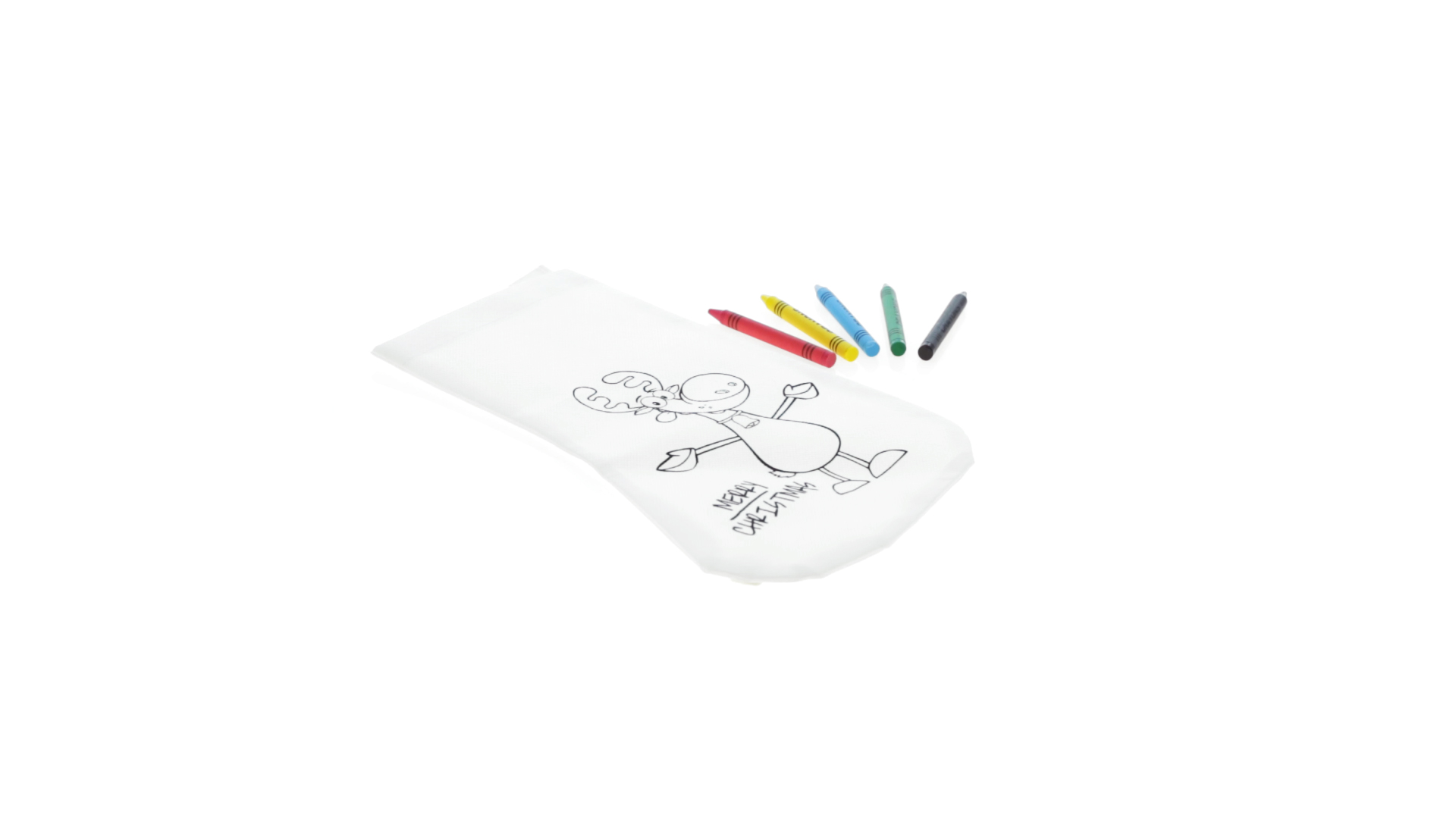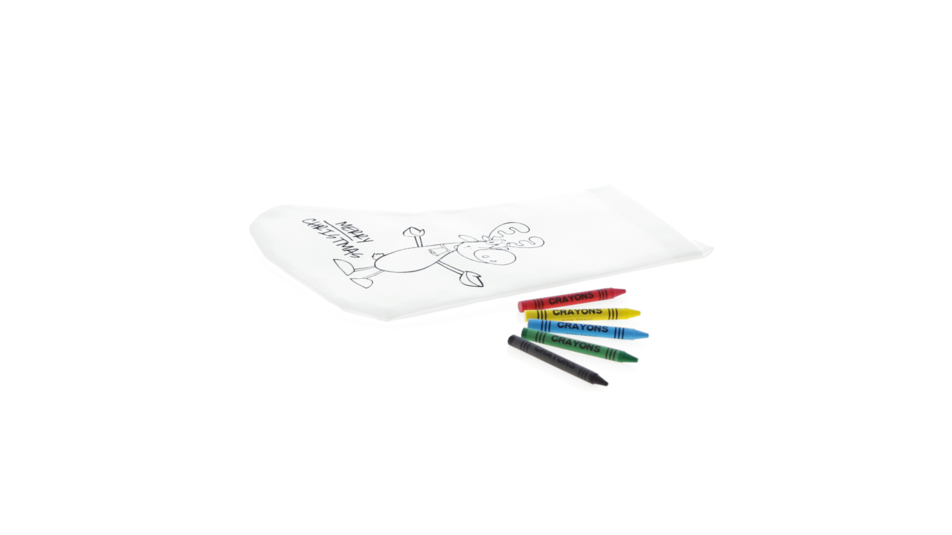 Non-Woven-Weihnachtssocke aus Faservlies in Weiss. Speziell entwickelt für das Bemalen mit Wachsmalstiften. Enthält 5 zylinderförmige Wachsmalstifte in verschiedenen Farben. Mit Schlaufe zum Aufhängen und hitzeversiegelter Oberfläche.