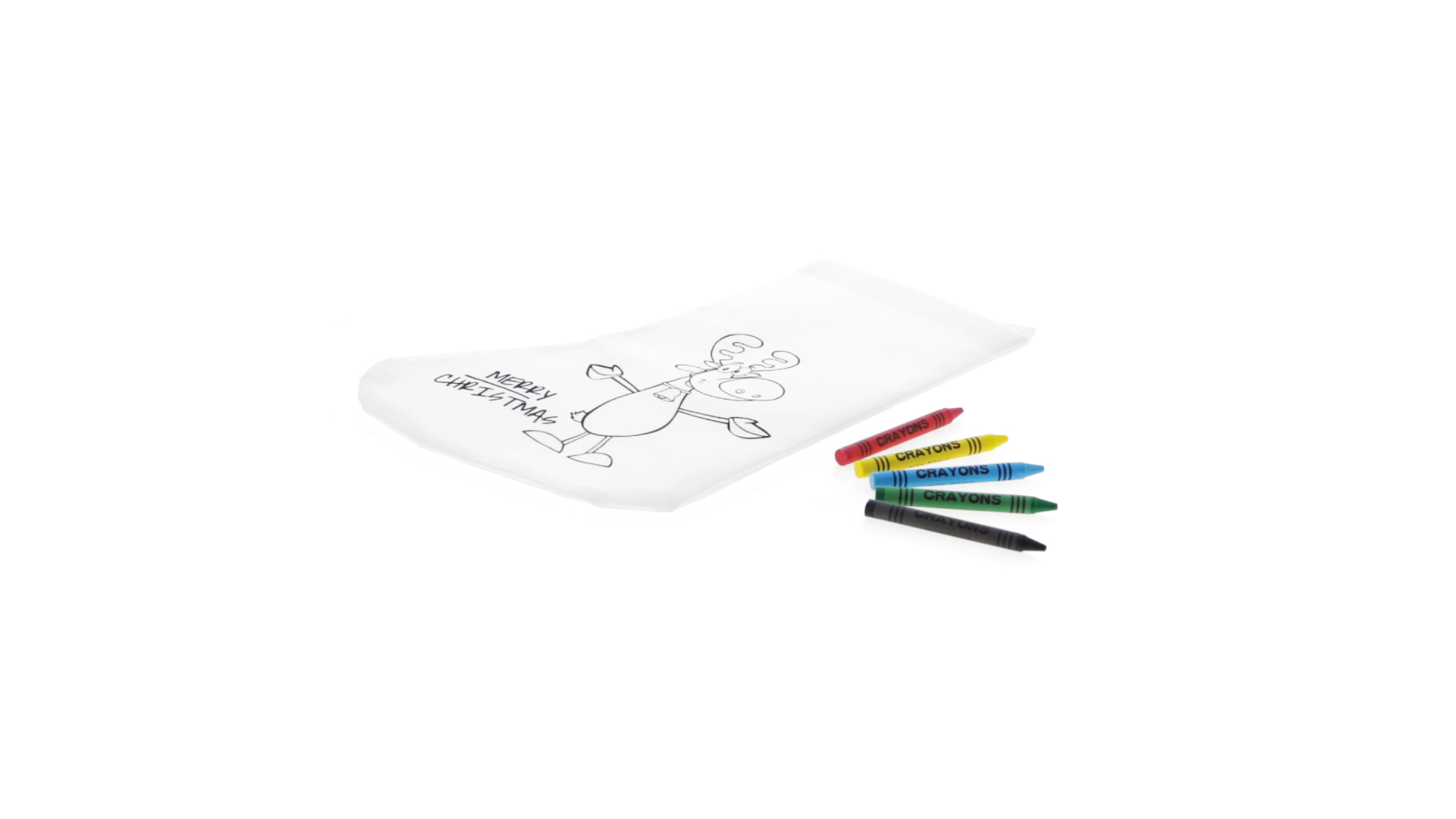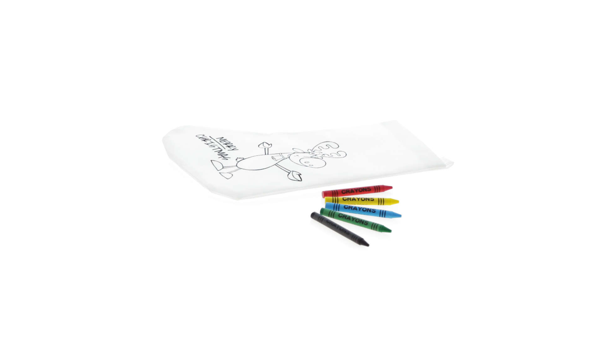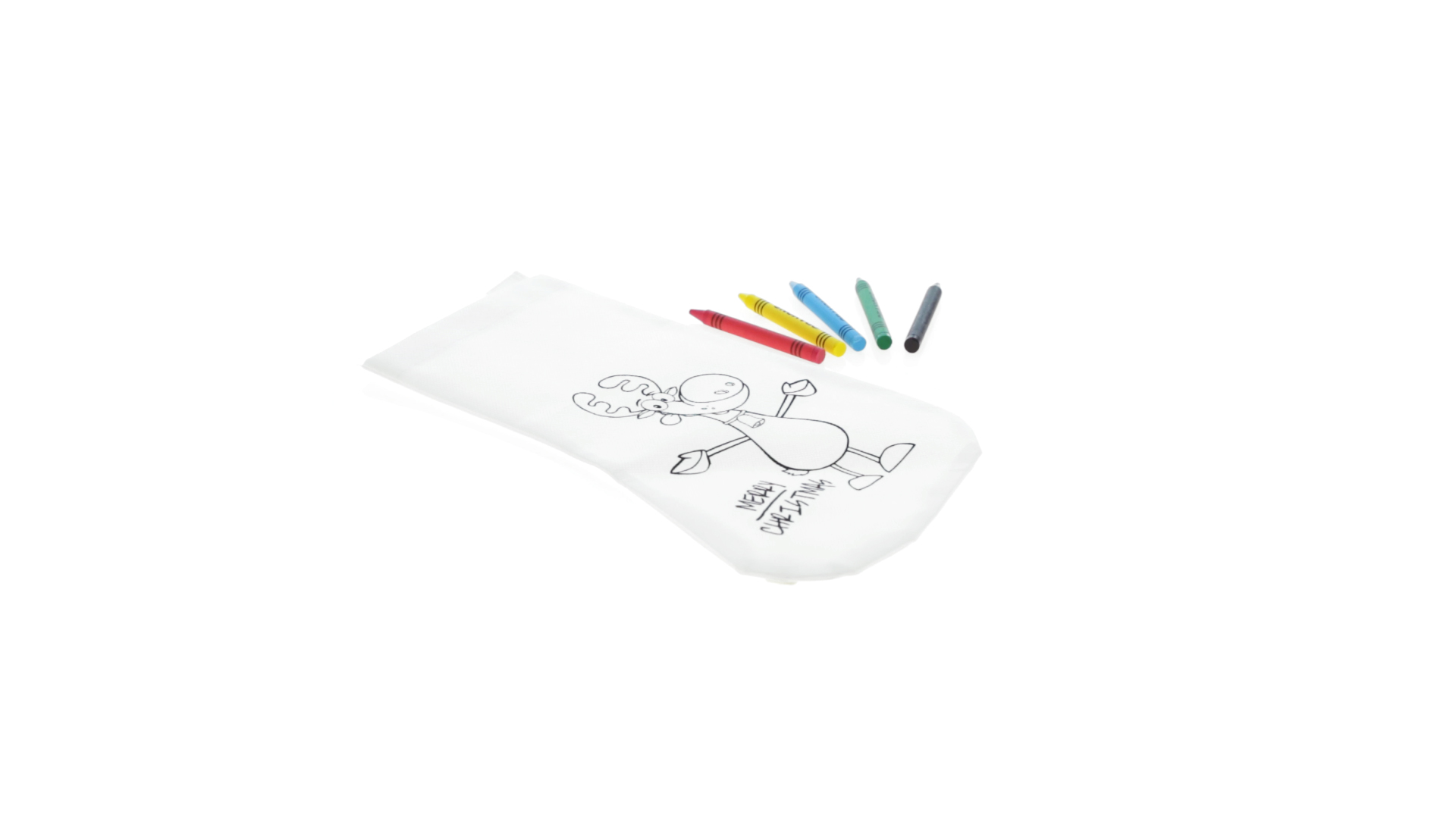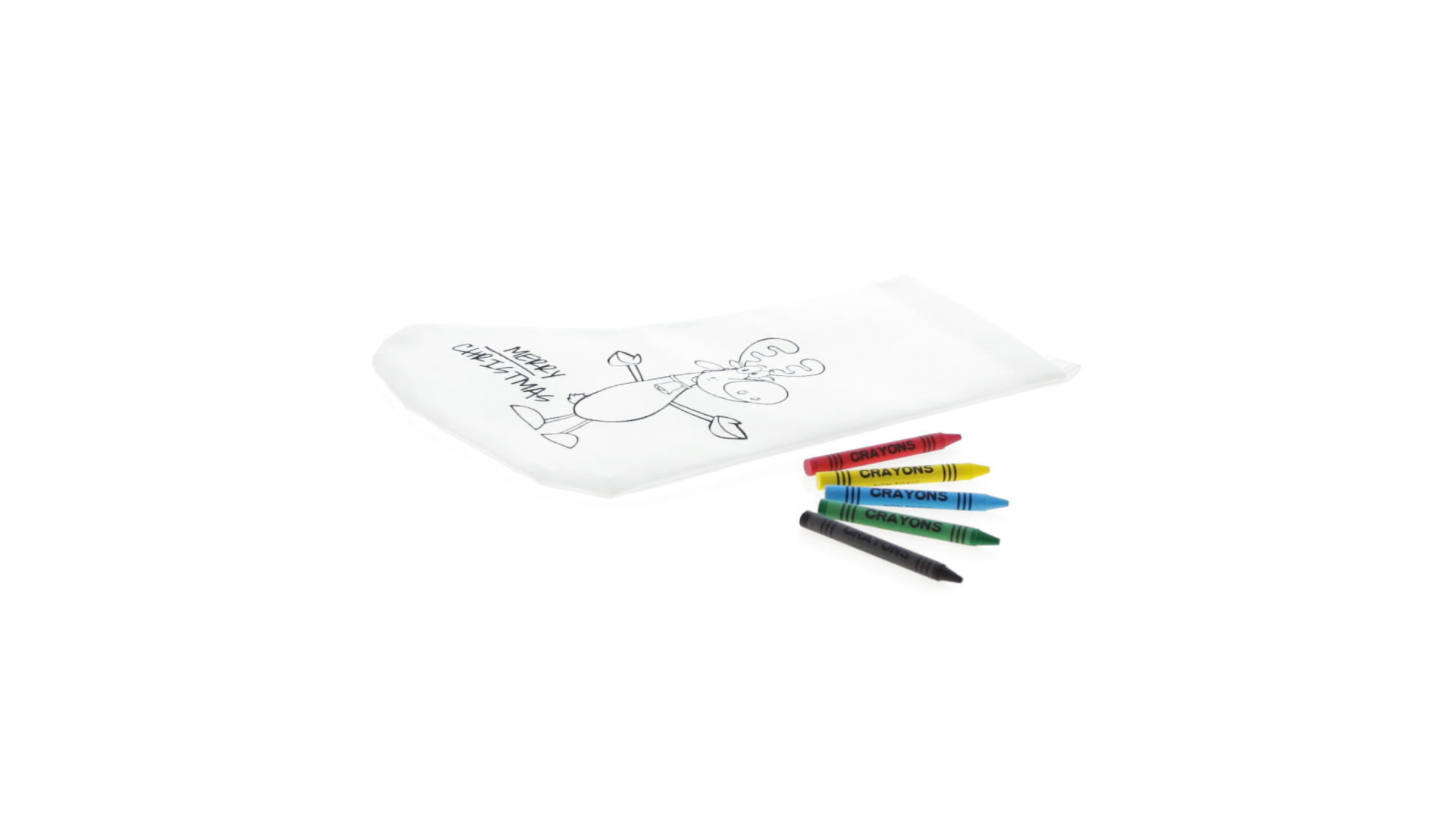 Non-Woven-Weihnachtssocke aus Faservlies in Weiss. Speziell entwickelt für das Bemalen mit Wachsmalstiften. Enthält 5 zylinderförmige Wachsmalstifte in verschiedenen Farben. Mit Schlaufe zum Aufhängen und hitzeversiegelter Oberfläche.