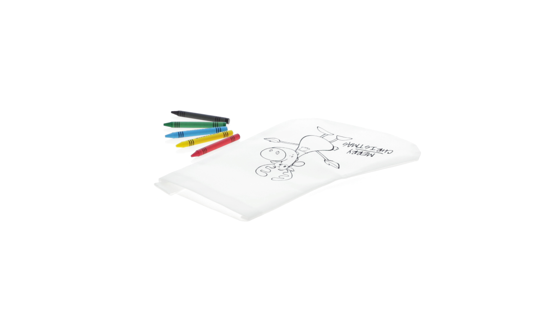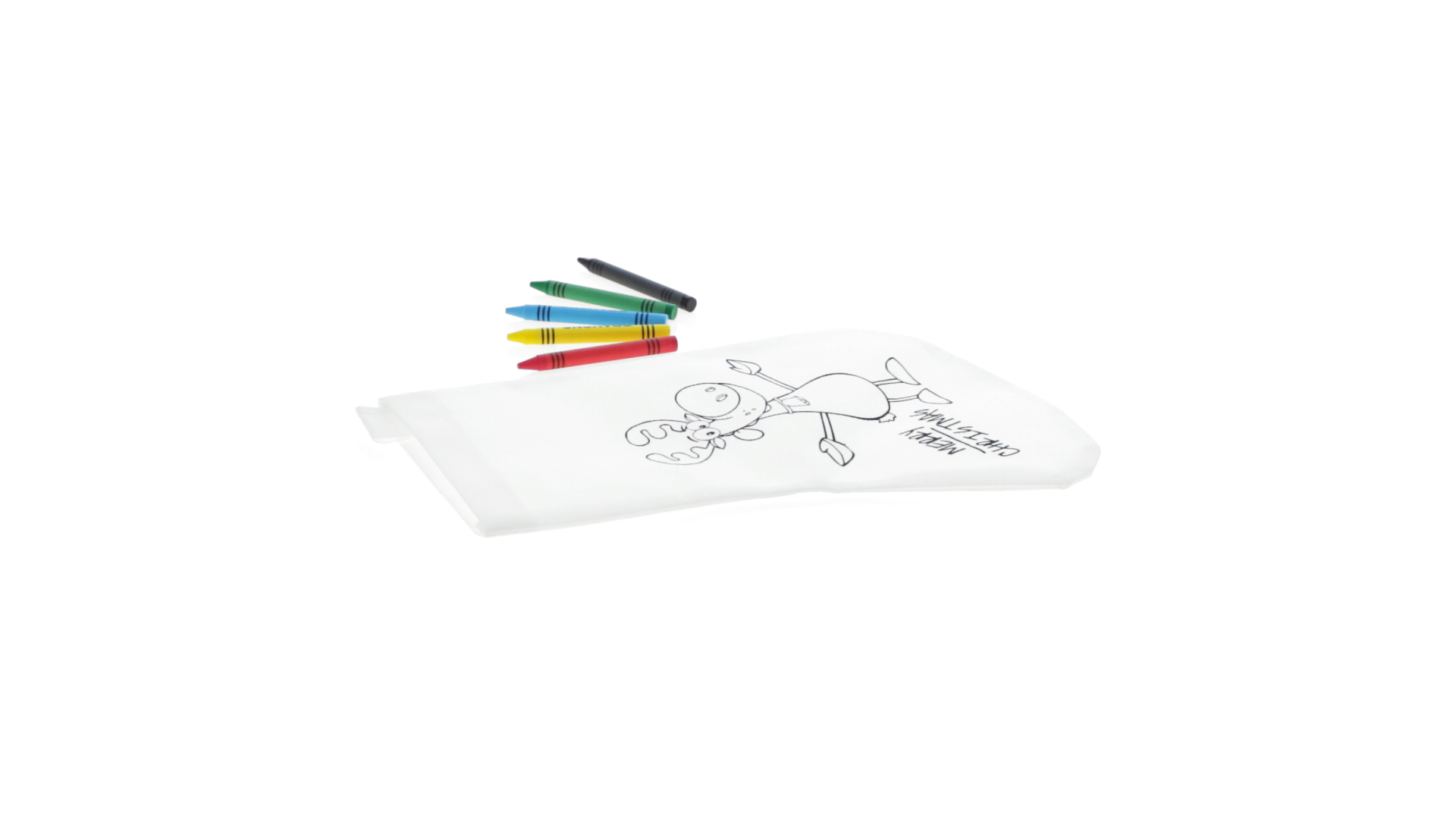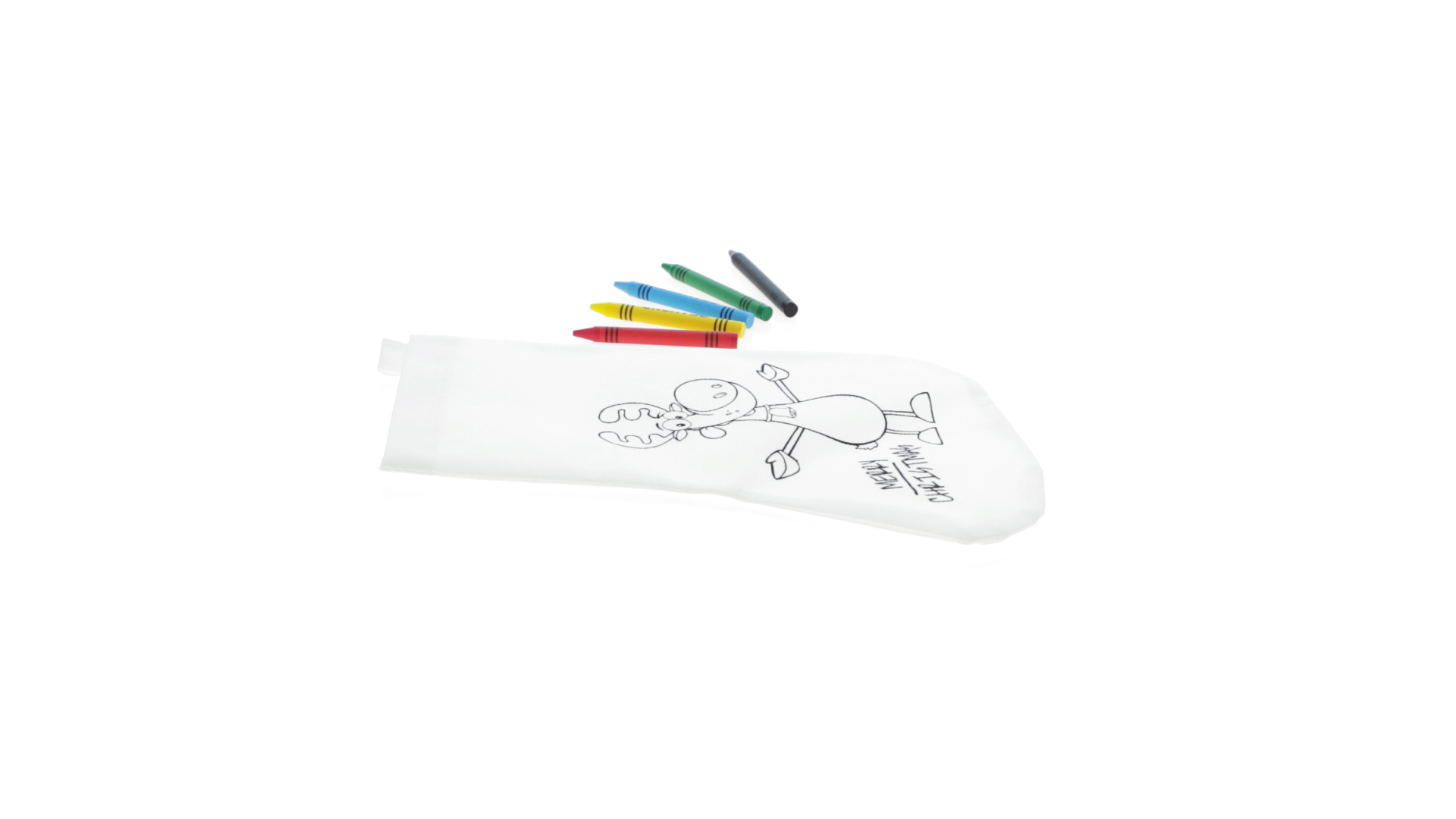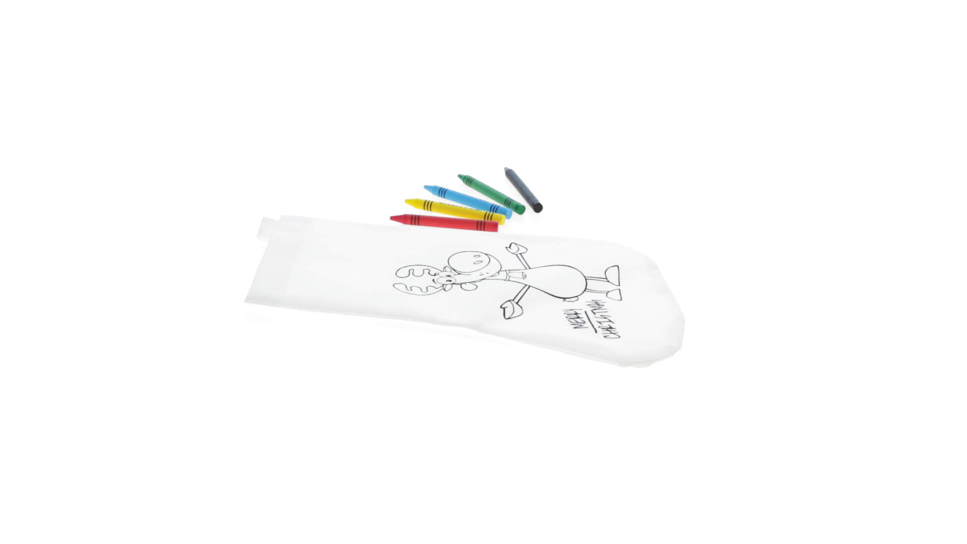 Non-Woven-Weihnachtssocke aus Faservlies in Weiss. Speziell entwickelt für das Bemalen mit Wachsmalstiften. Enthält 5 zylinderförmige Wachsmalstifte in verschiedenen Farben. Mit Schlaufe zum Aufhängen und hitzeversiegelter Oberfläche.