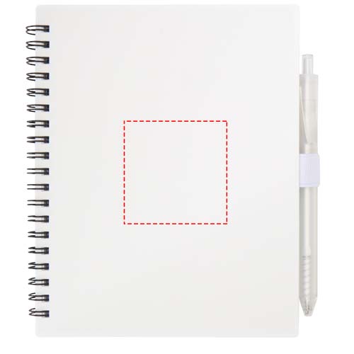 Softcover Notizbuch aus recyceltem Kunststoff mit Kugelschreiber (blaue Mine) - Merin