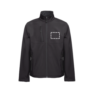 Softshell Jacke unisex aus 96% Polyester und 4% Elastan (280 g/m²), zweischichtig und wasserabweisende Oberfläche. Jacke ist mit Polarmaterial gefüttert, hat zwei Vordertaschen und eine diagonale Brusttasche. Alle Taschen sind mit Reissverschluss ausgestattet und haben einen Gummischieber. Bund anpassbar durch Klettverschluss. Elastischer Kordelzug am Unterteil. Grössen: XS, S, M, L, XL, XXL