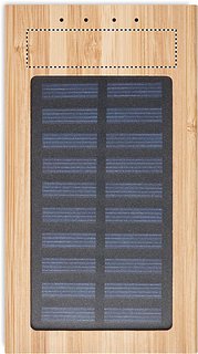 Powerbank 4000 mAh aus Bambus mit Solarzellen. Geeignet für den Betrieb von Smartphones. 2 USB-Ausgänge DC5V/1A. Inkl. Anzeigeleuchte und USB-Kabel mit Mikro-USB-Stecker. Bambus ist ein natürliches Produkt, es kann daher zu leichten Abweichungen in Farbe, Dekor und Massen kommen.