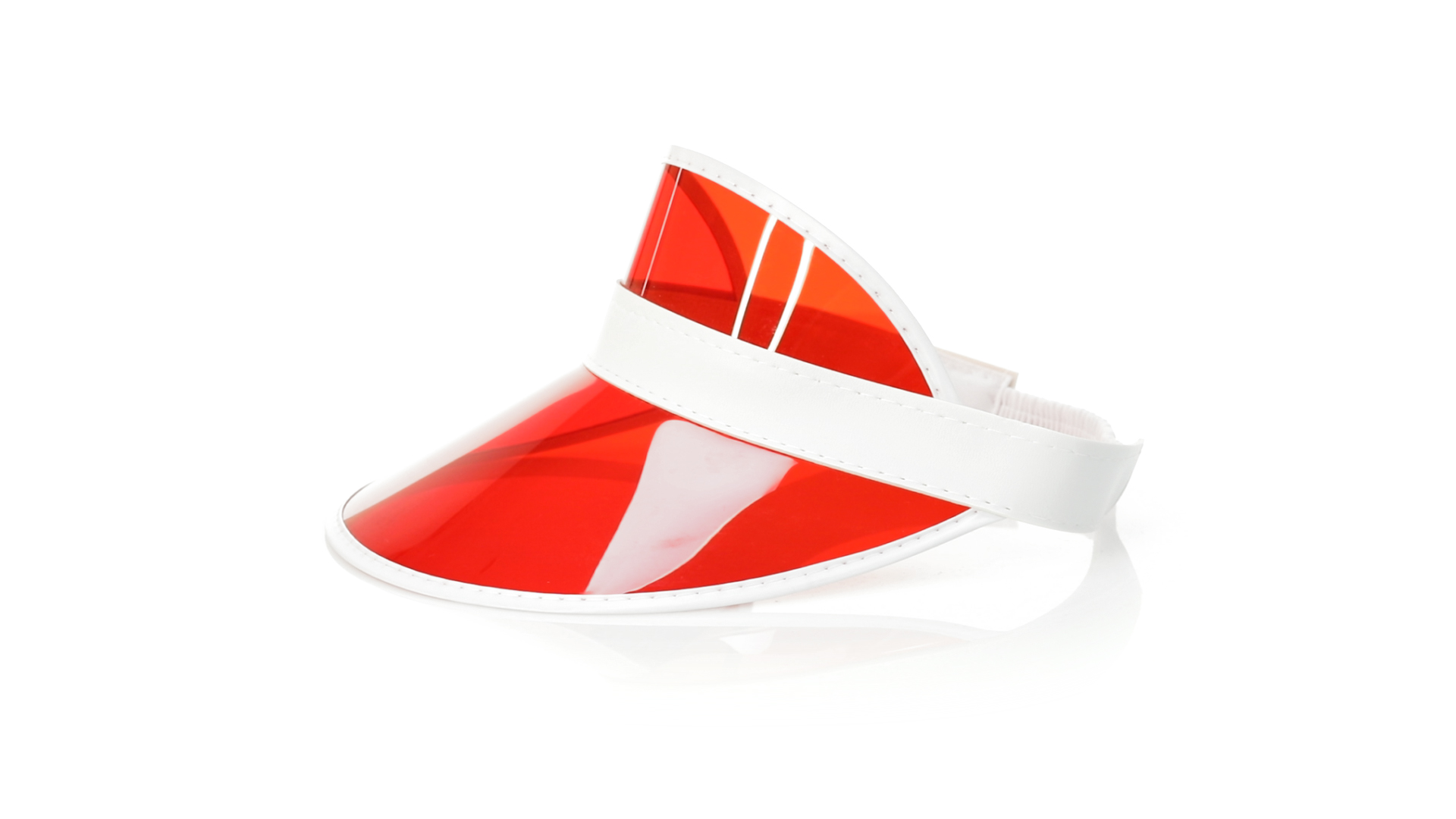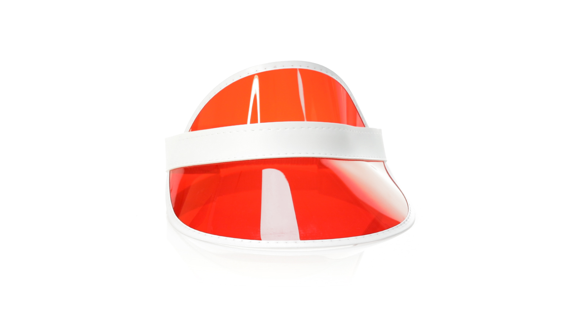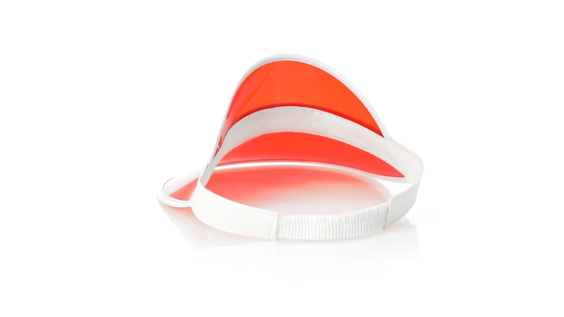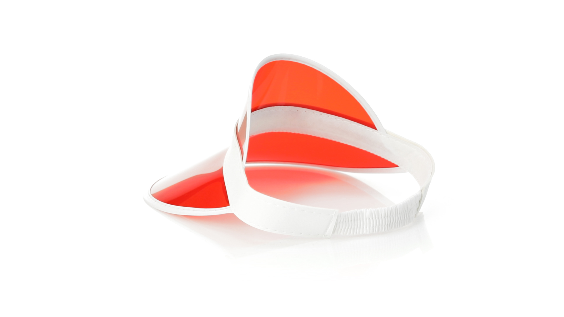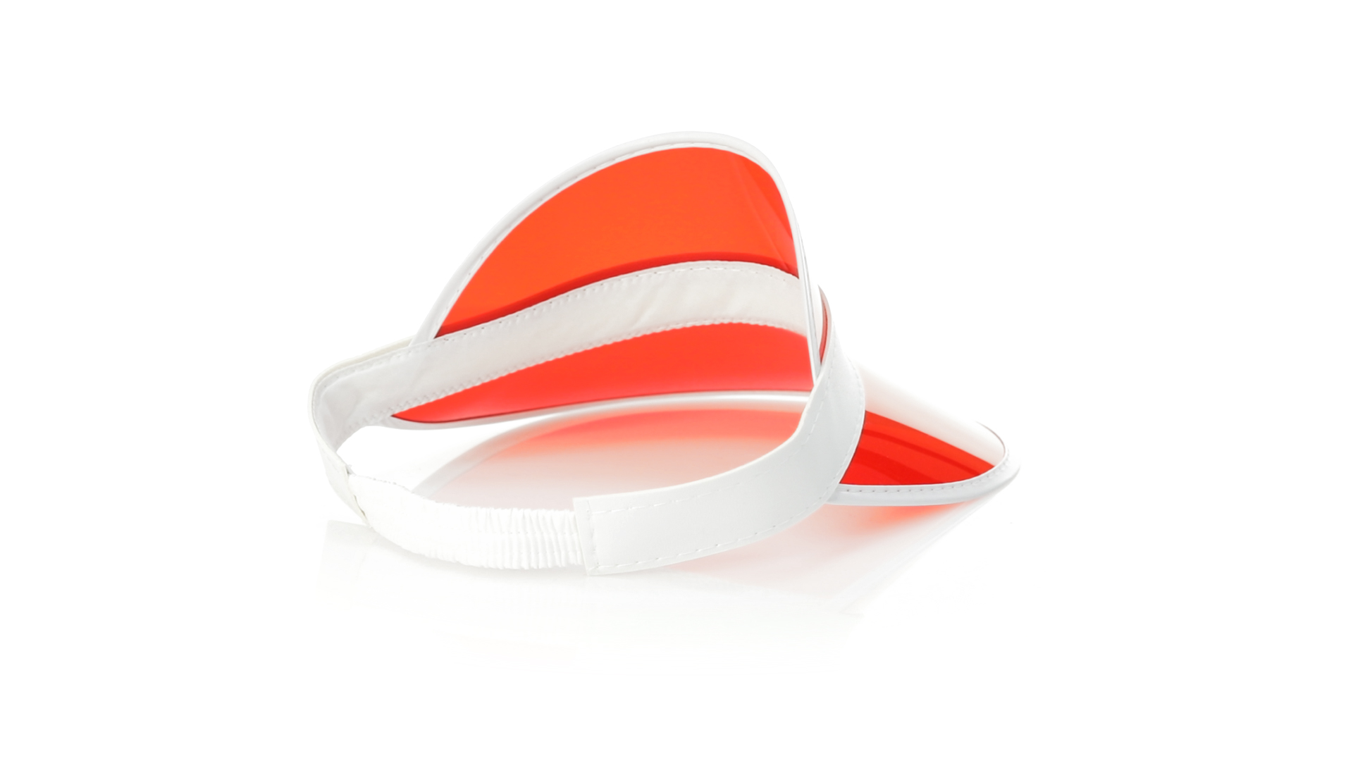 Sonnenblende, PVC-Visier mit UV-Schutz. In transparenten Farben, kombiniert mit weissen Farbdetails. Verstellbares, elastisches Band und in einer breiten Palette von kombinierten Farben erhältlich.