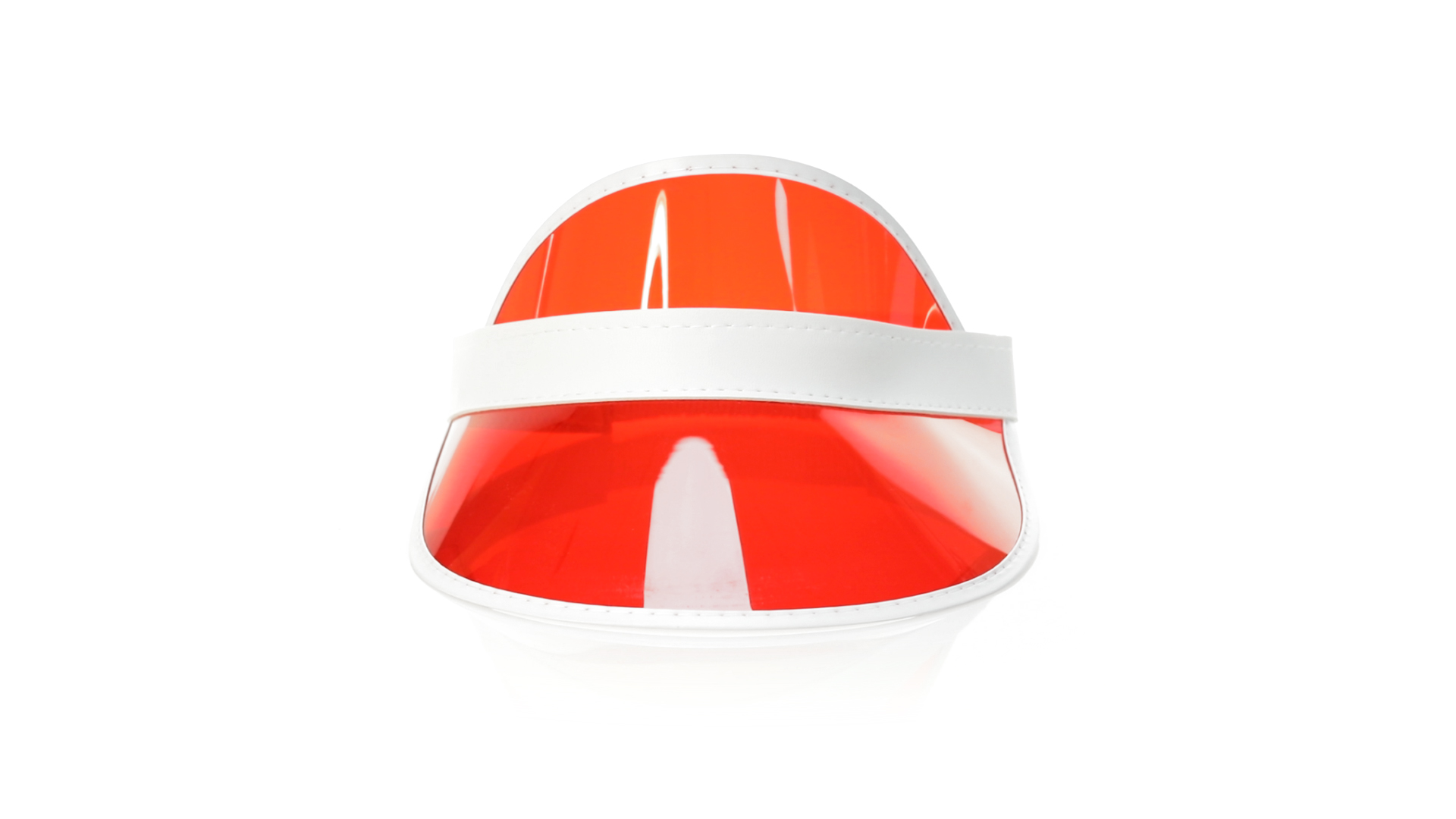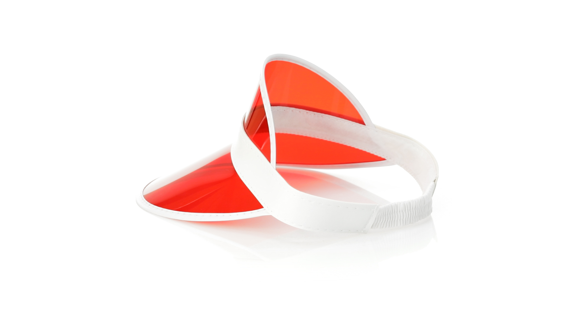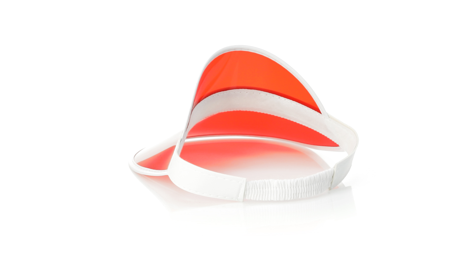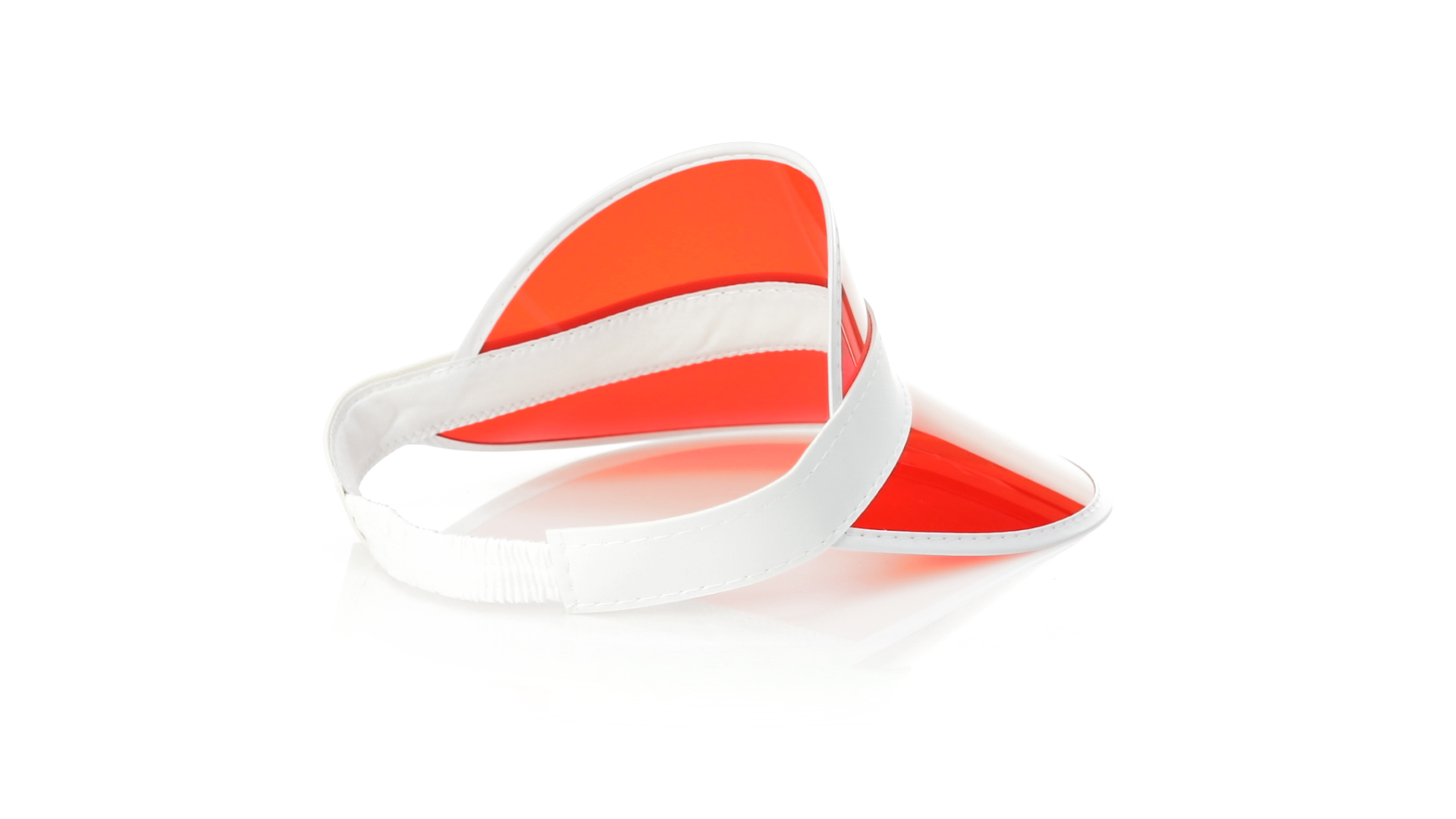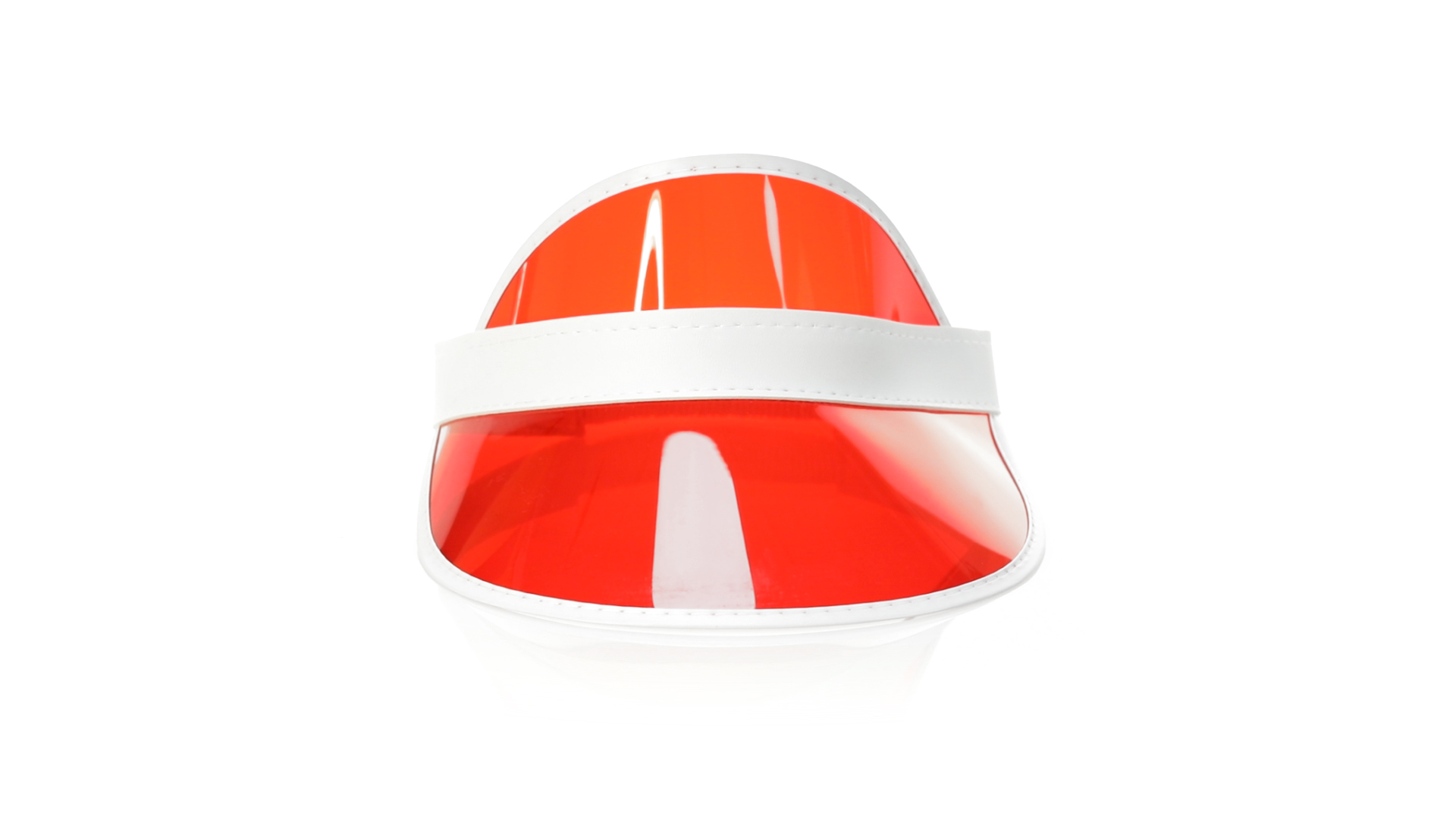 Sonnenblende, PVC-Visier mit UV-Schutz. In transparenten Farben, kombiniert mit weissen Farbdetails. Verstellbares, elastisches Band und in einer breiten Palette von kombinierten Farben erhältlich.