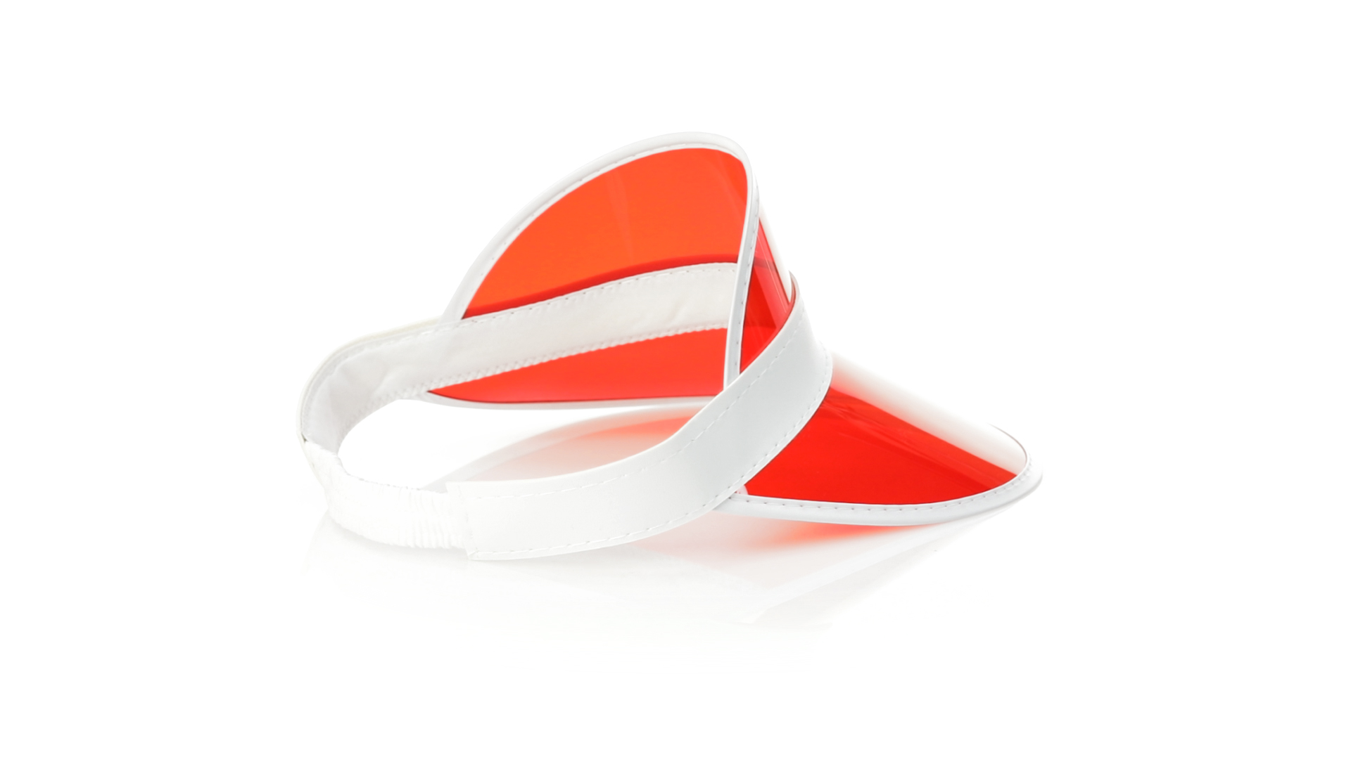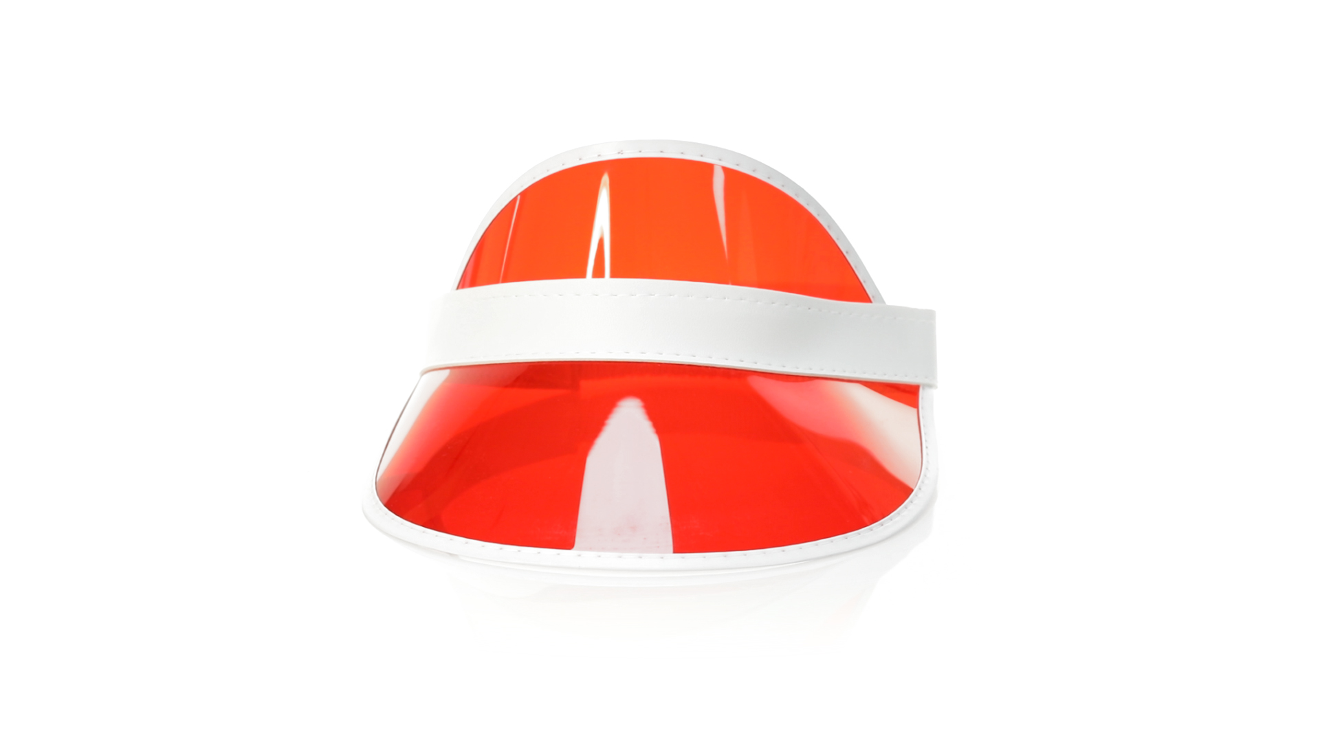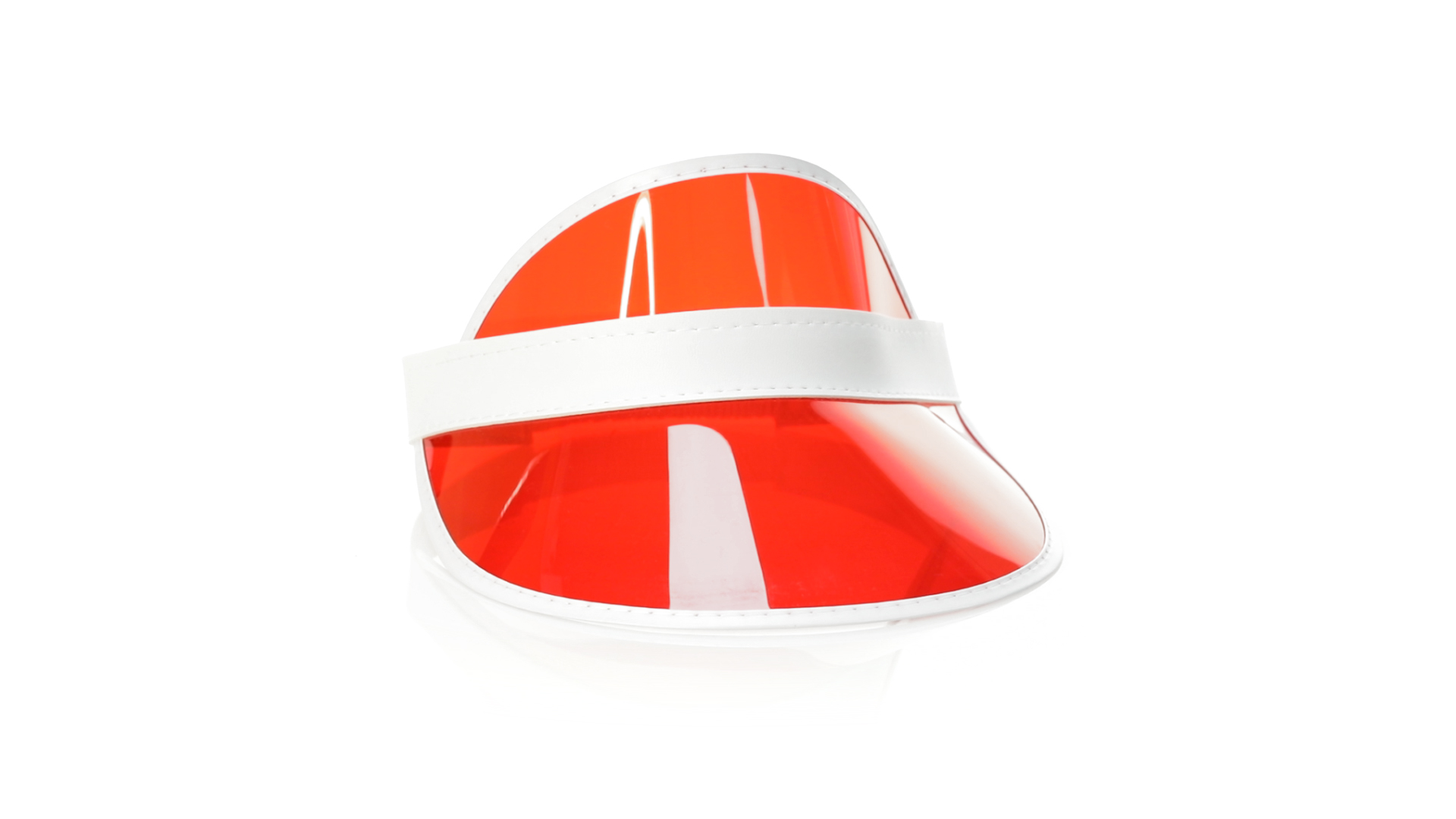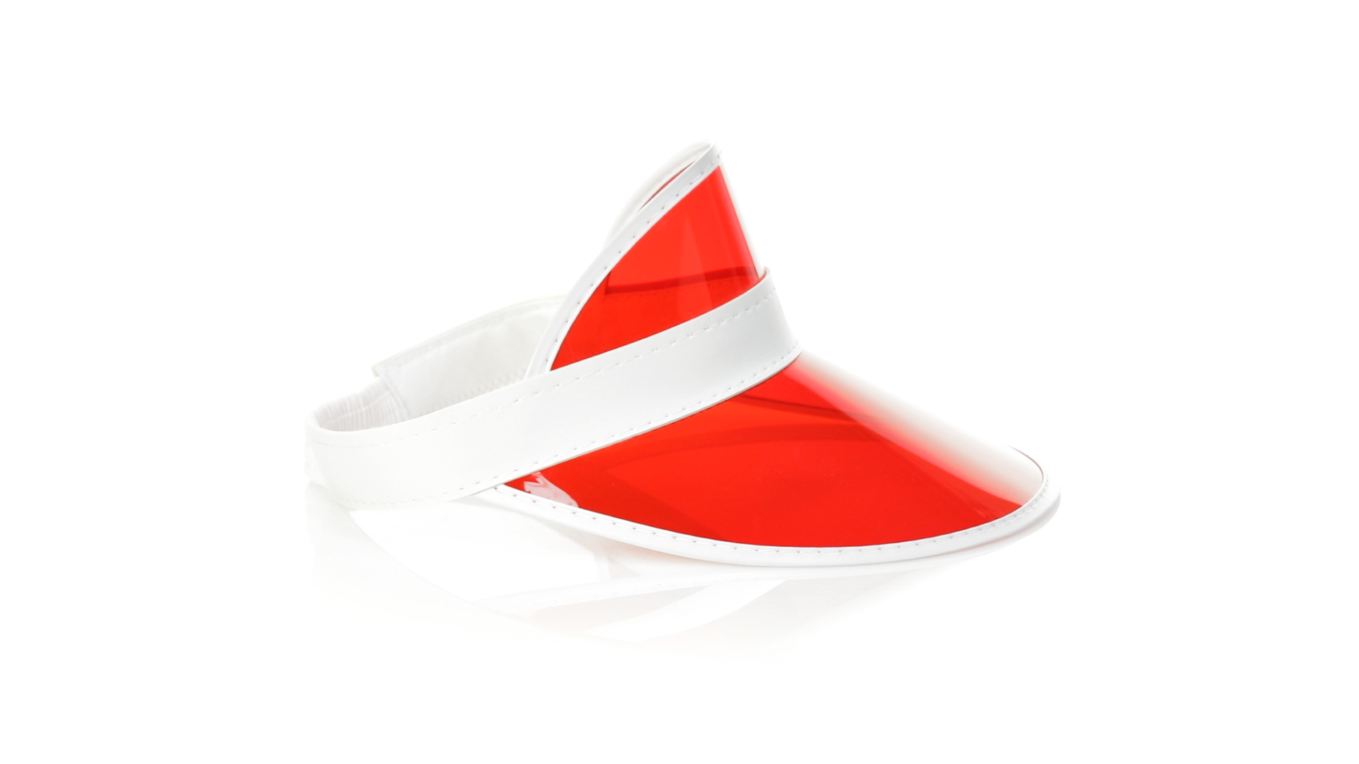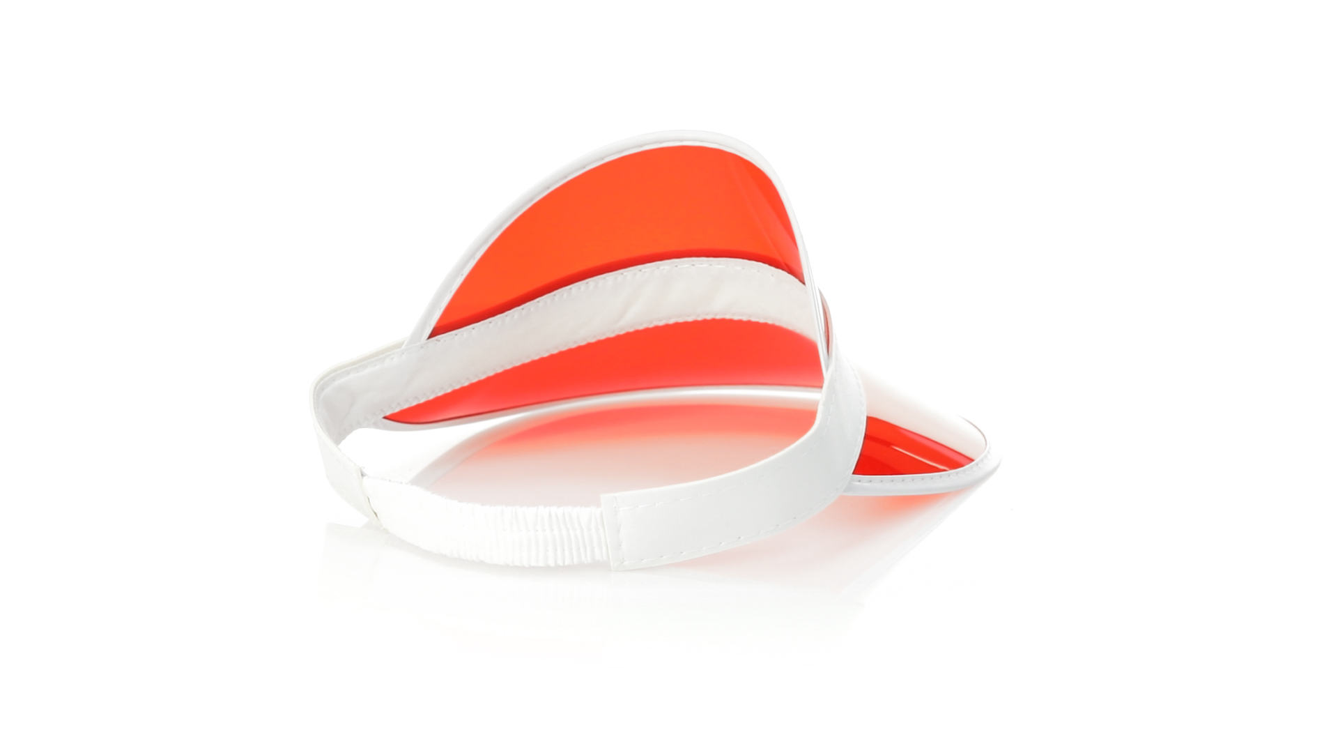 Sonnenblende, PVC-Visier mit UV-Schutz. In transparenten Farben, kombiniert mit weissen Farbdetails. Verstellbares, elastisches Band und in einer breiten Palette von kombinierten Farben erhältlich.