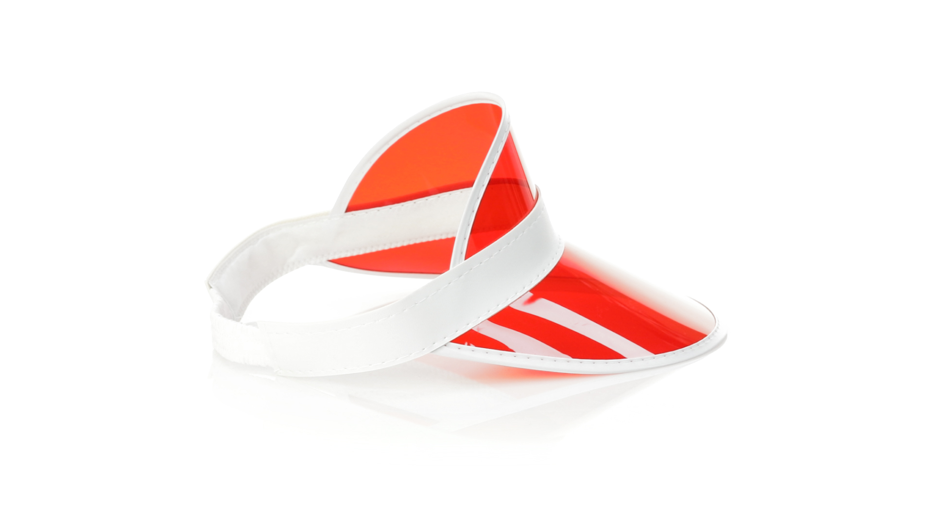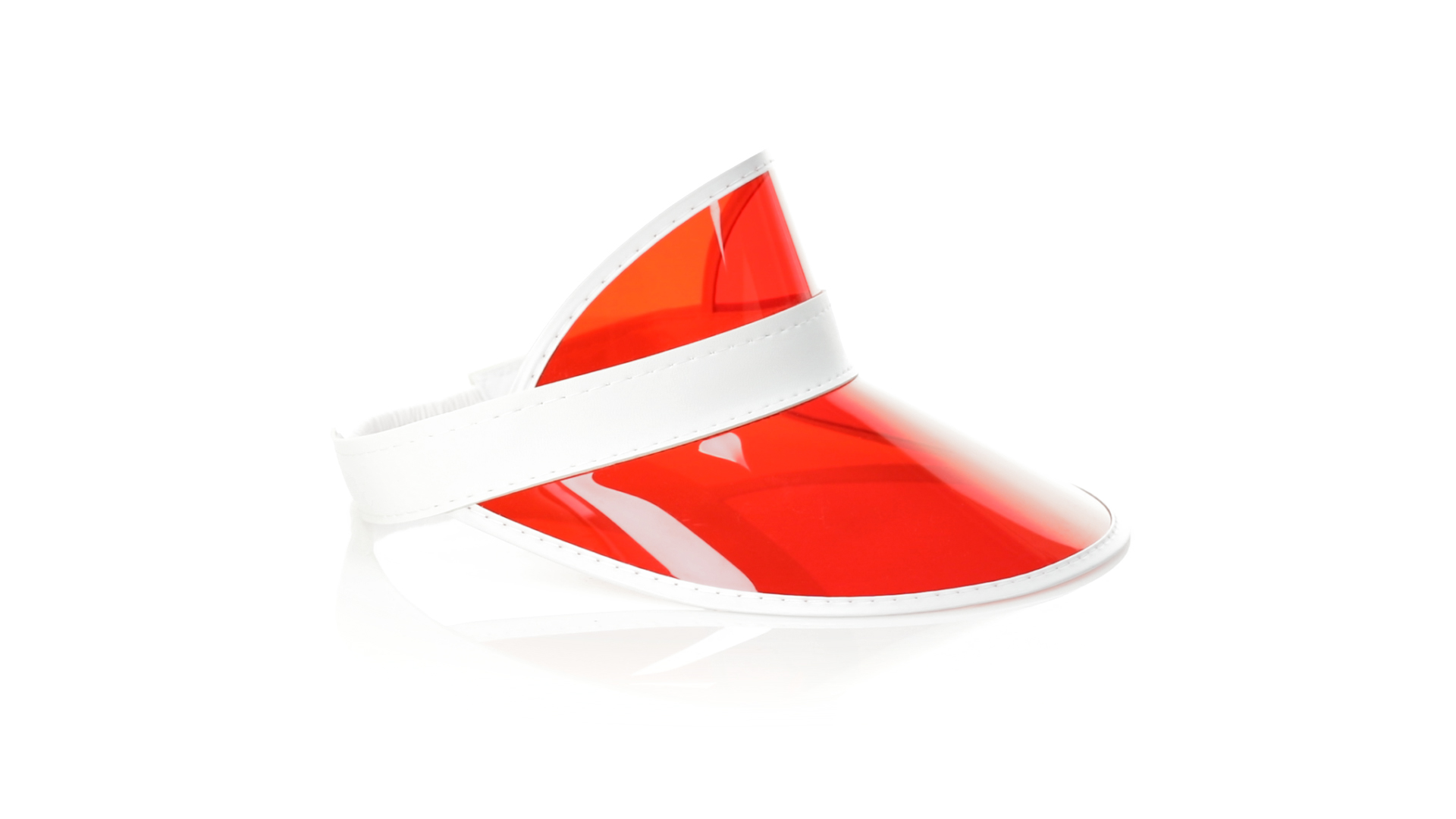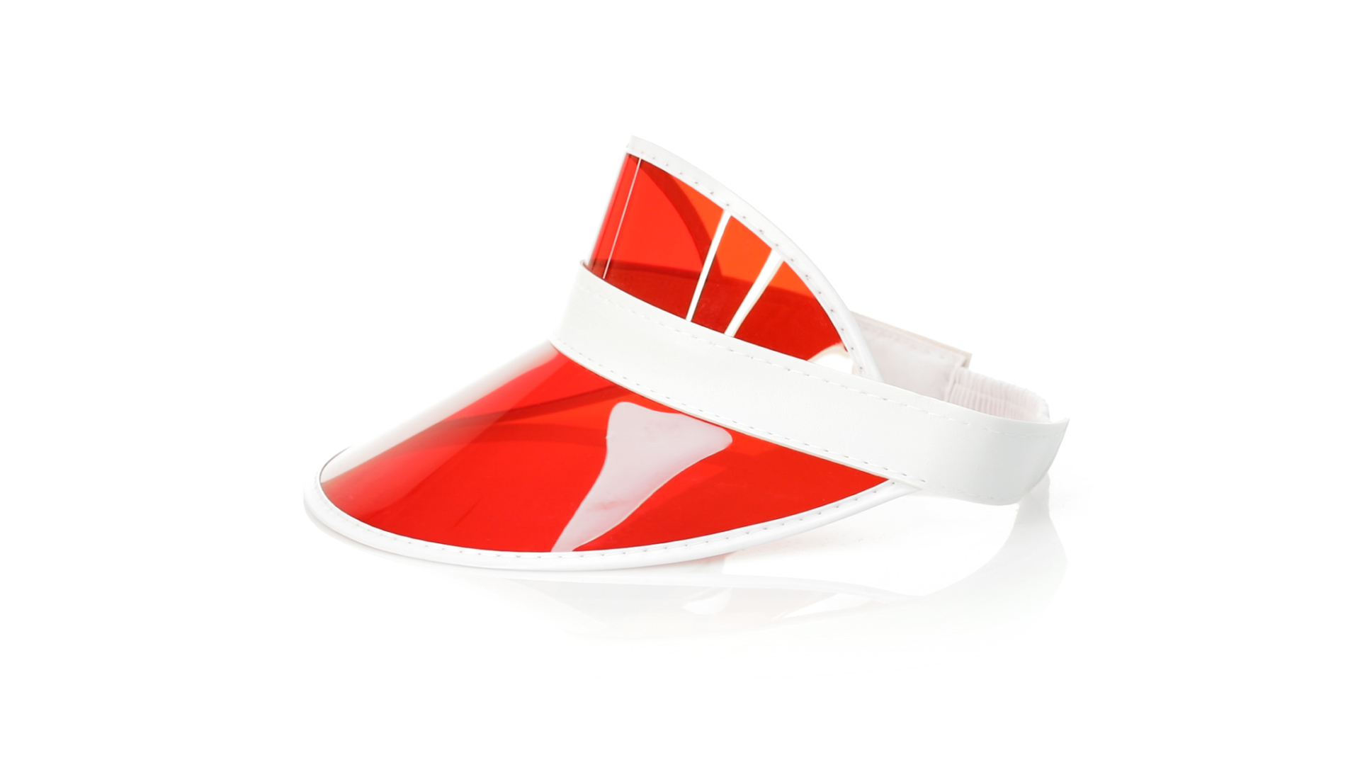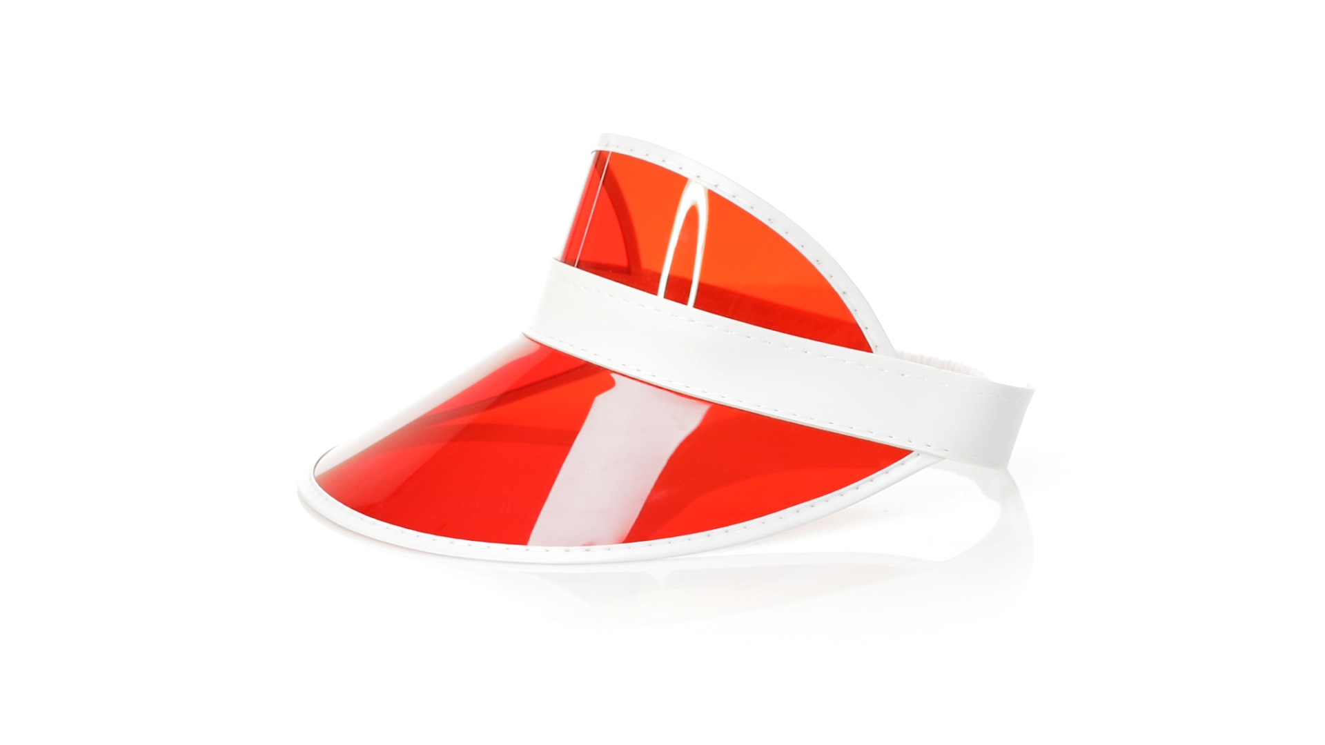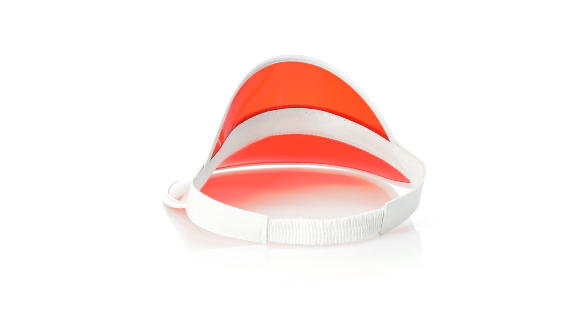 Sonnenblende, PVC-Visier mit UV-Schutz. In transparenten Farben, kombiniert mit weissen Farbdetails. Verstellbares, elastisches Band und in einer breiten Palette von kombinierten Farben erhältlich.