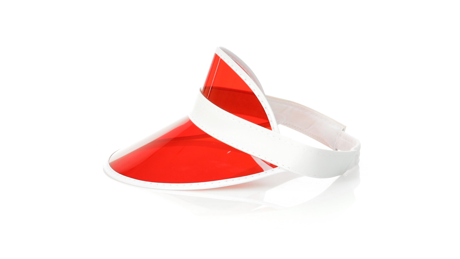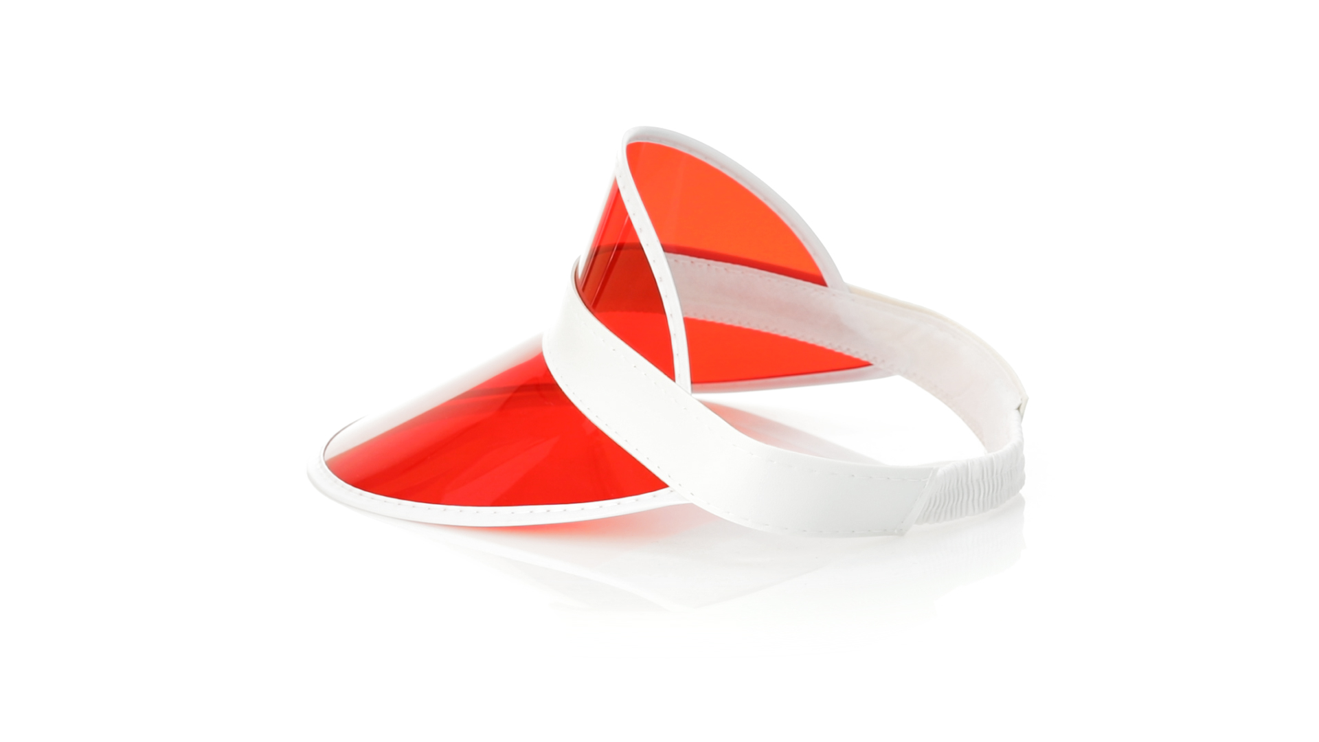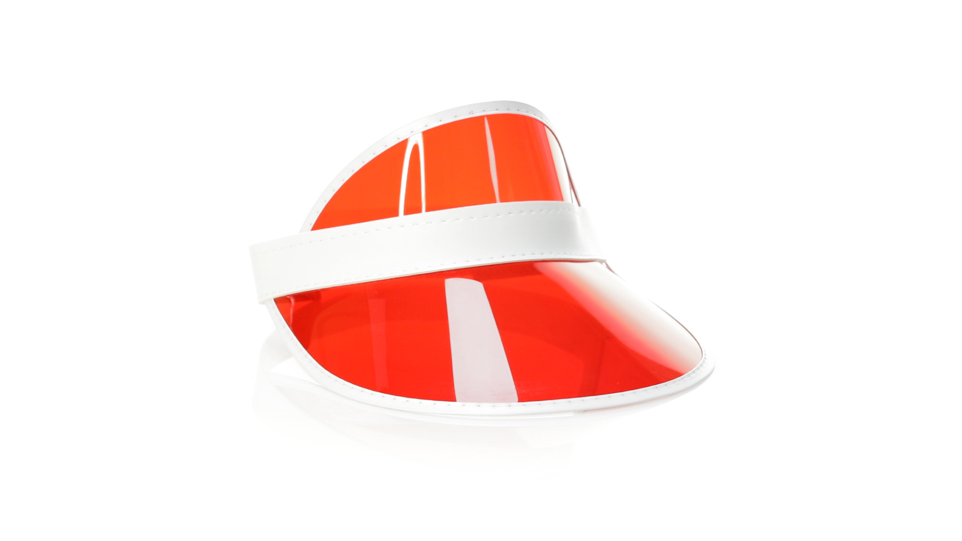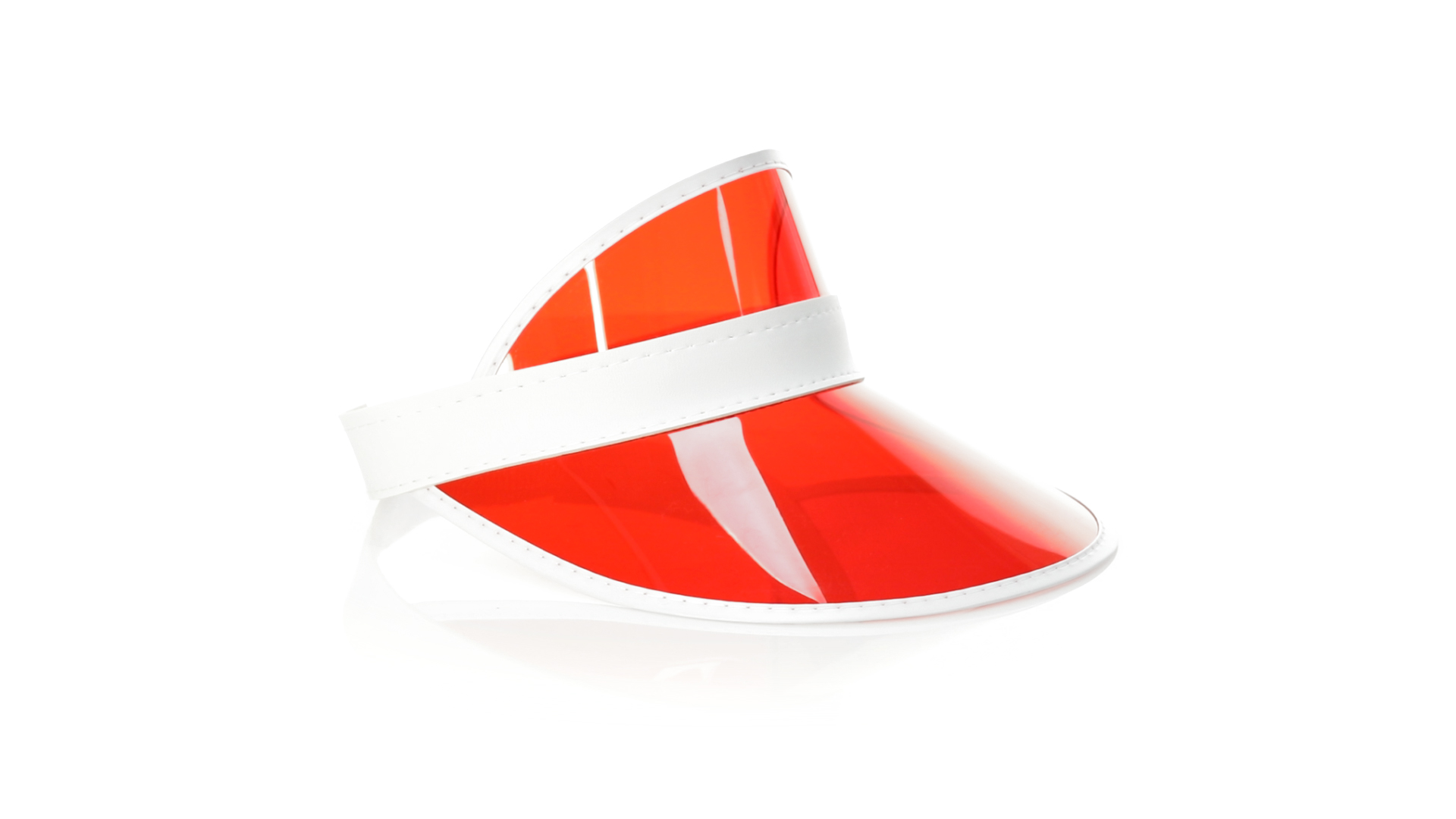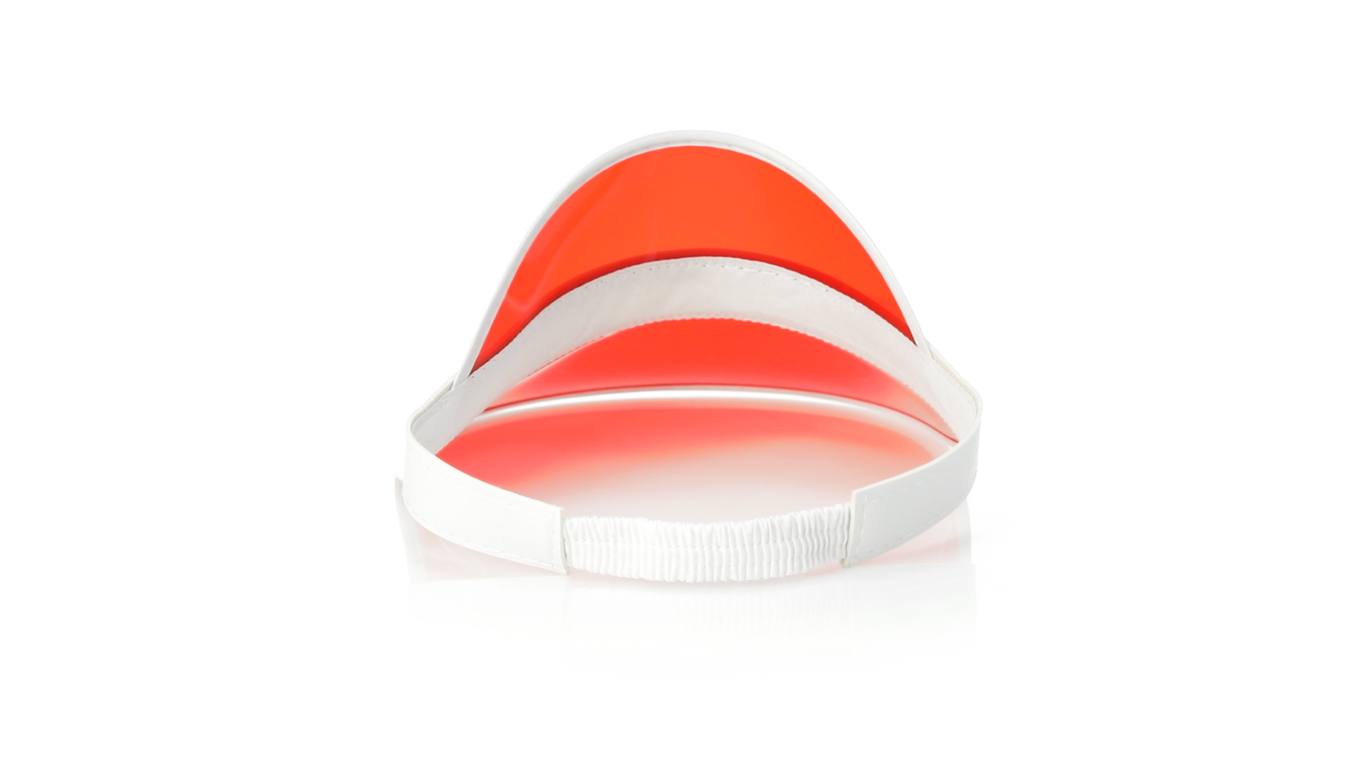 Sonnenblende, PVC-Visier mit UV-Schutz. In transparenten Farben, kombiniert mit weissen Farbdetails. Verstellbares, elastisches Band und in einer breiten Palette von kombinierten Farben erhältlich.