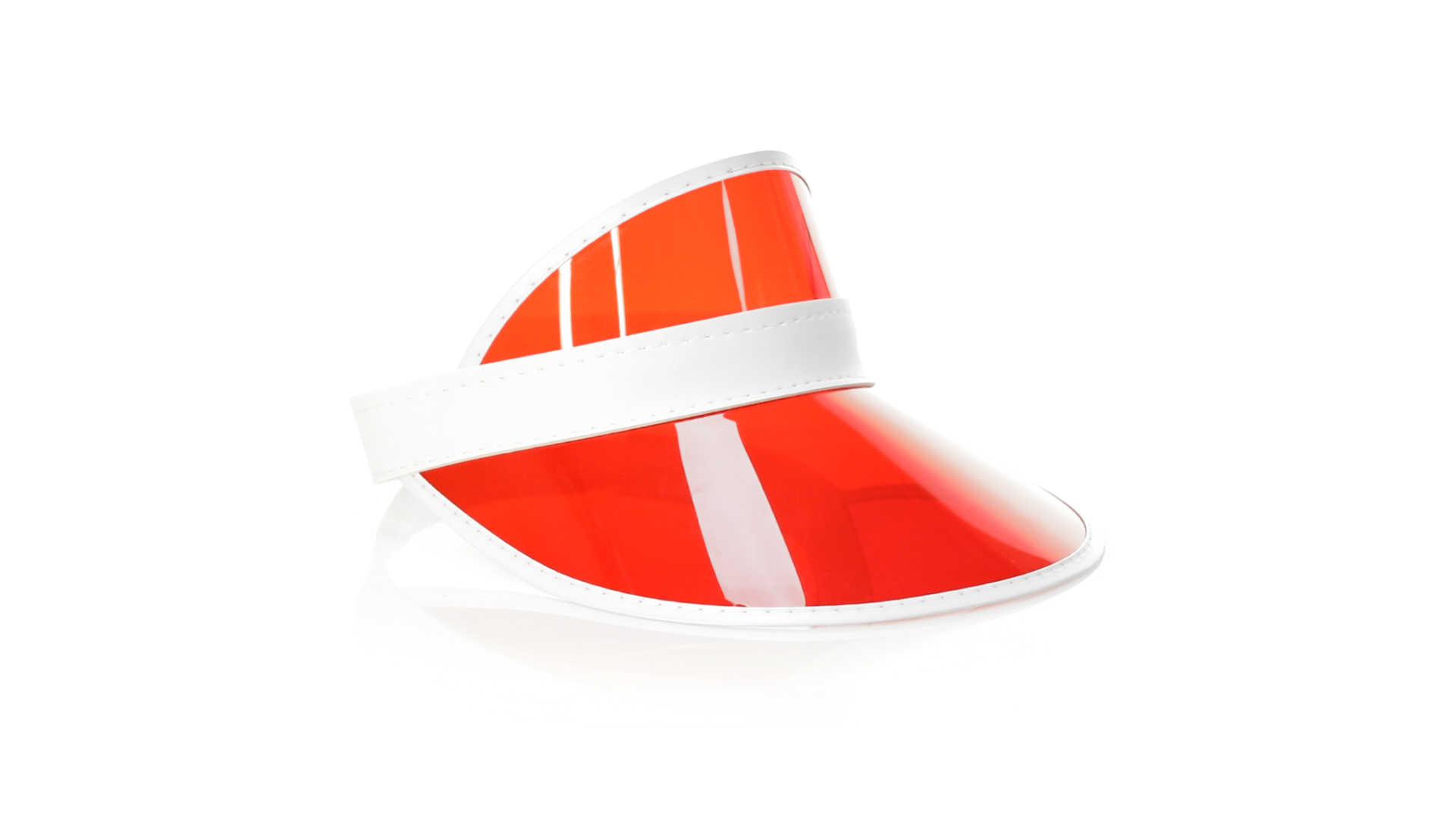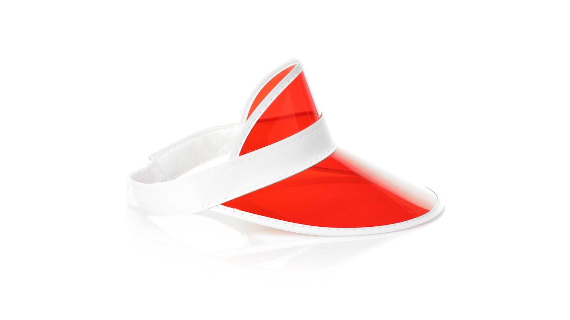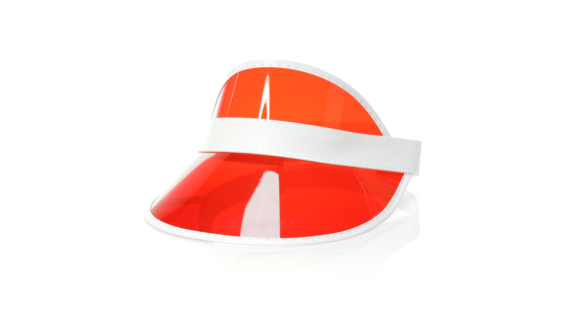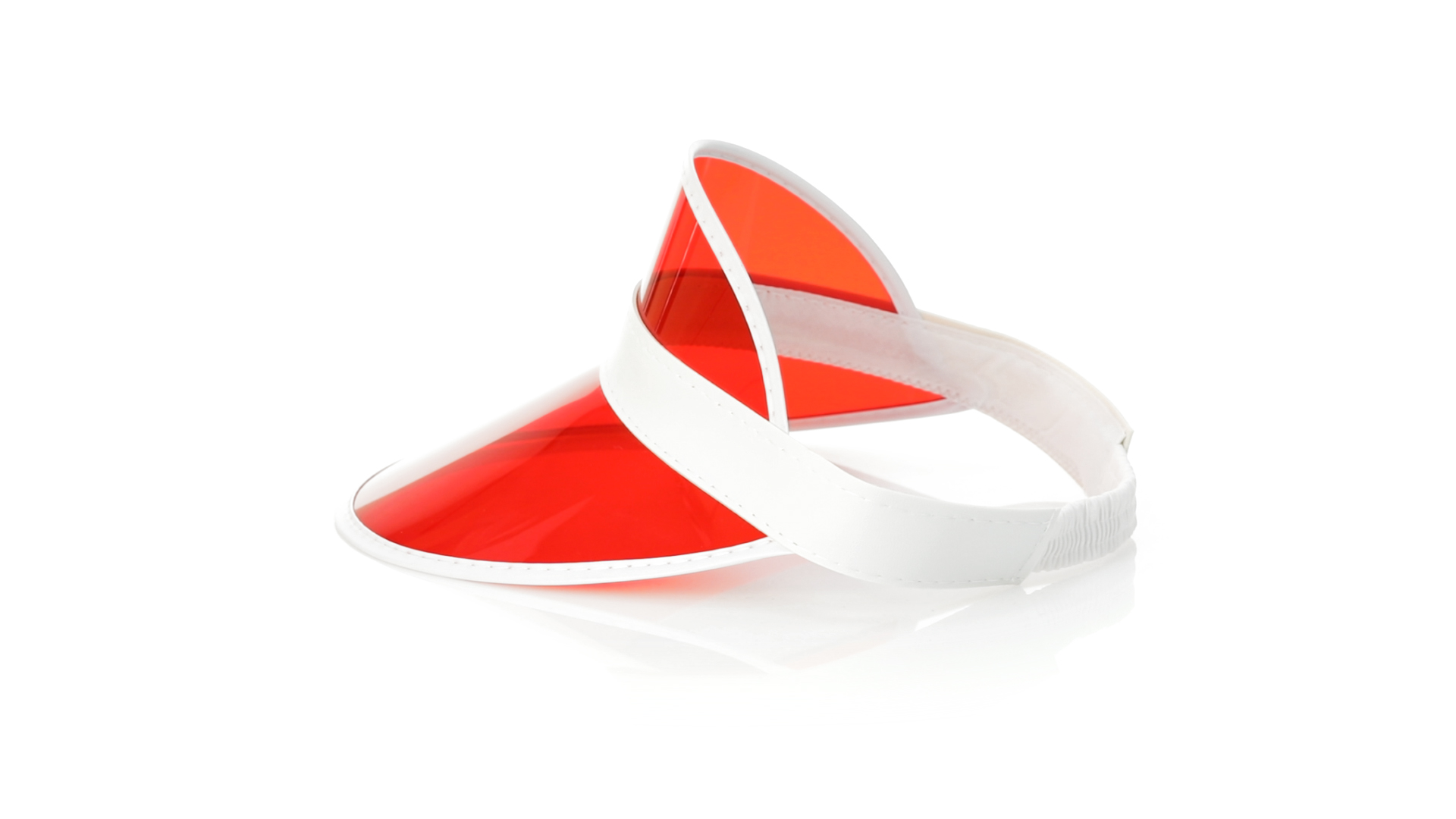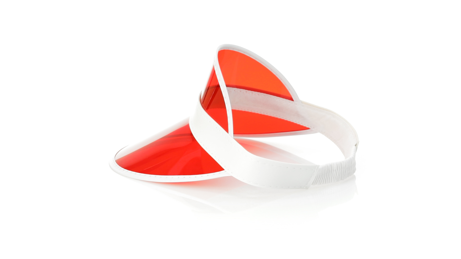 Sonnenblende, PVC-Visier mit UV-Schutz. In transparenten Farben, kombiniert mit weissen Farbdetails. Verstellbares, elastisches Band und in einer breiten Palette von kombinierten Farben erhältlich.