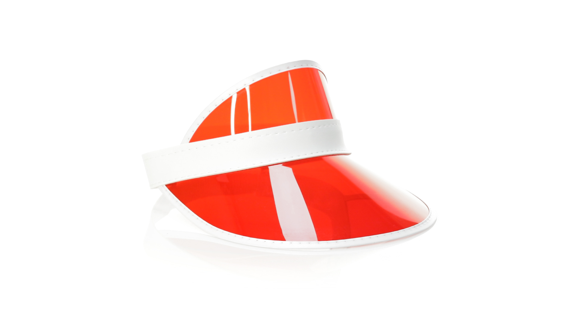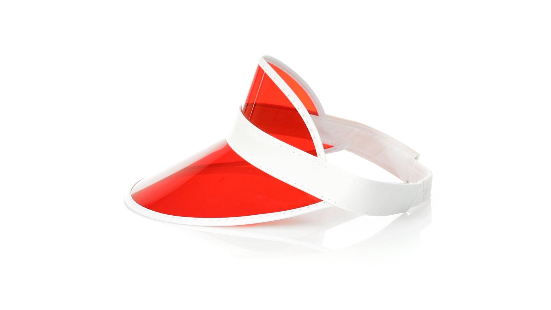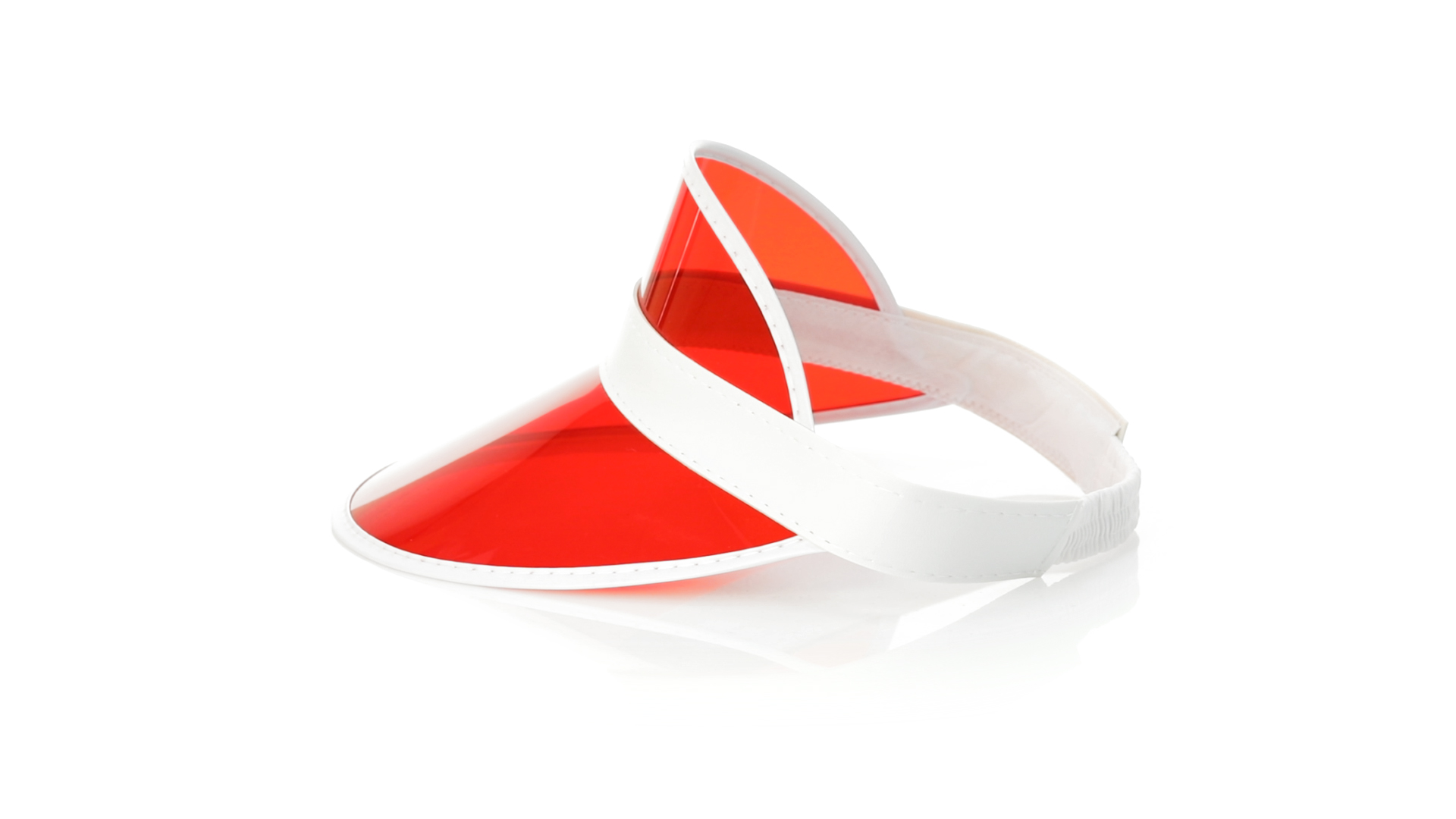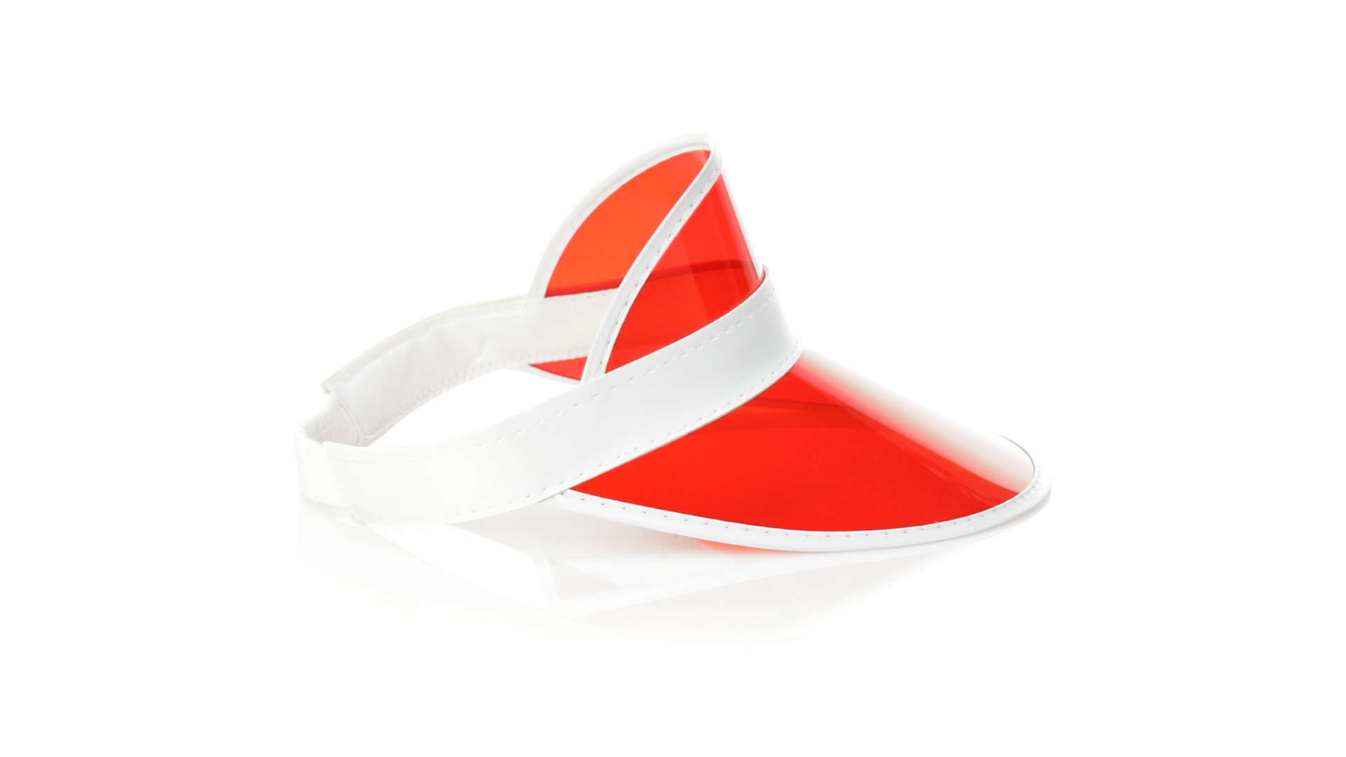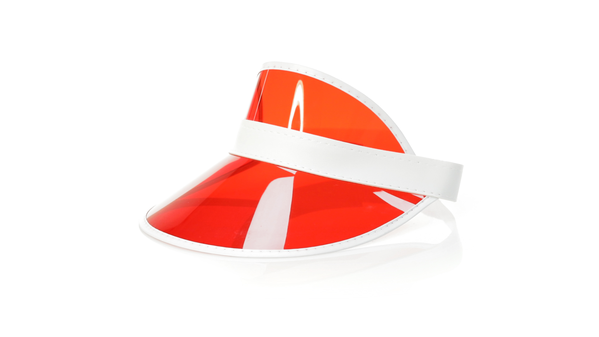 Sonnenblende, PVC-Visier mit UV-Schutz. In transparenten Farben, kombiniert mit weissen Farbdetails. Verstellbares, elastisches Band und in einer breiten Palette von kombinierten Farben erhältlich.