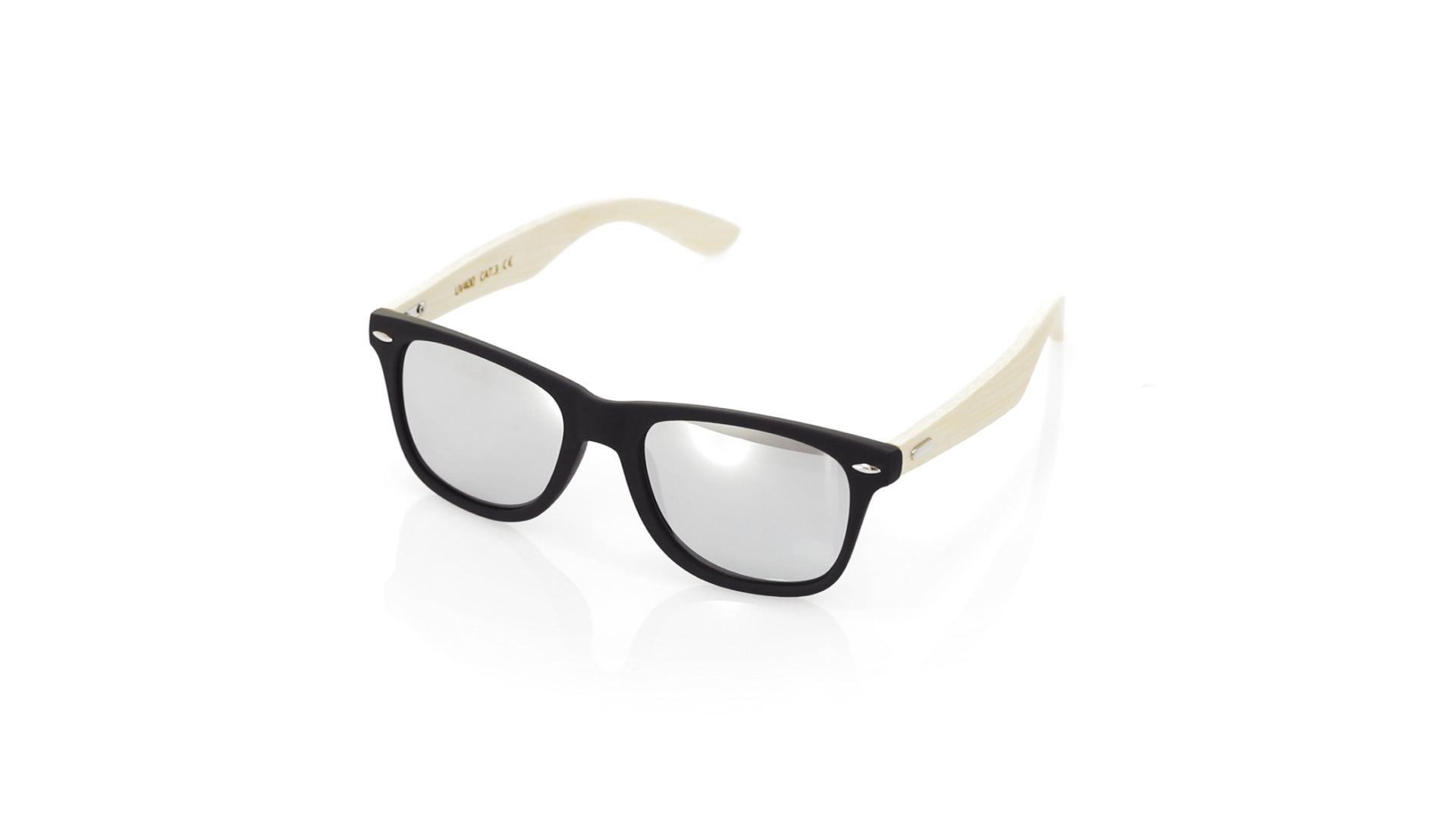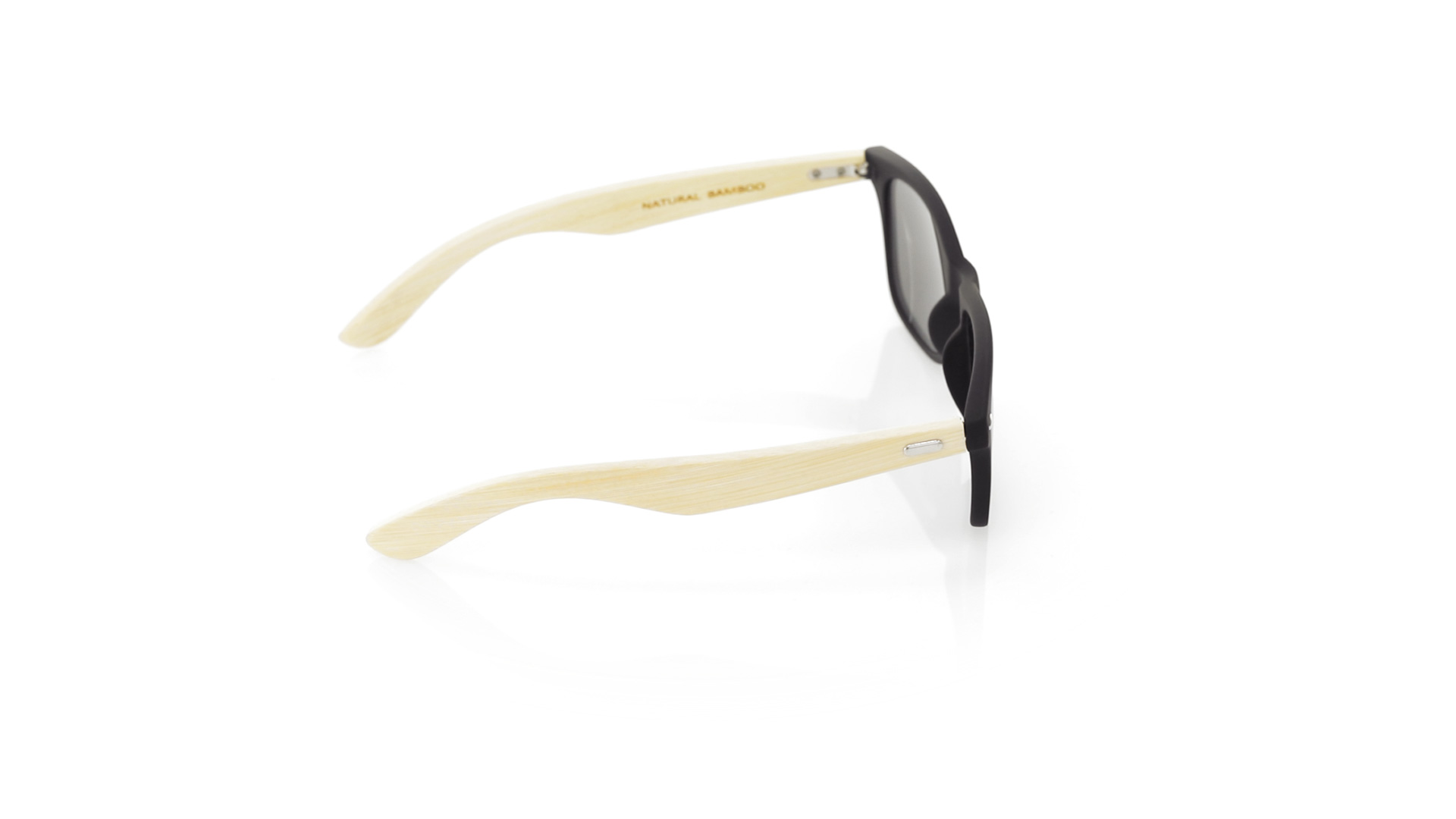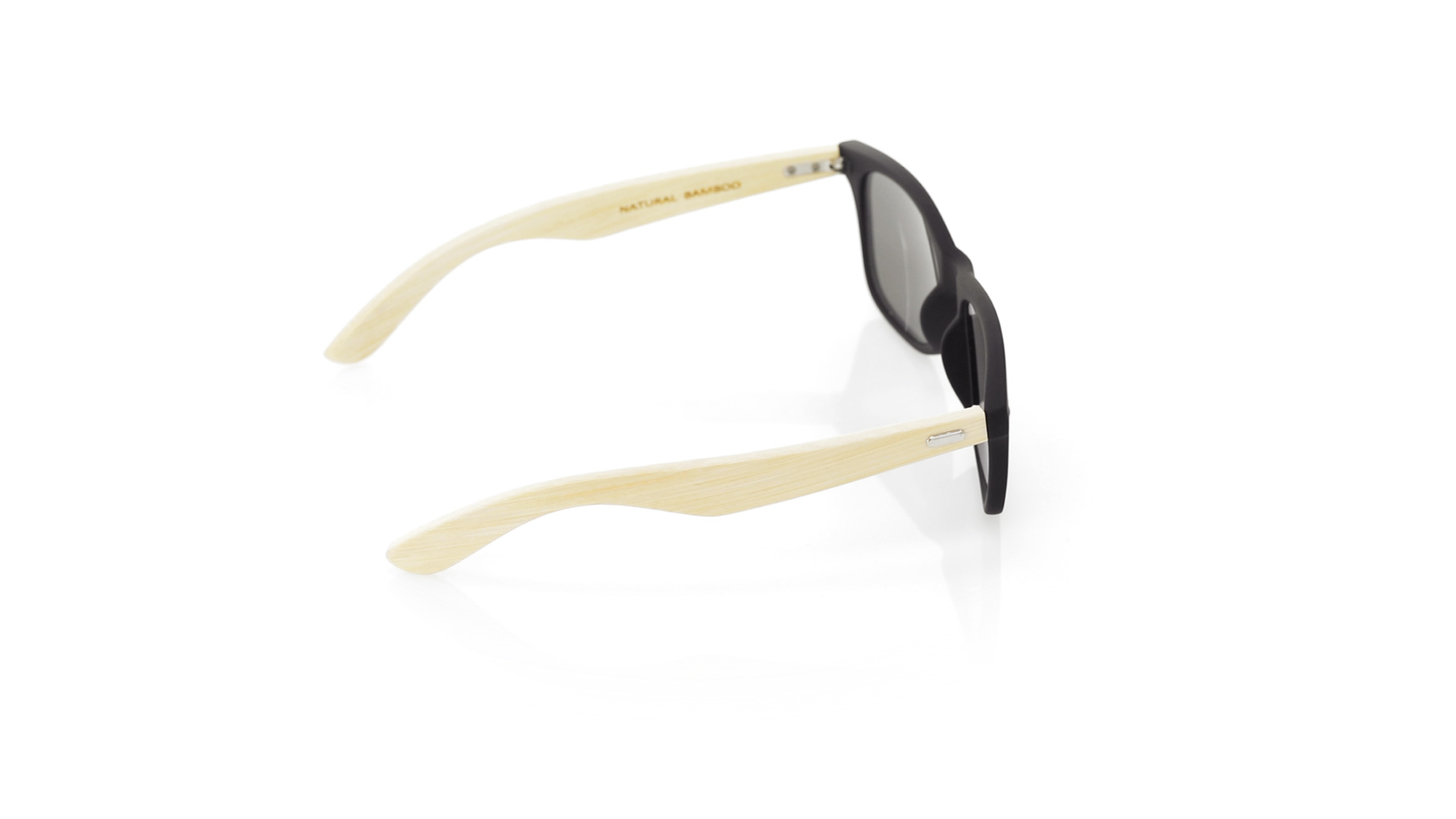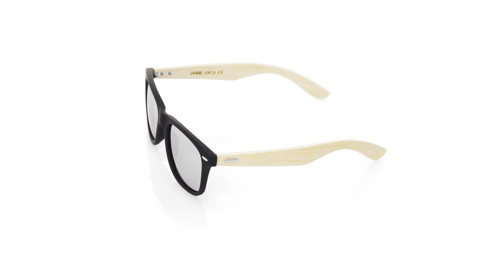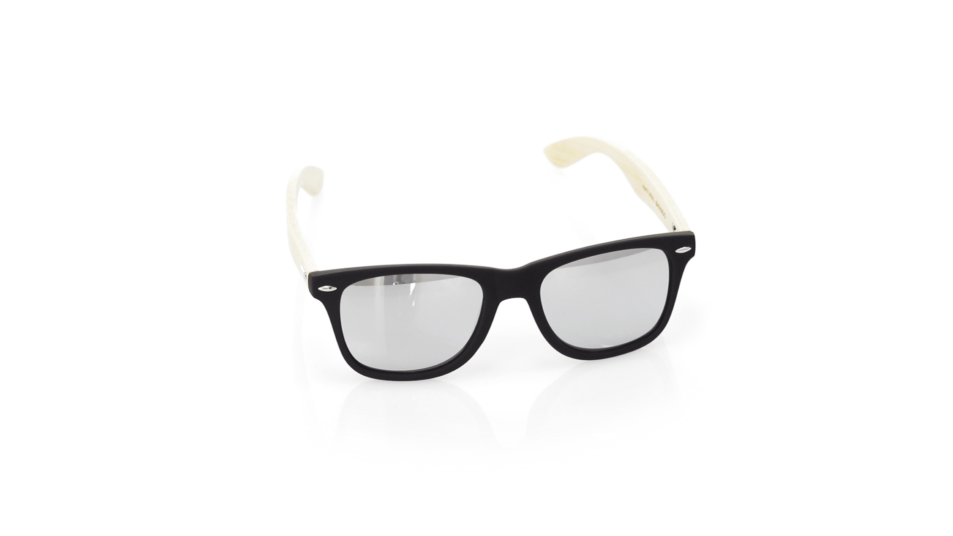 Nature Line Sonnenbrille mit UV400-Schutz. Schwarzer Rahmen aus haltbarem PC-Material und Bügel aus Bambus. AC (Cellulose-Acetat)-Gläser mit Verspiegelung, erhältlich in einer breiten Farbpalette. Präsentiert in attraktiver Eco-Design-Box.