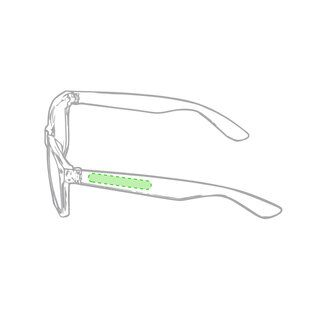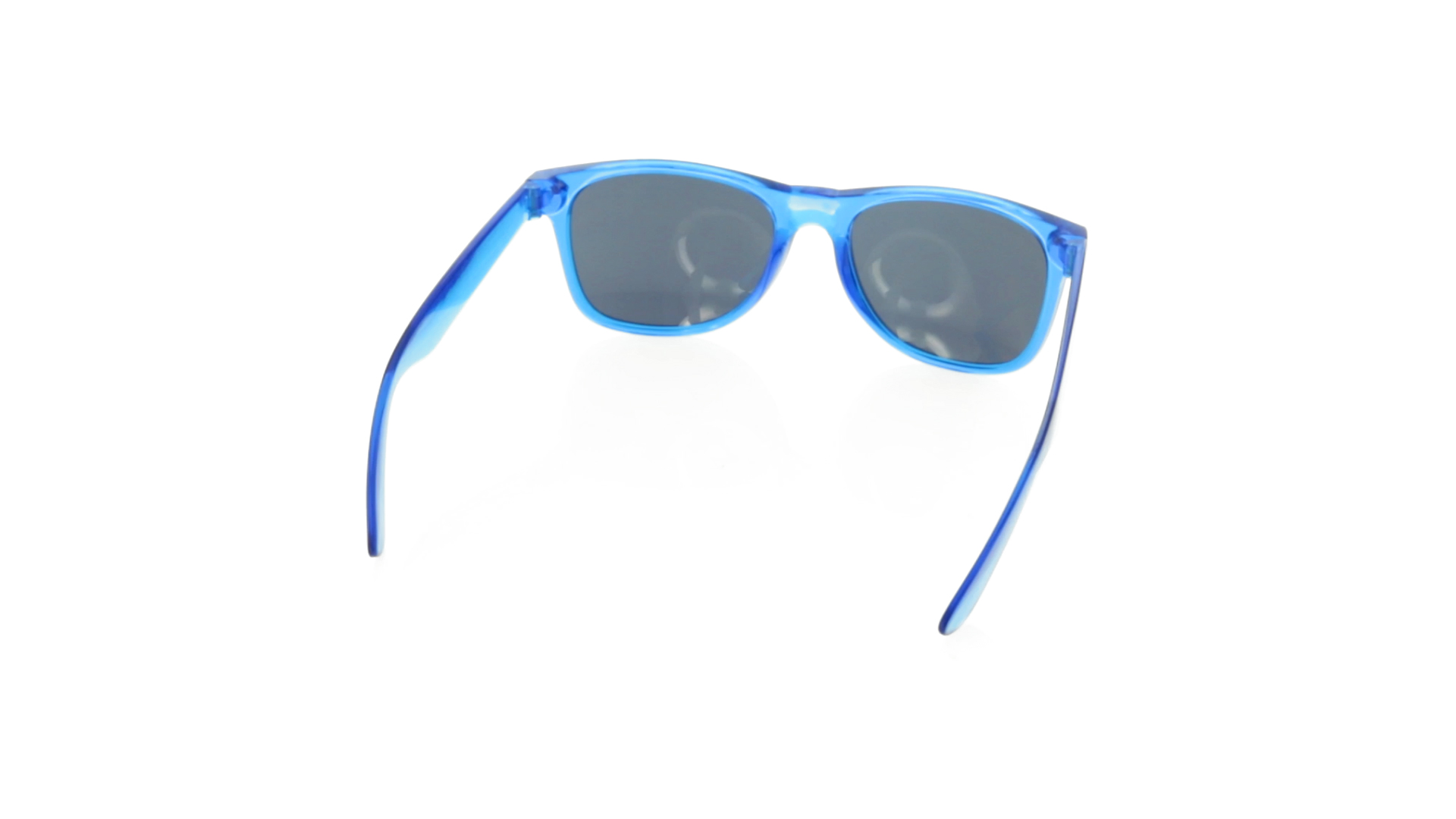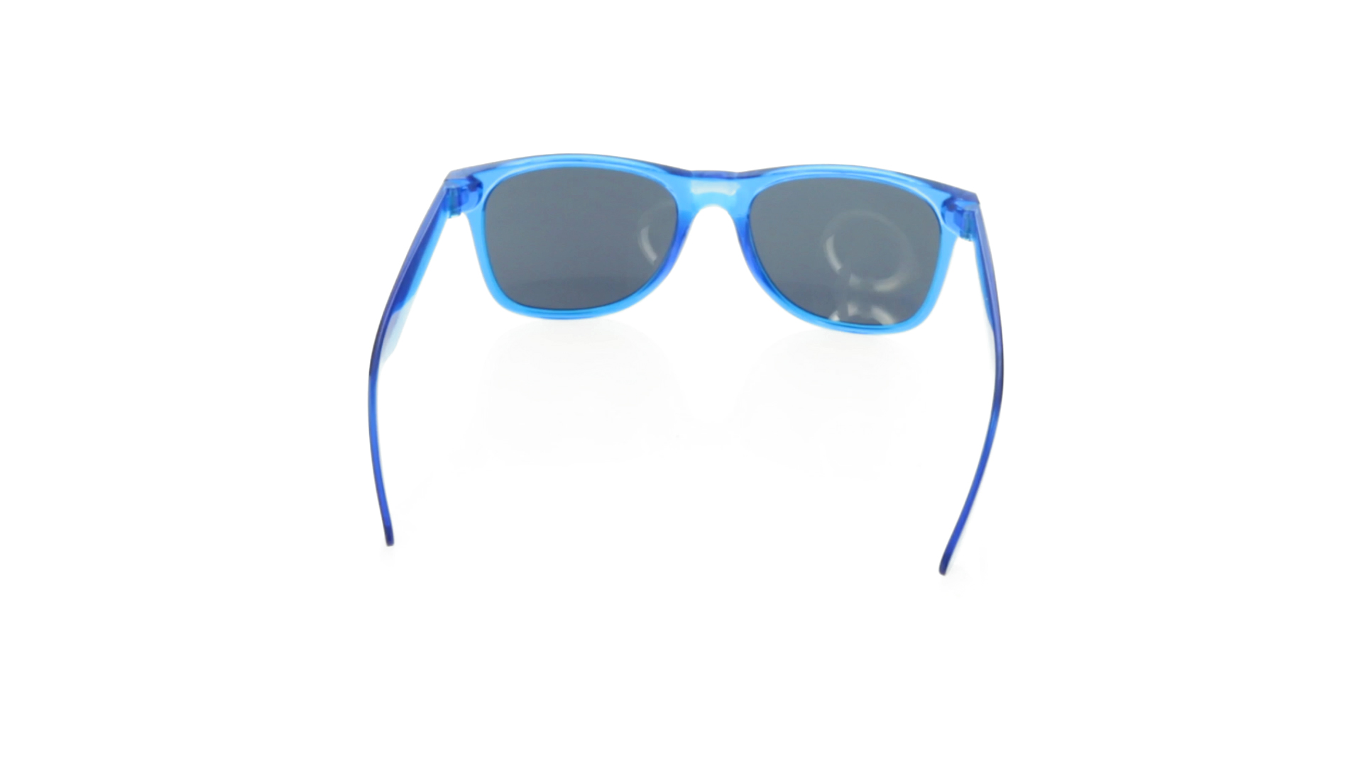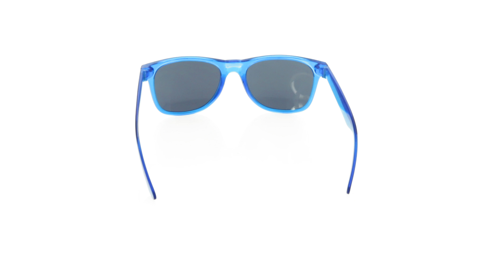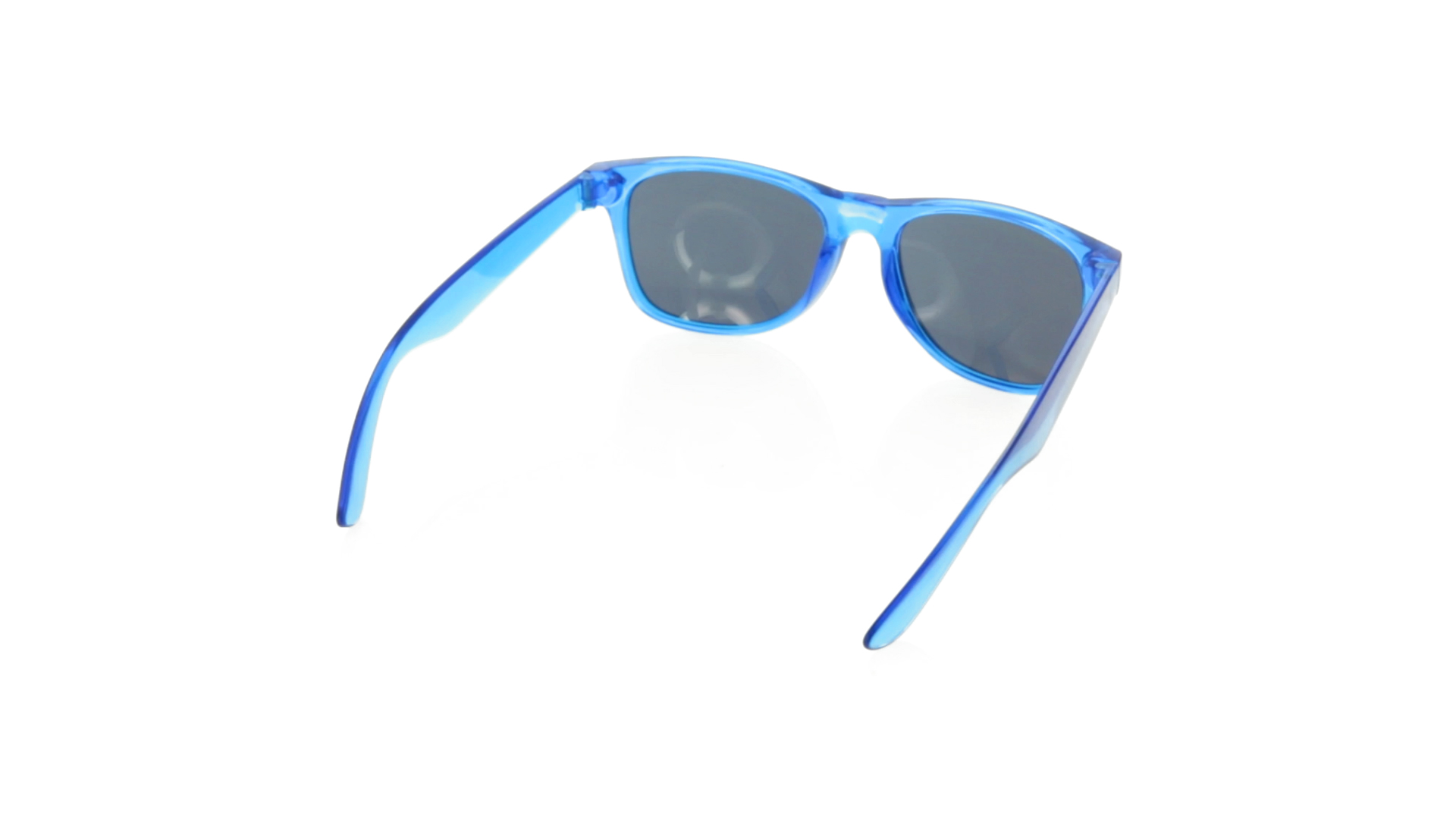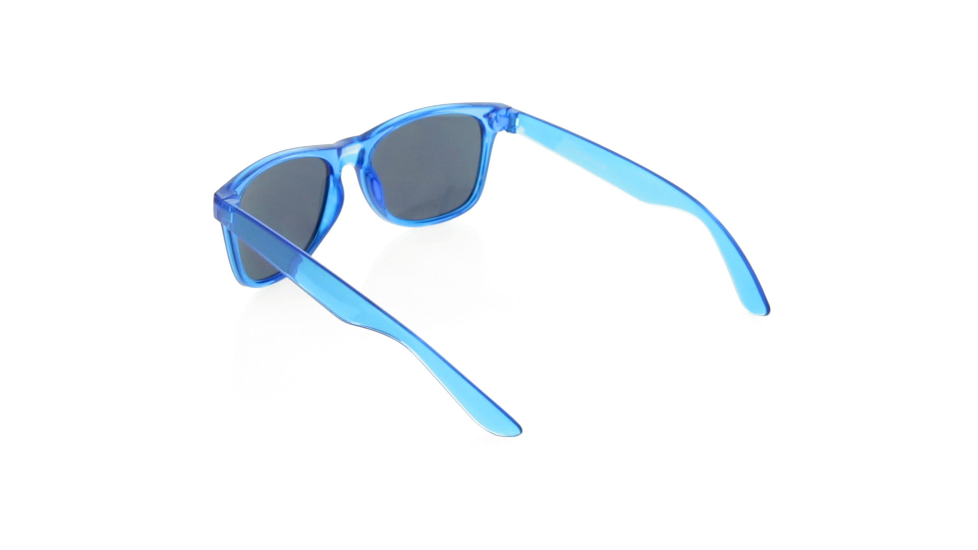 Sonnenbrille mit UV-400-Schutz und klassischem Design. Mit transparentem Rahmen in lebhaften Farben und schwarzen Gläsern.