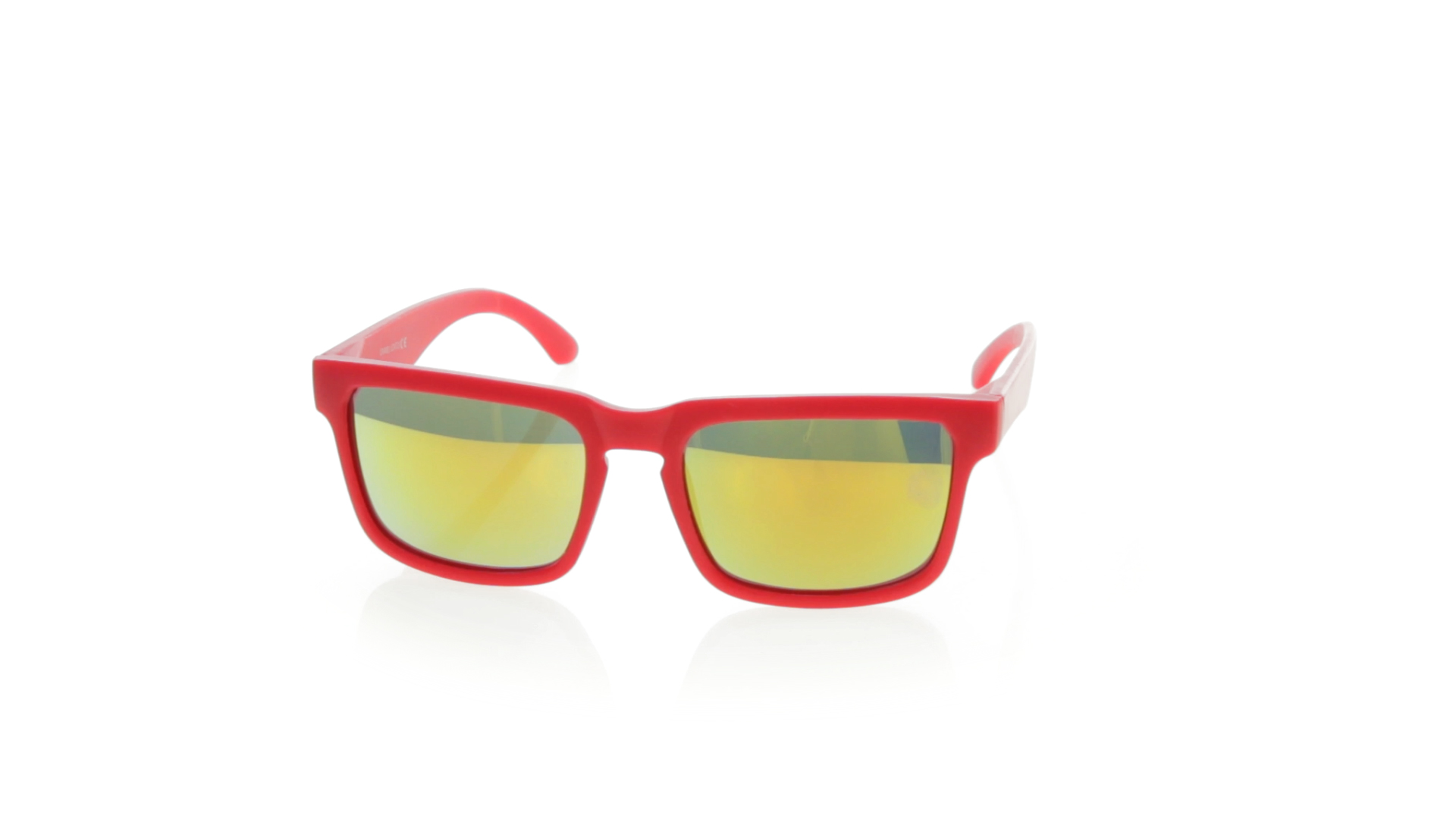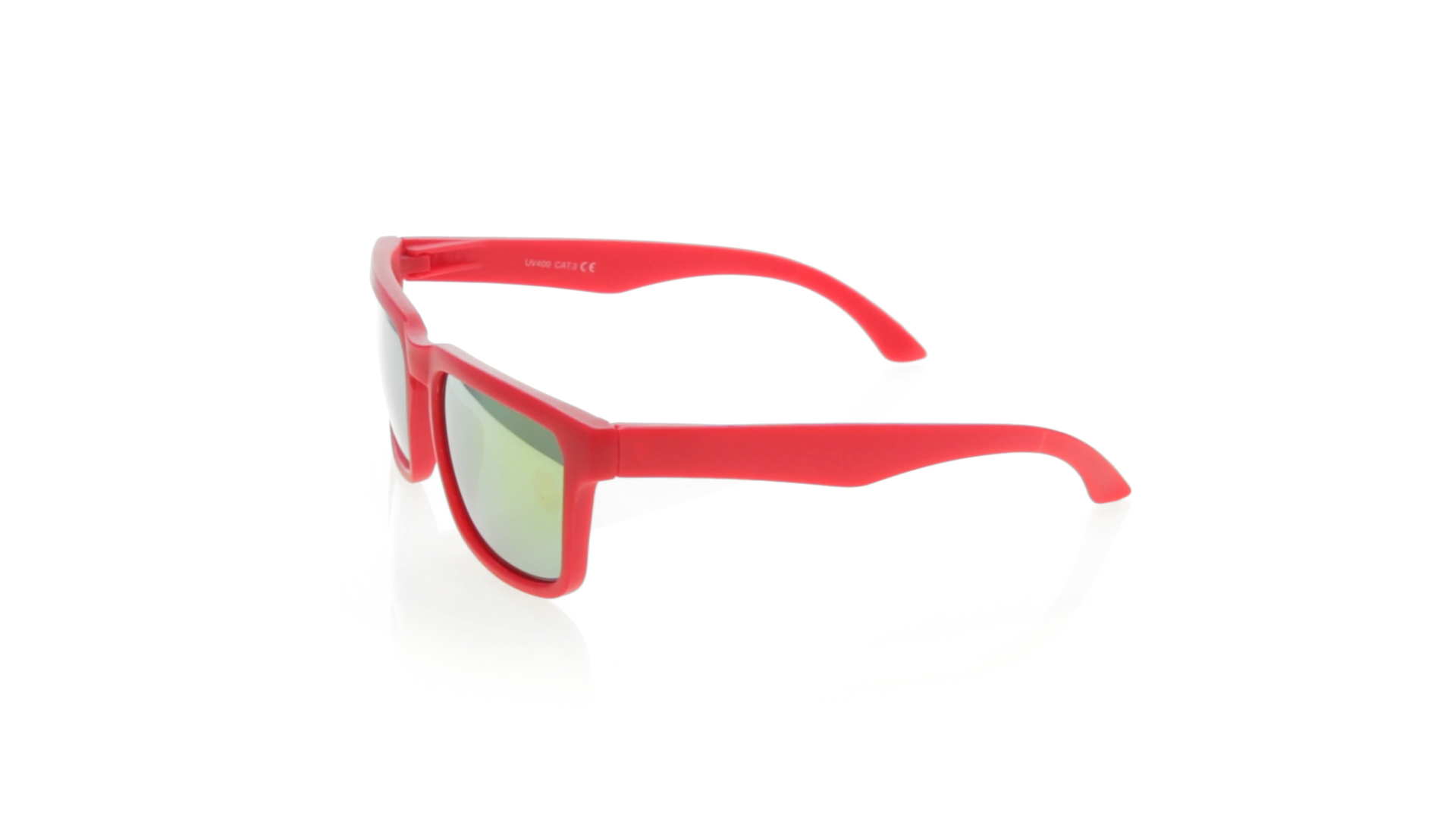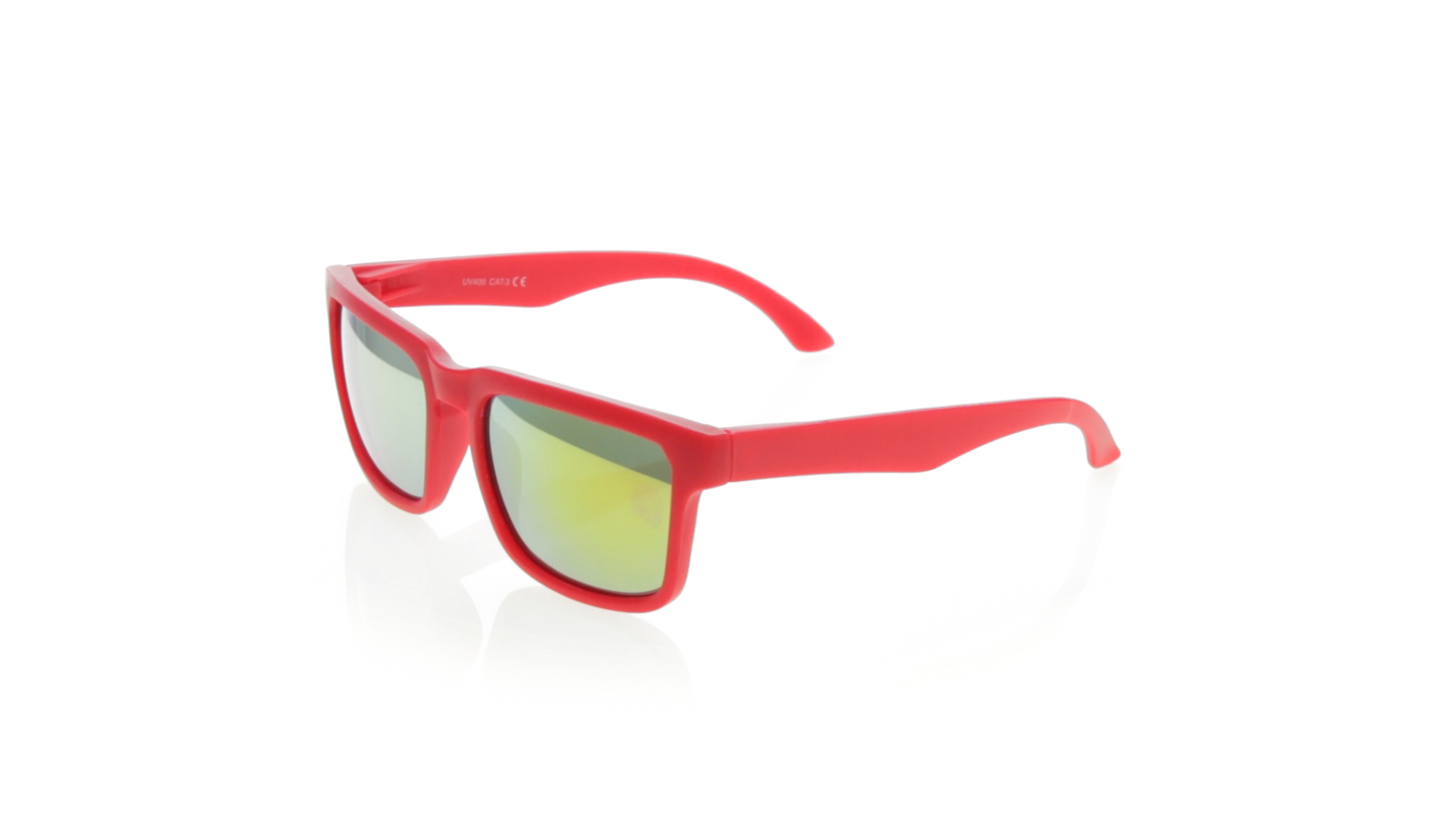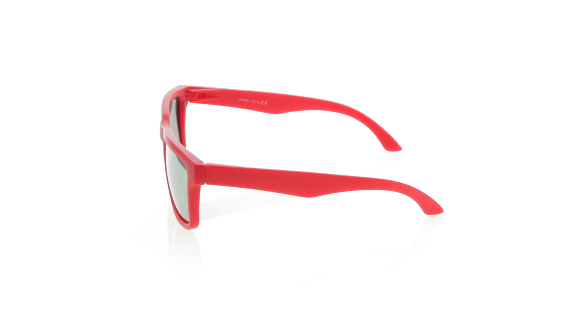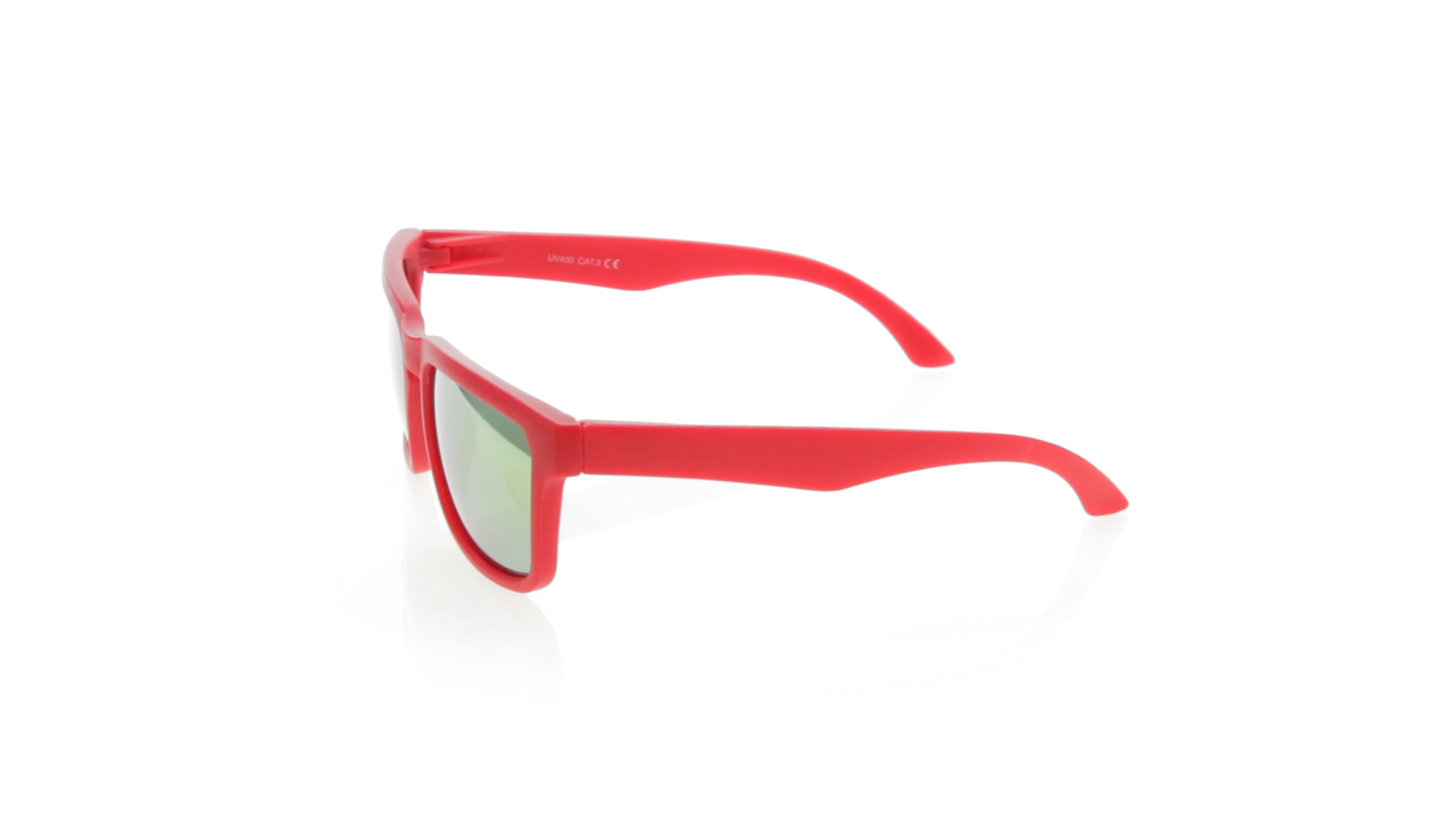 Sonnenbrille mit UV-400-Schutz und klassischem Sommerdesign. Mit mattem Rahmen in fröhlichen Farben und verspiegelten Gläsern in passender Farbe.