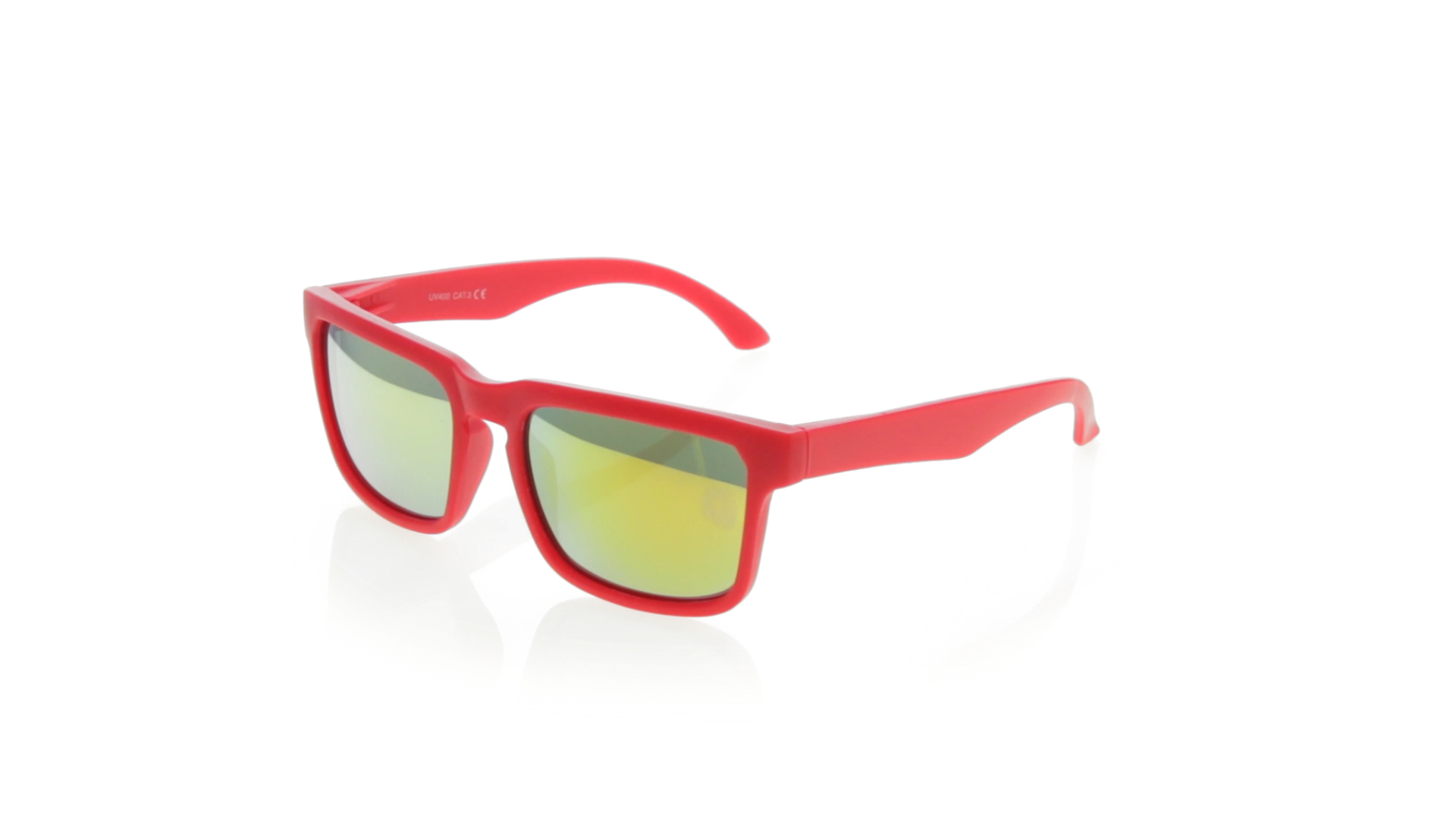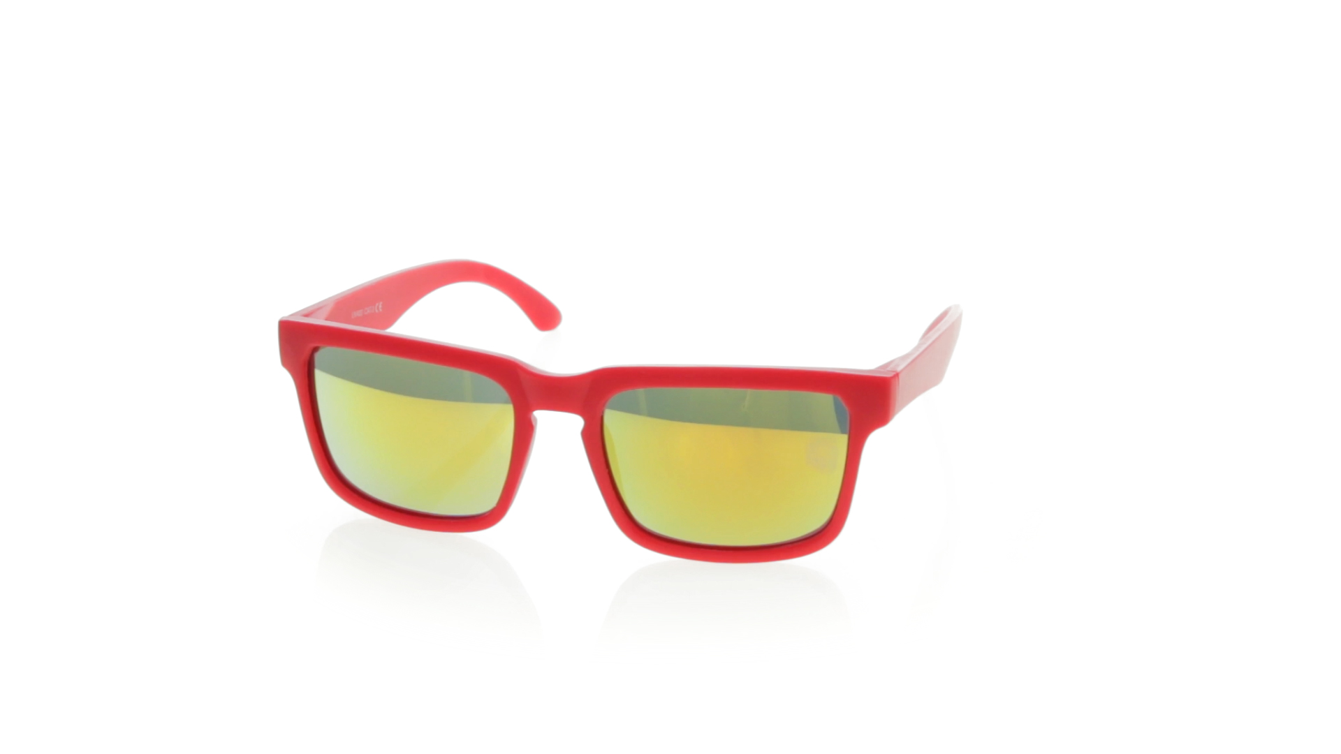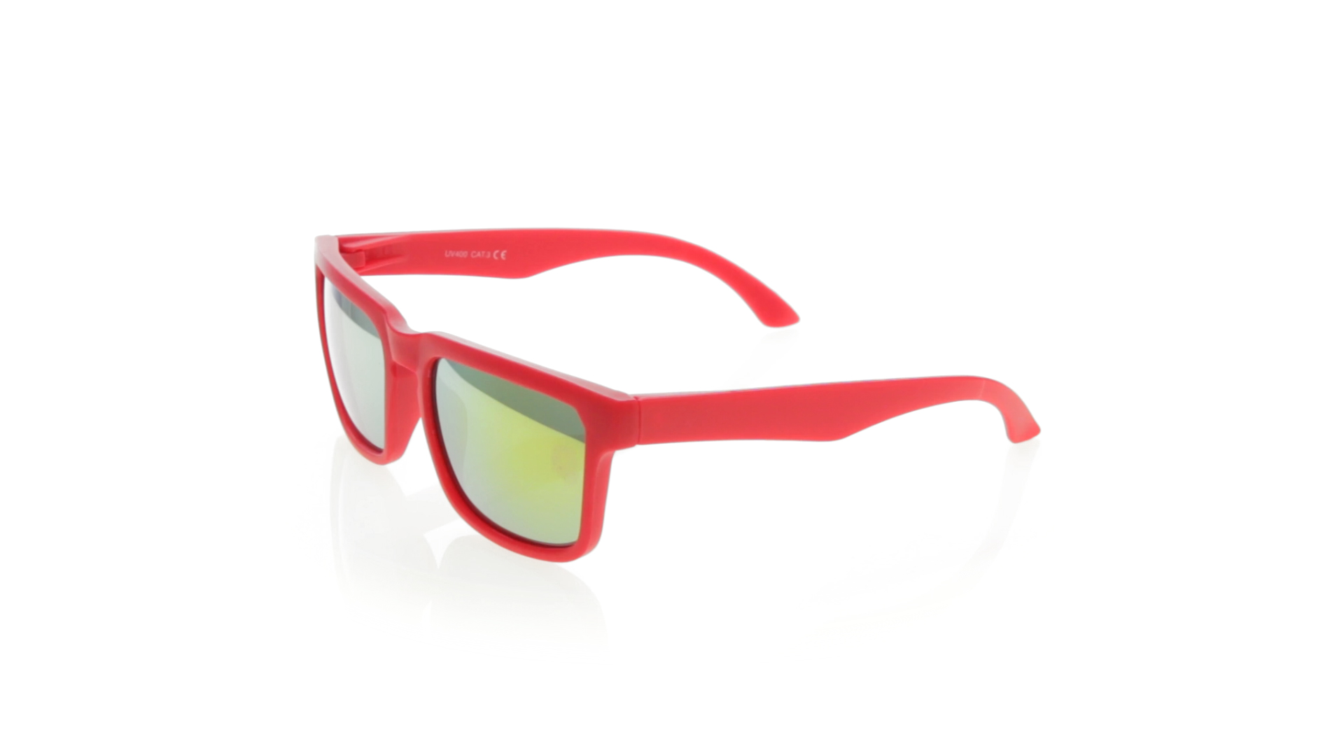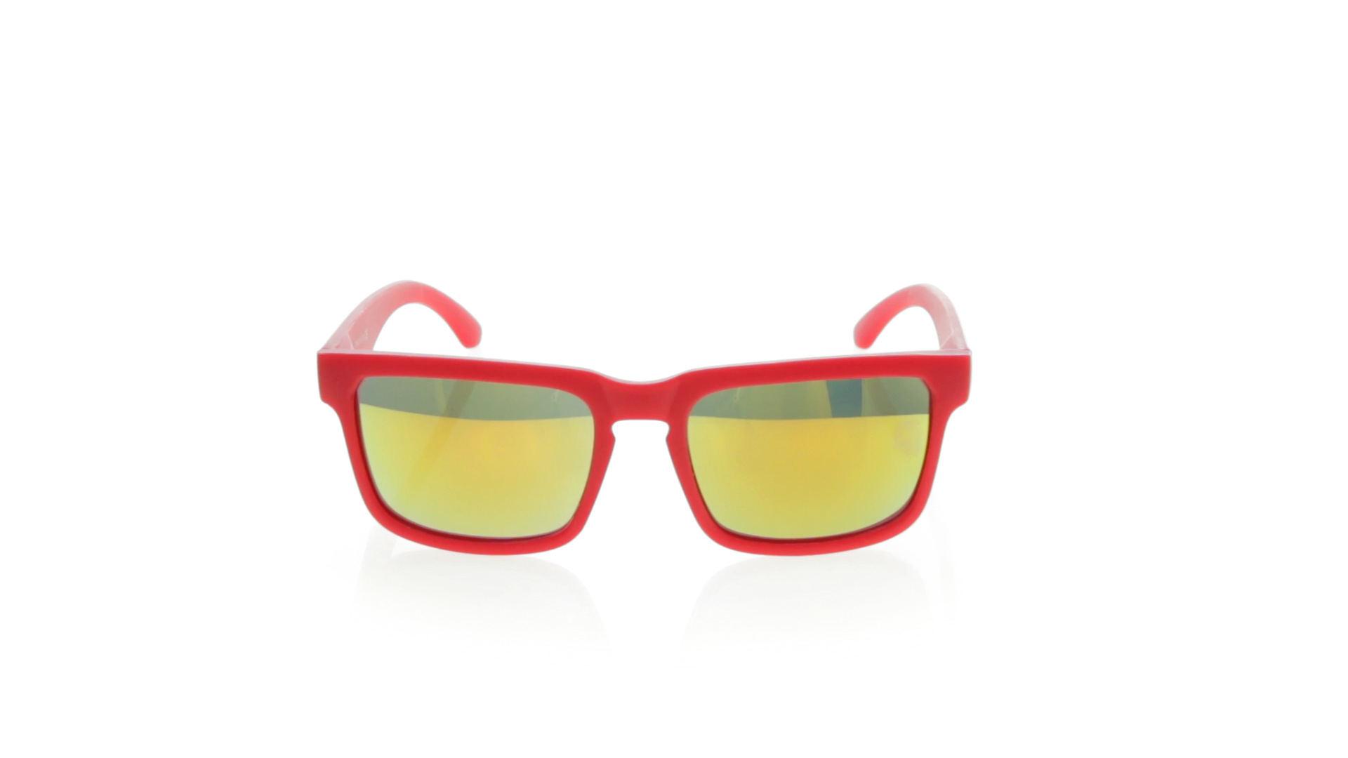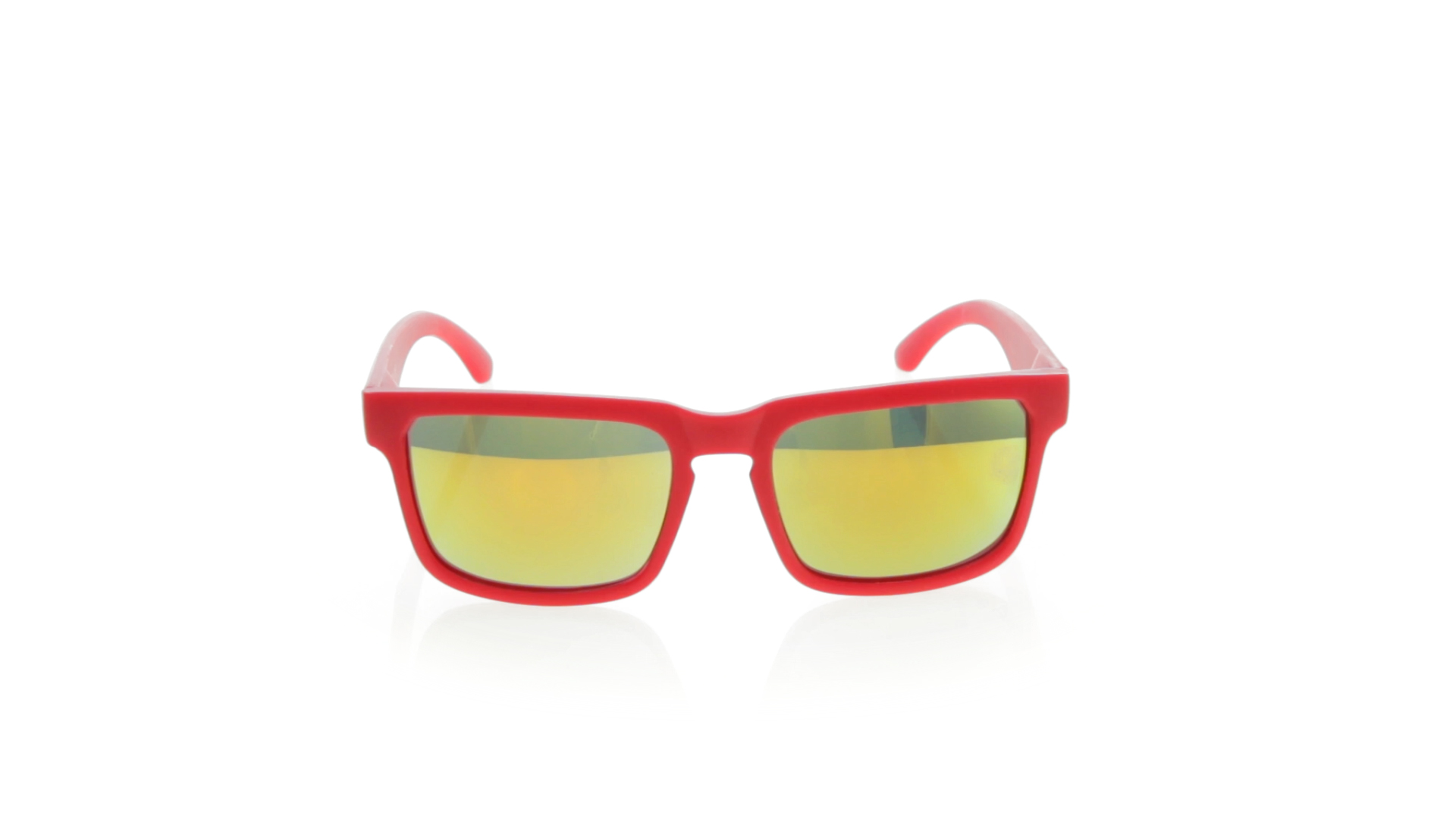 Sonnenbrille mit UV-400-Schutz und klassischem Sommerdesign. Mit mattem Rahmen in fröhlichen Farben und verspiegelten Gläsern in passender Farbe.