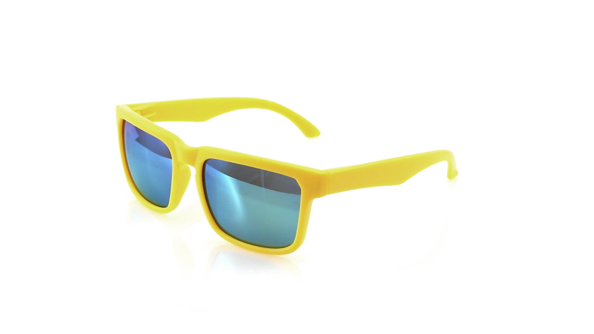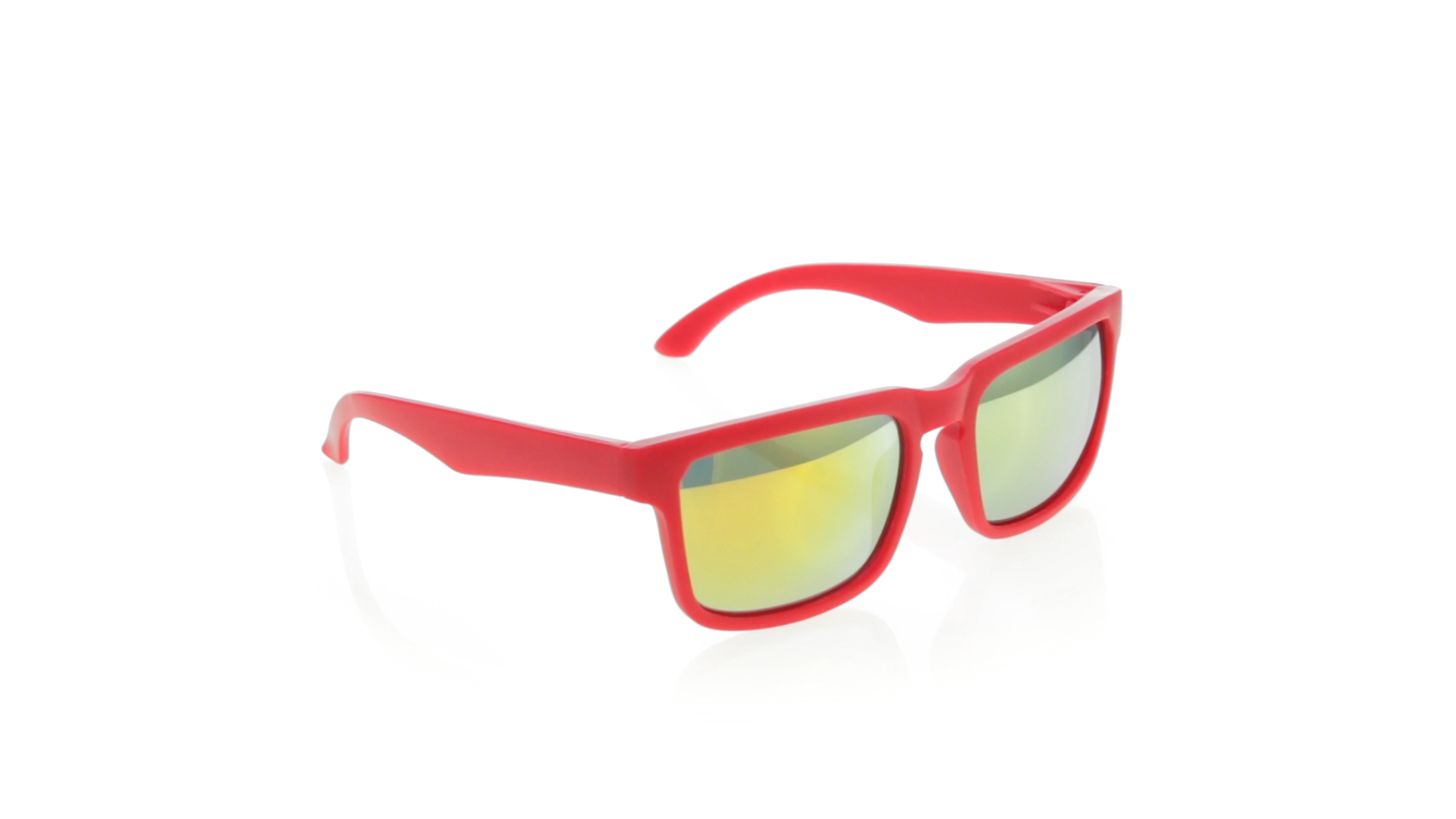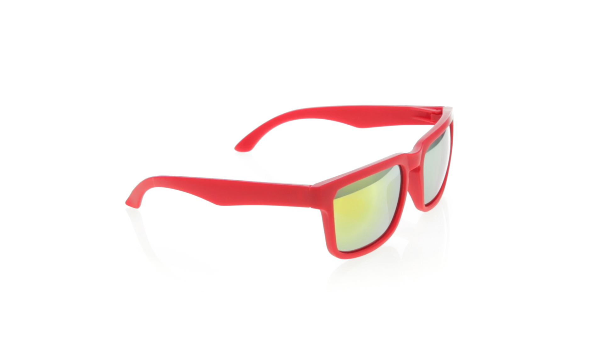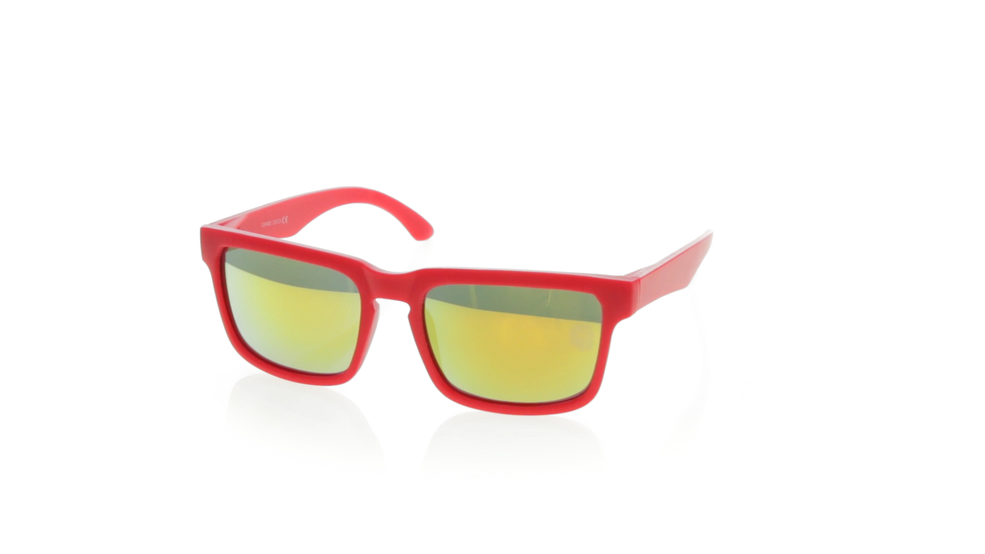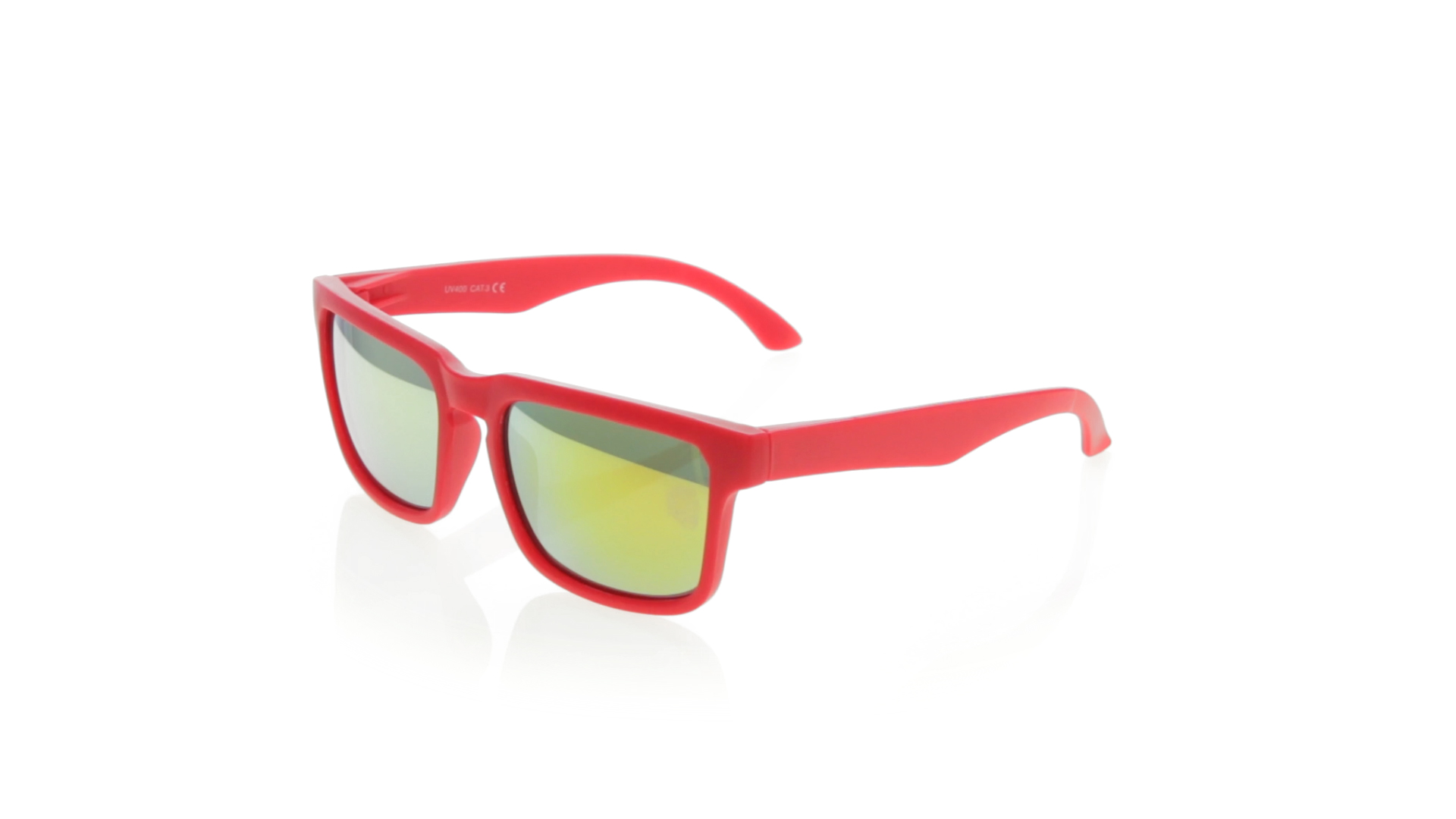 Sonnenbrille mit UV-400-Schutz und klassischem Sommerdesign. Mit mattem Rahmen in fröhlichen Farben und verspiegelten Gläsern in passender Farbe.