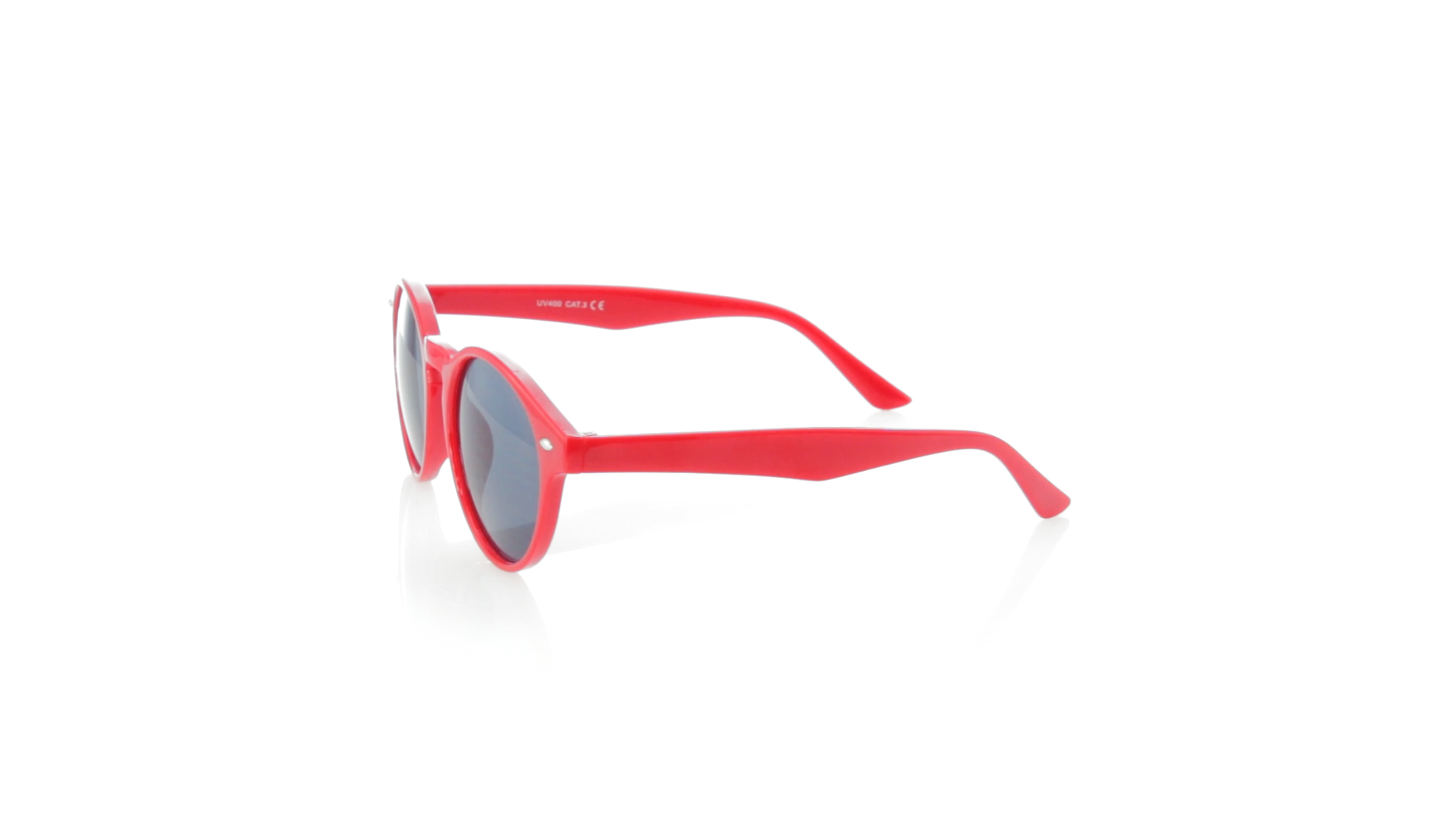 Unisex-Sonnenbrille mit UV-400-Schutz und klassischem rundem Design. Mit Designrahmen in verschiedenen Farben und schwarzen Gläsern.