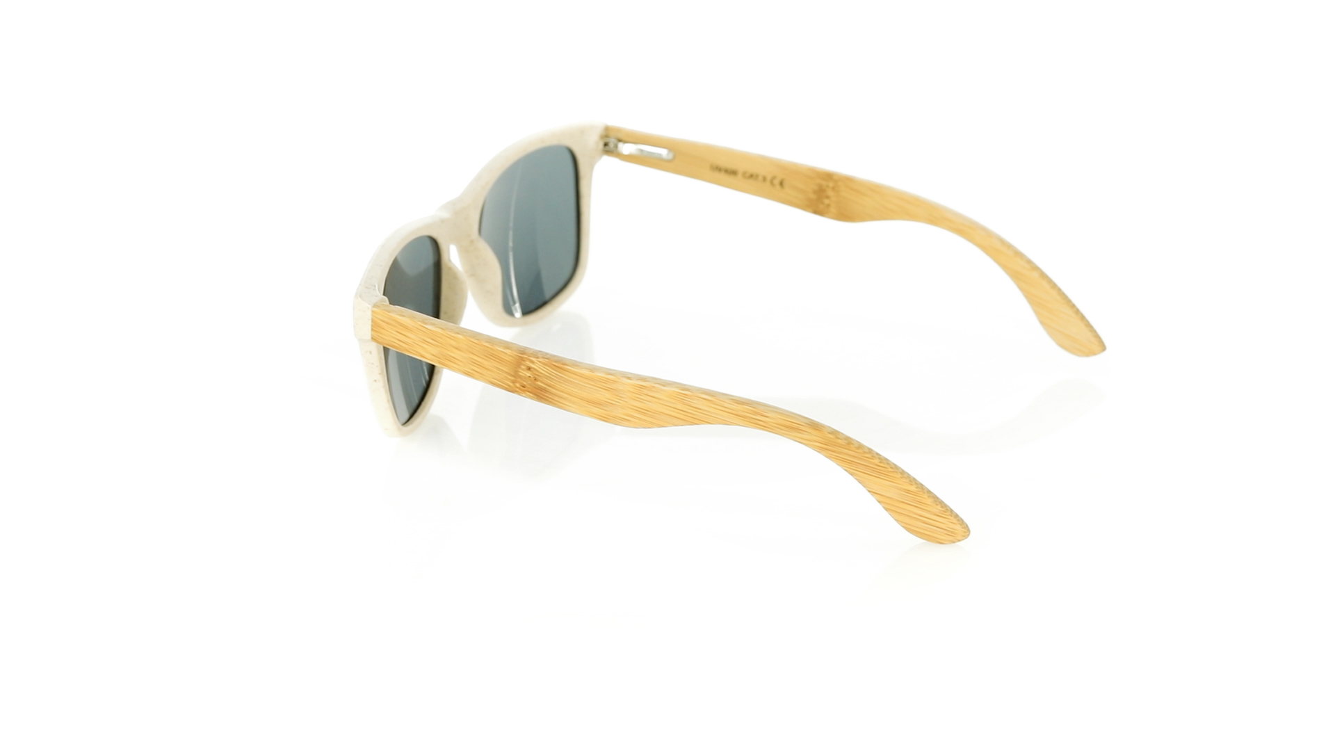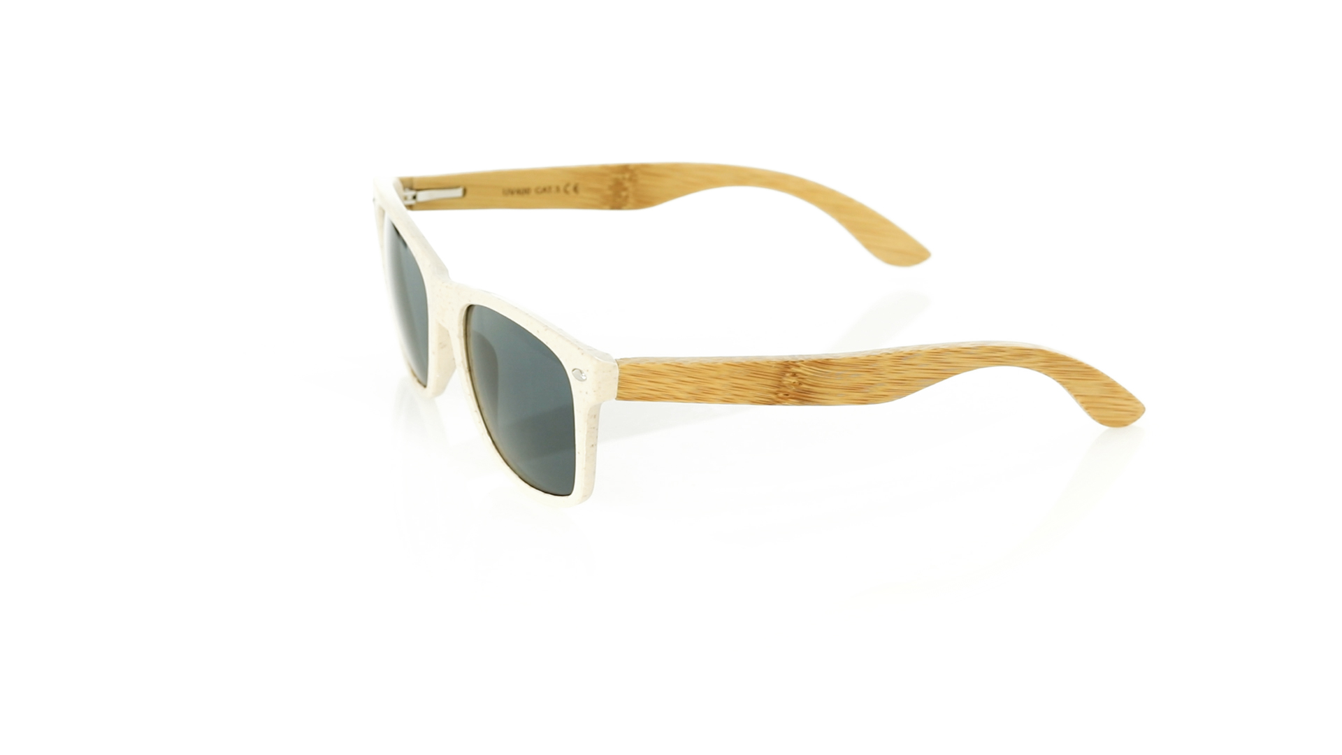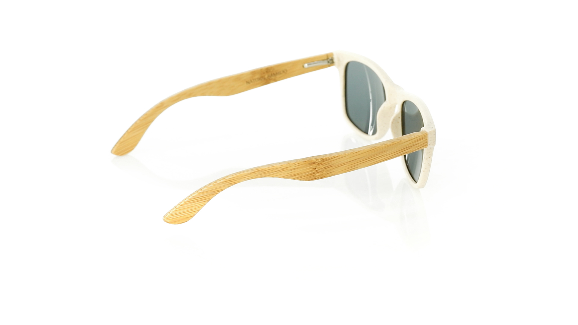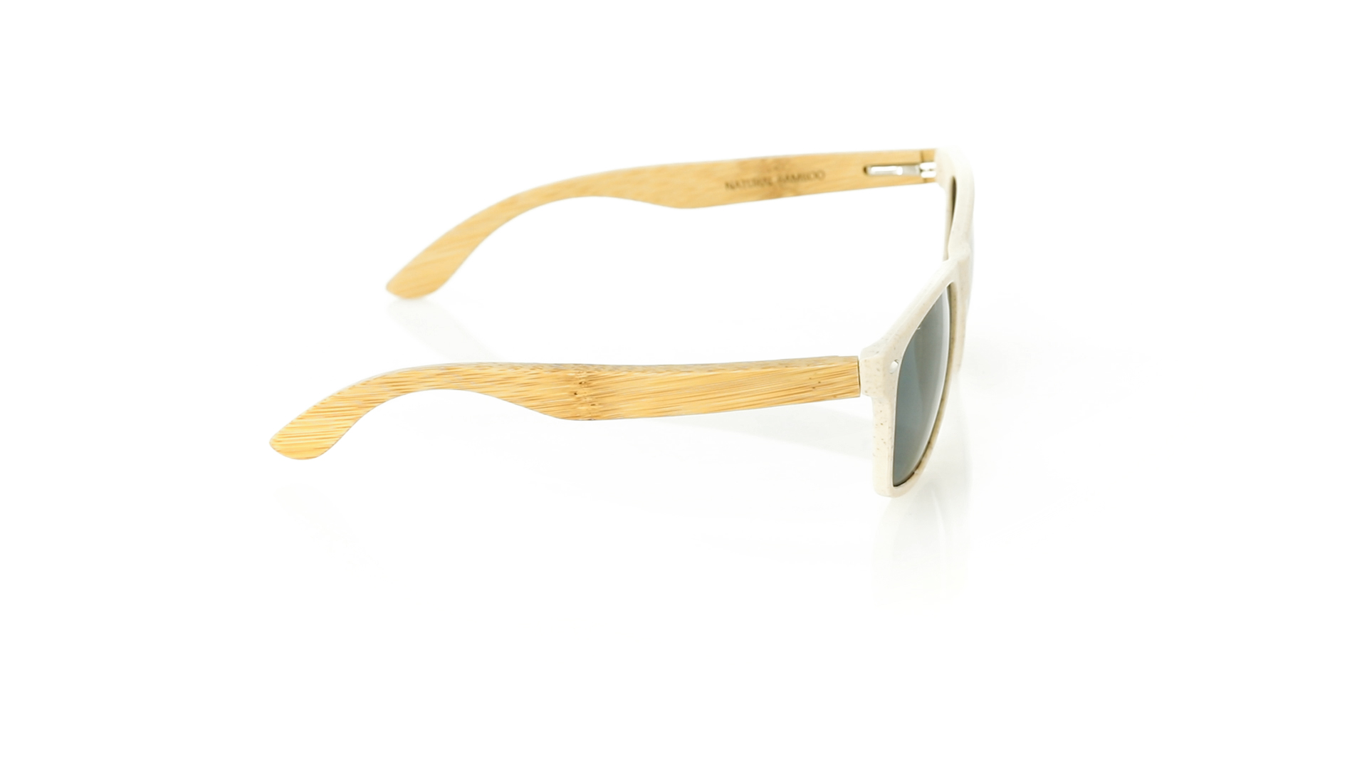 Sonnenbrille aus unserer Naturlinie mit UV 400-Schutz. Mit Rahmen aus Bambusfaser und Bügeln aus Bambus. Glimmende, farblich passende Gläser.