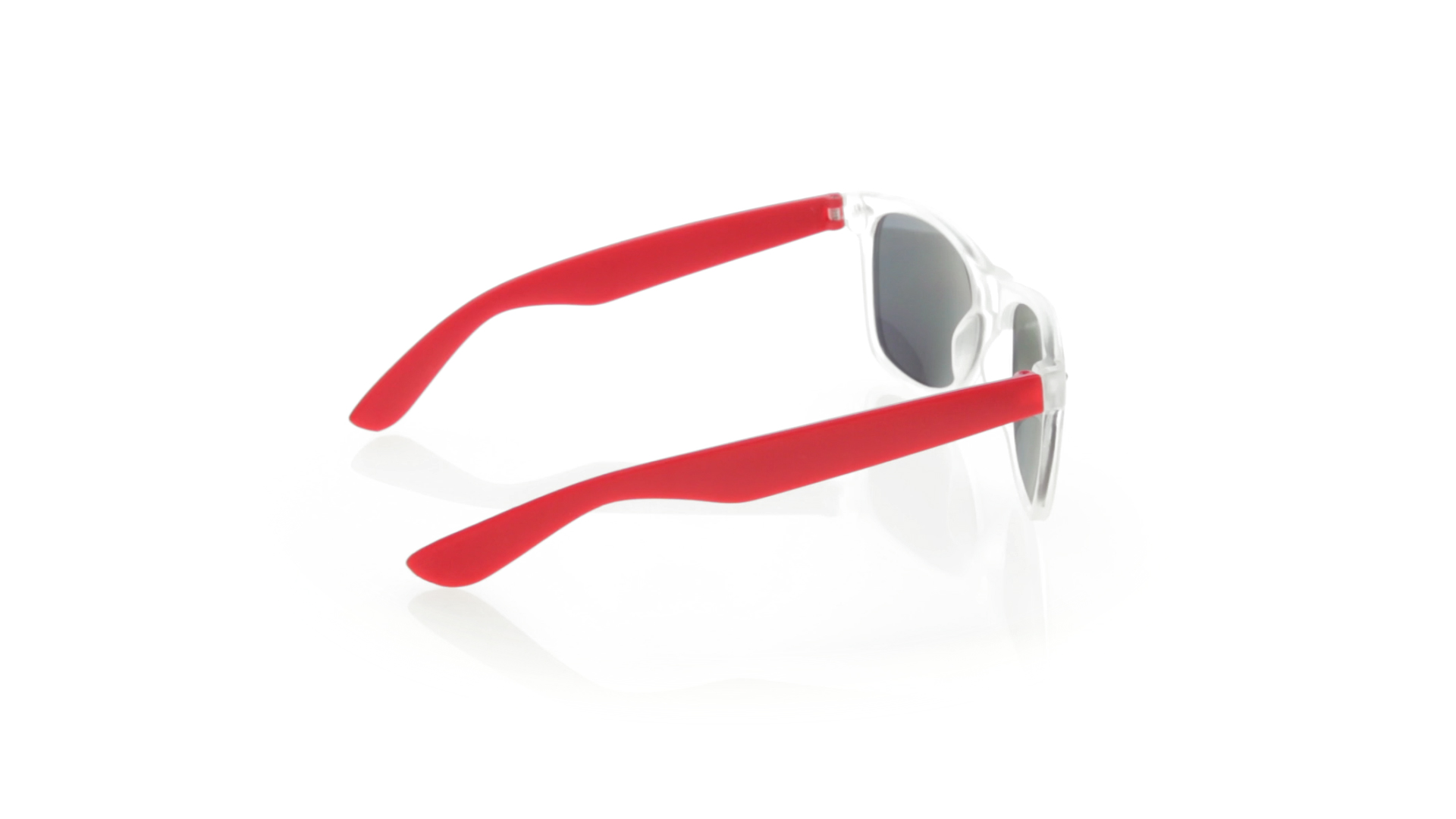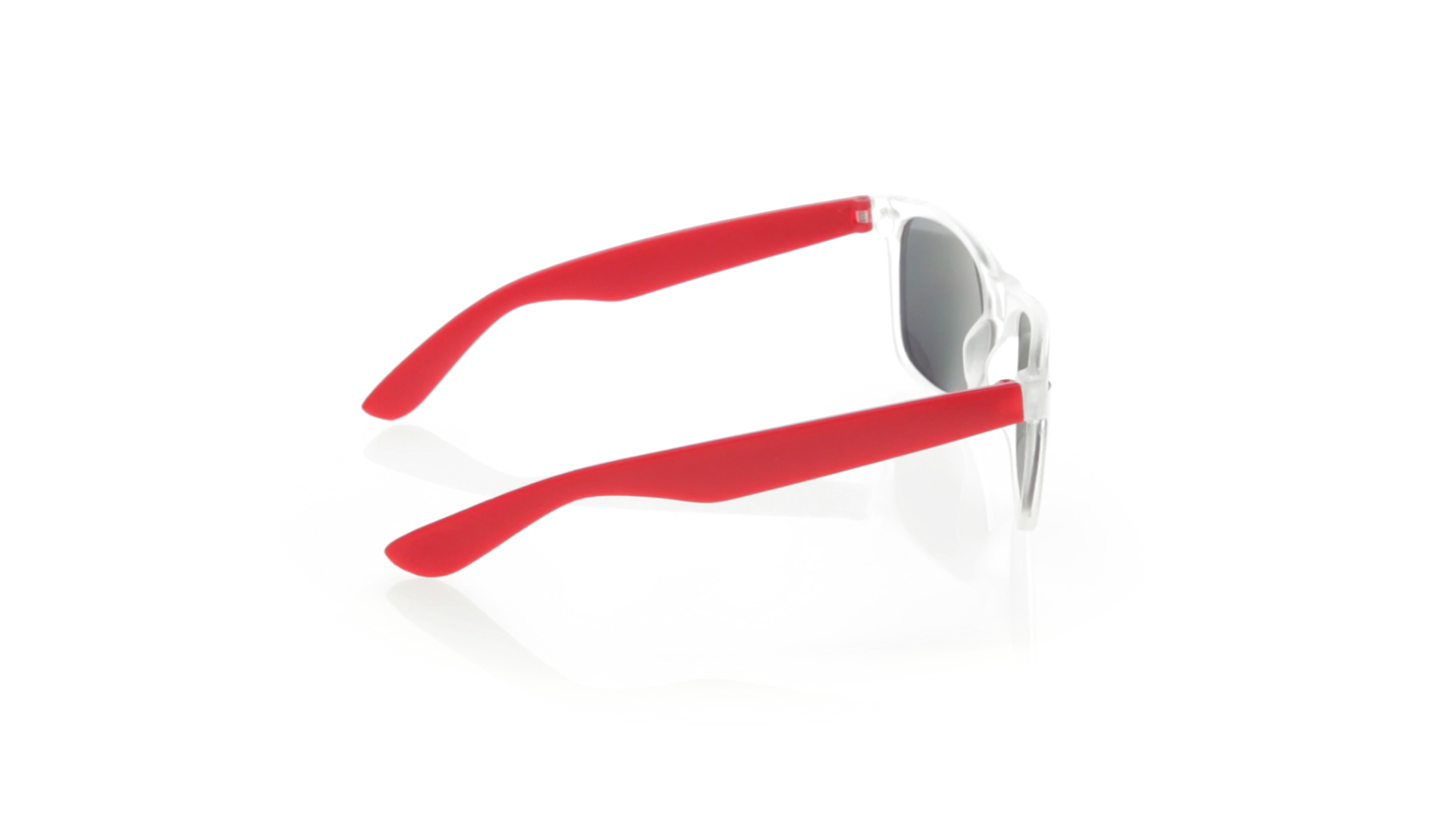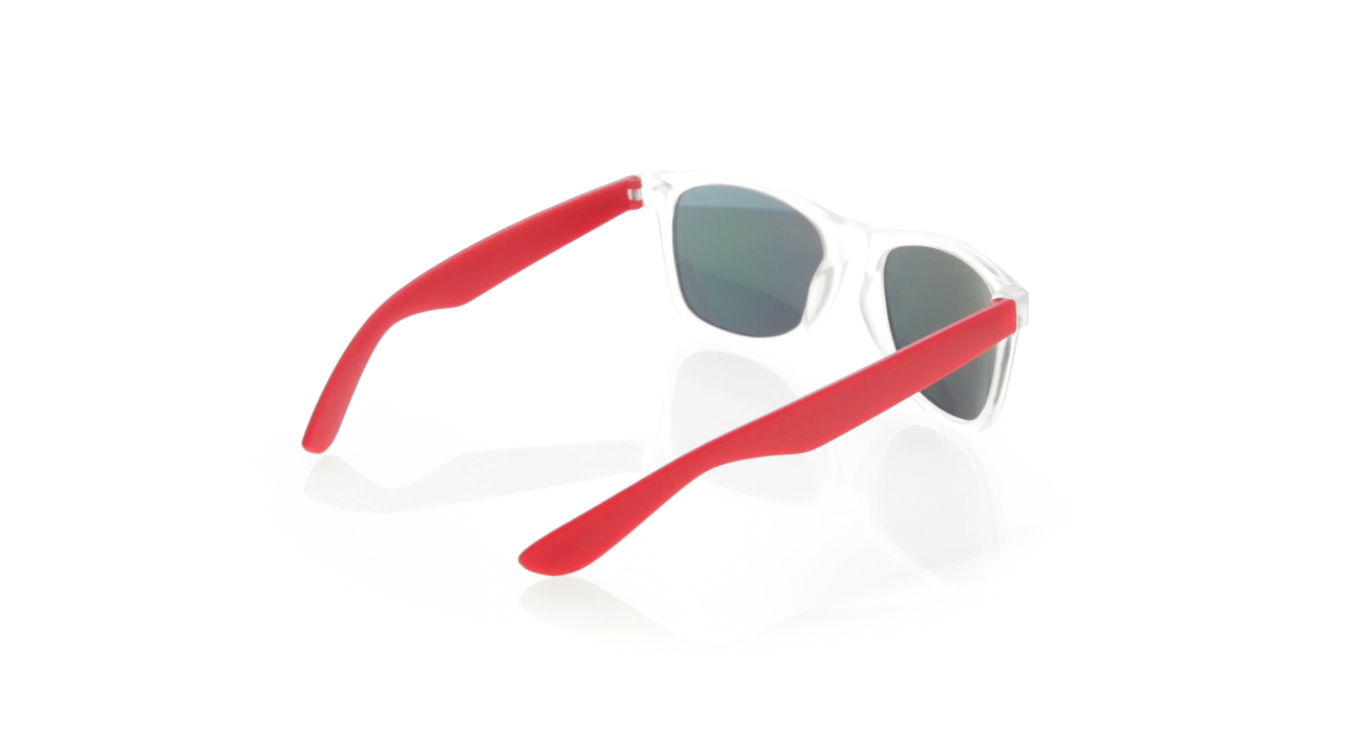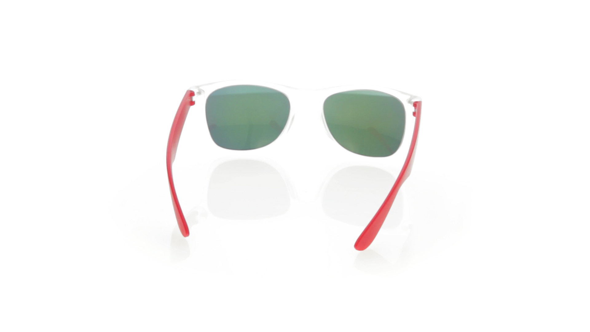 Sonnenbrille mit UV-400-Schutz mit klassischem Design. Mit halbtransparentem Rahmen, Bügeln in fröhlichen Farben und farblich passenden, verspiegelten Gläsern.
