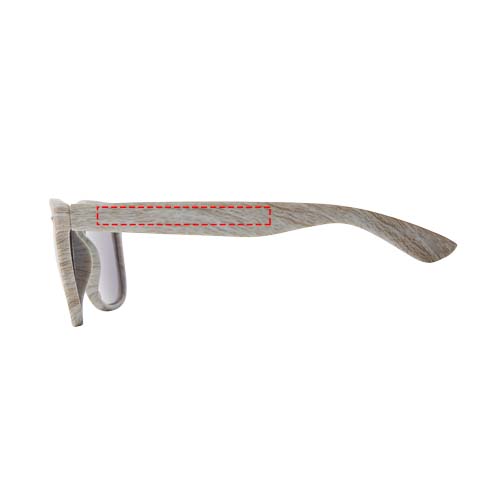 Sonnenbrille im Retro-Design mit holzartiger Oberfläche mit Gläsern der Kategorie 3. Erfüllt EN ISO 12312-1 und UV 400.