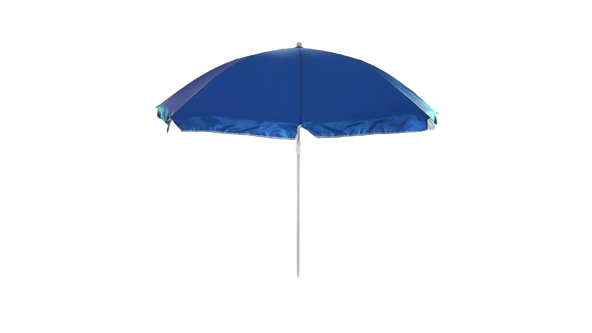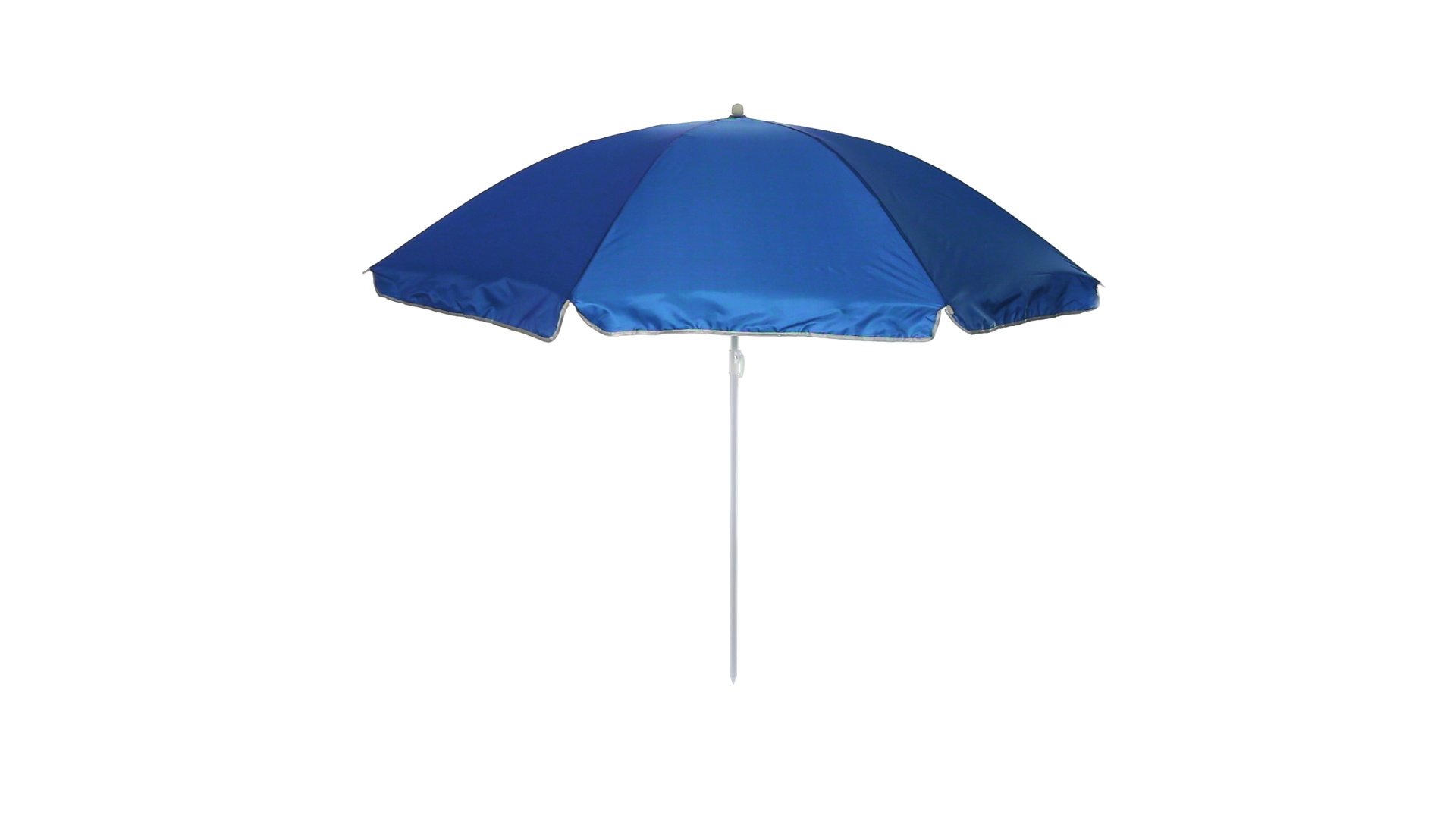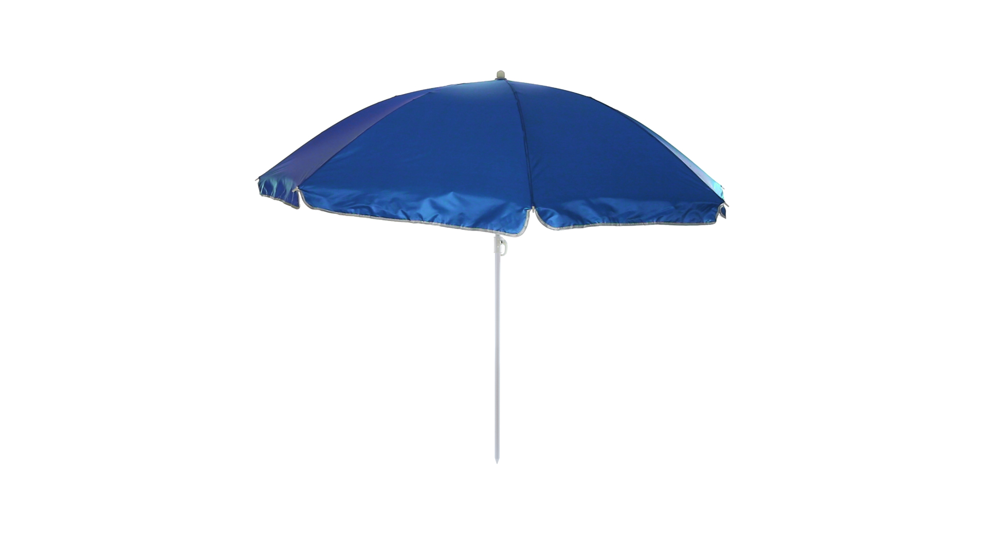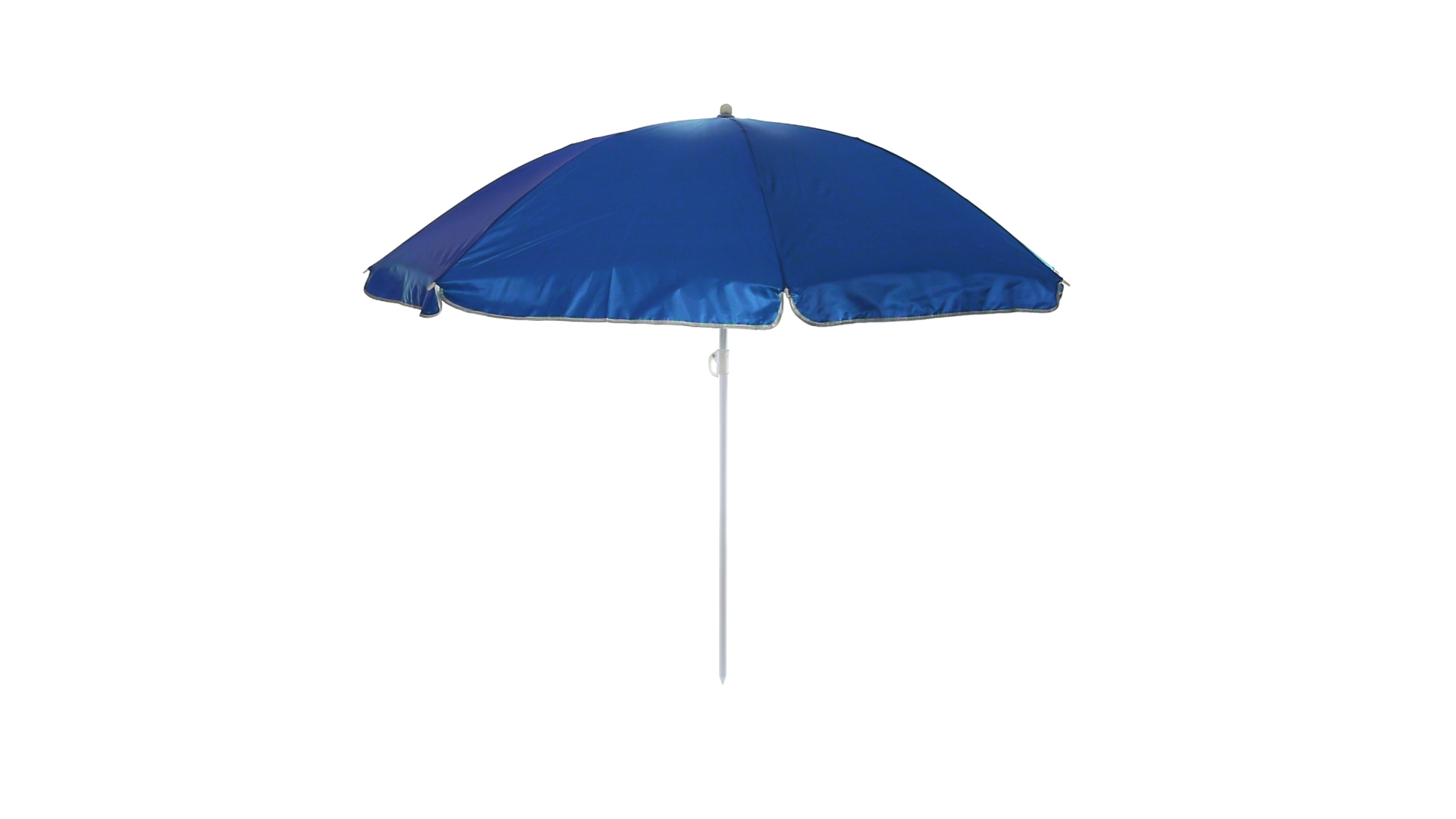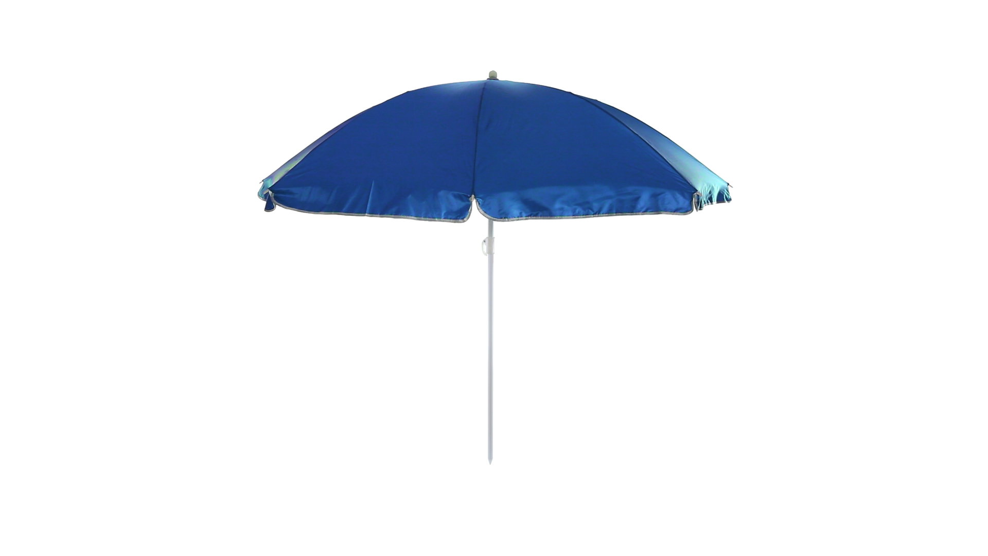 8-Panel-Strandschirm aus widerstandsfähigem Nylon mit silberner UV-Schutzschicht. Teleskopstange, höhen- und neigungsverstellbar. 200 cm Durchmesser, Seitenklappen mit Paspelierung und metallbeschichteten Rohren in weisser Farbe. In vielen leuchtenden Farben erhältlich, wird in einer Nylonhülle mit Schultergurt geliefert.