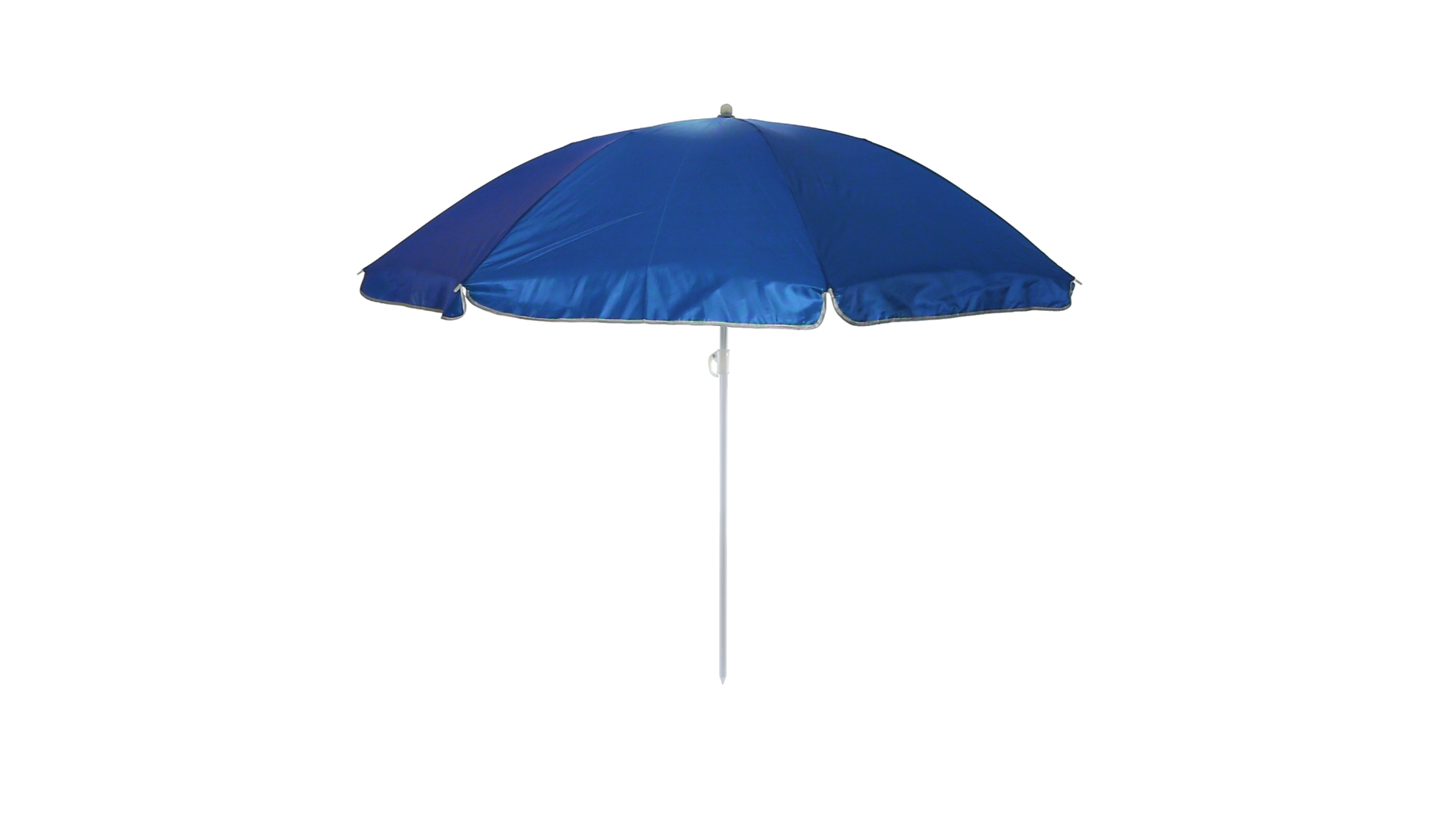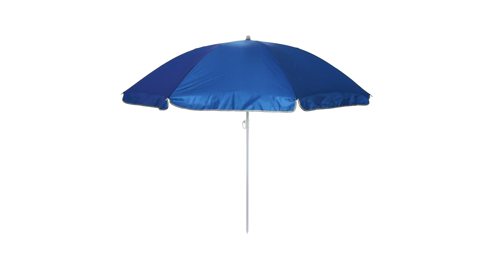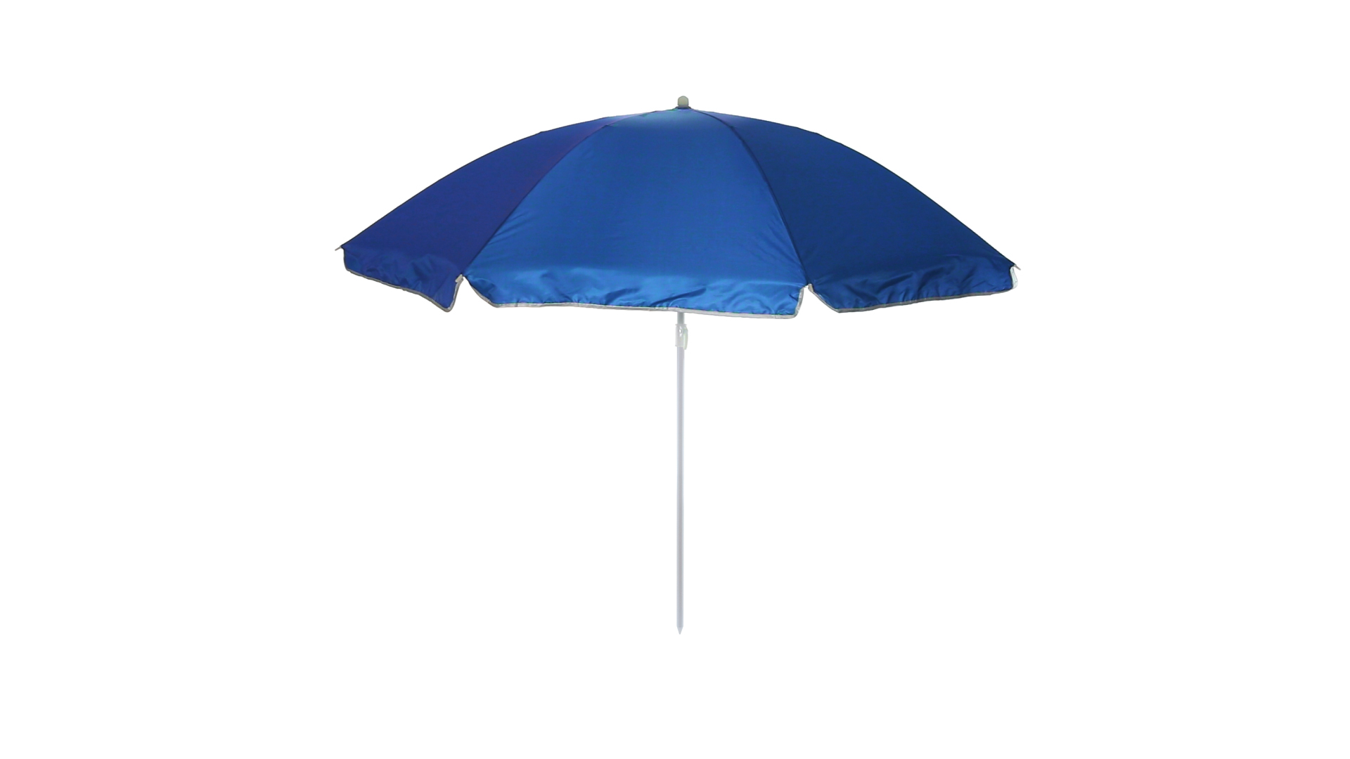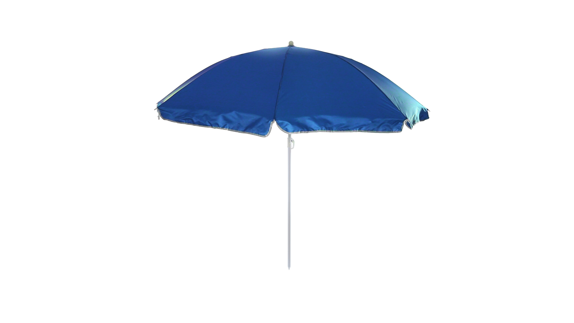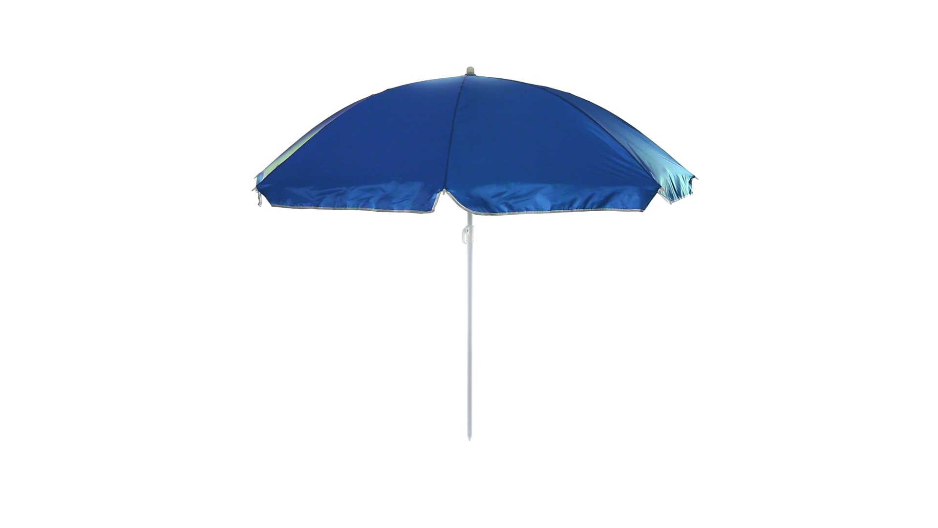 8-Panel-Strandschirm aus widerstandsfähigem Nylon mit silberner UV-Schutzschicht. Teleskopstange, höhen- und neigungsverstellbar. 200 cm Durchmesser, Seitenklappen mit Paspelierung und metallbeschichteten Rohren in weisser Farbe. In vielen leuchtenden Farben erhältlich, wird in einer Nylonhülle mit Schultergurt geliefert.