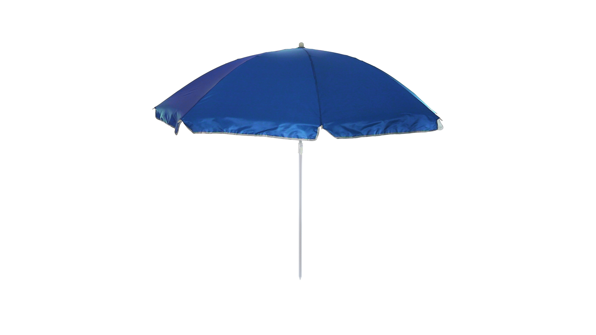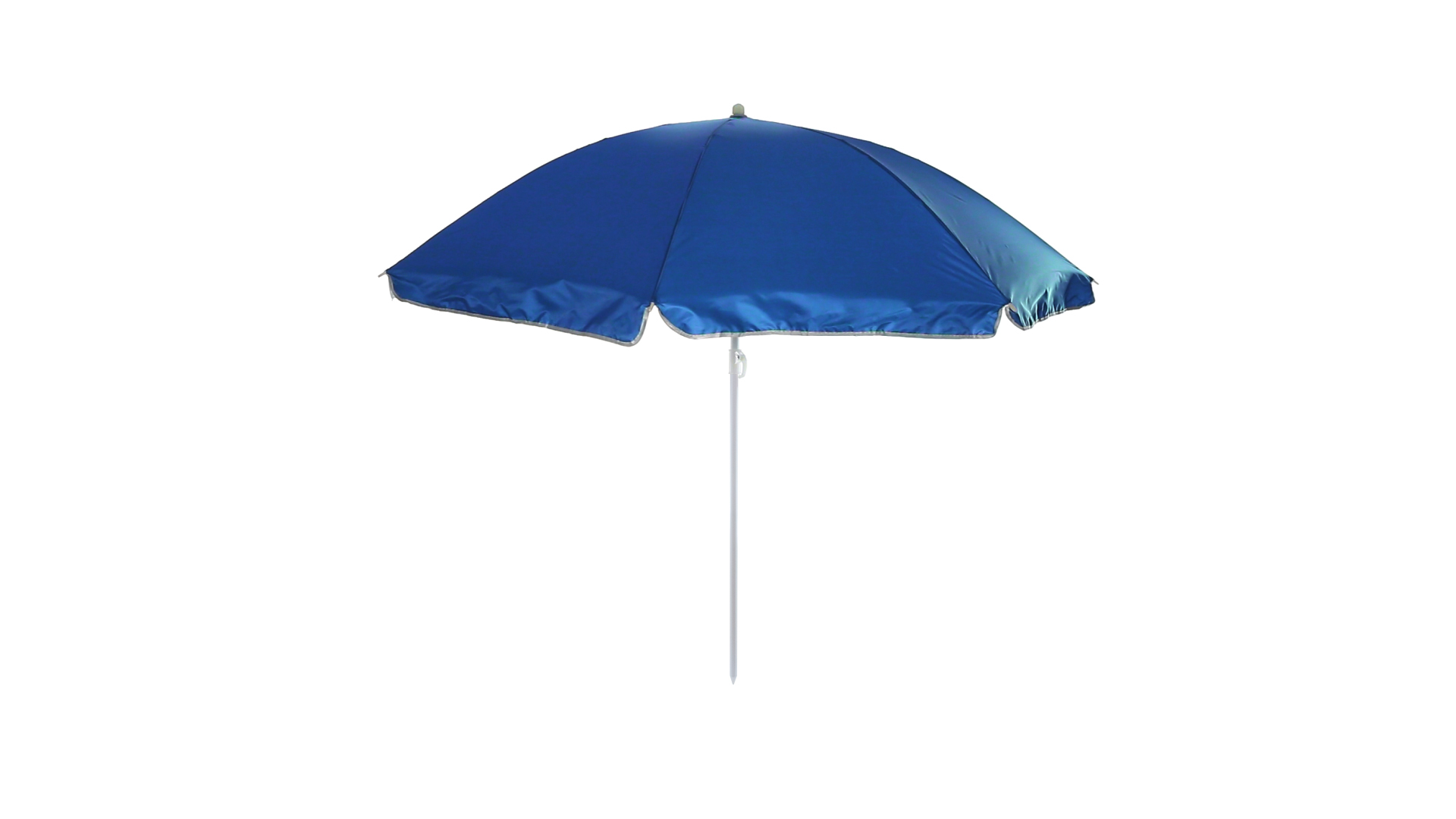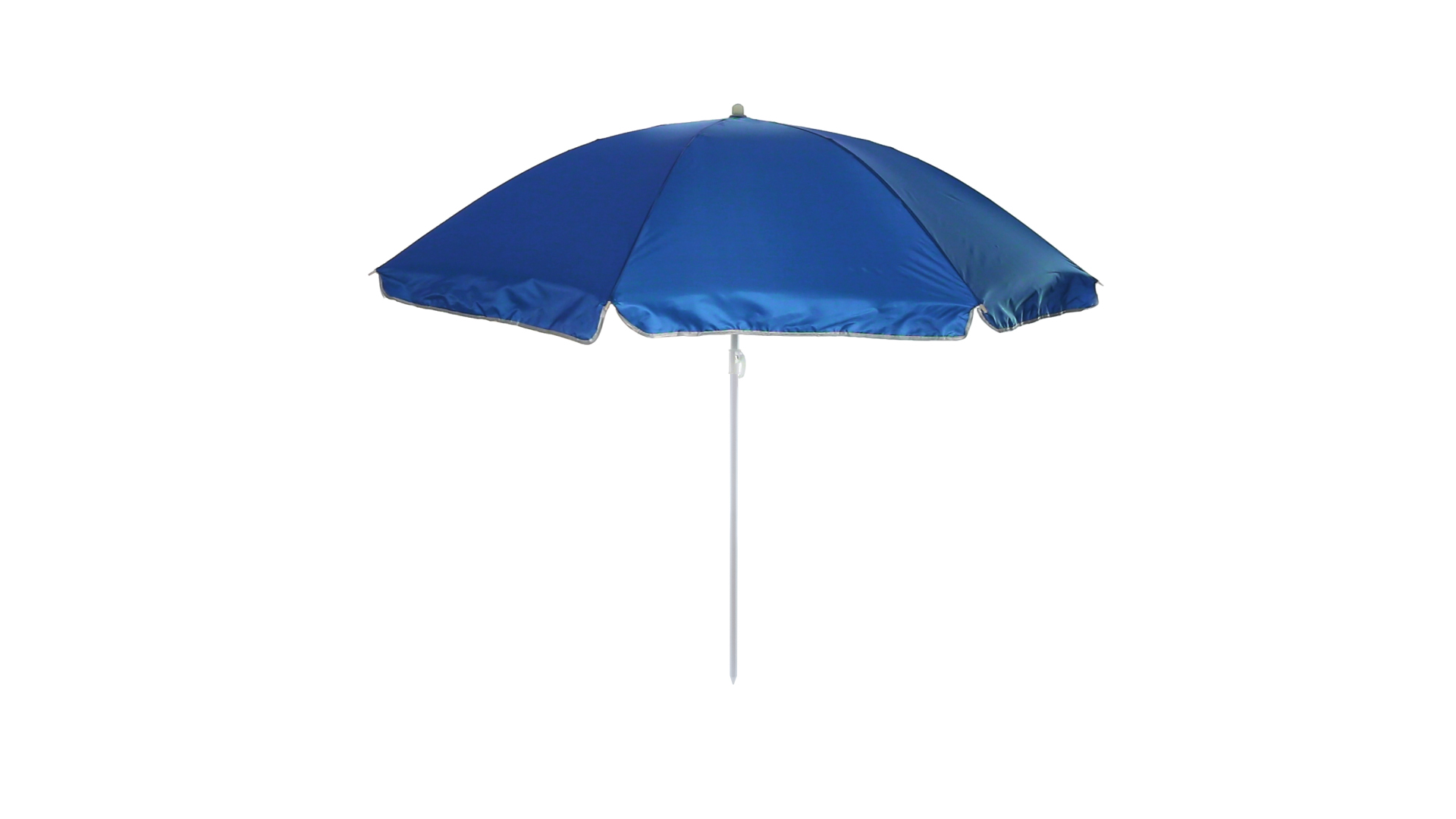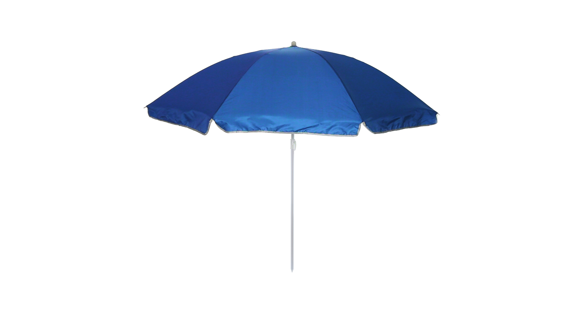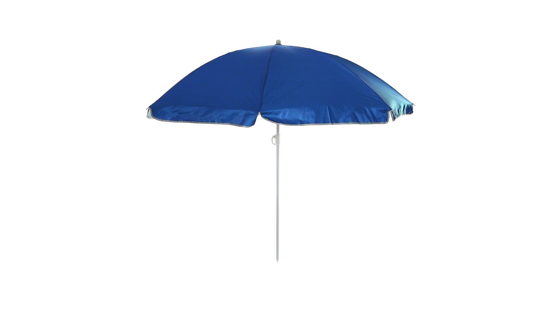 8-Panel-Strandschirm aus widerstandsfähigem Nylon mit silberner UV-Schutzschicht. Teleskopstange, höhen- und neigungsverstellbar. 200 cm Durchmesser, Seitenklappen mit Paspelierung und metallbeschichteten Rohren in weisser Farbe. In vielen leuchtenden Farben erhältlich, wird in einer Nylonhülle mit Schultergurt geliefert.