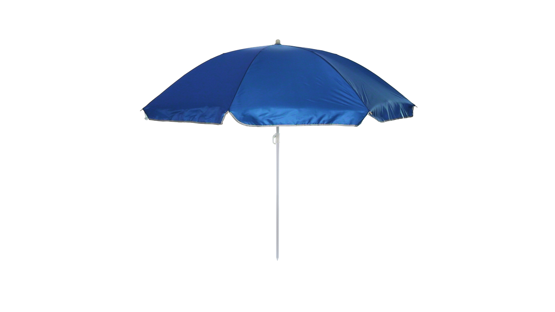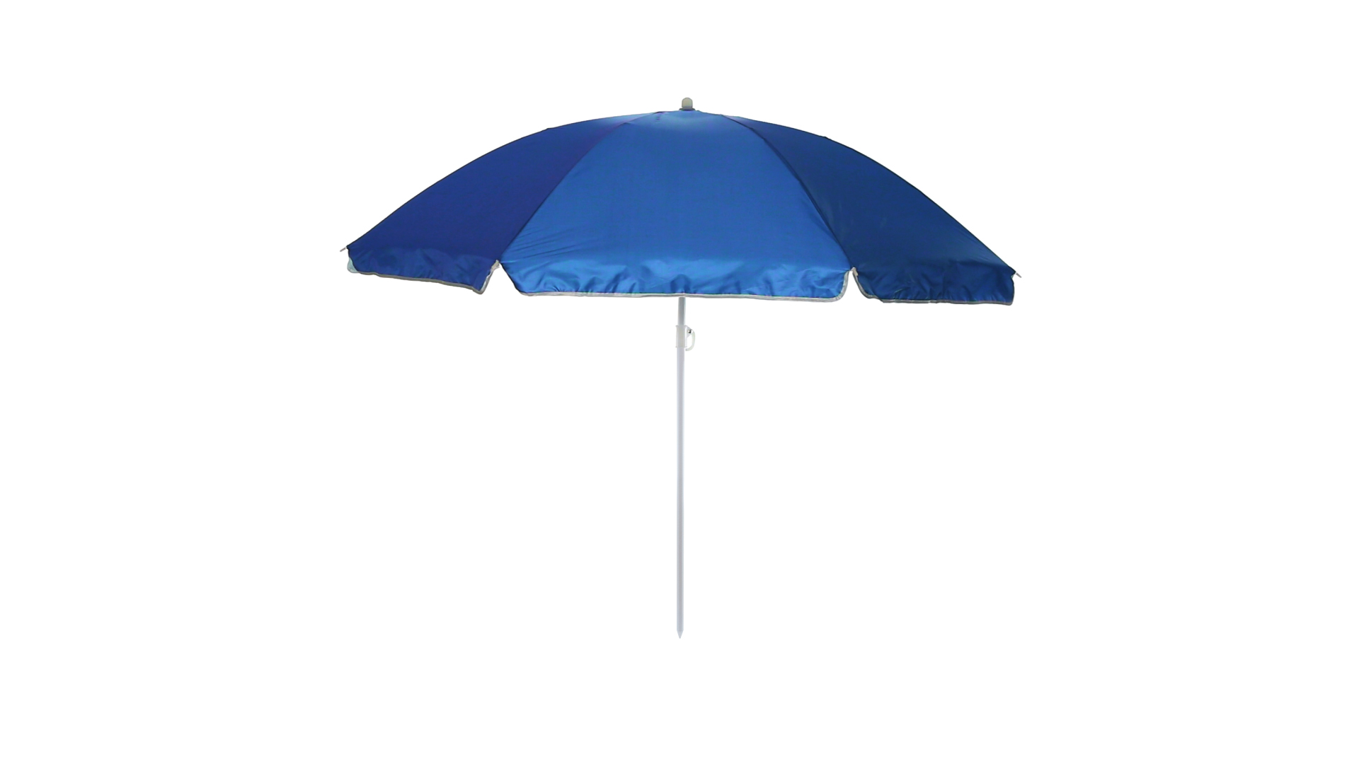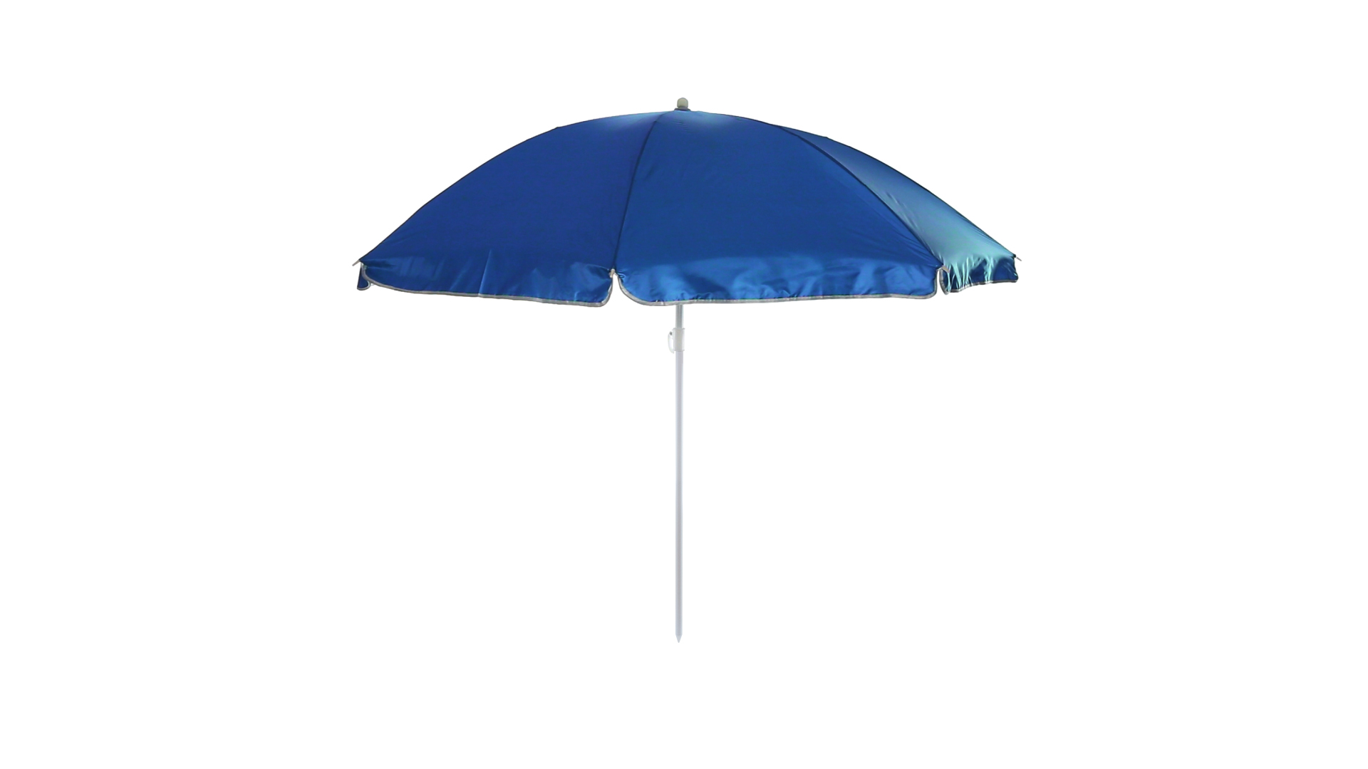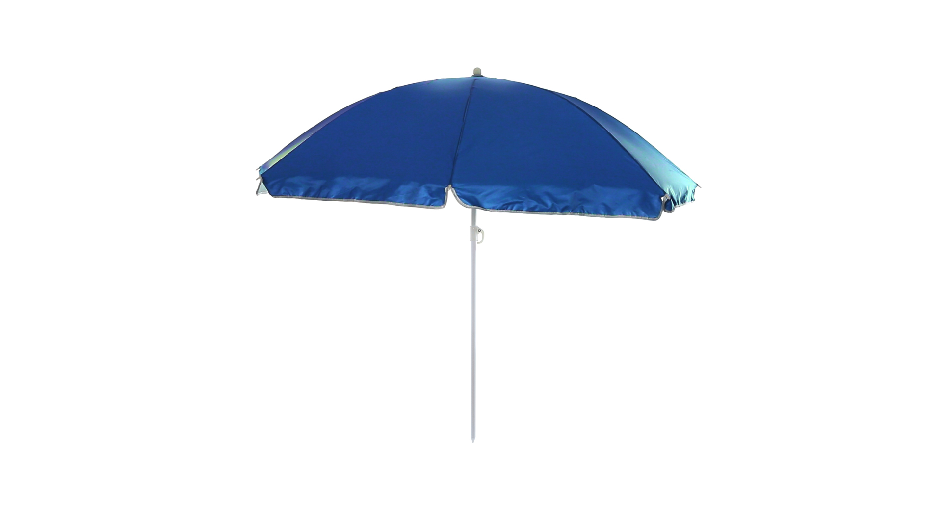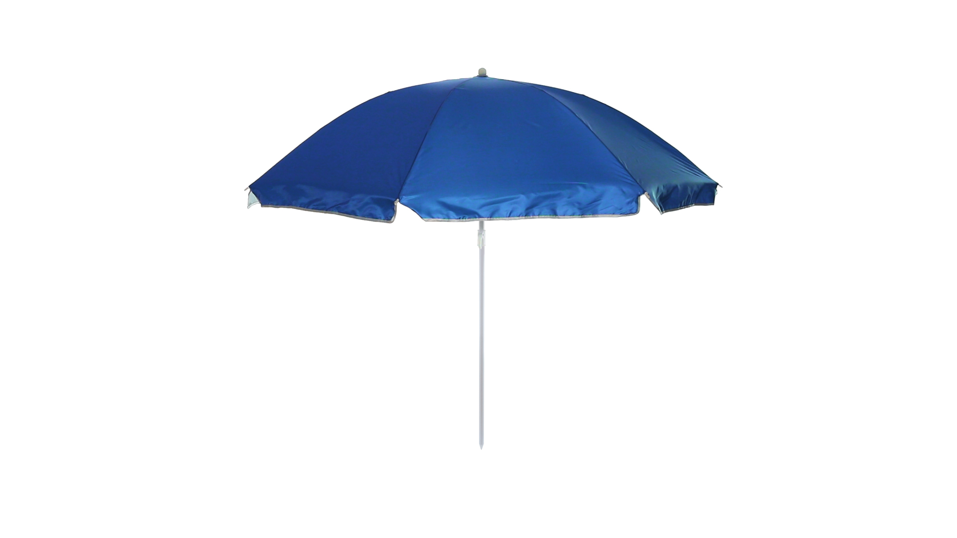 8-Panel-Strandschirm aus widerstandsfähigem Nylon mit silberner UV-Schutzschicht. Teleskopstange, höhen- und neigungsverstellbar. 200 cm Durchmesser, Seitenklappen mit Paspelierung und metallbeschichteten Rohren in weisser Farbe. In vielen leuchtenden Farben erhältlich, wird in einer Nylonhülle mit Schultergurt geliefert.