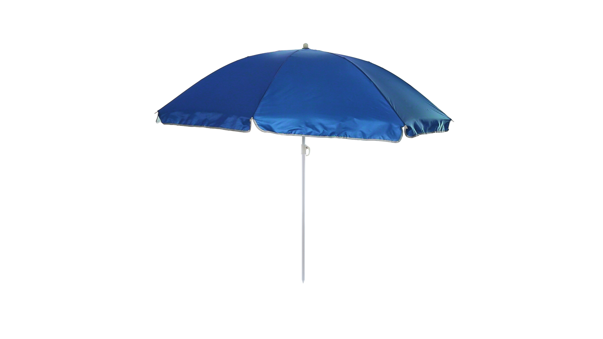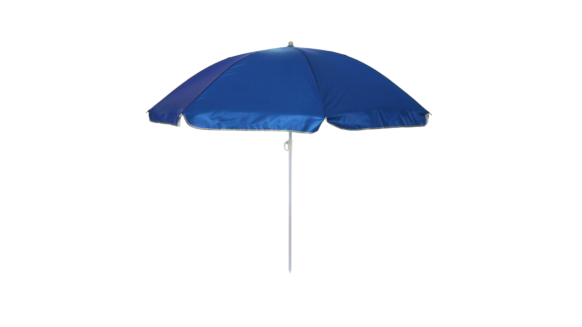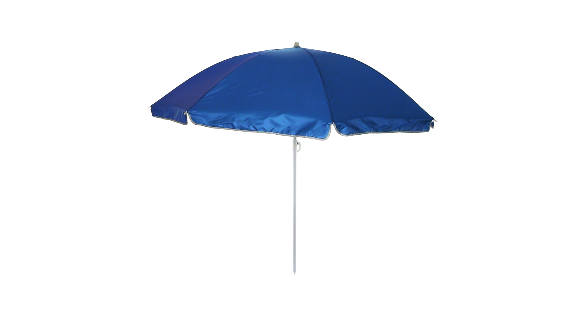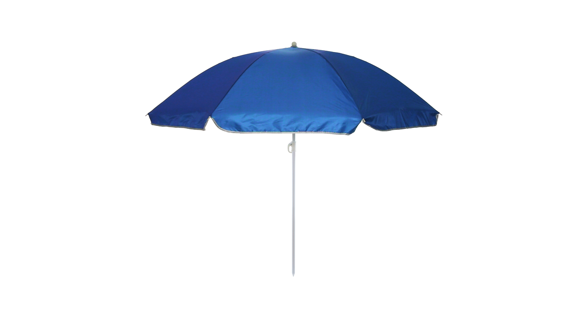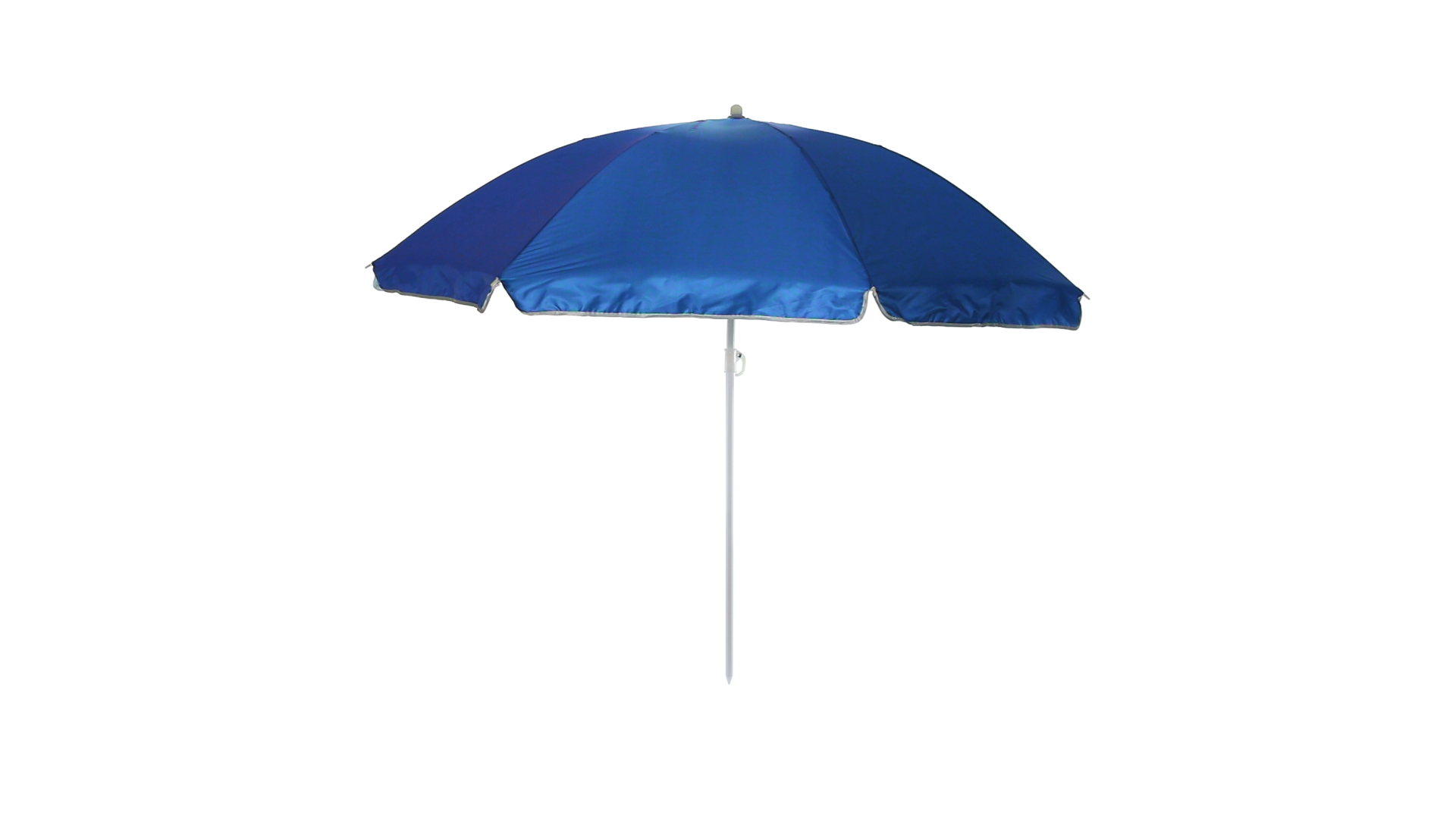 8-Panel-Strandschirm aus widerstandsfähigem Nylon mit silberner UV-Schutzschicht. Teleskopstange, höhen- und neigungsverstellbar. 200 cm Durchmesser, Seitenklappen mit Paspelierung und metallbeschichteten Rohren in weisser Farbe. In vielen leuchtenden Farben erhältlich, wird in einer Nylonhülle mit Schultergurt geliefert.