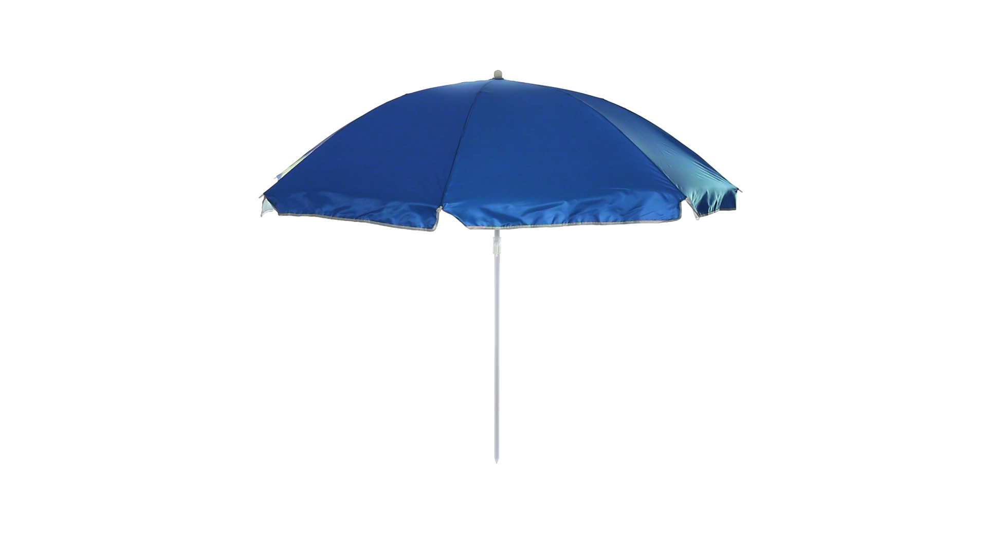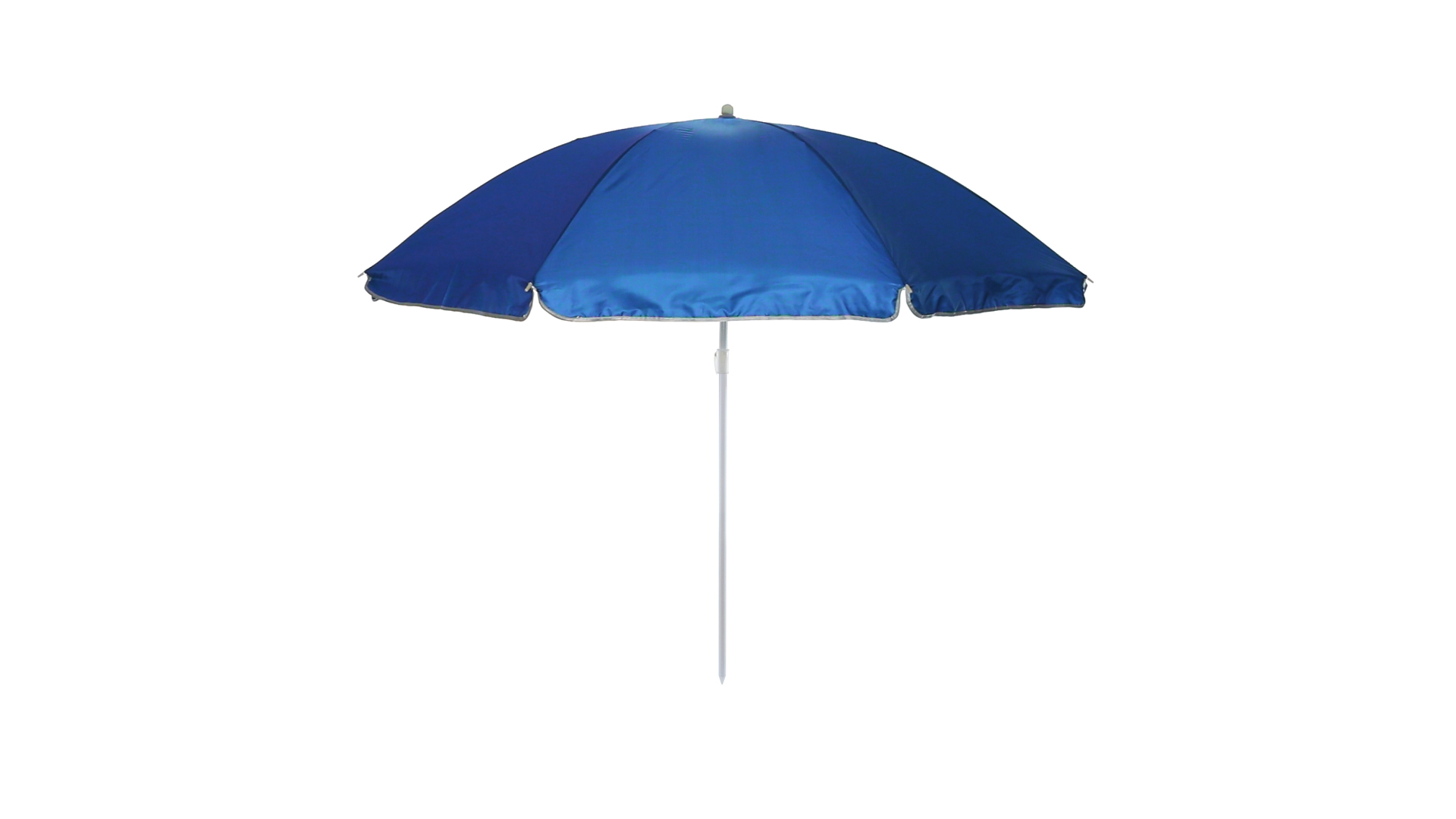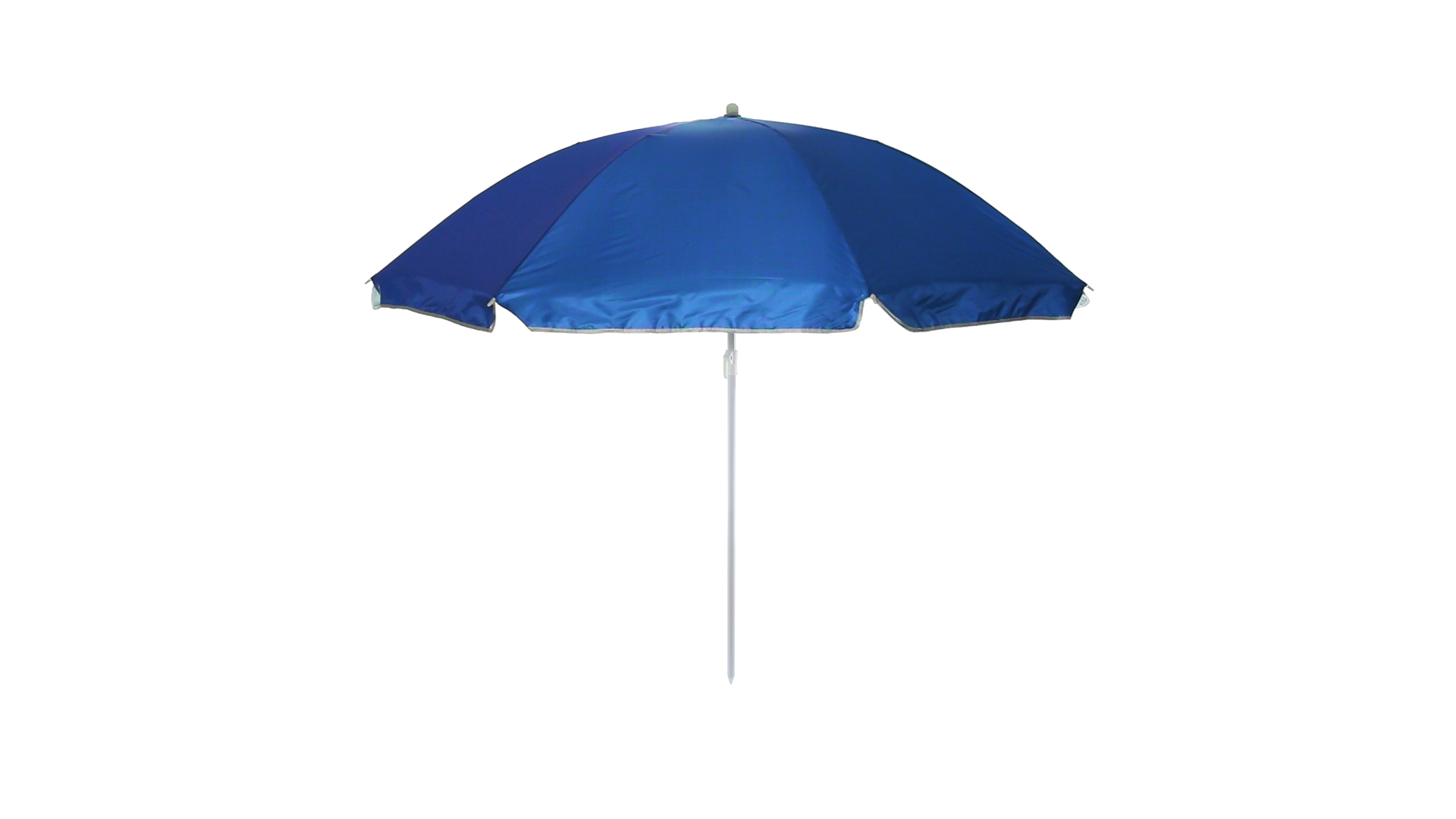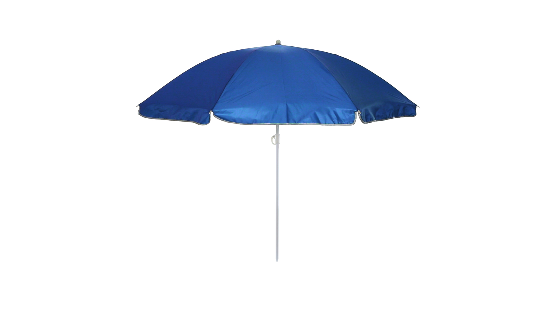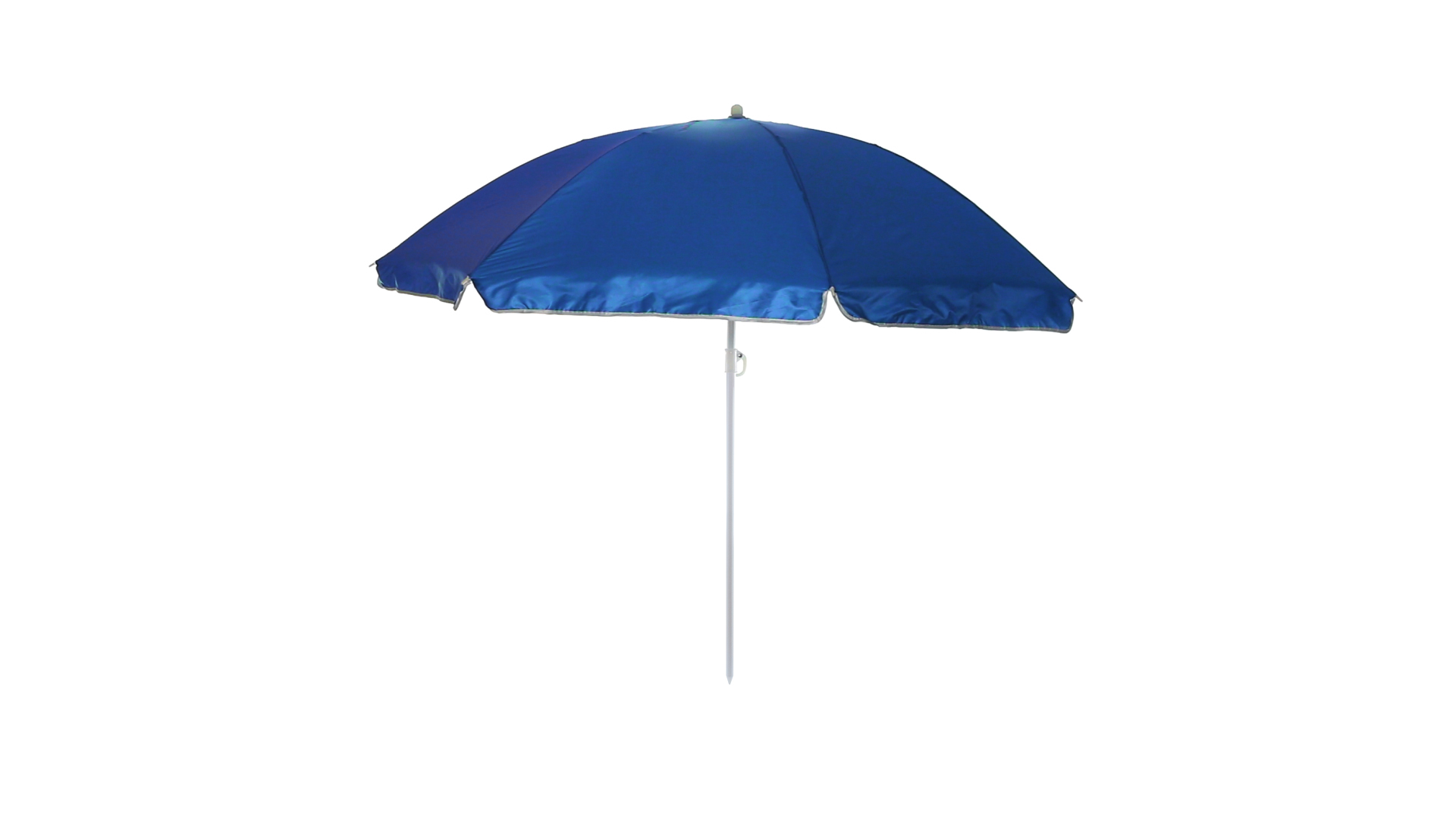 8-Panel-Strandschirm aus widerstandsfähigem Nylon mit silberner UV-Schutzschicht. Teleskopstange, höhen- und neigungsverstellbar. 200 cm Durchmesser, Seitenklappen mit Paspelierung und metallbeschichteten Rohren in weisser Farbe. In vielen leuchtenden Farben erhältlich, wird in einer Nylonhülle mit Schultergurt geliefert.