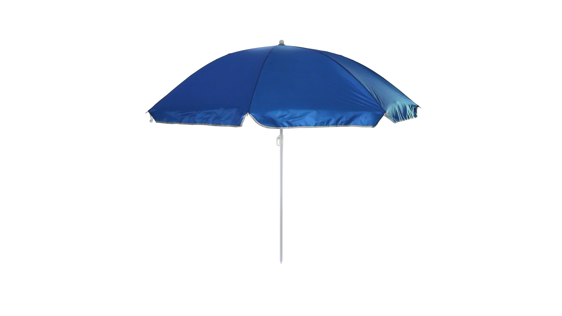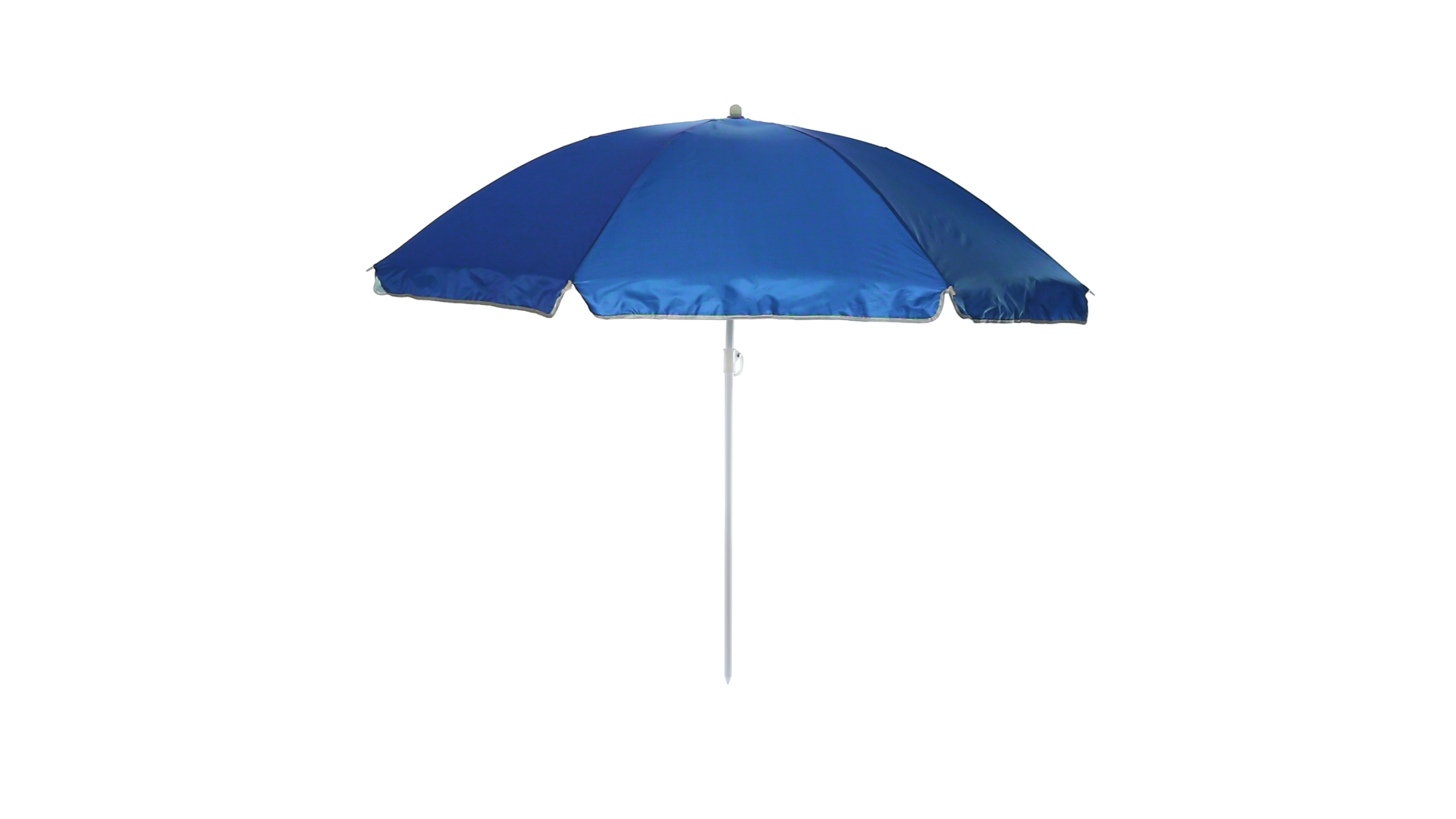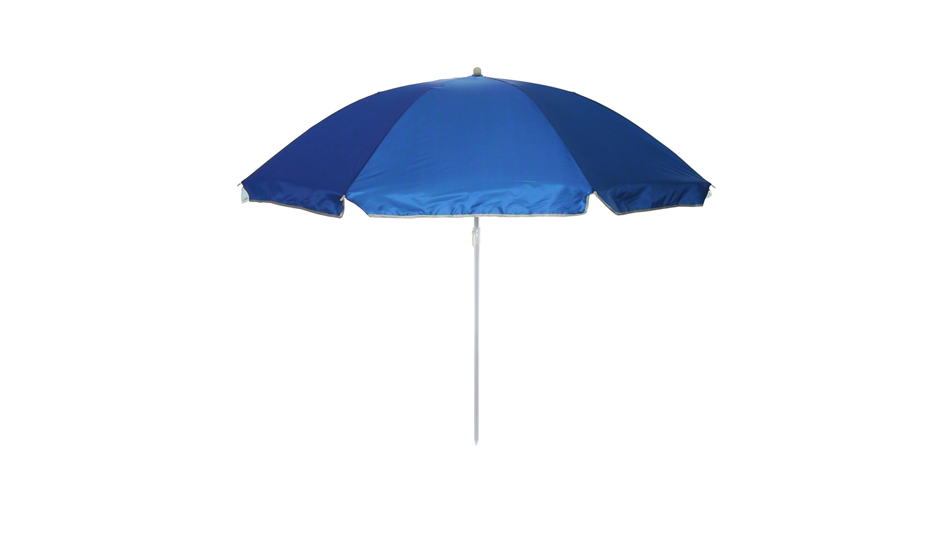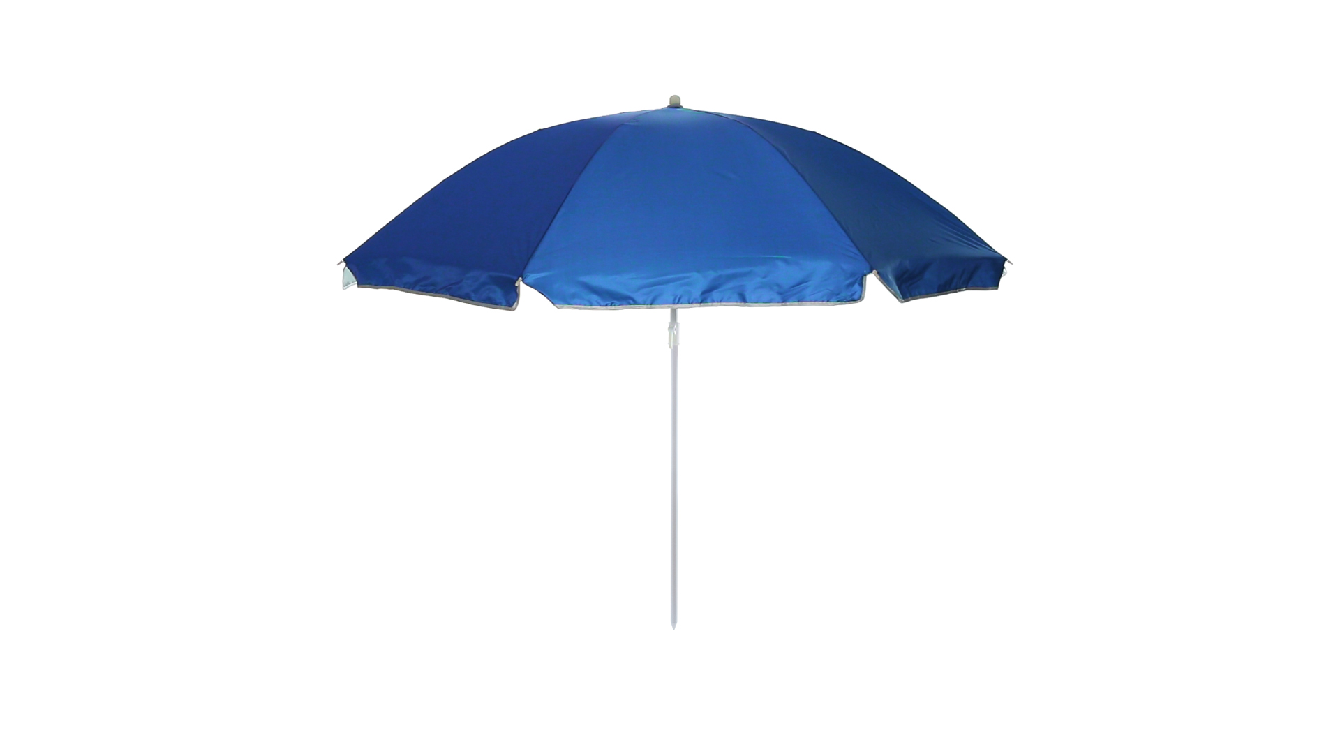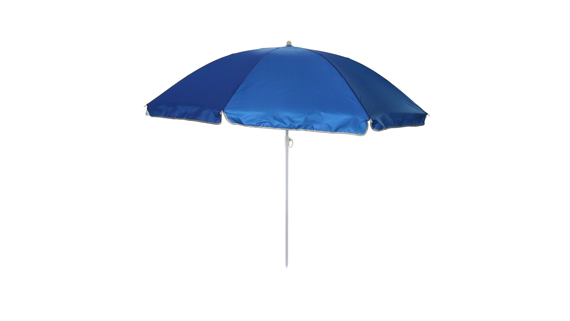 8-Panel-Strandschirm aus widerstandsfähigem Nylon mit silberner UV-Schutzschicht. Teleskopstange, höhen- und neigungsverstellbar. 200 cm Durchmesser, Seitenklappen mit Paspelierung und metallbeschichteten Rohren in weisser Farbe. In vielen leuchtenden Farben erhältlich, wird in einer Nylonhülle mit Schultergurt geliefert.