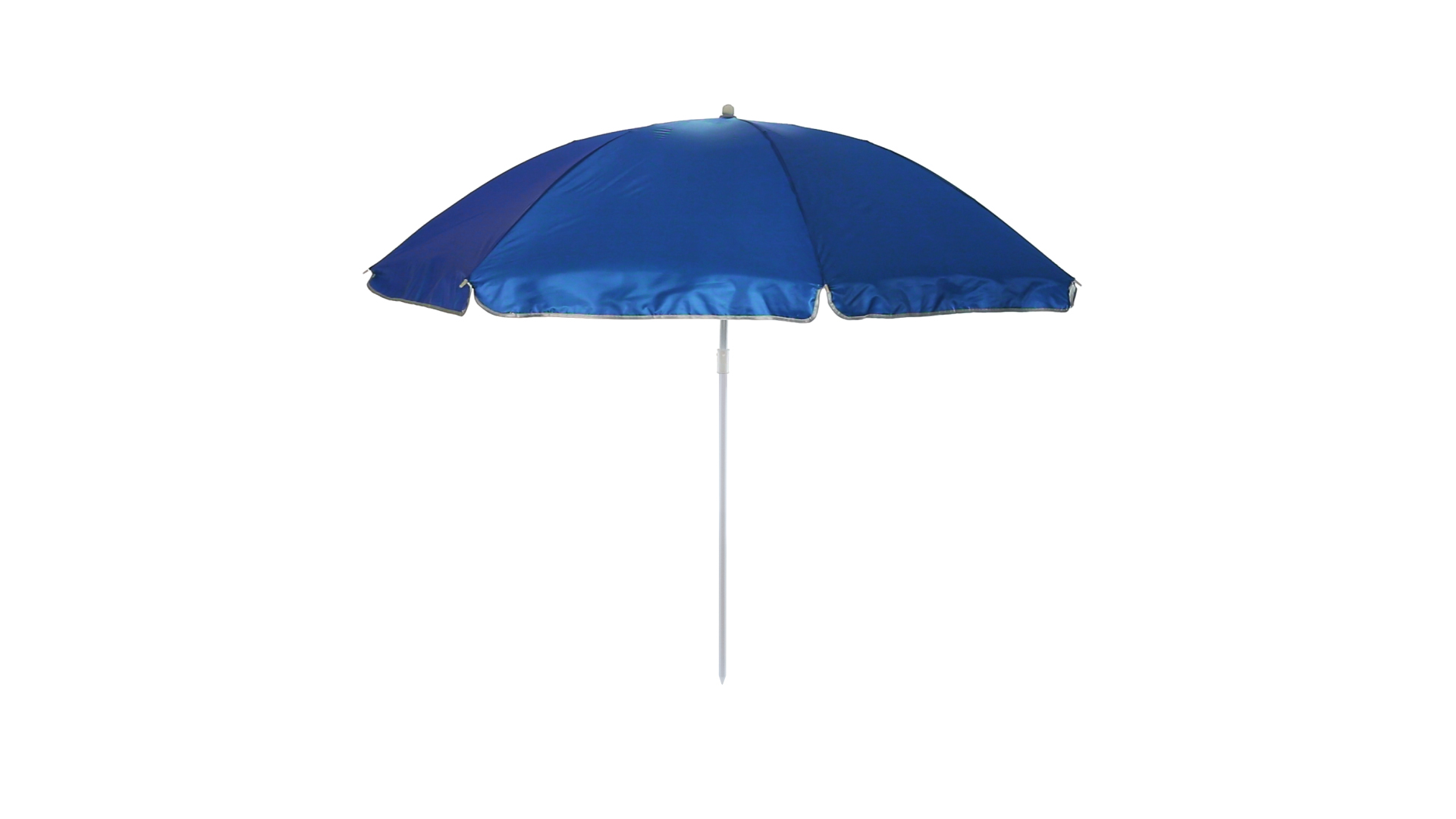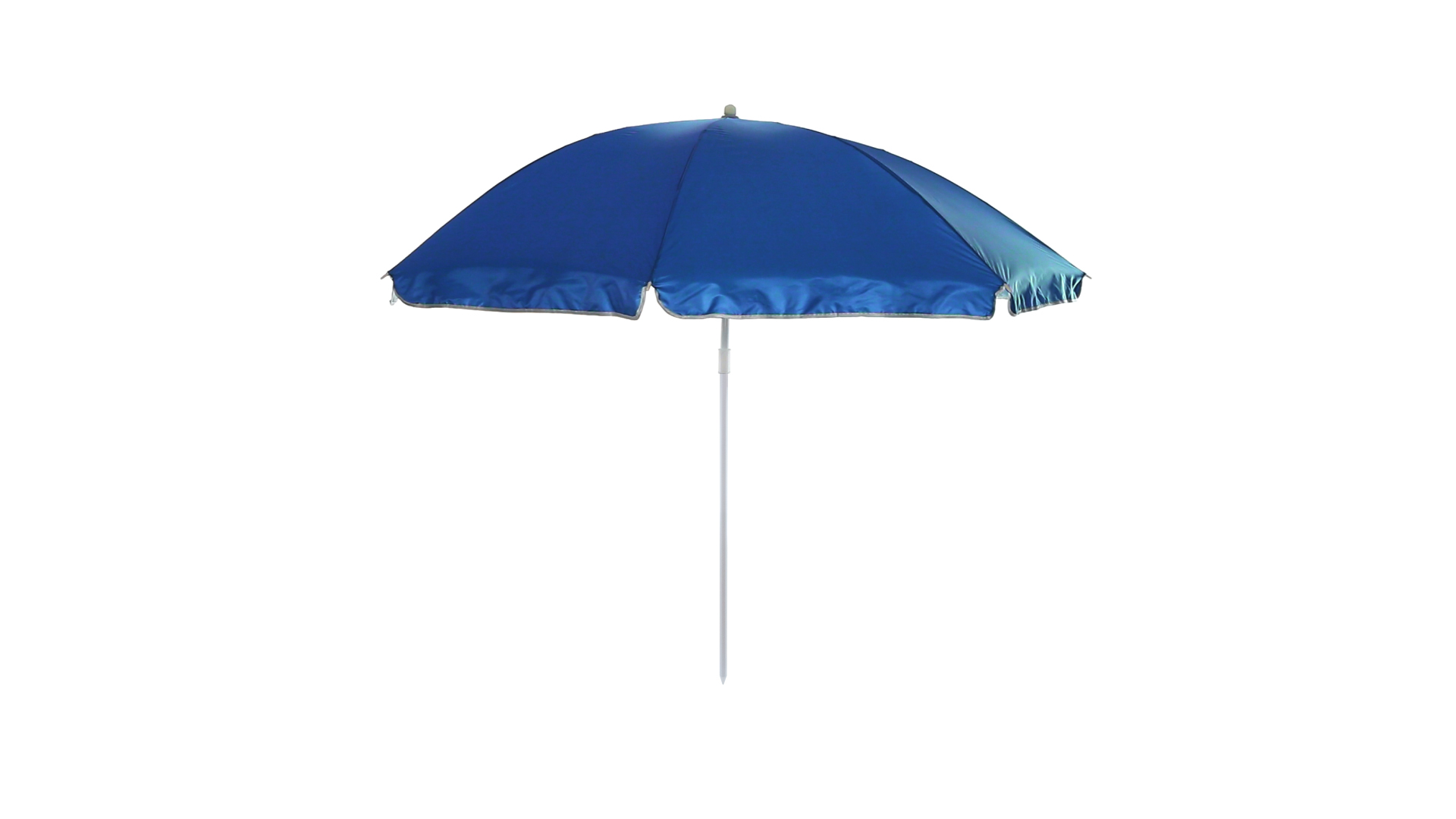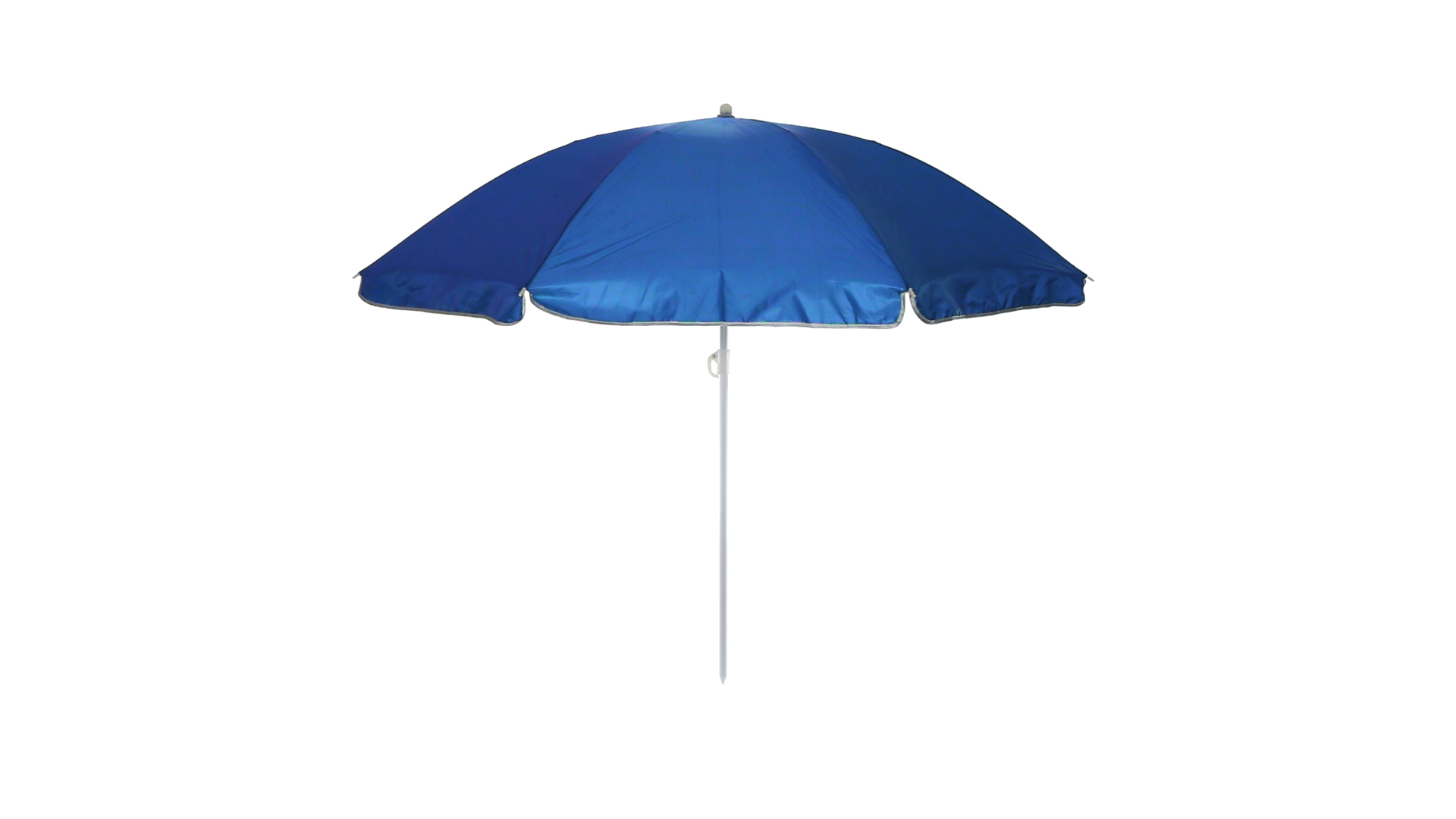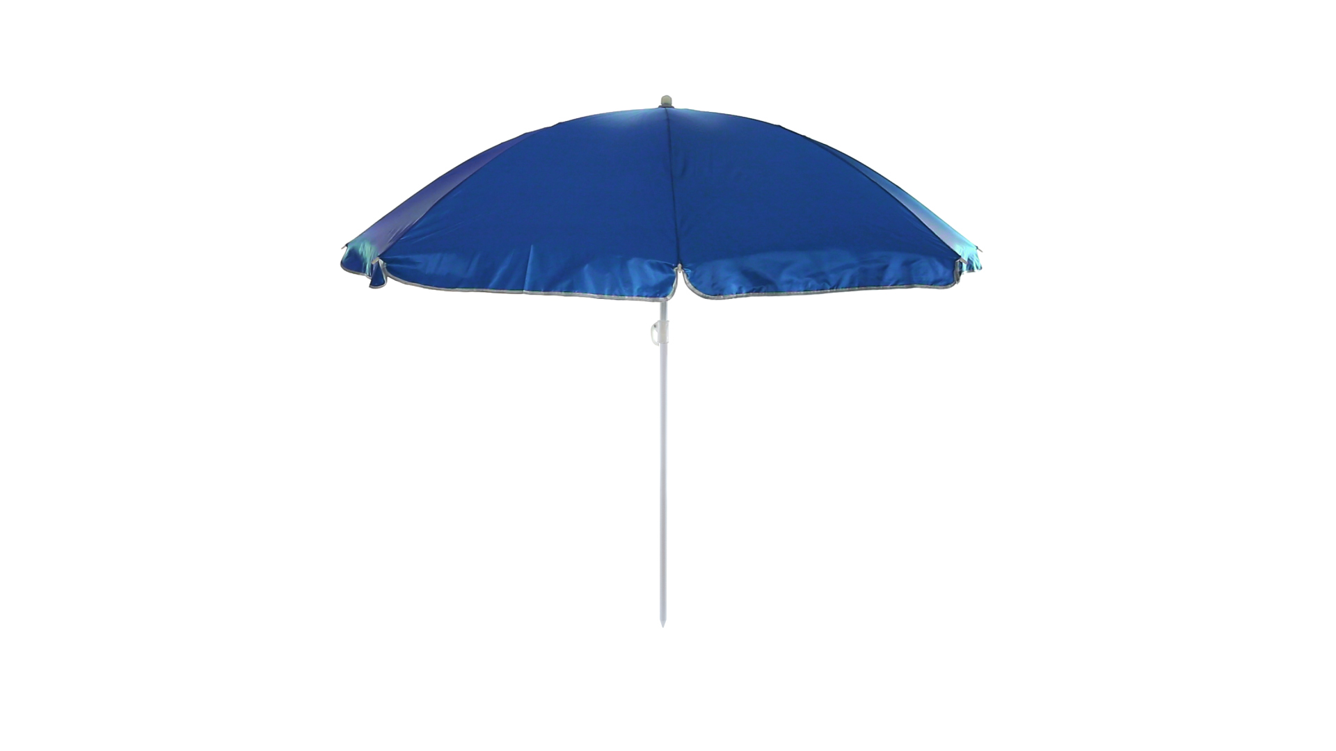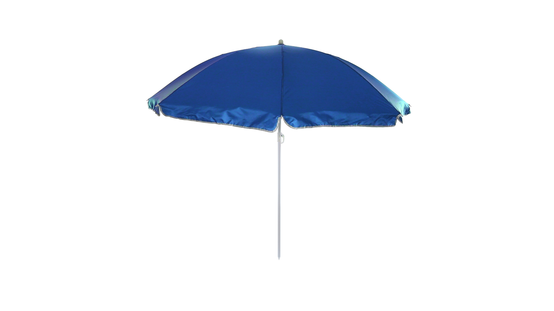 8-Panel-Strandschirm aus widerstandsfähigem Nylon mit silberner UV-Schutzschicht. Teleskopstange, höhen- und neigungsverstellbar. 200 cm Durchmesser, Seitenklappen mit Paspelierung und metallbeschichteten Rohren in weisser Farbe. In vielen leuchtenden Farben erhältlich, wird in einer Nylonhülle mit Schultergurt geliefert.