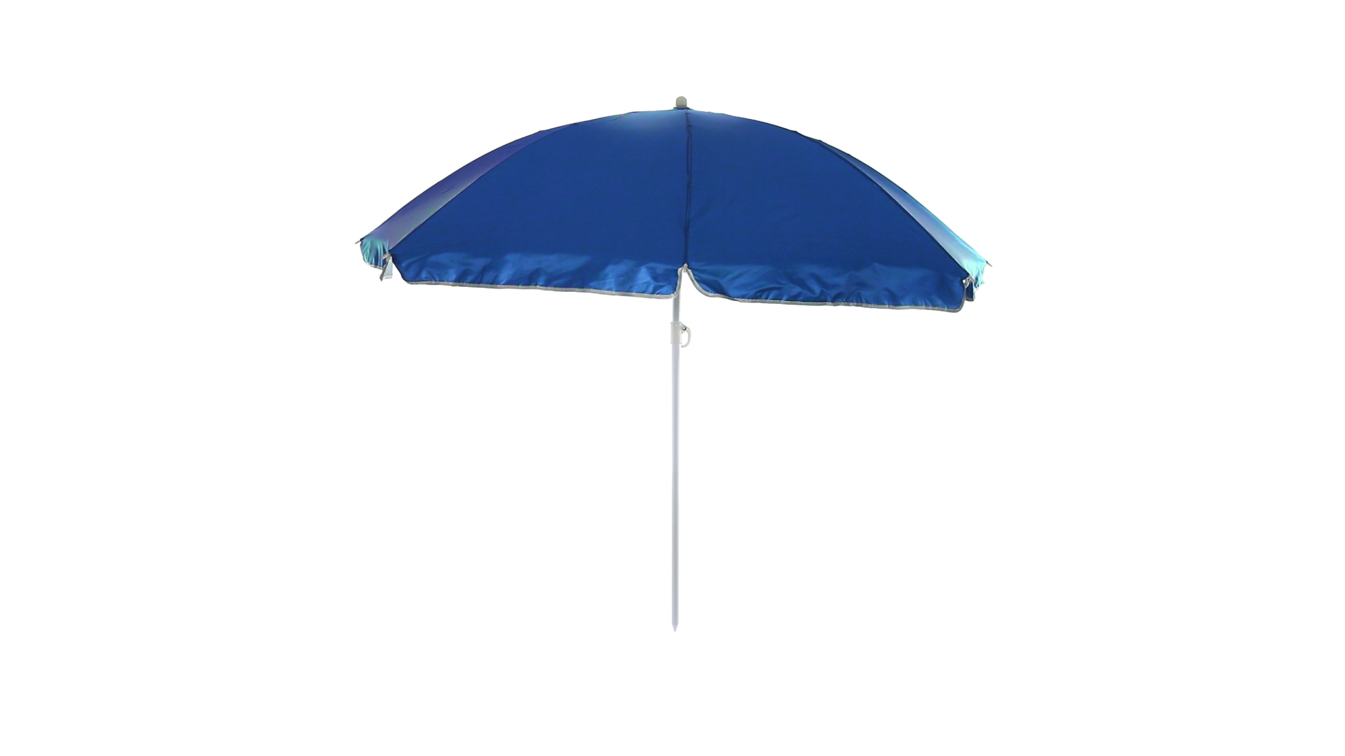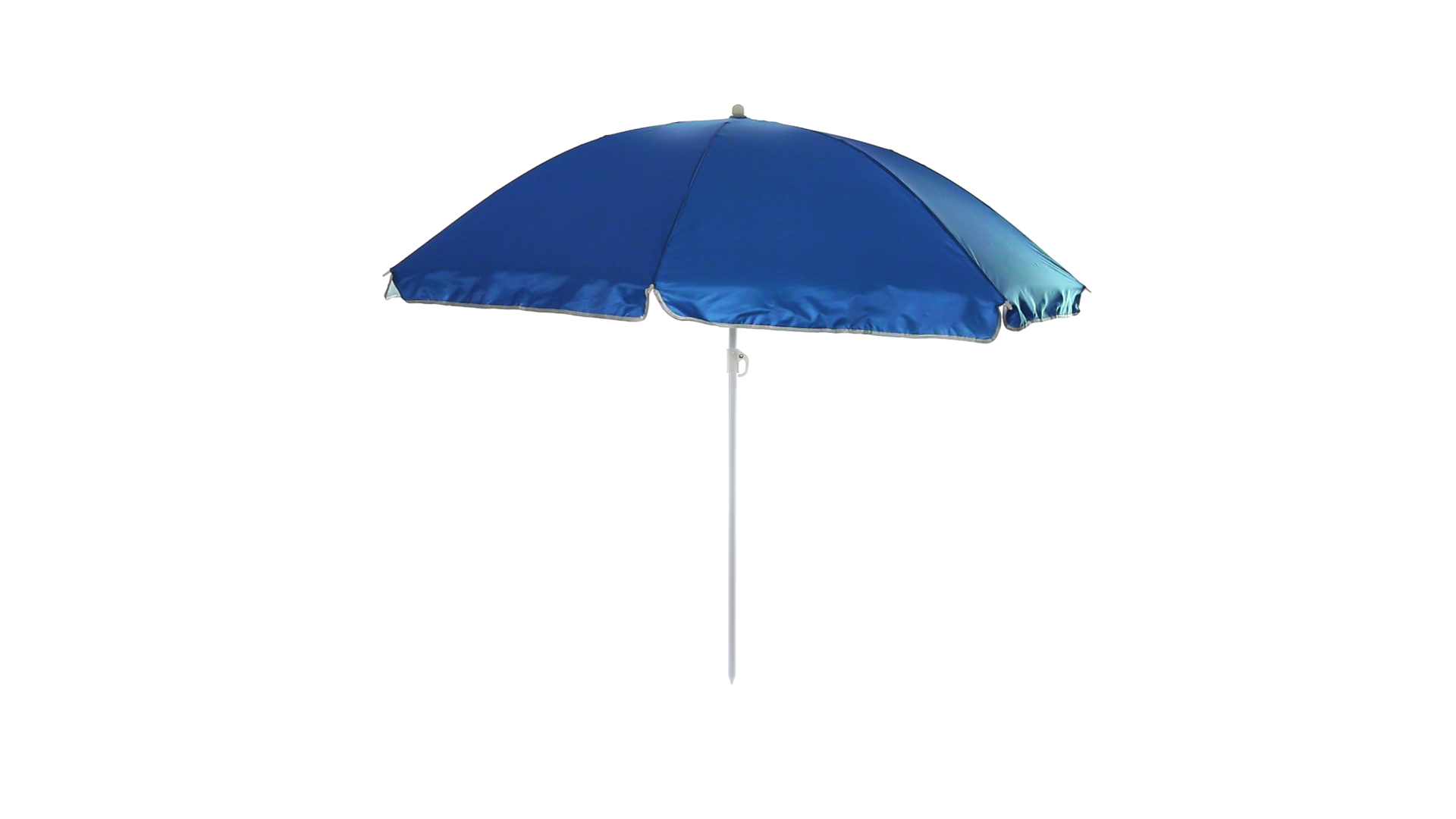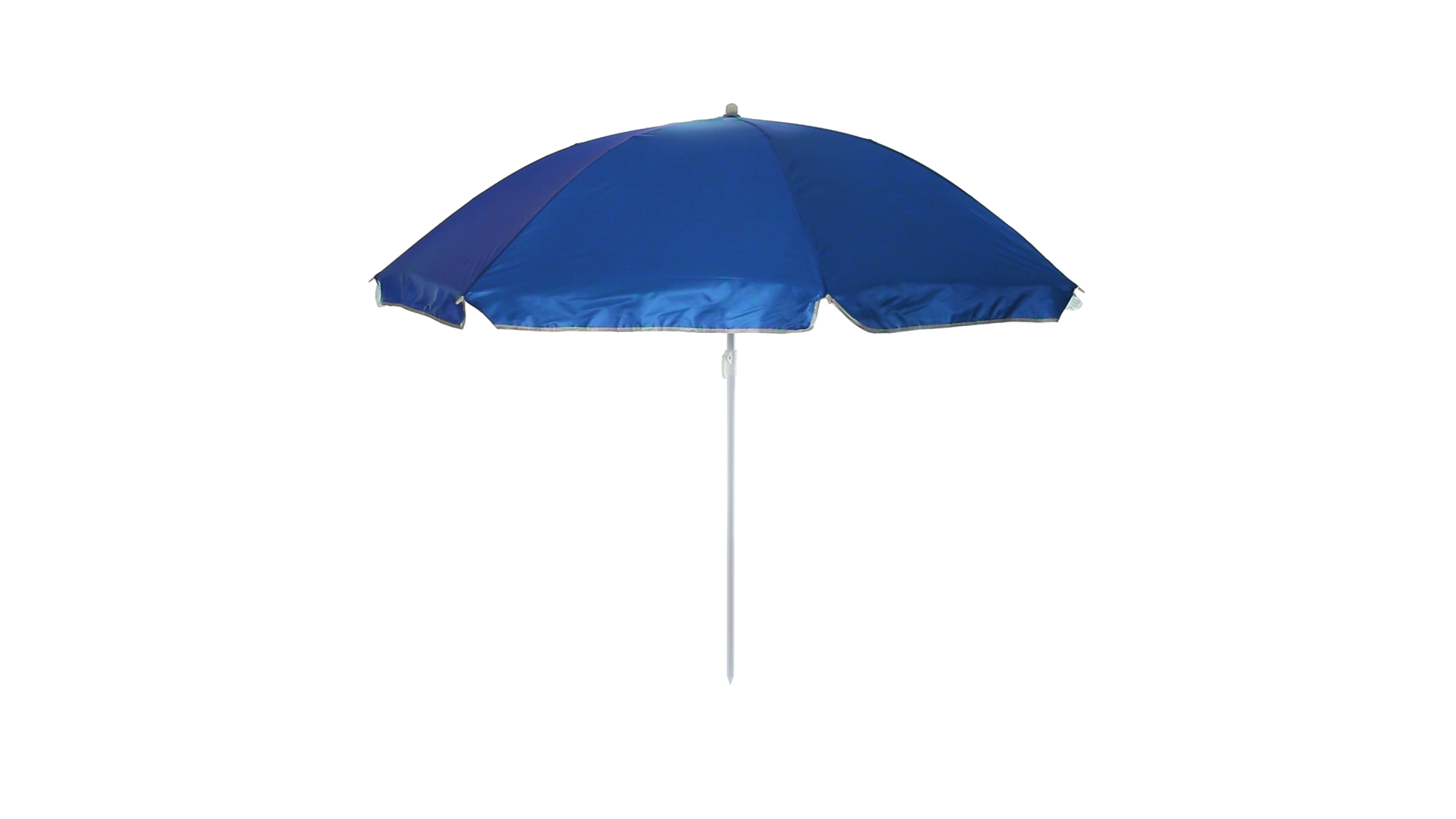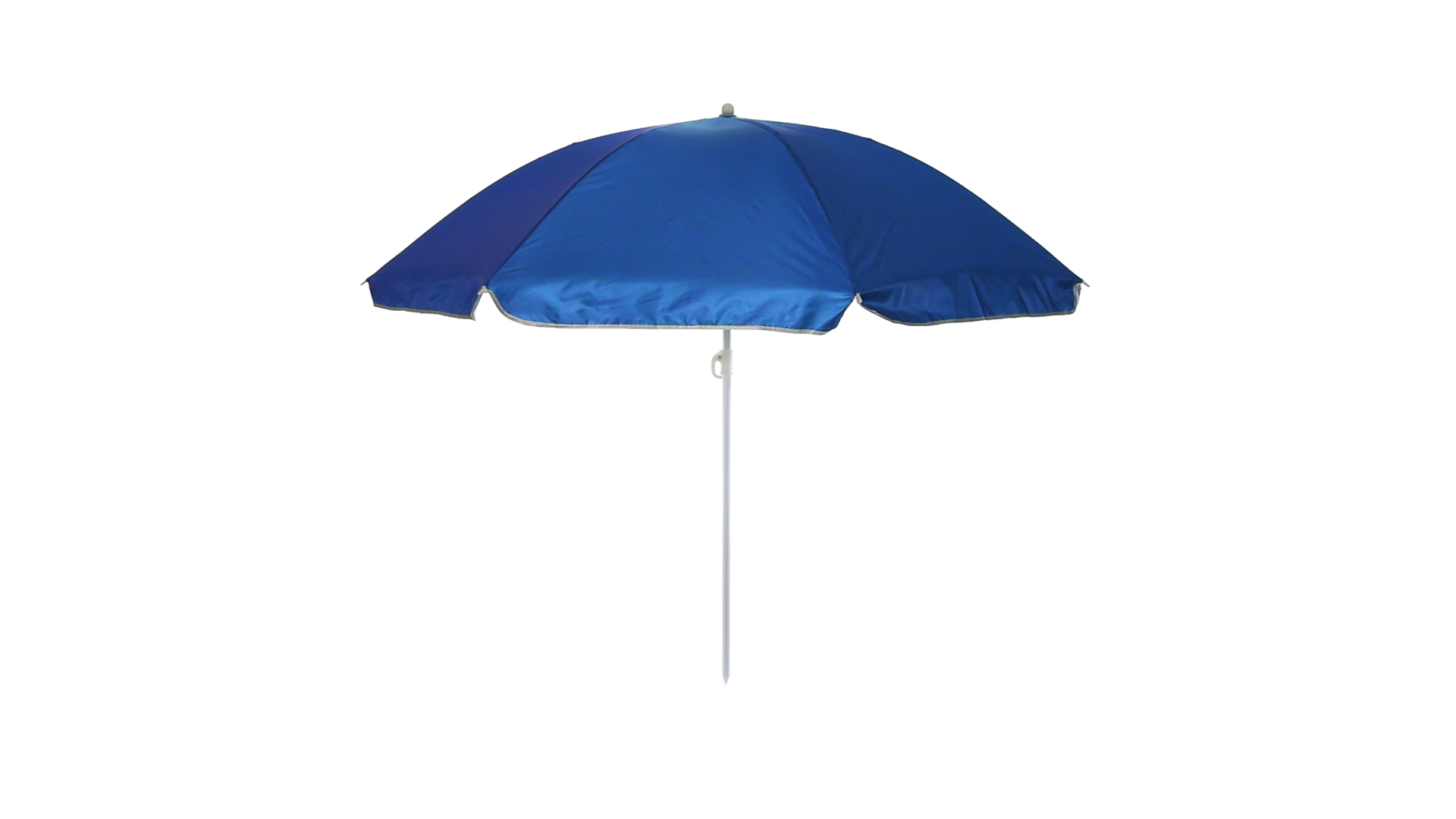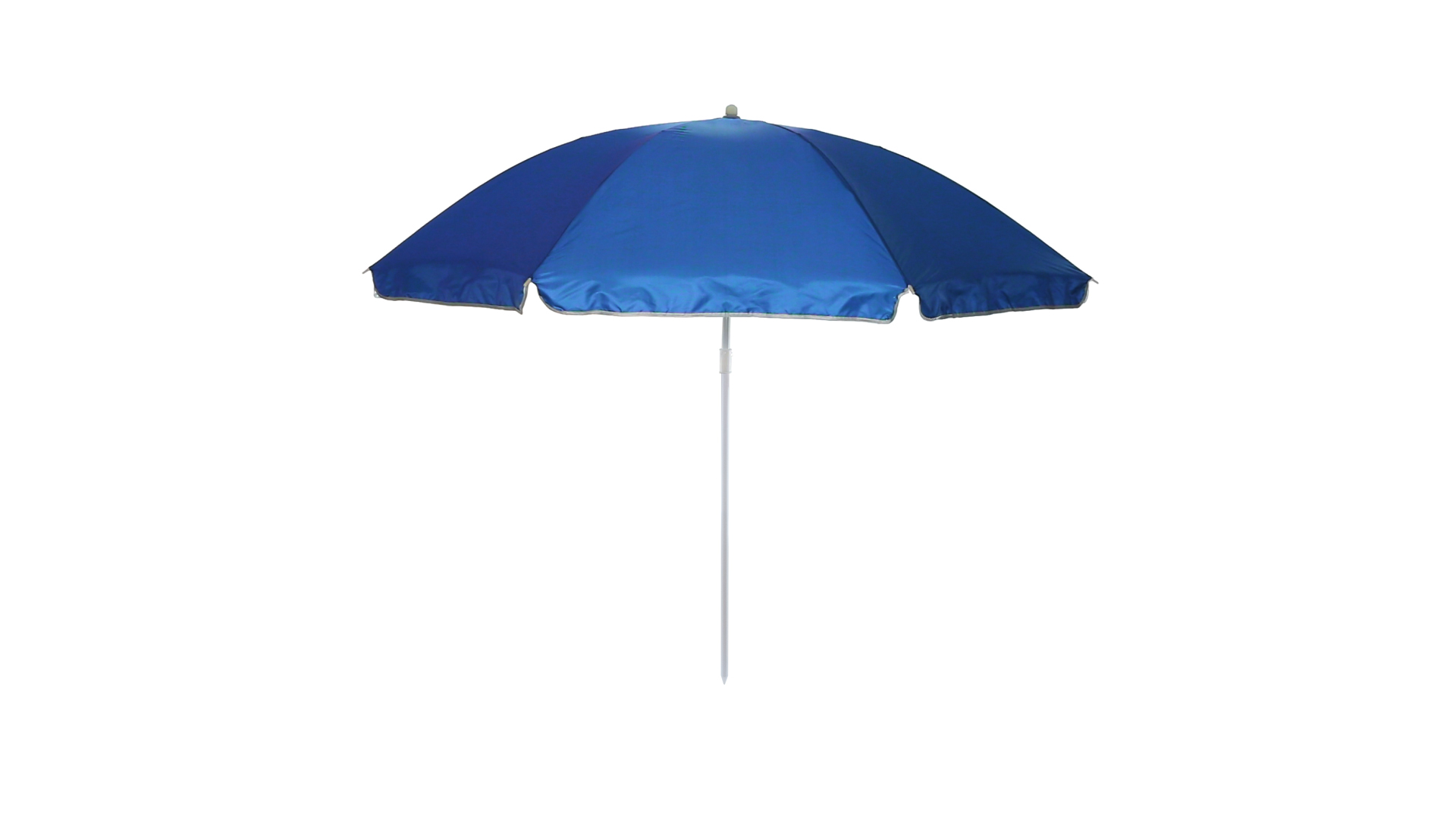 8-Panel-Strandschirm aus widerstandsfähigem Nylon mit silberner UV-Schutzschicht. Teleskopstange, höhen- und neigungsverstellbar. 200 cm Durchmesser, Seitenklappen mit Paspelierung und metallbeschichteten Rohren in weisser Farbe. In vielen leuchtenden Farben erhältlich, wird in einer Nylonhülle mit Schultergurt geliefert.