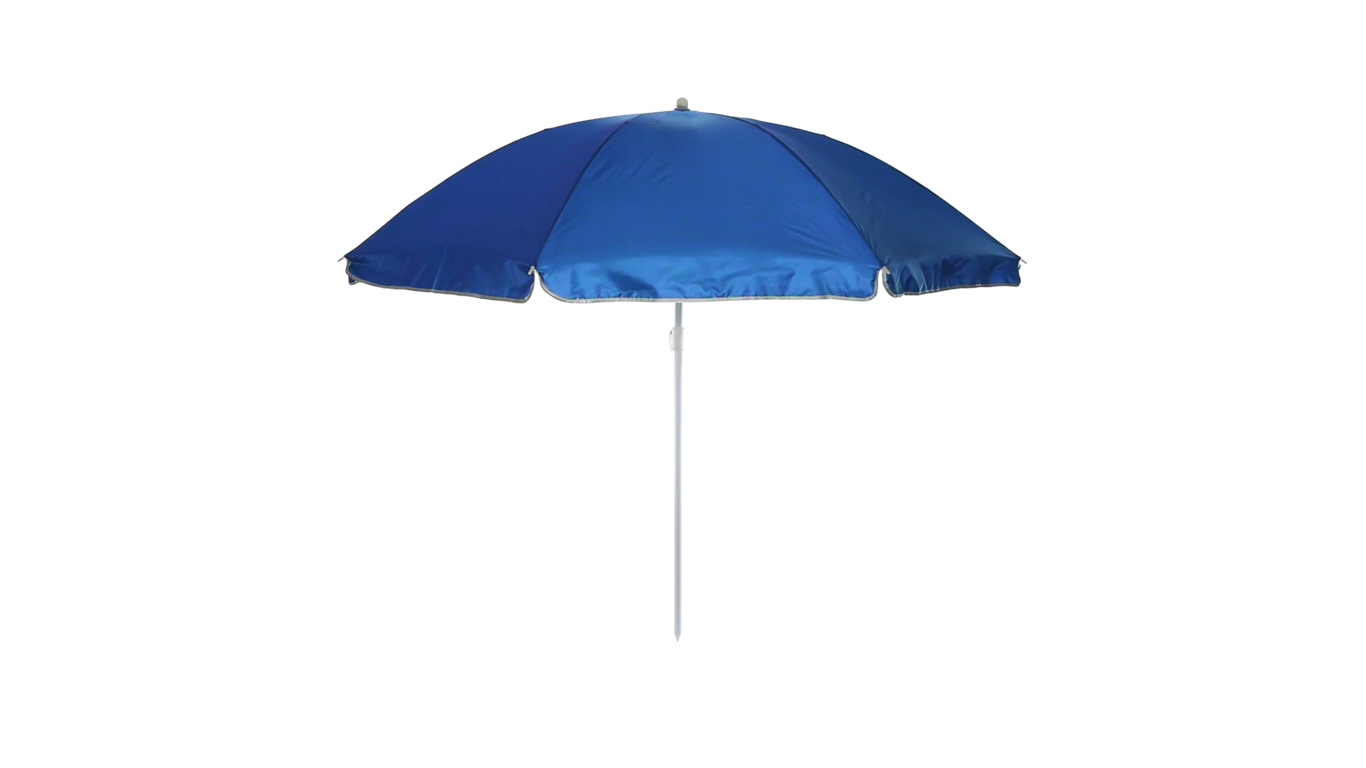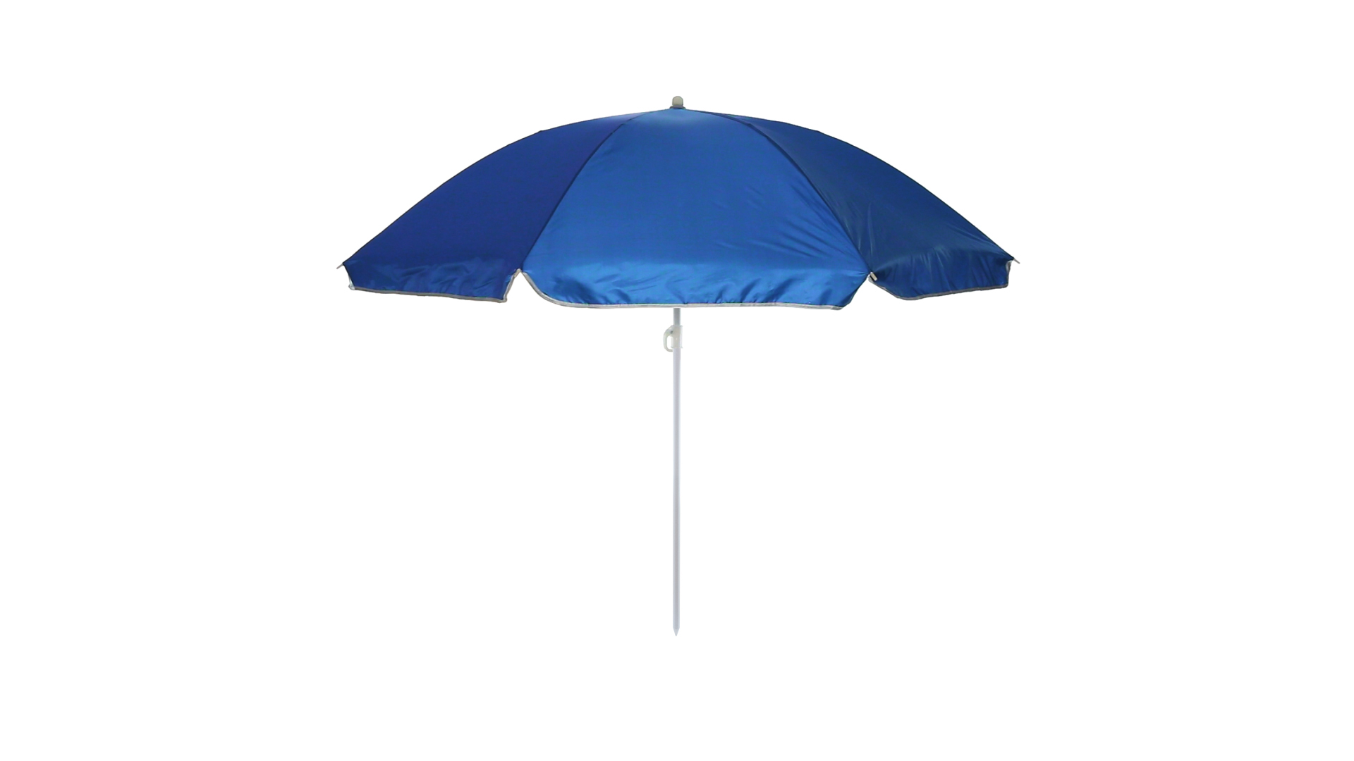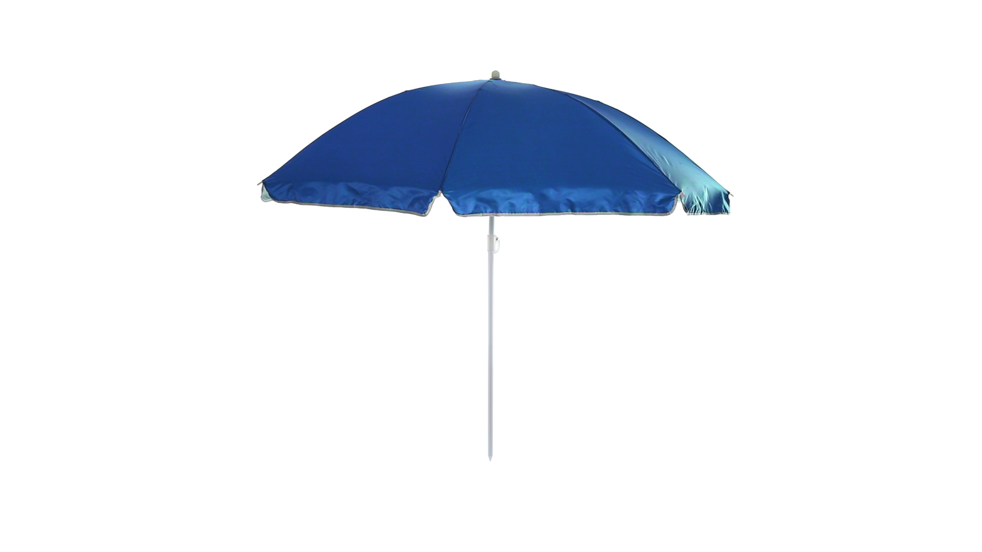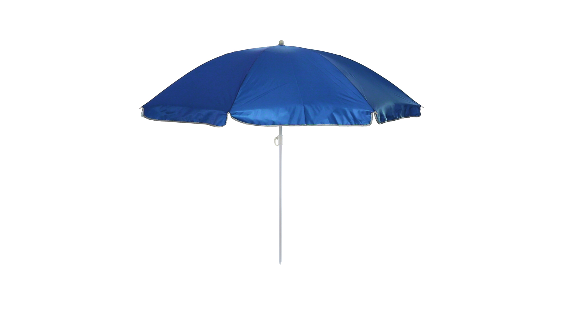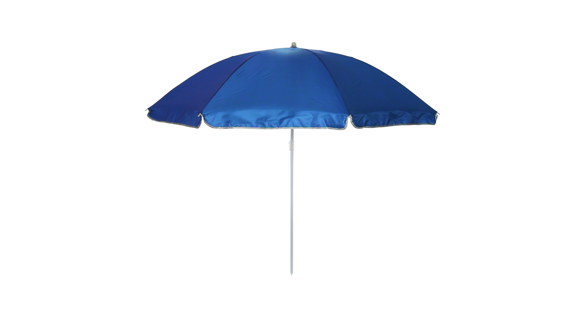 8-Panel-Strandschirm aus widerstandsfähigem Nylon mit silberner UV-Schutzschicht. Teleskopstange, höhen- und neigungsverstellbar. 200 cm Durchmesser, Seitenklappen mit Paspelierung und metallbeschichteten Rohren in weisser Farbe. In vielen leuchtenden Farben erhältlich, wird in einer Nylonhülle mit Schultergurt geliefert.