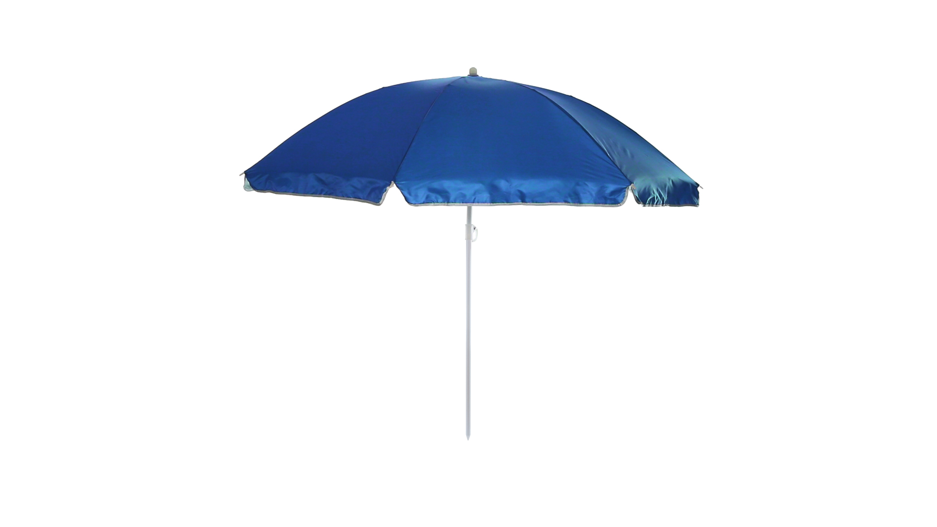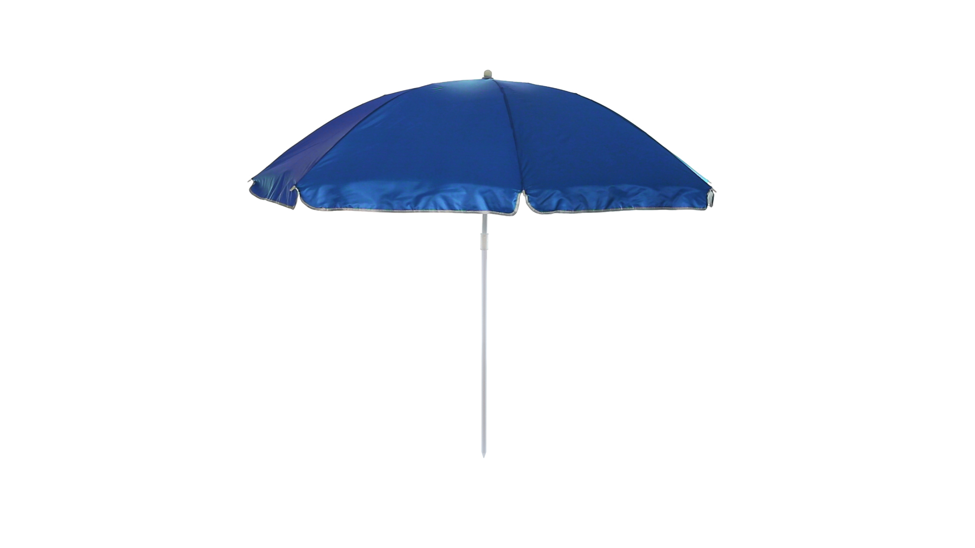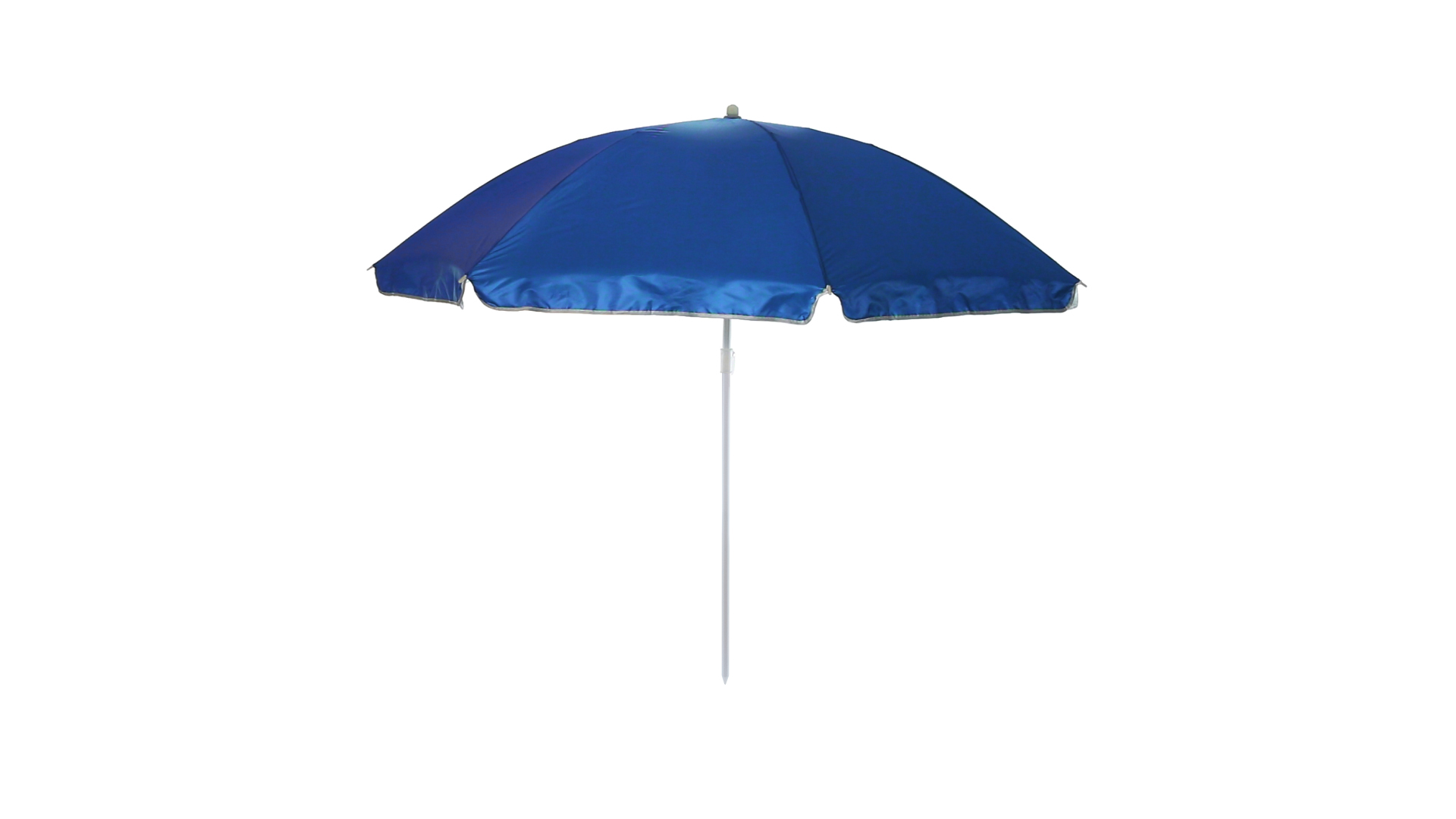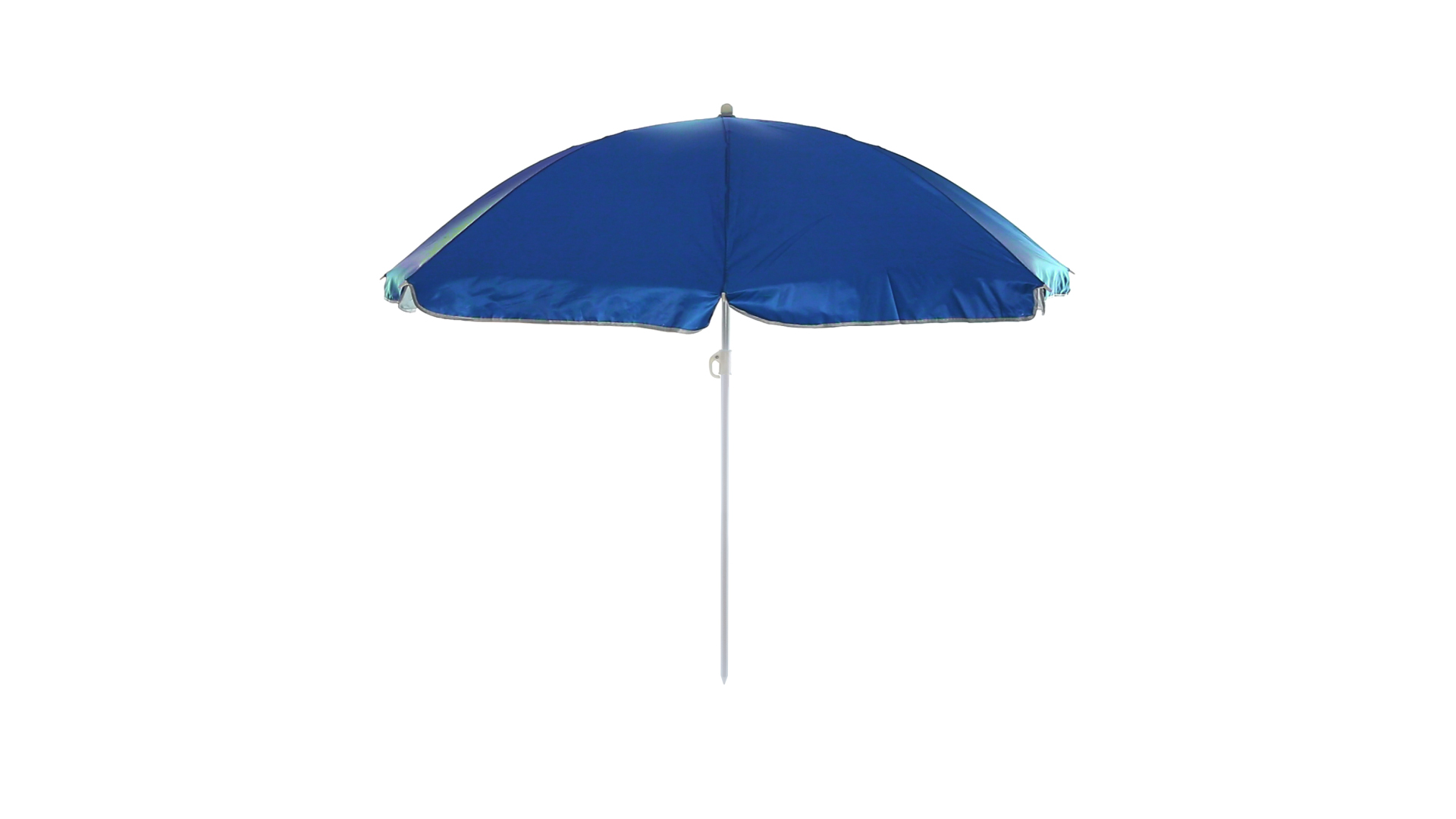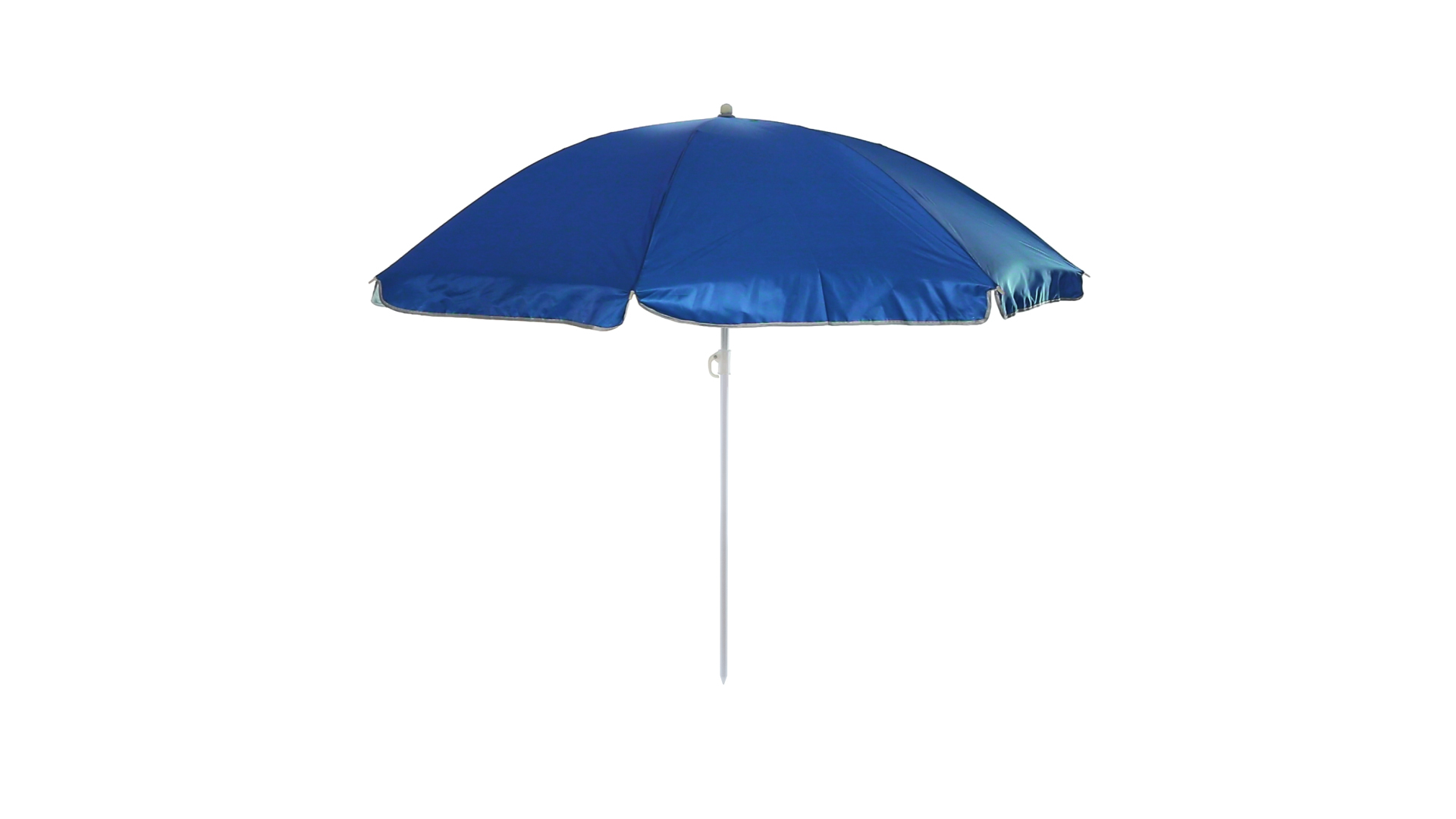 8-Panel-Strandschirm aus widerstandsfähigem Nylon mit silberner UV-Schutzschicht. Teleskopstange, höhen- und neigungsverstellbar. 200 cm Durchmesser, Seitenklappen mit Paspelierung und metallbeschichteten Rohren in weisser Farbe. In vielen leuchtenden Farben erhältlich, wird in einer Nylonhülle mit Schultergurt geliefert.