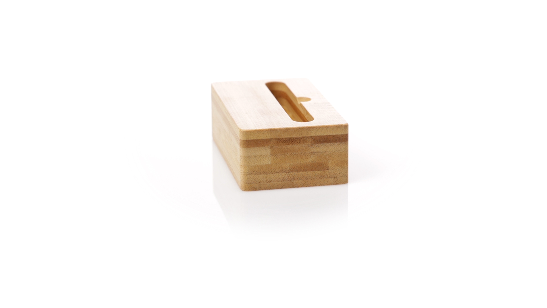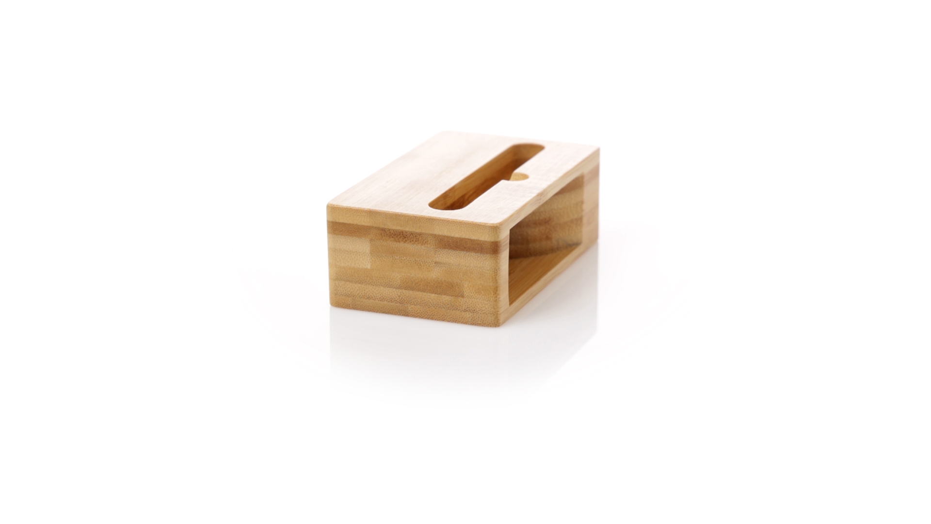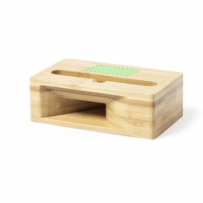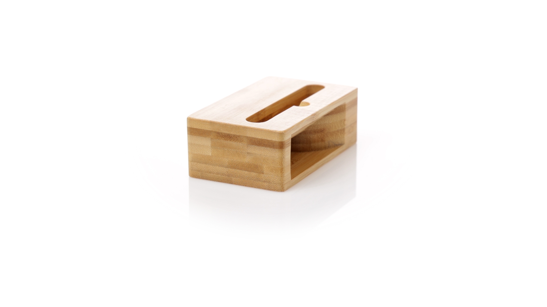 Echter Smartphone-Halter mit Soundverstärker. Hergestellt aus Bambus, wodurch die akustischen Eigenschaften dieses Materials maximiert werden, ohne dass eine Elektronik erforderlich ist. Präsentiert in einer individuellen Kraft-Designbox.