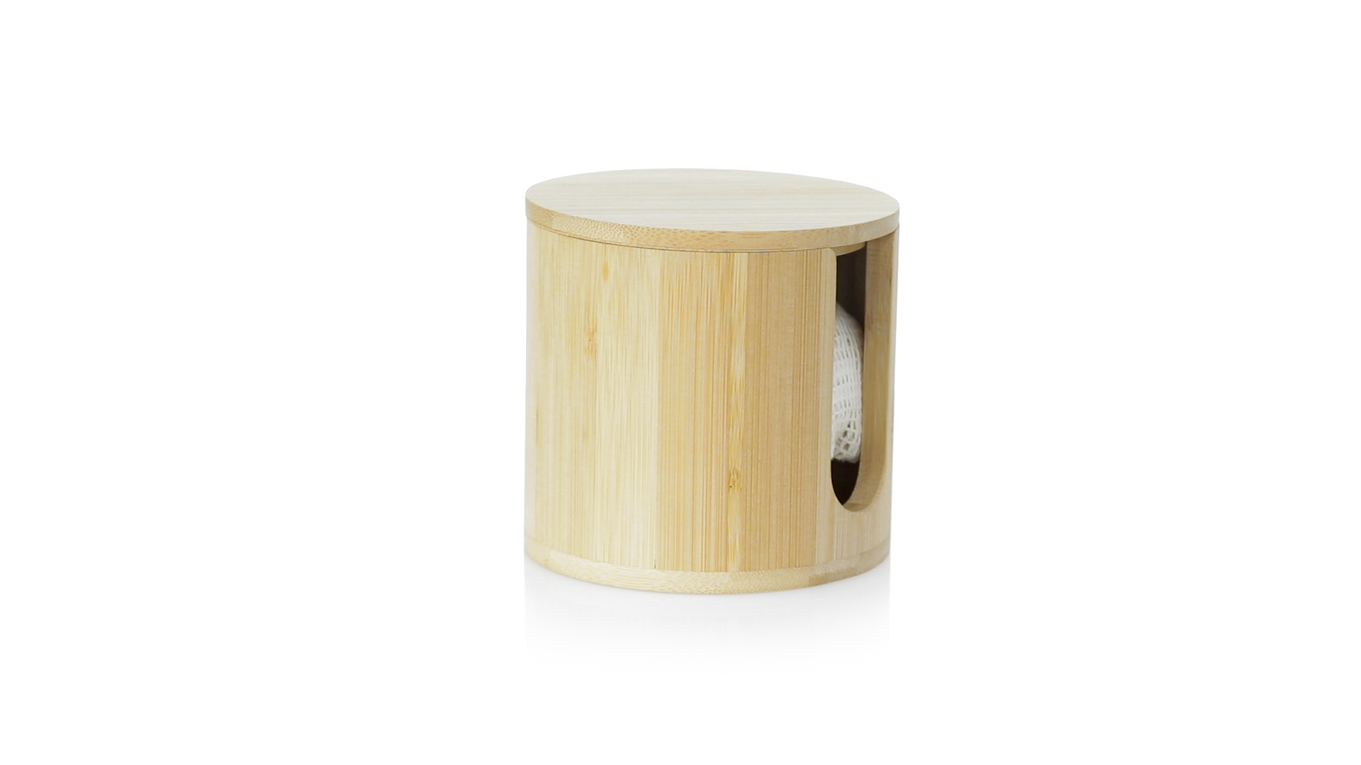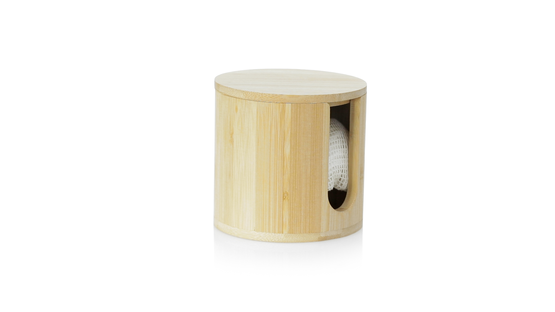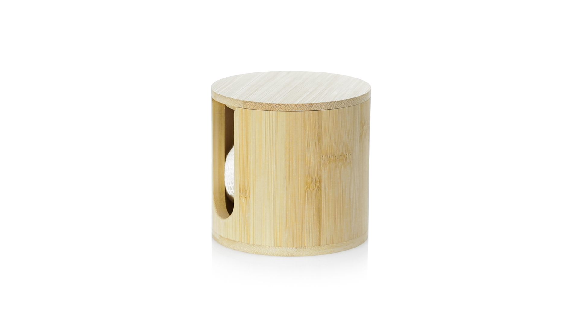 Linie "Natur" Make-up-Entferner-Tuchspender. Hergestellt aus Bambus, um die Verwendung von natürlichen Rohstoffen zu fördern. Mit 10 wiederverwendbaren Baumwollpads und einem Waschbeutel. Präsentiert in einer individuellen, ökologisch gestalteten Schachtel.