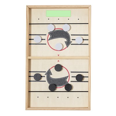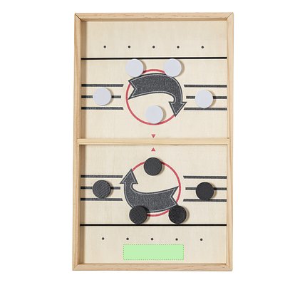 Lustiges Brettspiel aus Holz und ideal für die anspruchsvollsten Spieler. Das Spiel besteht darin, die Figuren mithilfe des Gummibandes auf das gegnerische Feld zu schleudern. Der Gewinner ist der Spieler, der die meisten Spielsteine in den Schlitz des Gegners gesteckt hat. Inklusive Spielbrett, 5 weissen und 5 schwarzen Spielsteinen. Präsentiert in einer individuellen Kraft-Designbox.