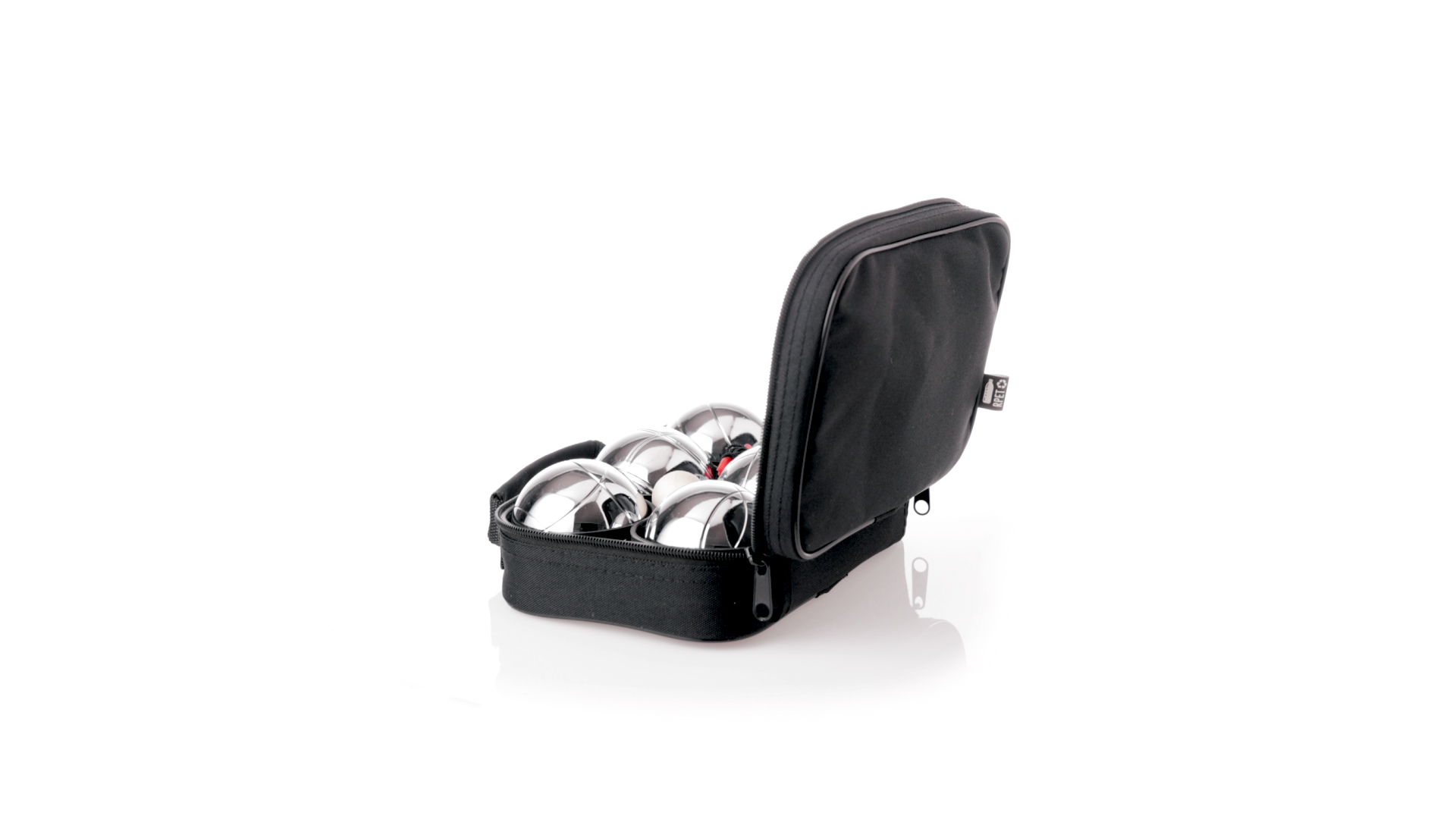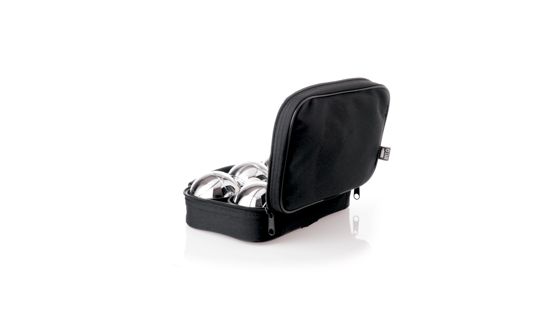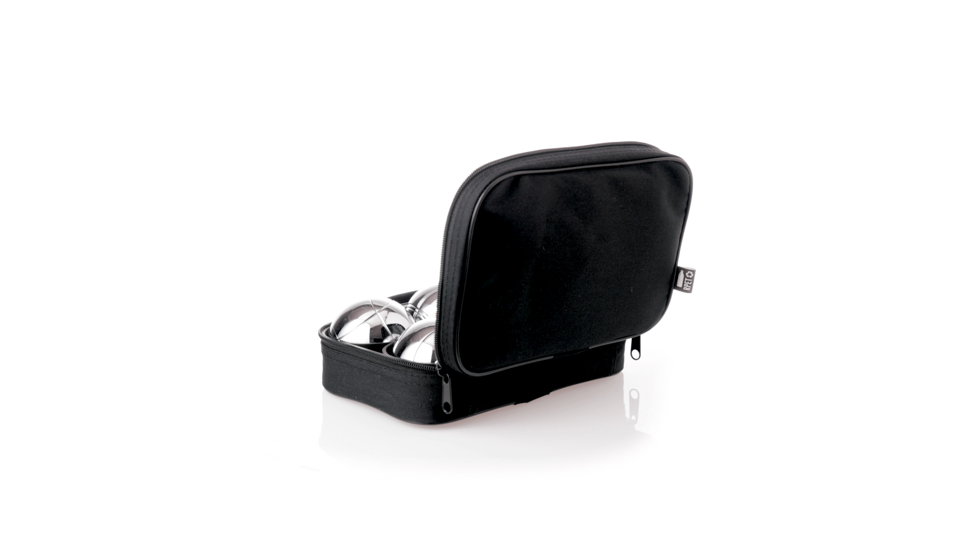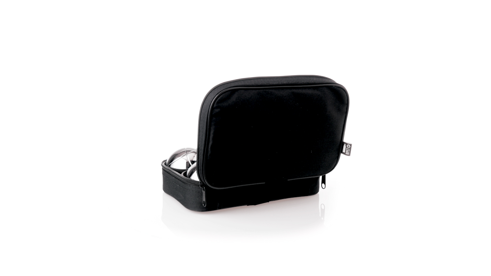Hochwertiges Petanque-Spiel. Inklusive 6 Metallkugeln, 1 kleine Holzkugel und Messschnur. Das Set wird in einem widerstandsfähigen RPET-Koffer in schwarzer Farbe präsentiert, mit Tragegriff und passendem Reissverschluss. RPET-Material ist aus recyceltem Kunststoff hergestellt, um die Wiederverwendung von Kunststoffabfällen zu fördern und die Nachhaltigkeit des Planeten zu unterstützen.