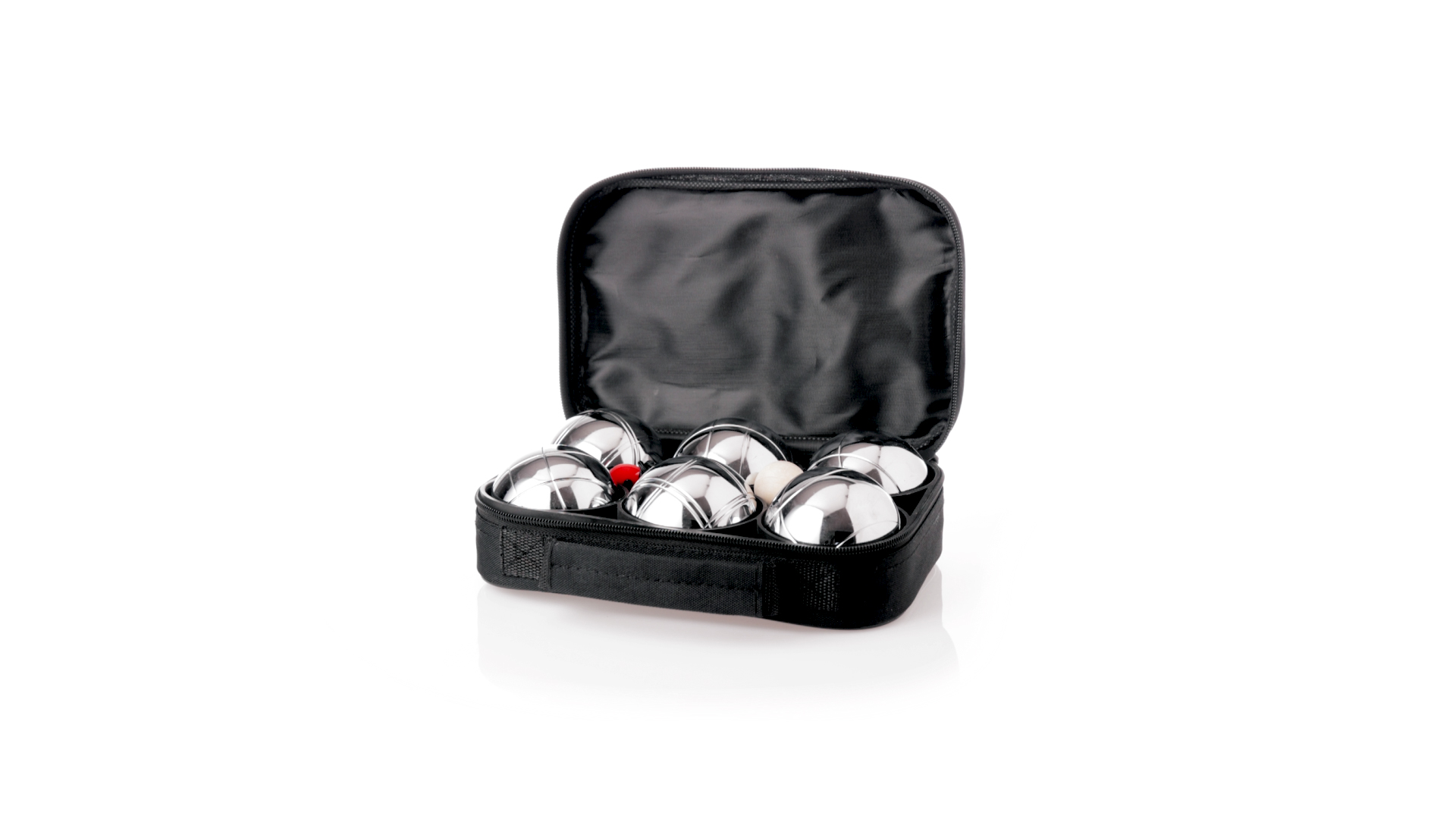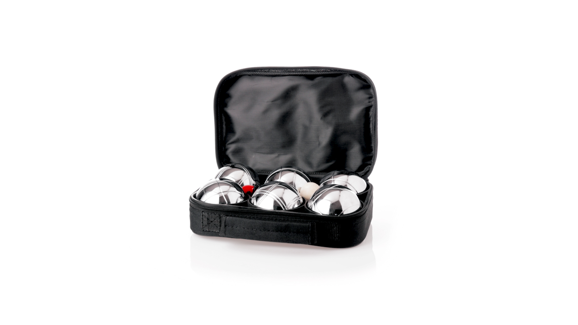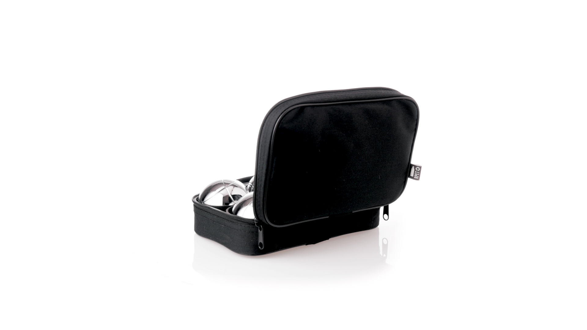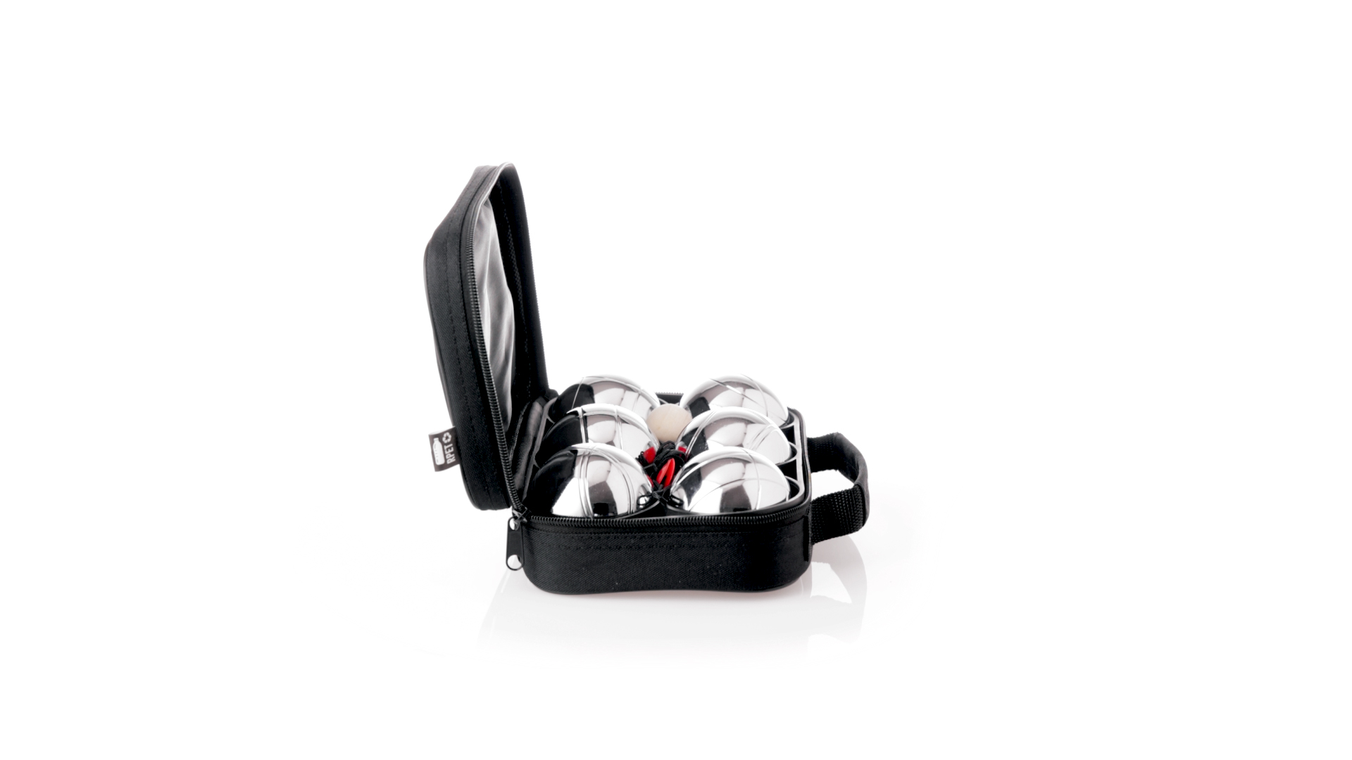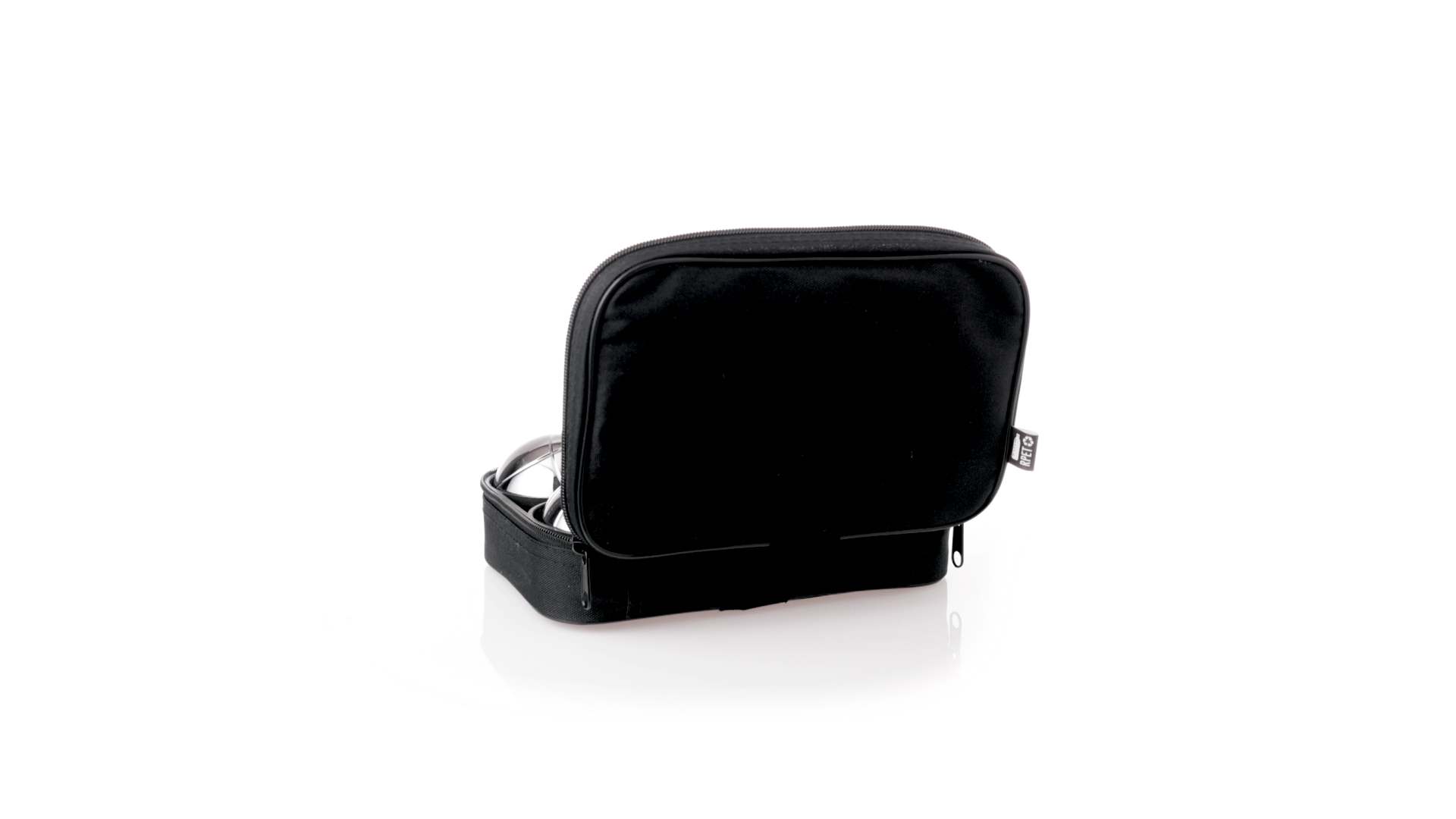 Hochwertiges Petanque-Spiel. Inklusive 6 Metallkugeln, 1 kleine Holzkugel und Messschnur. Das Set wird in einem widerstandsfähigen RPET-Koffer in schwarzer Farbe präsentiert, mit Tragegriff und passendem Reissverschluss. RPET-Material ist aus recyceltem Kunststoff hergestellt, um die Wiederverwendung von Kunststoffabfällen zu fördern und die Nachhaltigkeit des Planeten zu unterstützen.