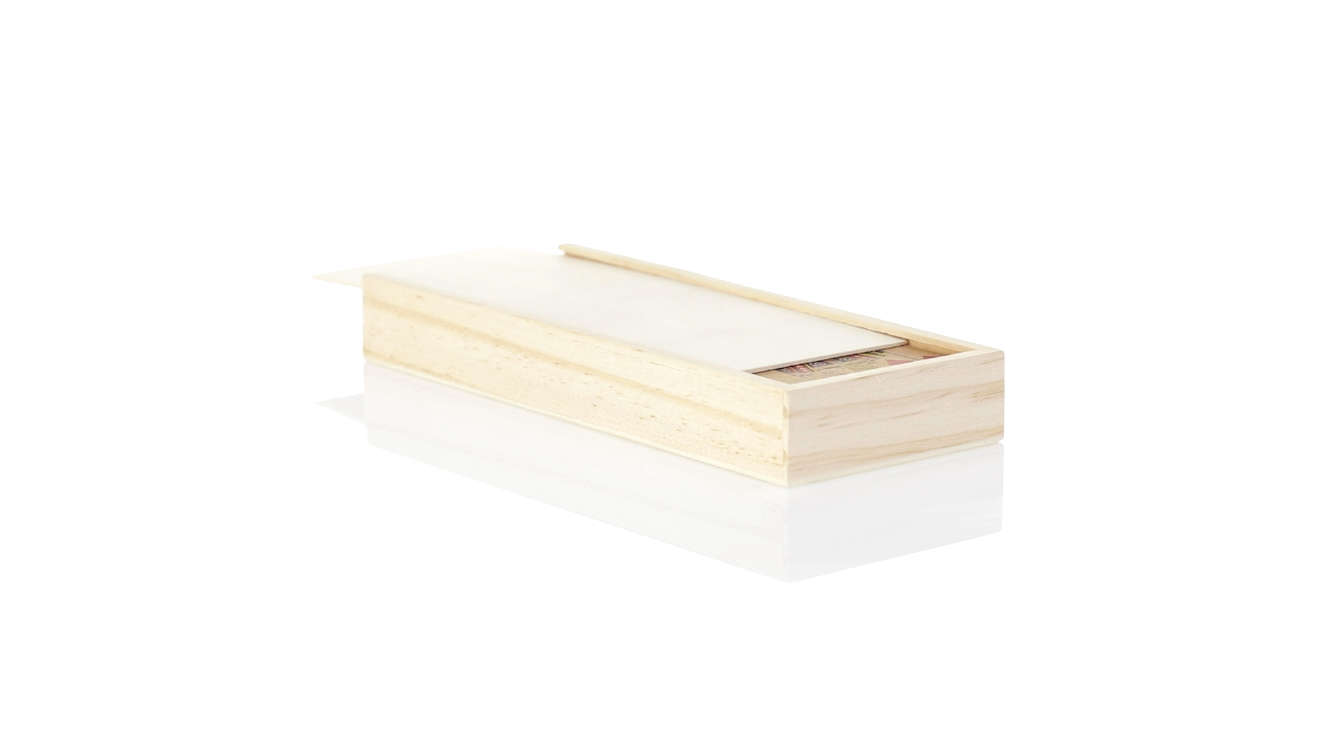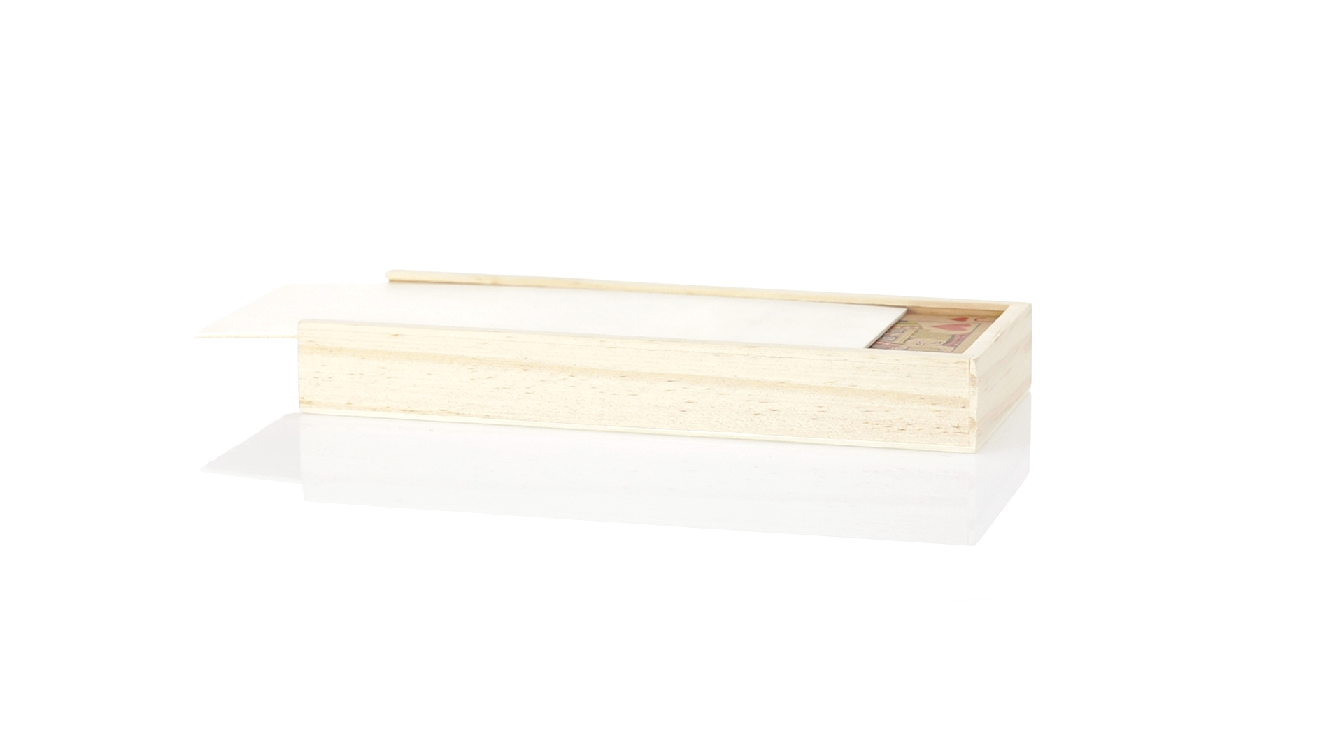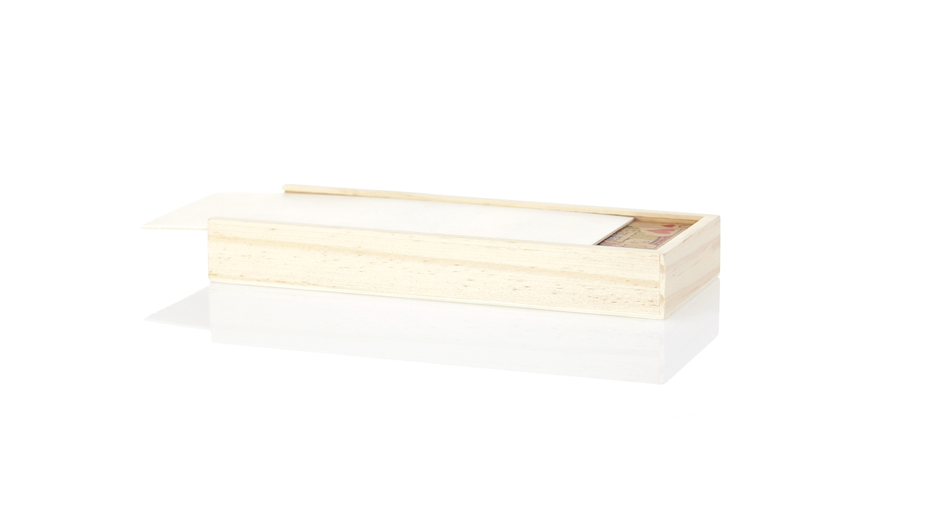 Spielsatz aus der Nature Line.Enthält einen Satz französischer Spielkarten aus recyceltem Karton und Dominosteine aus Holz. Das Set wird in einer Holzkiste mit einzelnen Fächern für jedes Spiel und Schiebedeckel präsentiert.