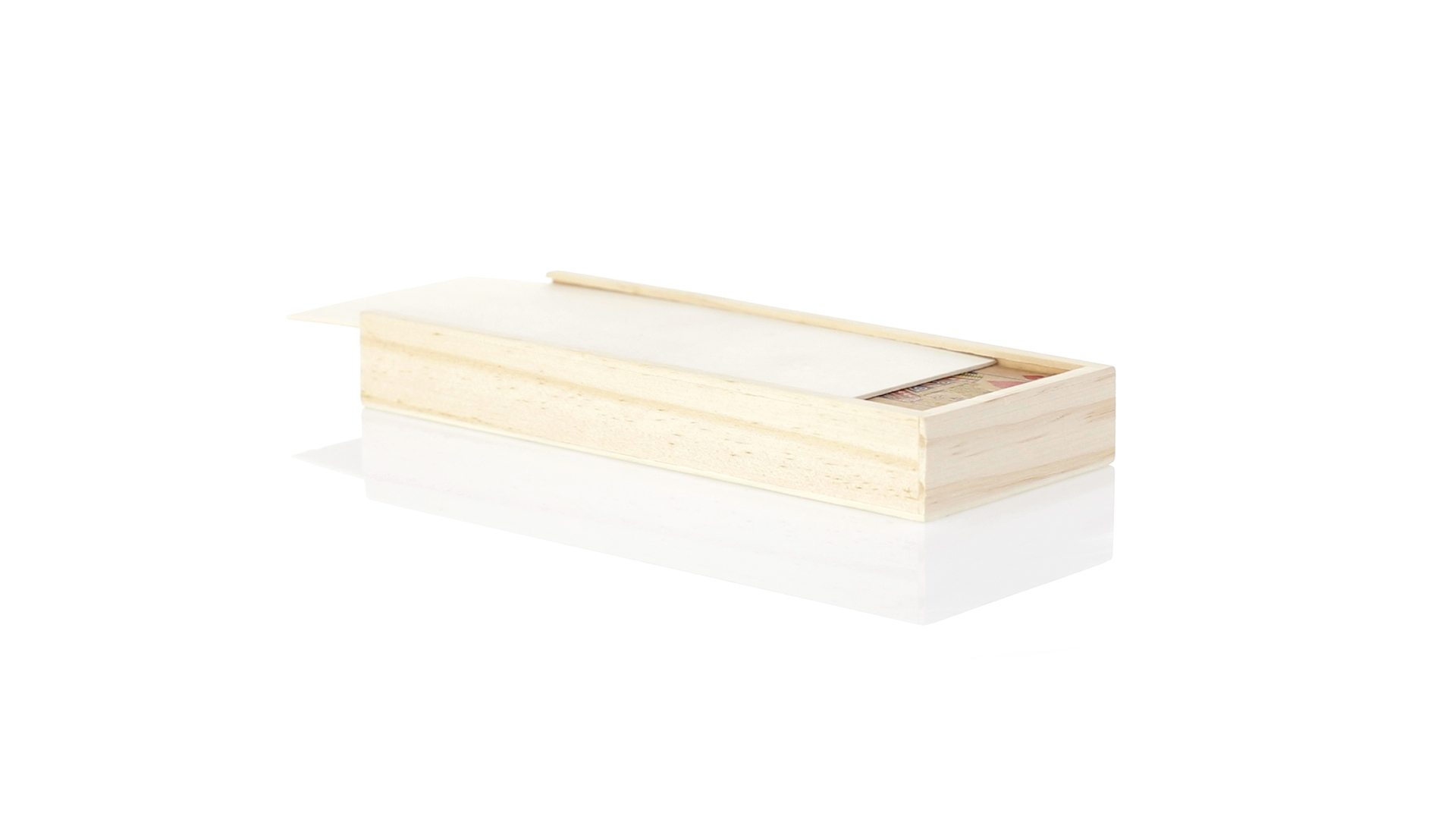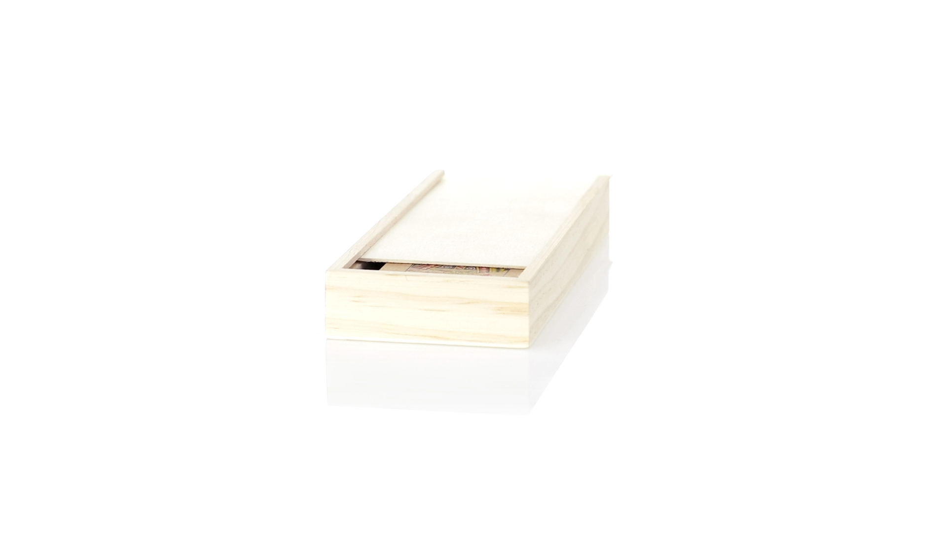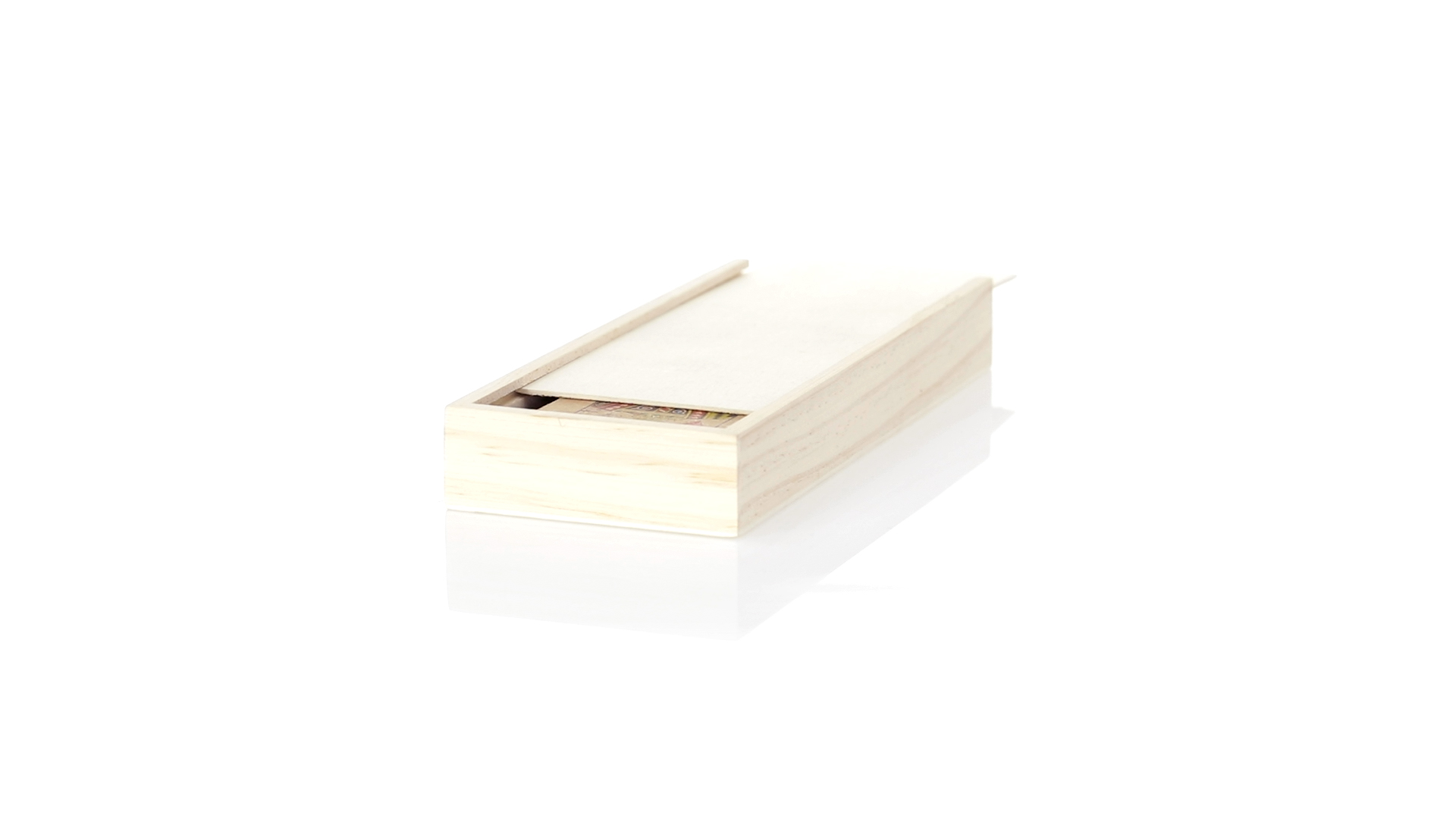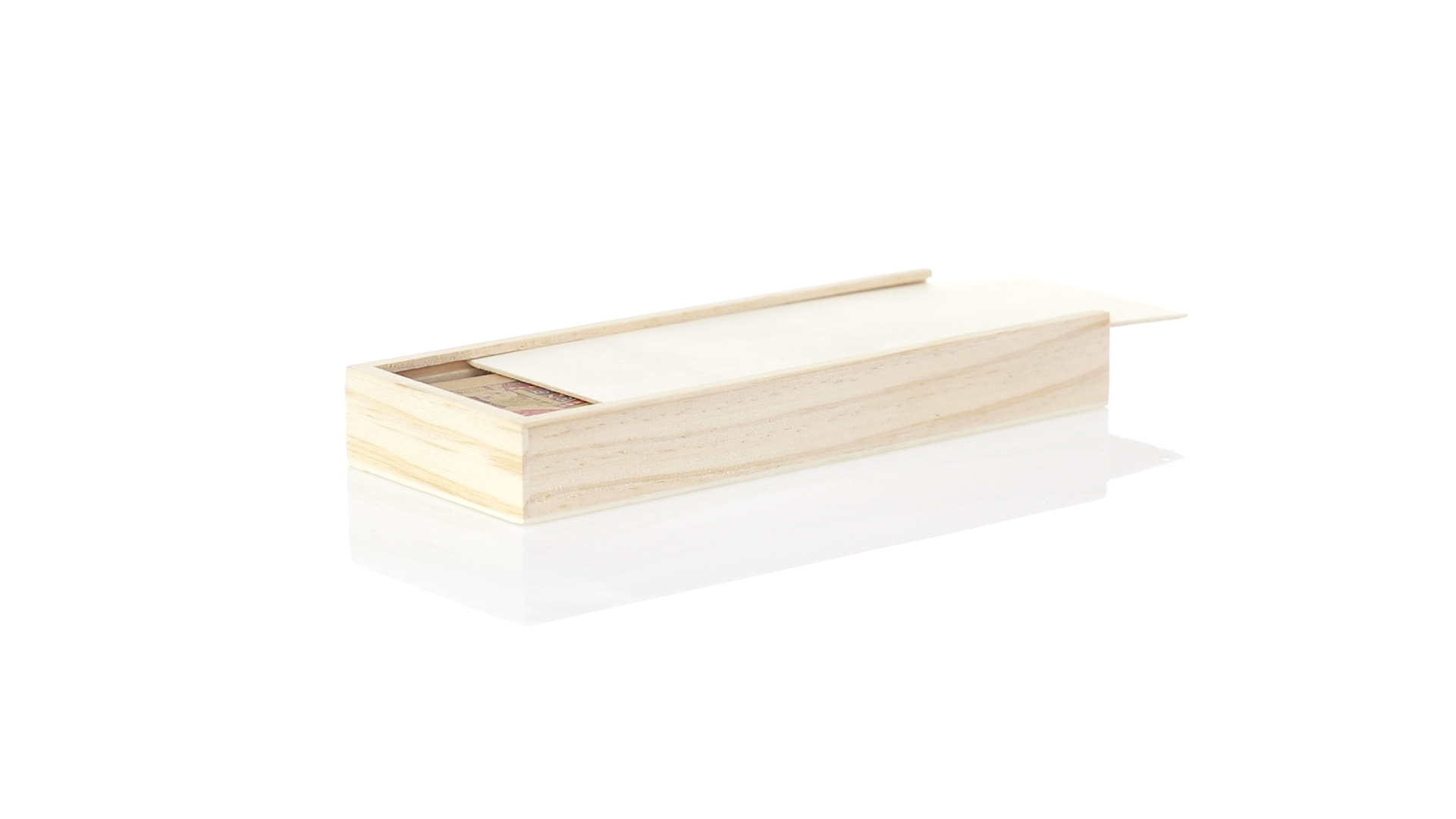 Spielsatz aus der Nature Line.Enthält einen Satz französischer Spielkarten aus recyceltem Karton und Dominosteine aus Holz. Das Set wird in einer Holzkiste mit einzelnen Fächern für jedes Spiel und Schiebedeckel präsentiert.