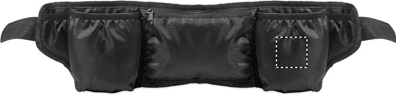 Gürteltasche ideal für Wandern und Laufen. 420D RPET Polyester mit Mesh-Rückseite. Hauptfach mit Reissverschluss und 2 Fächern für Flaschen. Verstellbarer, elastischer Gurt.