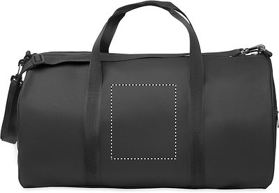 Sport- oder Reisetasche aus 600D RPET Polyester mit PU-Beschichtung. Fronttasche mit Reissverschluss. Innenfutter aus 210D RPET-Polyester. Seitenfach mit Reissverschluss, seitliches Netzfach. Reissverschlusstasche innen.