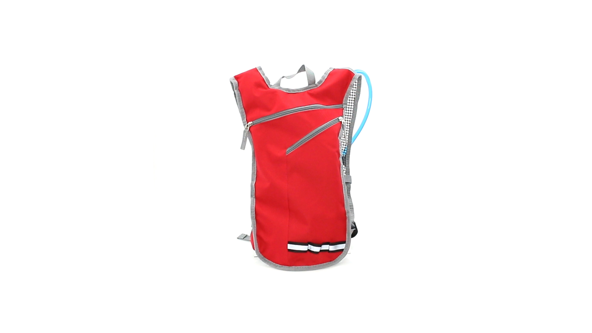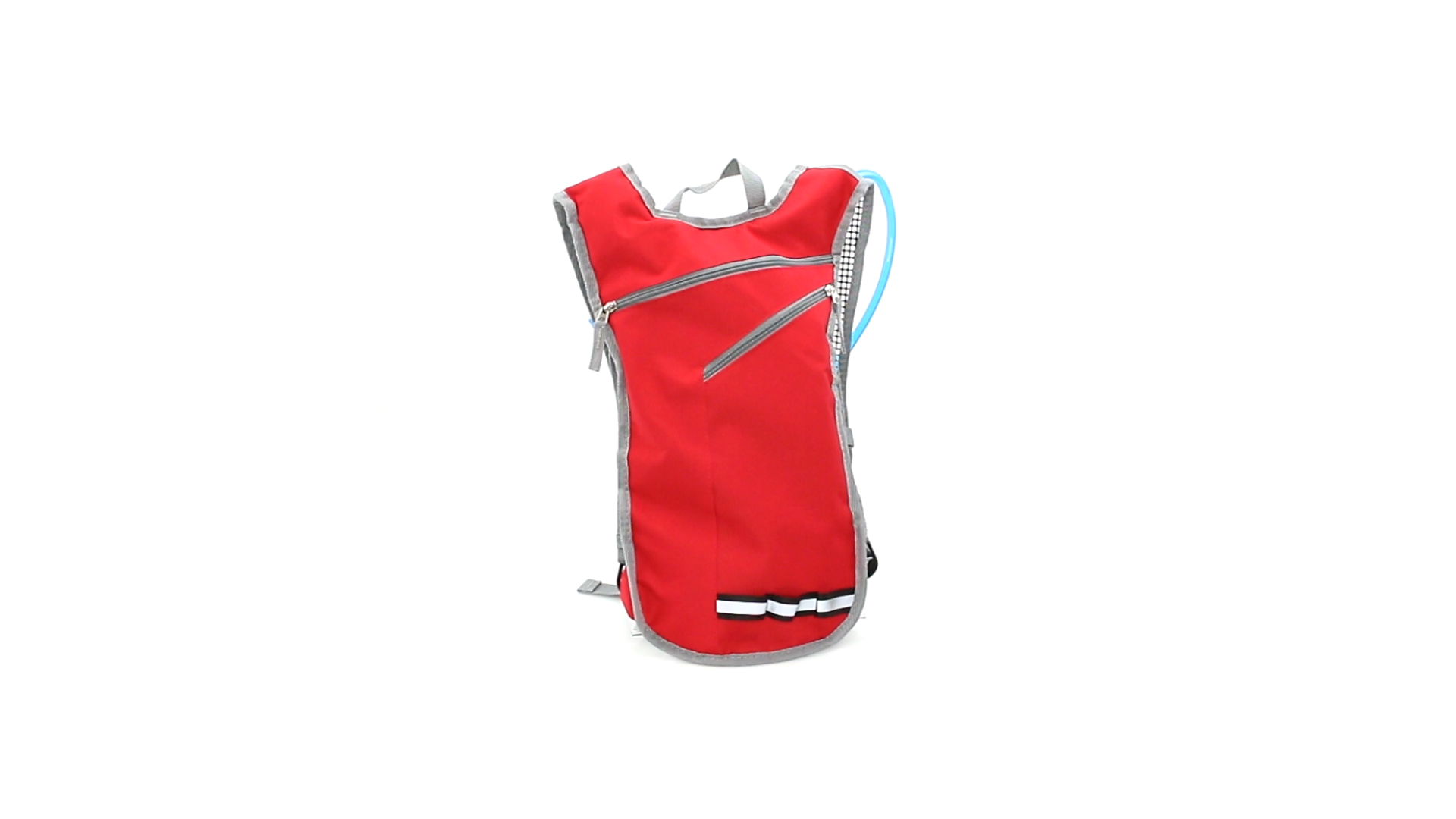 Sport-Rucksack mit Trinksystem aus strapazierfähigem 600D Polyester in lebendigen Farben. Mit herausnehmbarem 2-Liter-Tank. Rückenpanel mit ergonomischer Polsterung und atmungsaktive Schultergurte mit Wasserspender-Halter. Reflektierende Gummibändern und Reissverschluss-Aussentaschen mit Zugbändern für einfaches Öffnen.