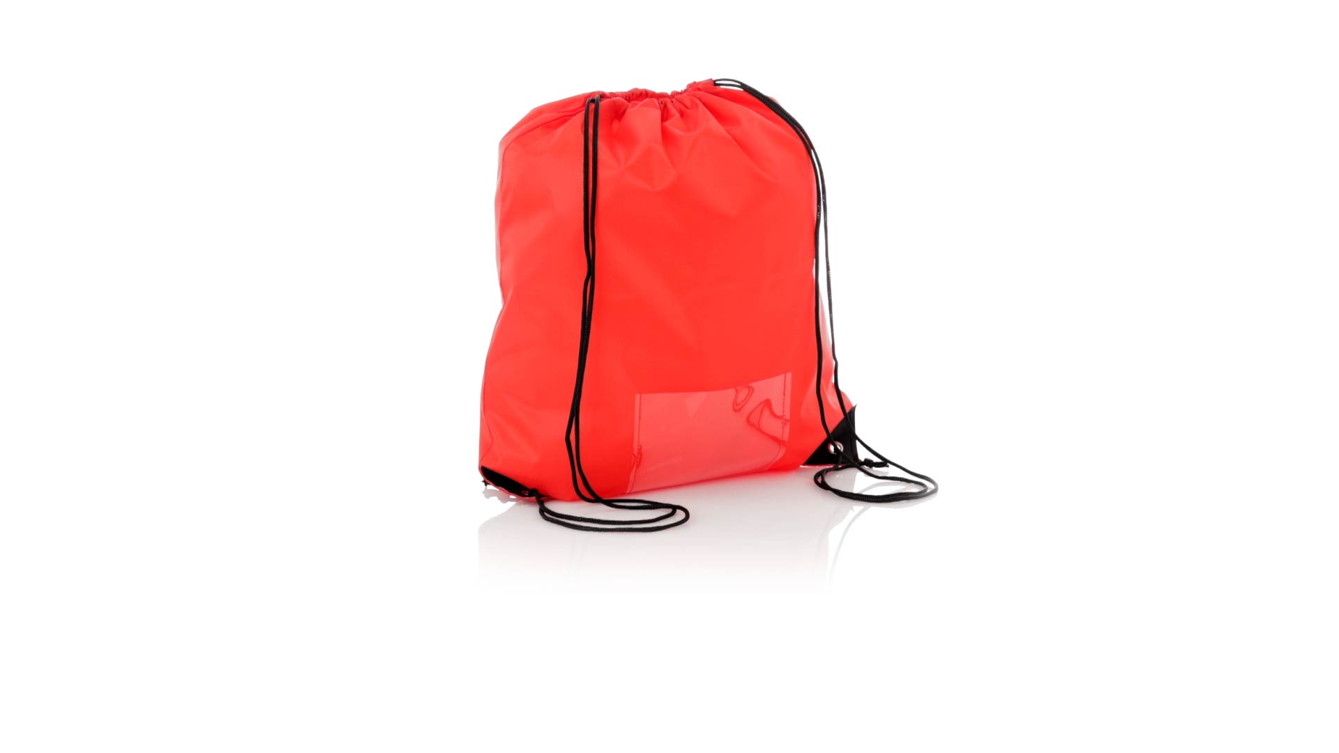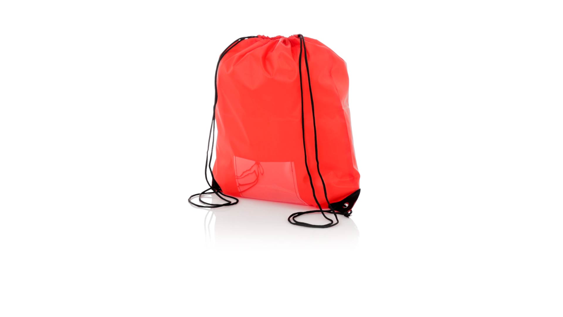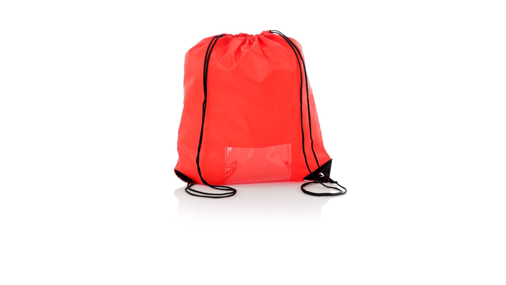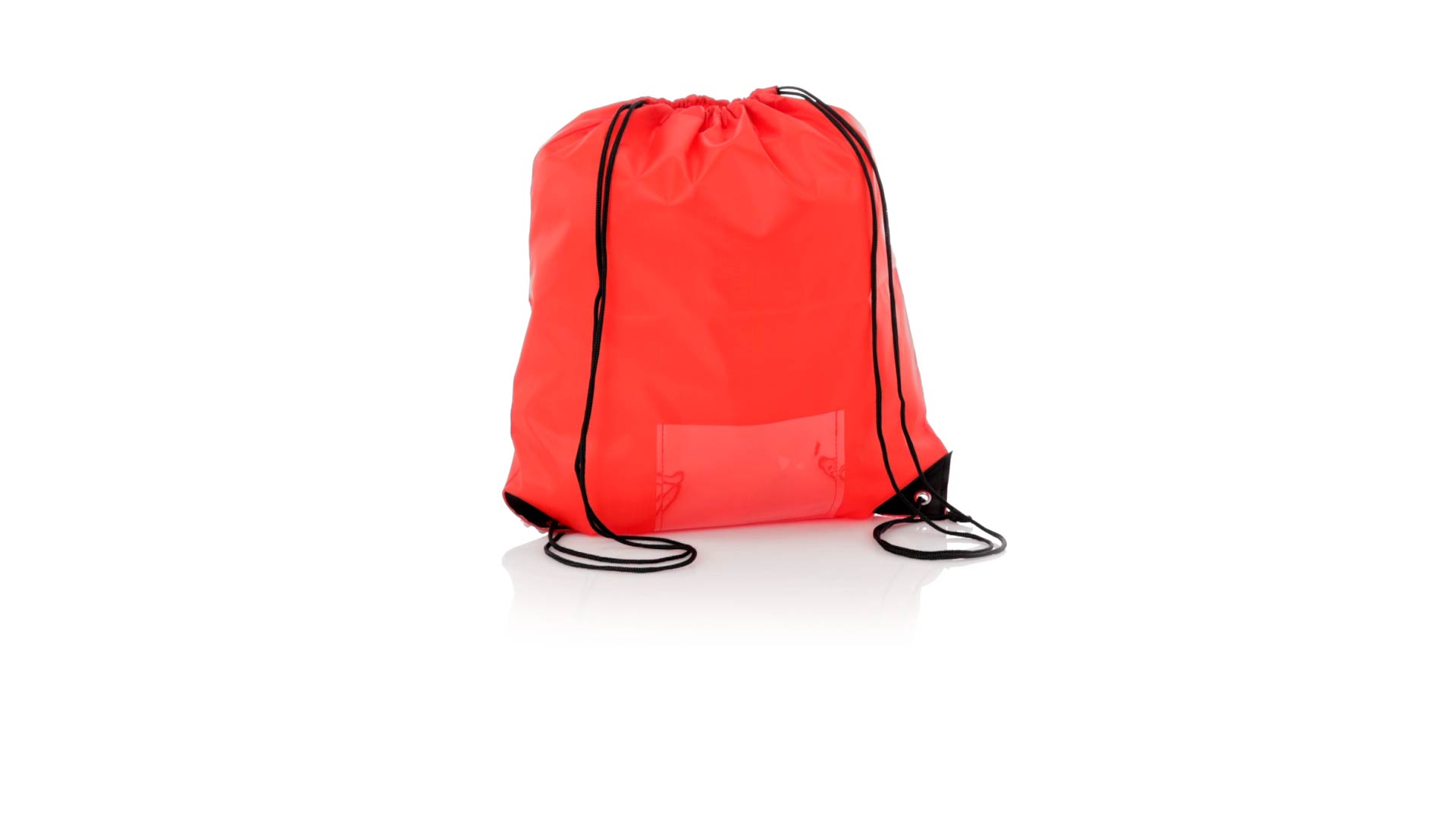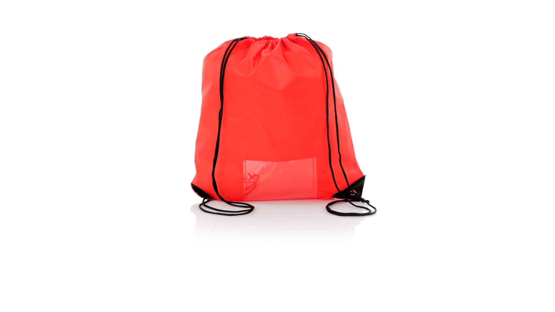 Rucksack mit Kordelzug aus weichem 210D-Polyester. Selbstschliessende Schnüre und schwarz verstärkte Ecken mit Metallösen. Inklusive einer transparenten Tasche für die Nummer und in einer breiten Farbpalette erhältlich (weisse Farbe speziell für den Sublimationsdruck).